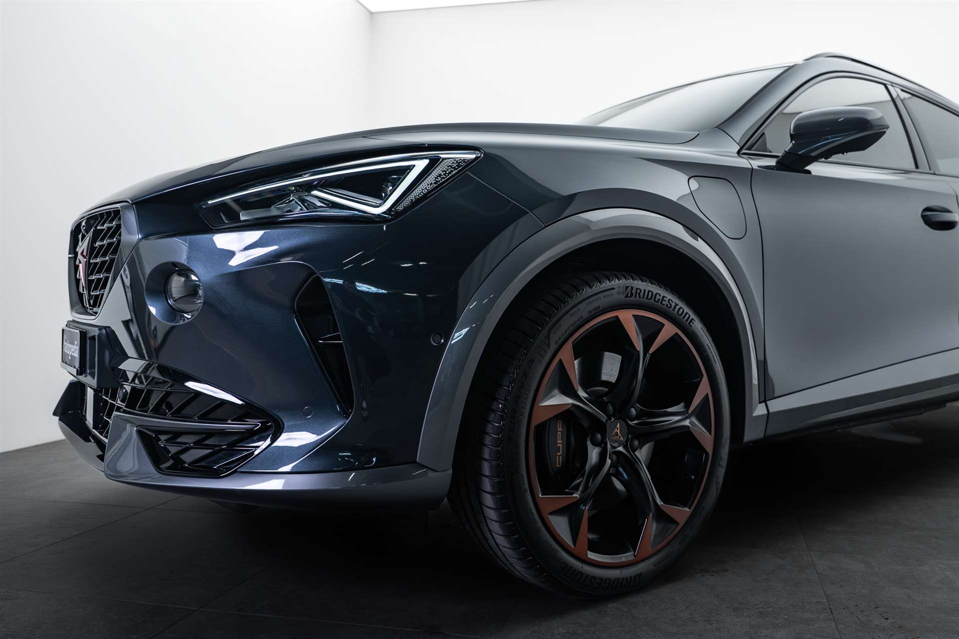 CUPRA Reifen Plus, CUPRA Reifen, CUPRA Räder Plus, CUPRA Räder, Lackierung: Matt-Lackierungen, CUPRA ServicePLUS, Paket: CUPRA FORMENTOR e-HYBRID PACK, Paket: CUPRA FORMENTOR e-HYBRID PACK, CUPRA Service, Panorama-Schiebe-/Ausstelldach, CUPRA Sport Schalensitze in Leder "Black", CUPRA Sport Schalensitze in Leder "Petrol blue", Räder: Alufelgen 8J x 19", "EXCLUSIVE" 38/7 Machined Sport in Black/Copper, Anhängevorrichtung (Einklappbar), Lackierung: Premium Metallic-Lackierung, Räder: Alufelgen 8J x 19", "EXCLUSIVE" 38/6 Machined Aerowheels in Black/Copper, Garantie: Cupra Hersteller-Garantieverlängerung für das 3., 4. und 5. Jahr / max.100’000 km, Lenkrad: Supersportlenkrad mit Start-/ Drive Profile-Knopfsystem und Schaltwippen, beheizbar, Räder: Alufelgen 8J x 19", "EXCLUSIVE" 38/4 Machined Aerowheels in Sport Black Matt/ Silver, Assist: Top View Camera (Rundumblick), Türen: Heckklappe elektrisch öffnend und schliessend Virtual Pedal-, Garantie: Cupra Hersteller-Garantieverlängerung für das 3. und 4. Jahr / max. 80’000 km, Airbag: Seitenairbags hinten, vorn mit Knieairbag, Alarmanlage mit Innenraumüberwachung - Abschleppschutz, Sitze: Fahrersitz elektrisch einstellbar, Media: CUPRA Connectivity Box-, Media: CUPRA FullLink für Navigationssystem, CUPRA Mobilität Plus
