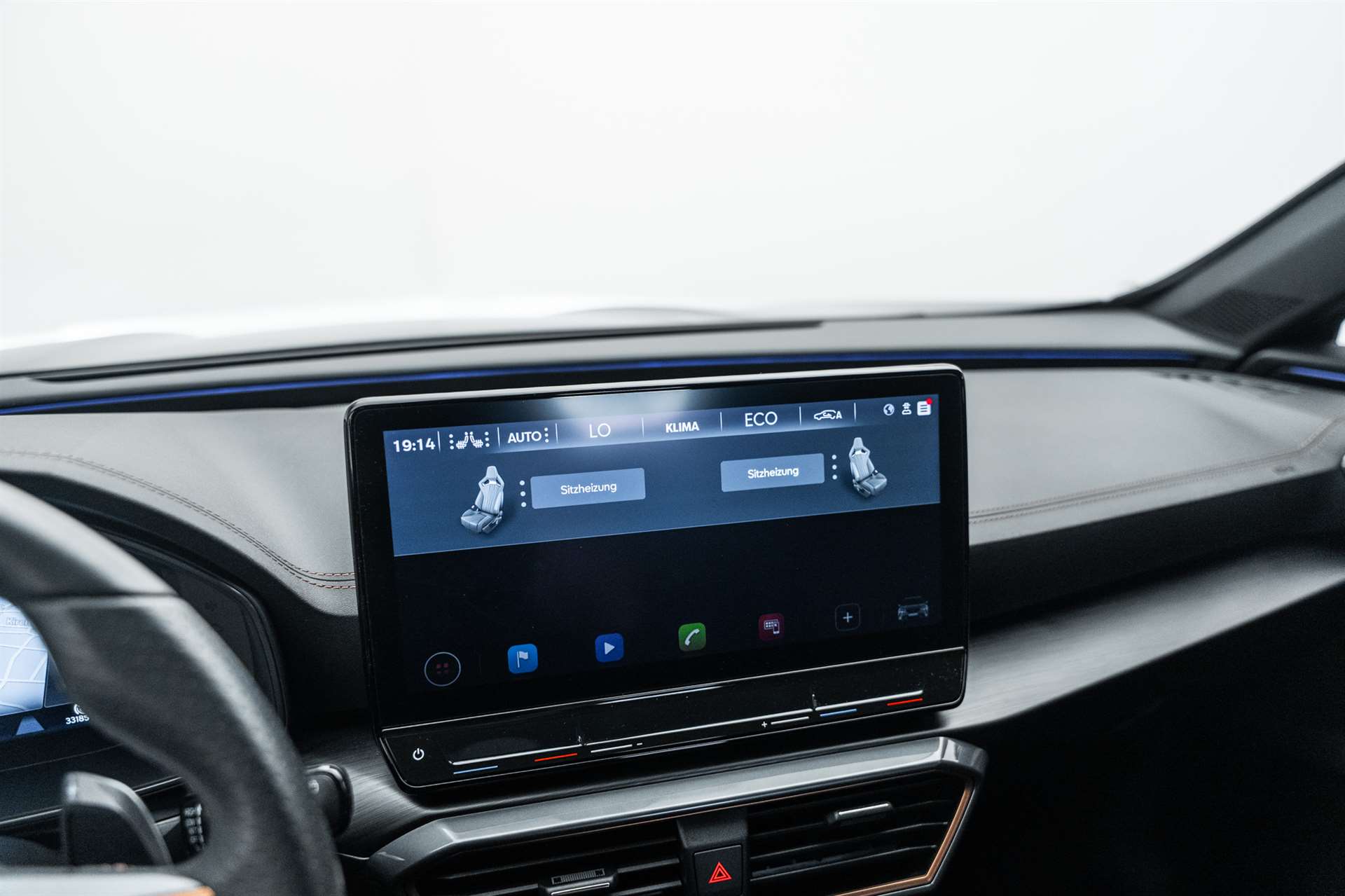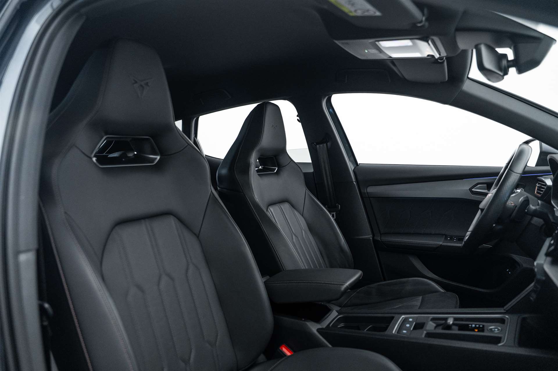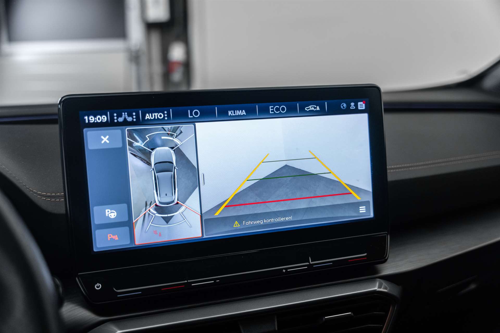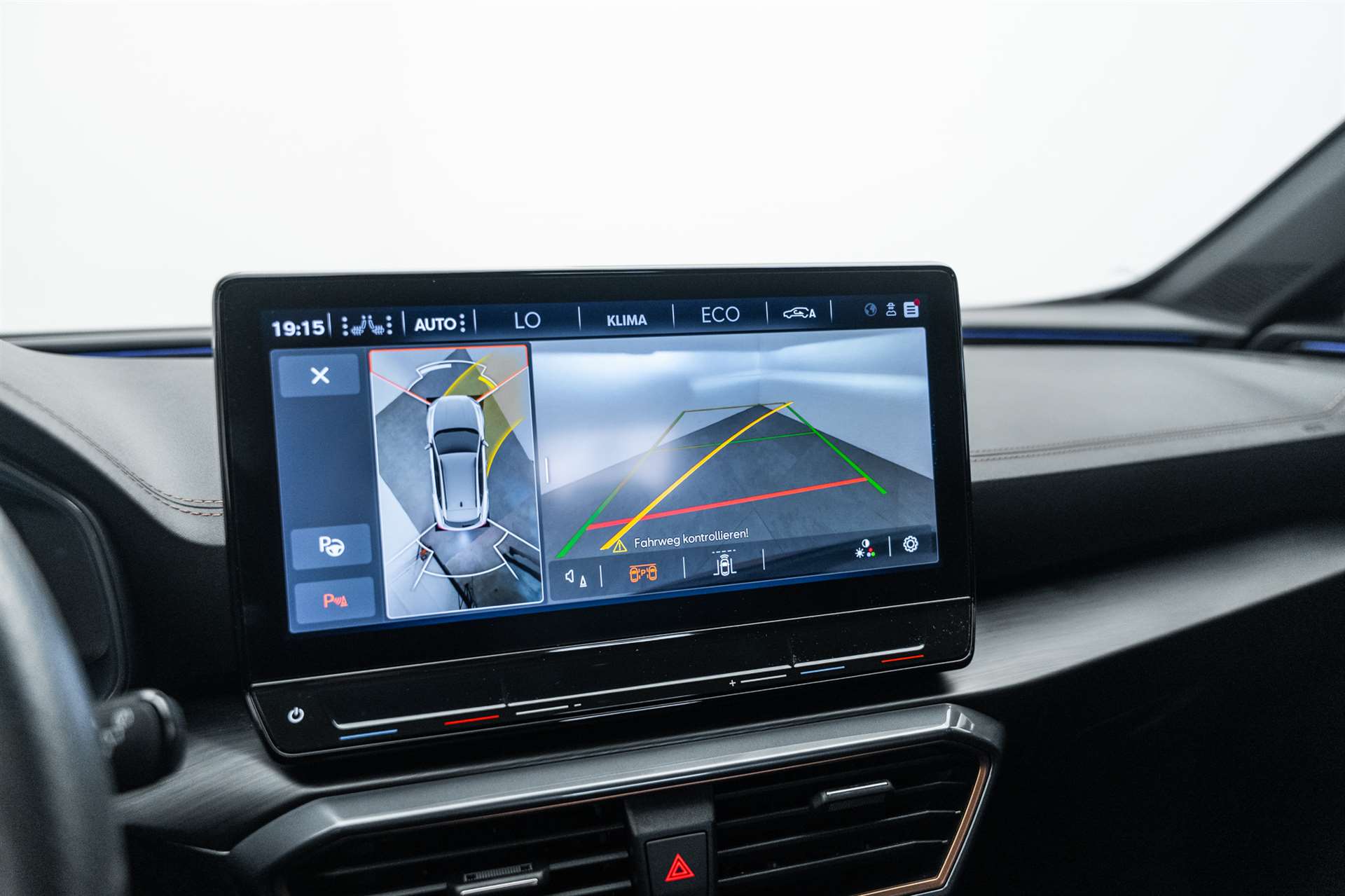 230-Volt Steckdose im Kofferraum und 12-Volt Steckdose in der Mittelkonsole, Abgedunkelte Scheiben ab B-Säule hinten, ABS, EBV elektronische Bremskraft-verteilung, Airbag: Airbag Beifahrer deaktivierbar, Airbag: Airbag Fahrer und Beifahrer, Airbag: Kopfairbags vorne und hinten, Airbag: Seitenairbags für Fahrer und Beifahrer, Assist: Automatische Distanzregelung ACC, Assist: City Notbremsfunktion, Assist: Einparkhilfe vorne und hinten mit Rückfahrkamera, Assist: Elektronische Parkbremse mit Auto Hold Funktion, Assist: Exit Assist (Ausparkassistent), Assist: Multifunktionskamera, Assist: Multikollisionsbremse, Assist: Parklenkassistent, Assist: PreCrash Sicherheitssystem, Assist: Regen-/Lichtsensor, Assist: Side Assist (Spurwechselassistent), Assist: Tiredness detection (Müdigkeitserkennung), Assist: Top View Camera (Rundumblick), Assist: Top View Camera (Rundumblick), Assist: Traffic sign recognition (Verkehrszeichenerkennung), Assist: Travel Assist, Assist: Umfeldbeobachtung Front-Assist, Aussenspiegel elektrisch einstell-, beheiz- und einklappbar, Aussenspiegel mit Beifahrerspiegelabsenkung, Aussenspiegel mit LED-Umfeldbeleuchtung, Automatisch abblendender Innenrückspiegel, Beleuchtete Sonnenblende links mit abdeckbarem Spiegel und Lasche, rechts mit abdeckbarem Spiegel, CUPRA Drive Profile mit "driving experience button" Comfort, Sport, CUPRA, Individual, Snow, Offroad, CUPRA Sport Schalensitze in Leder "Black", CUPRA Sport Schalensitze in Leder "Petrol blue", Dachhimmel schwarz, Dachreling schwarz, Dreipunkt-Automatiksicherheitsgurte auf allen Plätzen, Elektrische Fensterheber vorne und hinten mit Komfortschaltung und Einklemmschutz, ESC mit EBA, DSR, XDS und Reifendruckkontrolle, Fahrwerk: Adaptive Fahrwerksregelung DCC, Fahrwerk: Progressivlenkung, Full Digital Cockpit, Fussmatten vorne und hinten, Garantie: Cupra 12 Jahre Gewährleistung gegen Karosserie-Durchrostung, Garantie: Cupra 3 Jahre Lack-Gewährleistung, Garantie: Cupra Garantie 2 Jahre ohne Kilometerbegrenzung, Getriebe: 6-Gang DSG, Heckdiffusor, Heckscheiben-Wisch-/Waschanlage mit Intervall, Heckspoiler, Kindersitzverankerung ISOFIX (äussere Plätze hinten), Klima: 3-Zonen Climatronic mit Fondraumbedienung, Lackierung: Uni-Lackierung, Ladekabel (Mode 3), Ladekabel für Haushaltssteckdose (Mode 2), LED-Innenraumbeleuchtung mit Ambientebeleuchtung Wraparound, Lenkrad: Beheizbares Ledermultifunktionslenkrad mit Schaltwippen, Lenkrad: Supersportlenkrad mit Start-/ Drive Profile-Knopfsystem und Schaltwippen, beheizbar, Lenkrad: Supersportlenkrad mit Start-/ Drive Profile-Knopfsystem und Schaltwippen, beheizbar, Licht: Coming-home-Funktion, Licht: Durchgehende Full LED-Heckleuchten, Licht: LED-Heckleuchten mit dynamischem Blinklicht, Licht: LED-Nebelscheinwerfer mit Cornering-Funktion, Licht: LED-Scheinwerfer für Abblend- und Fernlicht, Licht: LED-Tagfahrlicht, Licht: Leuchtweitenregulierung dynamisch, Media: 12" 3D Infotainment (MIB3), Media: 2 USB C Anschlüsse hinten und vorne, Media: 7 Lautsprecher, Media: CUPRA Connect Online Infotainment für Navigationssystem, Media: CUPRA Connect Remote & Access für Navigationssystem, Media: CUPRA Connectivity Box-, Media: CUPRA Connectivity Box-, Media: CUPRA FullLink für Navigationssystem, Media: CUPRA FullLink für Navigationssystem, Media: CUPRA Navigationssystem PLUS, Media: DAB+ (Digital Audio Broadcasting), Media: Kartenmaterial ''Europa'', Media: Mobiltelefon Freisprechanlage Bluetooth, Media: Sprachsteuerung, Mittelarmlehne vorne und hinten, Nebelschlussleuchte, Ottopartikelfilter, Pyrotechnische Gurtstraffer und Gurtkraftbegrenzer, Räder: Alufelgen 8J x 19", "EXCLUSIVE" 38/3 Machined Black/ Silver, Räder: Reifendruck-Kontrollanzeige, Räder: Reifenreparatur-Set (Tire Fit), Schlüsselloses Schliess- und Startsystem (KESSY), Servolenkung mit geschwindigkeitsabhängiger Lenkkraftunterstützung, Sitze: 2 verstellbare Kopfstützen vorne und 3 hinten, Sitze: CUPRA Sport Schalensitze in "Sharp Textil schwarz", Sitze: Easy Backseat Release (Rücksitzentriegelung im Kofferraum), Sitze: Geteilt abklappbare Rücksitzlehne 1/3 - 2/3, Sitze: Sitzheizung für Vordersitze, getrennt regelbar, Sitze: Vordersitze höhenverstellbar mit Lendenwirbelstütze, Stopp - Start- und Rekuperationssystem, Türen: Heckklappe elektrisch öffnend und schliessend Virtual Pedal-, Türen: Heckklappe elektrisch öffnend und schliessend Virtual Pedal-, Türgriffe in Wagenfarbe, Vollverzinkte Karosserie, Wegfahrsperre elektronisch, Zentralverriegelung mit Funkfernbedienung, 2 Funkschlüssel, Zwei Abgasblenden in Kupfer