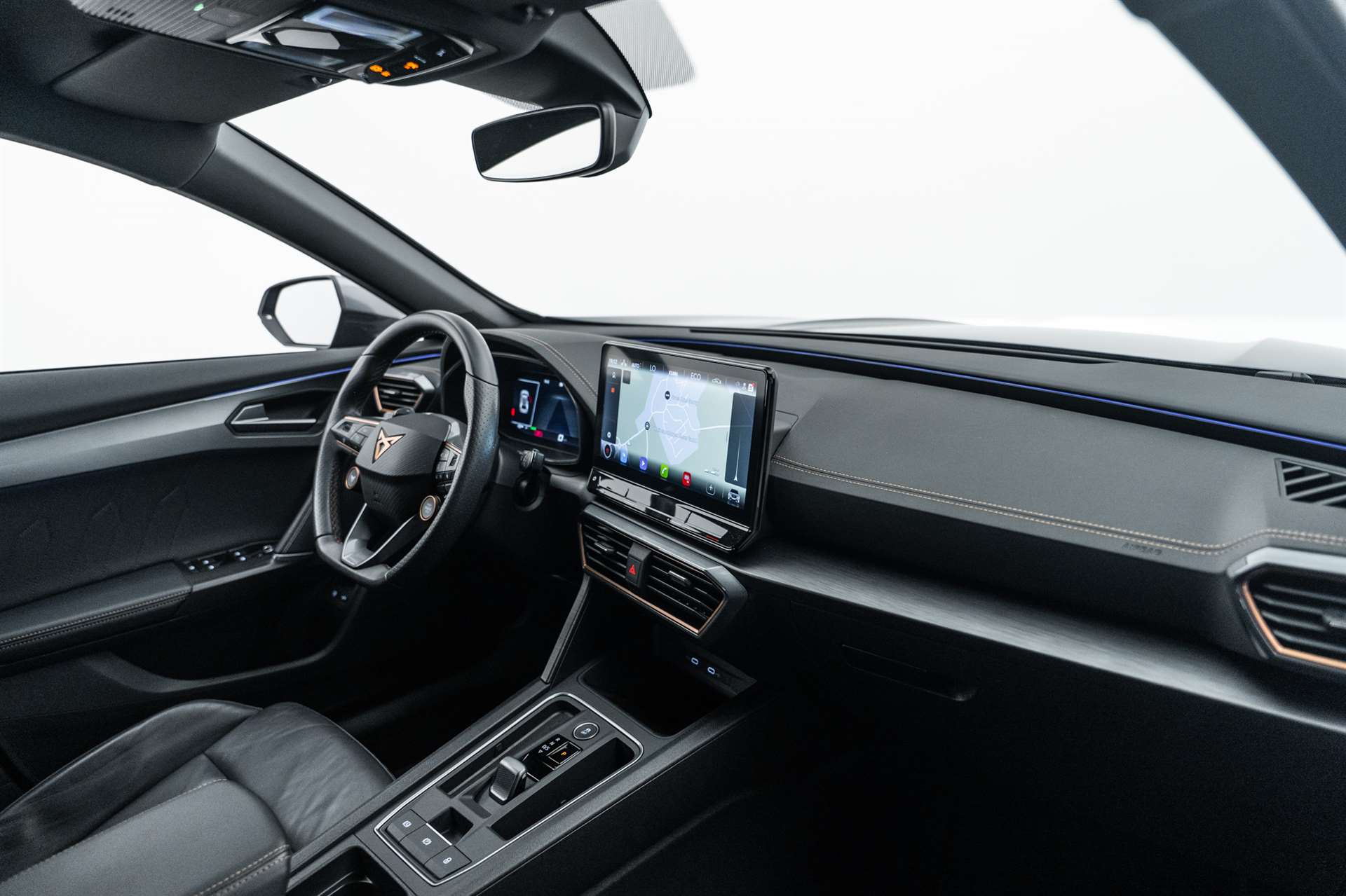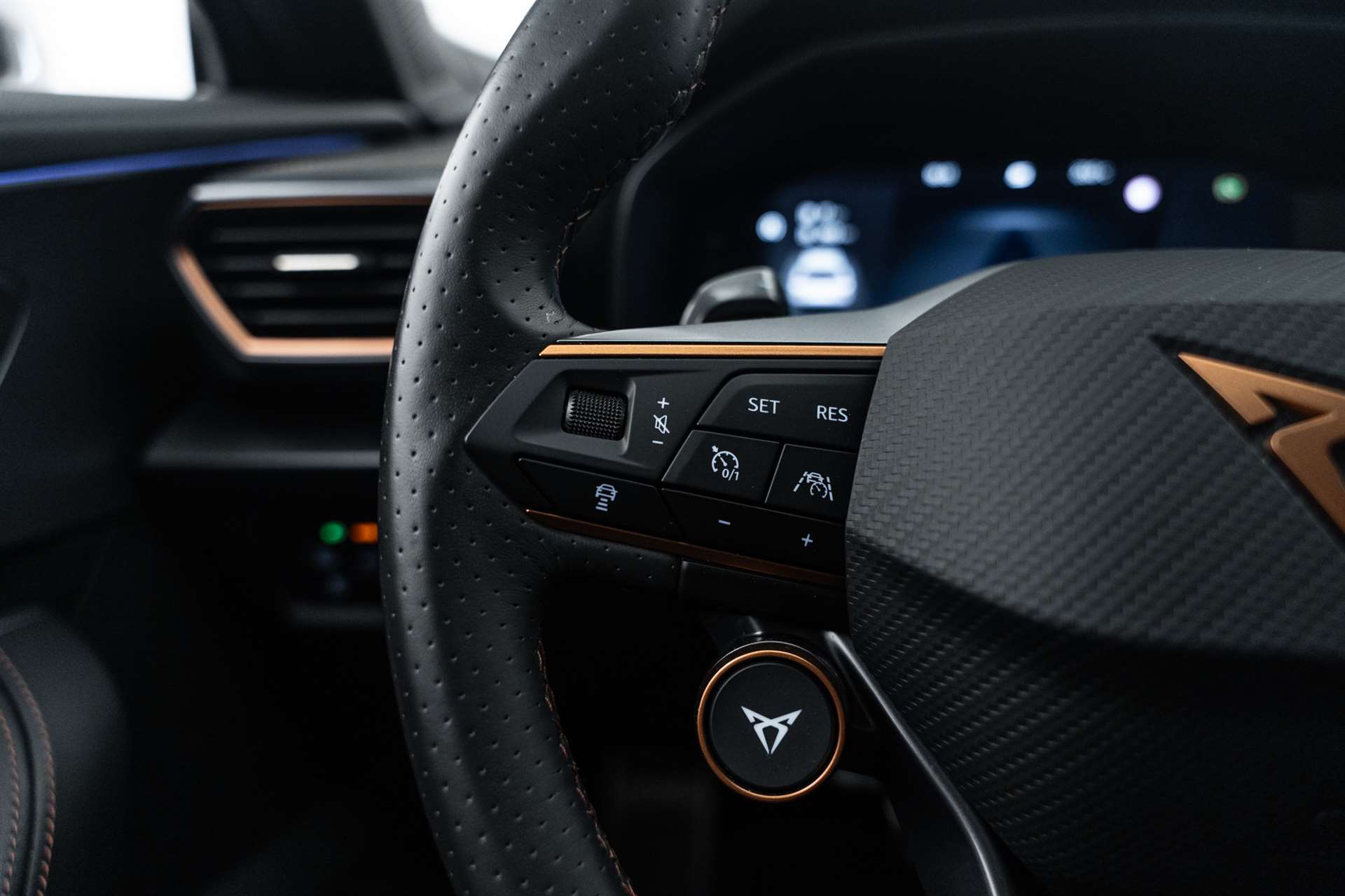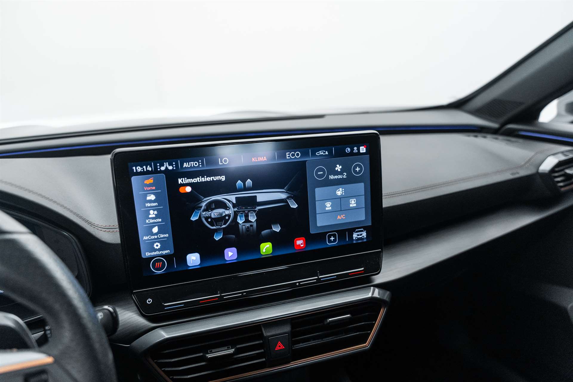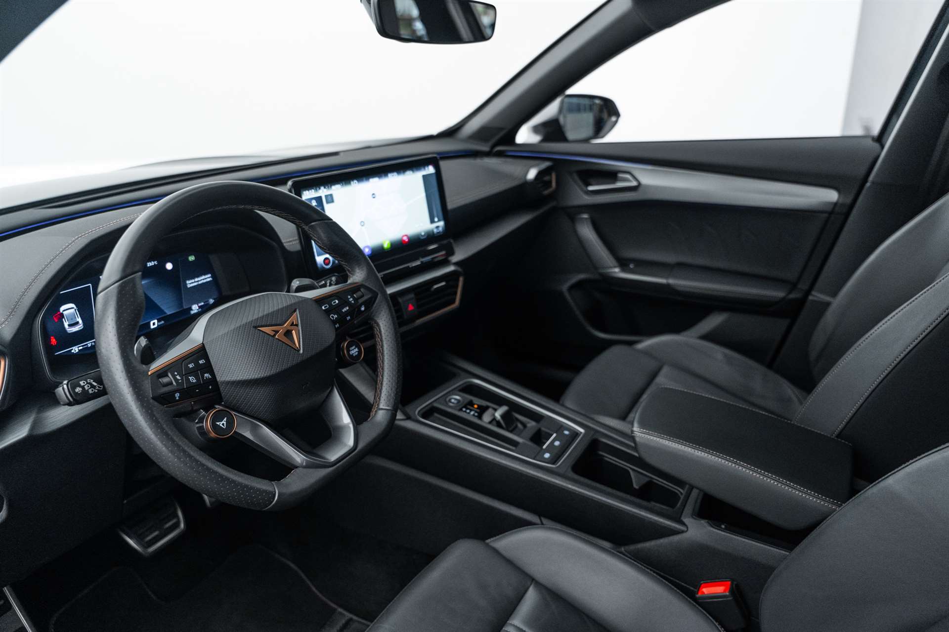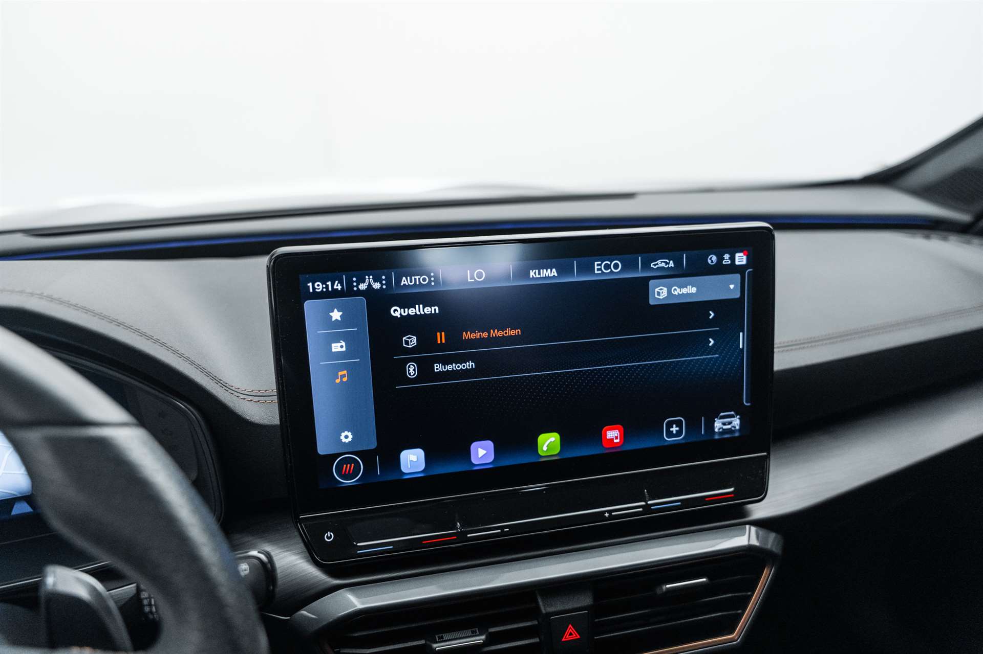 230-Volt Steckdose im Kofferraum und 12-Volt Steckdose in der Mittelkonsole, Abgedunkelte Scheiben ab B-Säule hinten, ABS, EBV elektronische Bremskraft-verteilung, Airbag: Airbag Beifahrer deaktivierbar, Airbag: Airbag Fahrer und Beifahrer, Airbag: Kopfairbags vorne und hinten, Airbag: Seitenairbags für Fahrer und Beifahrer, Assist: Automatische Distanzregelung ACC, Assist: City Notbremsfunktion, Assist: Einparkhilfe vorne und hinten mit Rückfahrkamera, Assist: Elektronische Parkbremse mit Auto Hold Funktion, Assist: Exit Assist (Ausparkassistent), Assist: Multifunktionskamera, Assist: Multikollisionsbremse, Assist: Parklenkassistent, Assist: PreCrash Sicherheitssystem, Assist: Regen-/Lichtsensor, Assist: Side Assist (Spurwechselassistent), Assist: Tiredness detection (Müdigkeitserkennung), Assist: Top View Camera (Rundumblick), Assist: Top View Camera (Rundumblick), Assist: Traffic sign recognition (Verkehrszeichenerkennung), Assist: Travel Assist, Assist: Umfeldbeobachtung Front-Assist, Aussenspiegel elektrisch einstell-, beheiz- und einklappbar, Aussenspiegel mit Beifahrerspiegelabsenkung, Aussenspiegel mit LED-Umfeldbeleuchtung, Automatisch abblendender Innenrückspiegel, Beleuchtete Sonnenblende links mit abdeckbarem Spiegel und Lasche, rechts mit abdeckbarem Spiegel, CUPRA Drive Profile mit "driving experience button" Comfort, Sport, CUPRA, Individual, Snow, Offroad, CUPRA Sport Schalensitze in Leder "Black", CUPRA Sport Schalensitze in Leder "Petrol blue", Dachhimmel schwarz, Dachreling schwarz, Dreipunkt-Automatiksicherheitsgurte auf allen Plätzen, Elektrische Fensterheber vorne und hinten mit Komfortschaltung und Einklemmschutz, ESC mit EBA, DSR, XDS und Reifendruckkontrolle, Fahrwerk: Adaptive Fahrwerksregelung DCC, Fahrwerk: Progressivlenkung, Full Digital Cockpit, Fussmatten vorne und hinten, Garantie: Cupra 12 Jahre Gewährleistung gegen Karosserie-Durchrostung, Garantie: Cupra 3 Jahre Lack-Gewährleistung, Garantie: Cupra Garantie 2 Jahre ohne Kilometerbegrenzung, Getriebe: 6-Gang DSG, Heckdiffusor, Heckscheiben-Wisch-/Waschanlage mit Intervall, Heckspoiler, Kindersitzverankerung ISOFIX (äussere Plätze hinten), Klima: 3-Zonen Climatronic mit Fondraumbedienung, Lackierung: Uni-Lackierung, Ladekabel (Mode 3), Ladekabel für Haushaltssteckdose (Mode 2), LED-Innenraumbeleuchtung mit Ambientebeleuchtung Wraparound, Lenkrad: Beheizbares Ledermultifunktionslenkrad mit Schaltwippen, Lenkrad: Supersportlenkrad mit Start-/ Drive Profile-Knopfsystem und Schaltwippen, beheizbar, Lenkrad: Supersportlenkrad mit Start-/ Drive Profile-Knopfsystem und Schaltwippen, beheizbar, Licht: Coming-home-Funktion, Licht: Durchgehende Full LED-Heckleuchten, Licht: LED-Heckleuchten mit dynamischem Blinklicht, Licht: LED-Nebelscheinwerfer mit Cornering-Funktion, Licht: LED-Scheinwerfer für Abblend- und Fernlicht, Licht: LED-Tagfahrlicht, Licht: Leuchtweitenregulierung dynamisch, Media: 12" 3D Infotainment (MIB3), Media: 2 USB C Anschlüsse hinten und vorne, Media: 7 Lautsprecher, Media: CUPRA Connect Online Infotainment für Navigationssystem, Media: CUPRA Connect Remote & Access für Navigationssystem, Media: CUPRA Connectivity Box-, Media: CUPRA Connectivity Box-, Media: CUPRA FullLink für Navigationssystem, Media: CUPRA FullLink für Navigationssystem, Media: CUPRA Navigationssystem PLUS, Media: DAB+ (Digital Audio Broadcasting), Media: Kartenmaterial ''Europa'', Media: Mobiltelefon Freisprechanlage Bluetooth, Media: Sprachsteuerung, Mittelarmlehne vorne und hinten, Nebelschlussleuchte, Ottopartikelfilter, Pyrotechnische Gurtstraffer und Gurtkraftbegrenzer, Räder: Alufelgen 8J x 19", "EXCLUSIVE" 38/3 Machined Black/ Silver, Räder: Reifendruck-Kontrollanzeige, Räder: Reifenreparatur-Set (Tire Fit), Schlüsselloses Schliess- und Startsystem (KESSY), Servolenkung mit geschwindigkeitsabhängiger Lenkkraftunterstützung, Sitze: 2 verstellbare Kopfstützen vorne und 3 hinten, Sitze: CUPRA Sport Schalensitze in "Sharp Textil schwarz", Sitze: Easy Backseat Release (Rücksitzentriegelung im Kofferraum), Sitze: Geteilt abklappbare Rücksitzlehne 1/3 - 2/3, Sitze: Sitzheizung für Vordersitze, getrennt regelbar, Sitze: Vordersitze höhenverstellbar mit Lendenwirbelstütze, Stopp - Start- und Rekuperationssystem, Türen: Heckklappe elektrisch öffnend und schliessend Virtual Pedal-, Türen: Heckklappe elektrisch öffnend und schliessend Virtual Pedal-, Türgriffe in Wagenfarbe, Vollverzinkte Karosserie, Wegfahrsperre elektronisch, Zentralverriegelung mit Funkfernbedienung, 2 Funkschlüssel, Zwei Abgasblenden in Kupfer