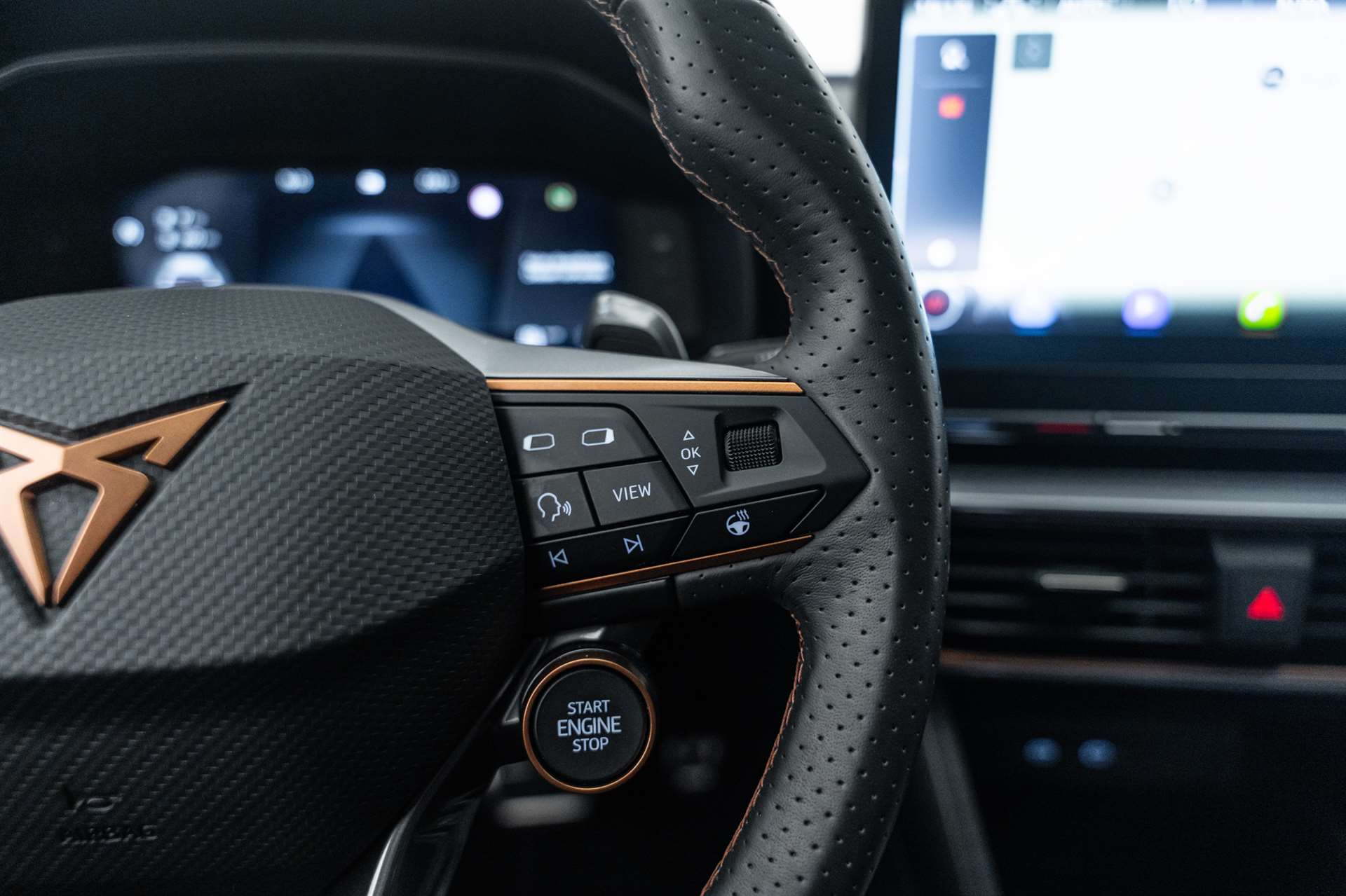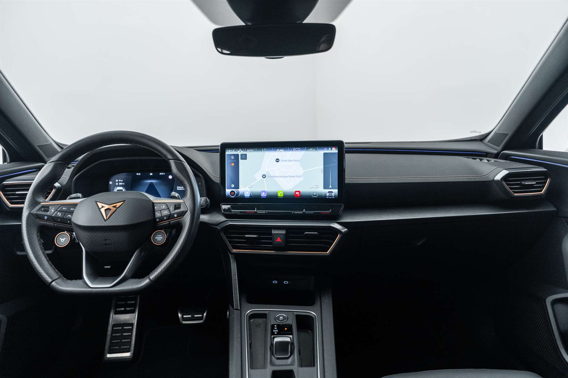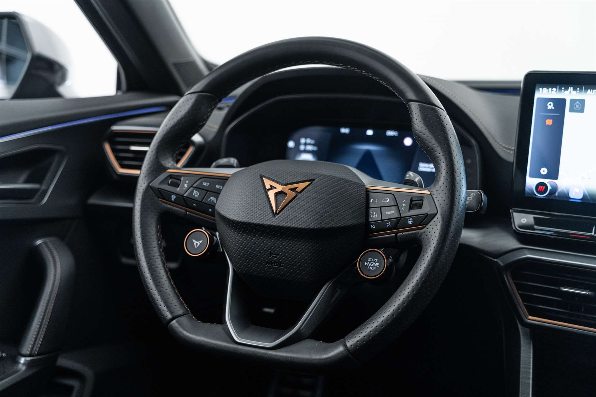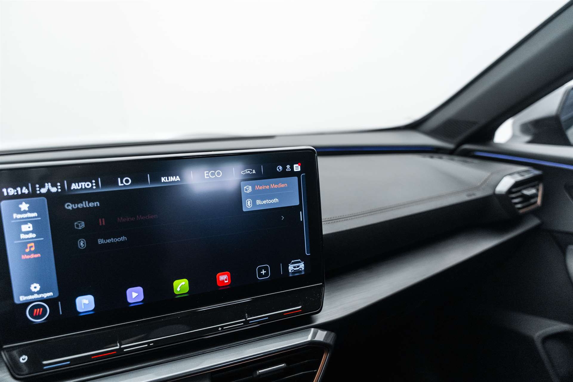 230-Volt Steckdose im Kofferraum und 12-Volt Steckdose in der Mittelkonsole, Abgedunkelte Scheiben ab B-Säule hinten, ABS, EBV elektronische Bremskraft-verteilung, Airbag: Airbag Beifahrer deaktivierbar, Airbag: Airbag Fahrer und Beifahrer, Airbag: Kopfairbags vorne und hinten, Airbag: Seitenairbags für Fahrer und Beifahrer, Assist: Automatische Distanzregelung ACC, Assist: City Notbremsfunktion, Assist: Einparkhilfe vorne und hinten mit Rückfahrkamera, Assist: Elektronische Parkbremse mit Auto Hold Funktion, Assist: Exit Assist (Ausparkassistent), Assist: Multifunktionskamera, Assist: Multikollisionsbremse, Assist: Parklenkassistent, Assist: PreCrash Sicherheitssystem, Assist: Regen-/Lichtsensor, Assist: Side Assist (Spurwechselassistent), Assist: Tiredness detection (Müdigkeitserkennung), Assist: Top View Camera (Rundumblick), Assist: Top View Camera (Rundumblick), Assist: Traffic sign recognition (Verkehrszeichenerkennung), Assist: Travel Assist, Assist: Umfeldbeobachtung Front-Assist, Aussenspiegel elektrisch einstell-, beheiz- und einklappbar, Aussenspiegel mit Beifahrerspiegelabsenkung, Aussenspiegel mit LED-Umfeldbeleuchtung, Automatisch abblendender Innenrückspiegel, Beleuchtete Sonnenblende links mit abdeckbarem Spiegel und Lasche, rechts mit abdeckbarem Spiegel, CUPRA Drive Profile mit "driving experience button" Comfort, Sport, CUPRA, Individual, Snow, Offroad, CUPRA Sport Schalensitze in Leder "Black", CUPRA Sport Schalensitze in Leder "Petrol blue", Dachhimmel schwarz, Dachreling schwarz, Dreipunkt-Automatiksicherheitsgurte auf allen Plätzen, Elektrische Fensterheber vorne und hinten mit Komfortschaltung und Einklemmschutz, ESC mit EBA, DSR, XDS und Reifendruckkontrolle, Fahrwerk: Adaptive Fahrwerksregelung DCC, Fahrwerk: Progressivlenkung, Full Digital Cockpit, Fussmatten vorne und hinten, Garantie: Cupra 12 Jahre Gewährleistung gegen Karosserie-Durchrostung, Garantie: Cupra 3 Jahre Lack-Gewährleistung, Garantie: Cupra Garantie 2 Jahre ohne Kilometerbegrenzung, Getriebe: 6-Gang DSG, Heckdiffusor, Heckscheiben-Wisch-/Waschanlage mit Intervall, Heckspoiler, Kindersitzverankerung ISOFIX (äussere Plätze hinten), Klima: 3-Zonen Climatronic mit Fondraumbedienung, Lackierung: Uni-Lackierung, Ladekabel (Mode 3), Ladekabel für Haushaltssteckdose (Mode 2), LED-Innenraumbeleuchtung mit Ambientebeleuchtung Wraparound, Lenkrad: Beheizbares Ledermultifunktionslenkrad mit Schaltwippen, Lenkrad: Supersportlenkrad mit Start-/ Drive Profile-Knopfsystem und Schaltwippen, beheizbar, Lenkrad: Supersportlenkrad mit Start-/ Drive Profile-Knopfsystem und Schaltwippen, beheizbar, Licht: Coming-home-Funktion, Licht: Durchgehende Full LED-Heckleuchten, Licht: LED-Heckleuchten mit dynamischem Blinklicht, Licht: LED-Nebelscheinwerfer mit Cornering-Funktion, Licht: LED-Scheinwerfer für Abblend- und Fernlicht, Licht: LED-Tagfahrlicht, Licht: Leuchtweitenregulierung dynamisch, Media: 12" 3D Infotainment (MIB3), Media: 2 USB C Anschlüsse hinten und vorne, Media: 7 Lautsprecher, Media: CUPRA Connect Online Infotainment für Navigationssystem, Media: CUPRA Connect Remote & Access für Navigationssystem, Media: CUPRA Connectivity Box-, Media: CUPRA Connectivity Box-, Media: CUPRA FullLink für Navigationssystem, Media: CUPRA FullLink für Navigationssystem, Media: CUPRA Navigationssystem PLUS, Media: DAB+ (Digital Audio Broadcasting), Media: Kartenmaterial ''Europa'', Media: Mobiltelefon Freisprechanlage Bluetooth, Media: Sprachsteuerung, Mittelarmlehne vorne und hinten, Nebelschlussleuchte, Ottopartikelfilter, Pyrotechnische Gurtstraffer und Gurtkraftbegrenzer, Räder: Alufelgen 8J x 19", "EXCLUSIVE" 38/3 Machined Black/ Silver, Räder: Reifendruck-Kontrollanzeige, Räder: Reifenreparatur-Set (Tire Fit), Schlüsselloses Schliess- und Startsystem (KESSY), Servolenkung mit geschwindigkeitsabhängiger Lenkkraftunterstützung, Sitze: 2 verstellbare Kopfstützen vorne und 3 hinten, Sitze: CUPRA Sport Schalensitze in "Sharp Textil schwarz", Sitze: Easy Backseat Release (Rücksitzentriegelung im Kofferraum), Sitze: Geteilt abklappbare Rücksitzlehne 1/3 - 2/3, Sitze: Sitzheizung für Vordersitze, getrennt regelbar, Sitze: Vordersitze höhenverstellbar mit Lendenwirbelstütze, Stopp - Start- und Rekuperationssystem, Türen: Heckklappe elektrisch öffnend und schliessend Virtual Pedal-, Türen: Heckklappe elektrisch öffnend und schliessend Virtual Pedal-, Türgriffe in Wagenfarbe, Vollverzinkte Karosserie, Wegfahrsperre elektronisch, Zentralverriegelung mit Funkfernbedienung, 2 Funkschlüssel, Zwei Abgasblenden in Kupfer