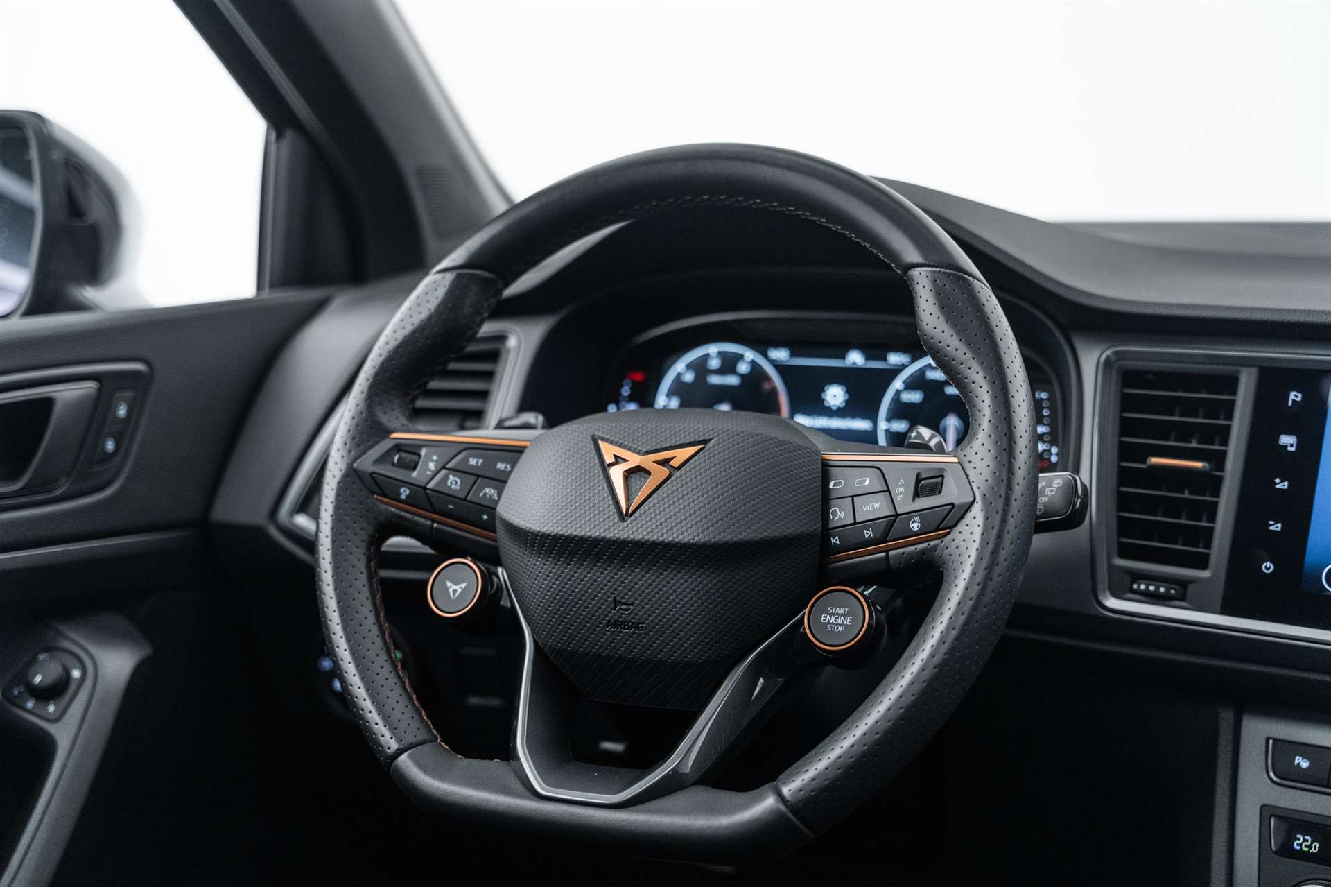 CUPRA Reifen Plus, CUPRA Reifen, CUPRA Räder Plus, CUPRA Räder, CUPRA ServicePLUS, CUPRA Service, Lackierung: Metallic-Lackierung, Paket: CUPRA Ateca Pack, Polster: Lederausstattung mit Sportsitzen vorne "black", Räder: Alufelgen 8J x 19", "EXCLUSIVE" 36/2 Machined in Silver (245/40 R19), Räder: Alufelgen 8J x 19", "EXCLUSIVE" 36/5 Machined Aerowheels in Copper, Garantie: Cupra Hersteller-Garantieverlängerung für das 3., 4. und 5. Jahr / max.100’000 km, Heckklappe elektrisch öffnend und schliessend "Virtual Pedal", Räder: Alufelgen 8J x 19", "EXCLUSIVE" 36/2 Machined Aerowheels in Sport Black Matt, Garantie: Cupra Hersteller-Garantieverlängerung für das 3. und 4. Jahr / max. 80’000 km, Media: BeatsAudio- Sound System - Subwoofer; 340 Watt Leistung 10 High-End-Lautsprecher, Räder: Alufelgen 8J x 19", "EXCLUSIVE" 36/1 Machined in Copper (245/40 R19), Variabler Ladeboden, CUPRA Mobilität Plus, Räder: Ersatzrad platzsparend