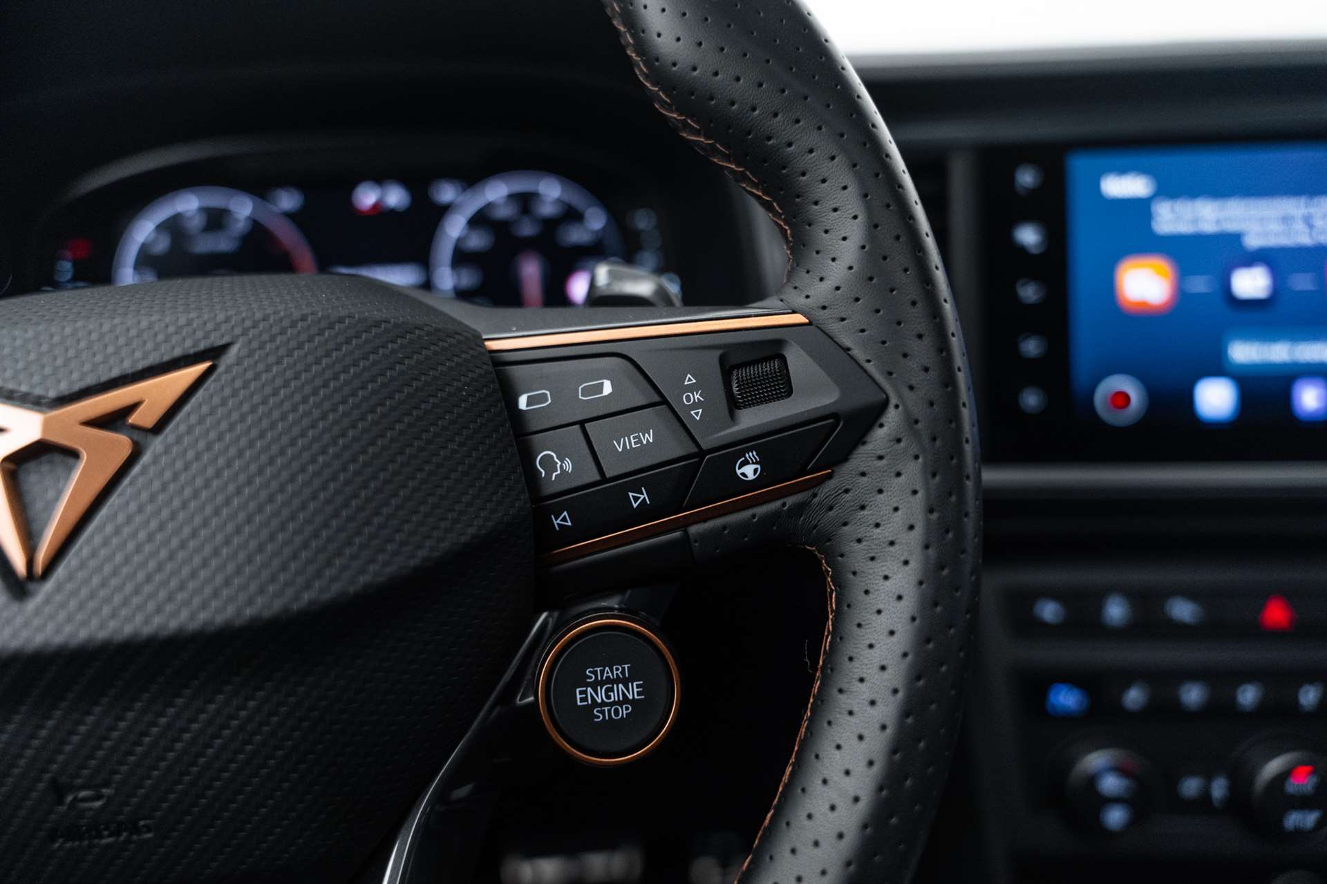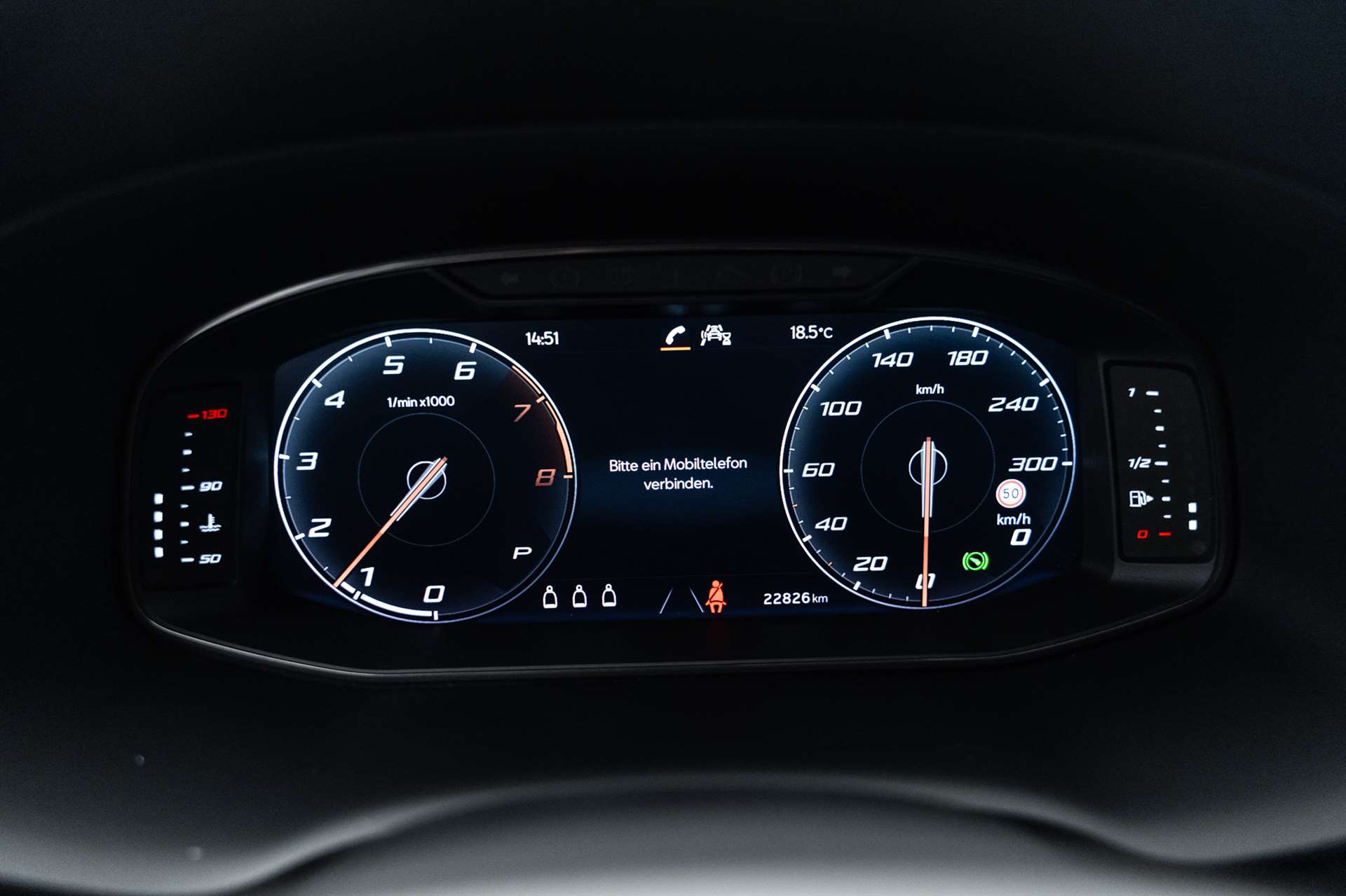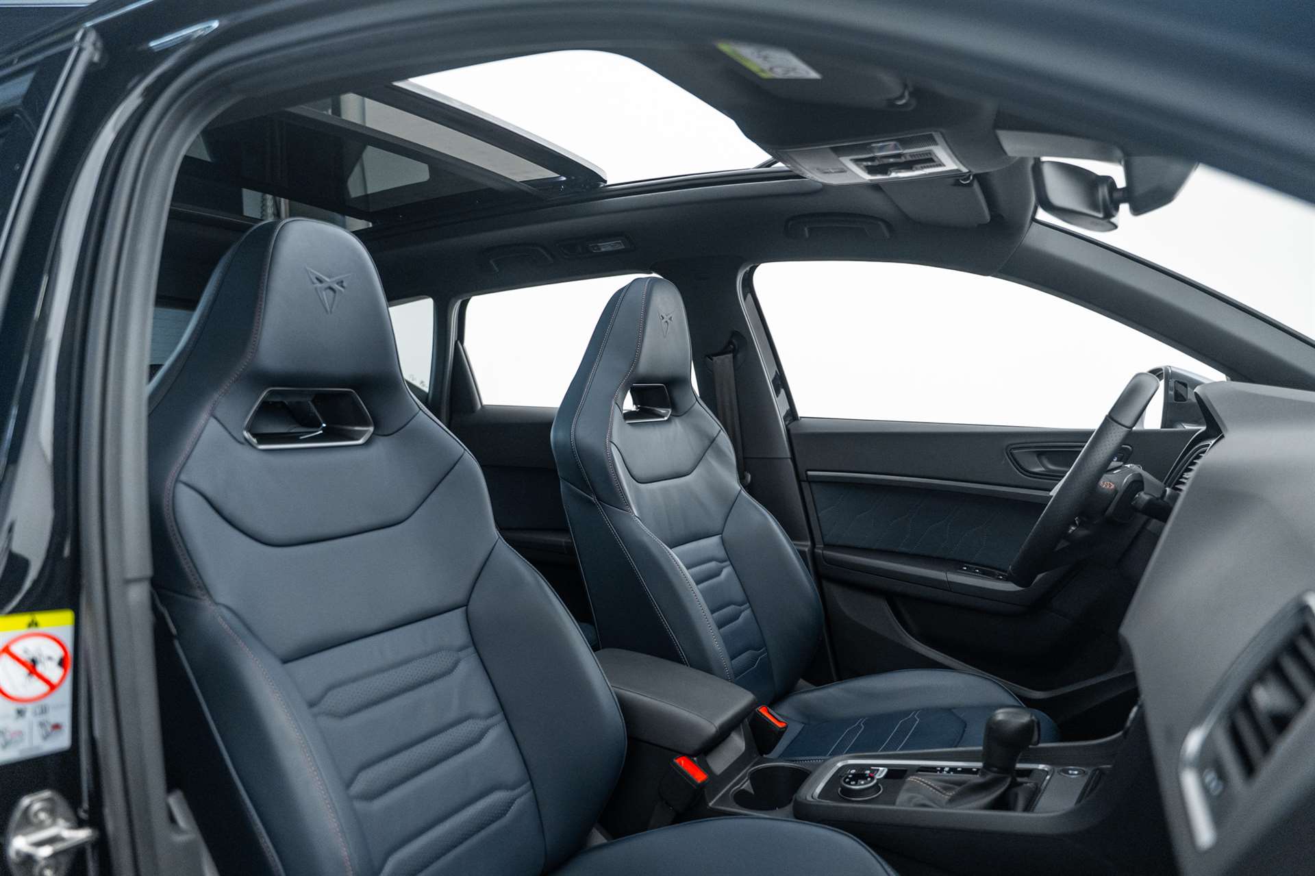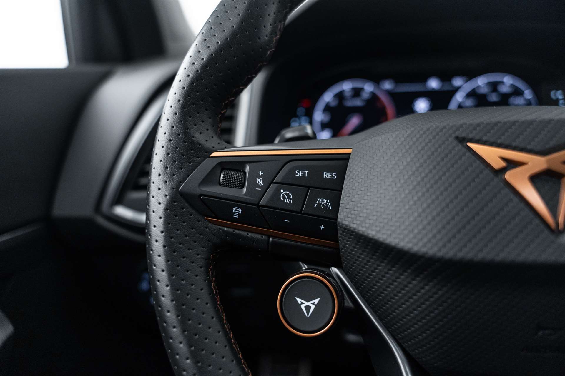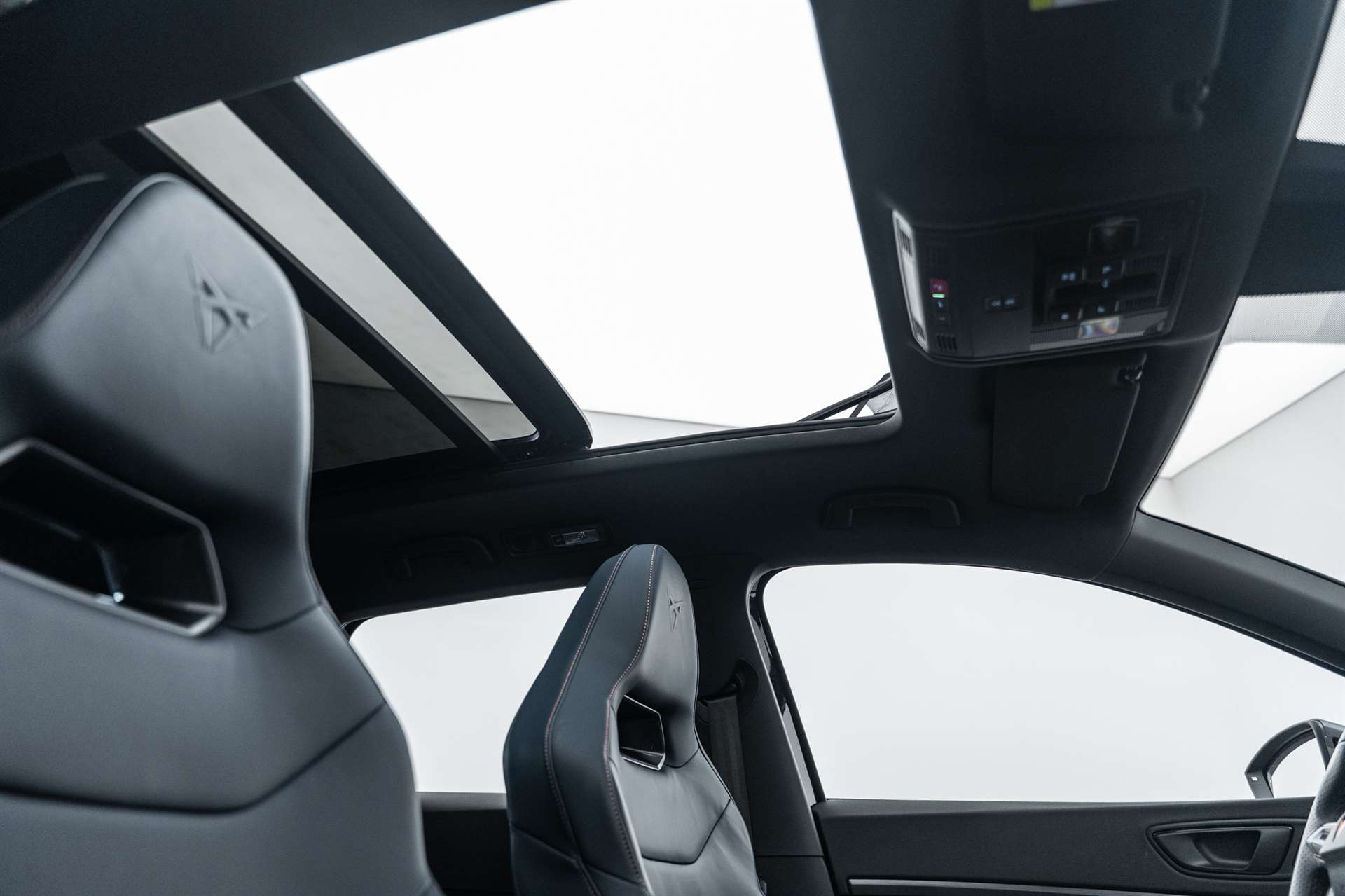 230-Volt und 12-Volt Steckdose im Kofferraum, Abgedunkelte Scheiben ab B-Säule hinten, ABS, EBV elektronische Bremskraft-verteilung, Airbag: Airbag Beifahrer deaktivierbar, Airbag: Airbag Fahrer und Beifahrer, Airbag: Knieairbag auf der Fahrerseite, Airbag: Kopfairbags vorne und hinten, Airbag: Seitenairbags für Fahrer und Beifahrer, Allradantrieb permanent, Assist: Einparkhilfe vorne und hinten mit optischer Anzeige, Assist: Elektronische Parkbremse mit Auto Hold Funktion, Assist: Exit Assist (Ausparkassistent), Assist: Front Assist, Assist: Lane assist (Spurhalteassistent), Assist: Multifunktionskamera, Assist: Multikollisionsbremse, Assist: Parklenkassistent, Assist: Prädiktive automatische Distanzregelung ACC, Assist: PreCrash Sicherheitssystem, Assist: Regen-/Lichtsensor, Assist: Side Assist (Spurwechselassistent), Assist: Speed limiter, Assist: Tempomat, Assist: Tiredness detection (Müdigkeitserkennung), Assist: Top View Camera (Rundumblick), Assist: Traffic sign recognition (Verkehrszeichenerkennung), Assist: Travel Assist, Athermisch beschichtete und beheizbare Windschutzscheibe, Aussenspiegel elektrisch einstell-, beheiz- und einklappbar, Aussenspiegel mit Beifahrerspiegelabsenkung, Aussenspiegel mit LED-Umfeldbeleuchtung, Aussenspiegel und Türgriffe in Wagenfarbe, Automatisch abblendender Innenrückspiegel, Beleuchtete Sonnenblende links mit abdeckbarem Spiegel und Lasche, rechts mit abdeckbarem Spiegel, Bordcomputer, CUPRA Drive Profile mit "driving experience button" Comfort, Sport, CUPRA, Individual, Snow, Offroad, Dachhimmel Schwarz, Dachreling schwarz, Dekor: Dekorblenden in Grau glänzend, Dekor: Türverkleidung mit Ambient light, Drehzahlmesser, Dreipunkt-Automatiksicherheitsgurte auf allen Plätzen, Einstiegsleisten in Aluminium, Elektrische Fensterheber vorne und hinten mit Komfortschaltung und Einklemmschutz, ESC mit EBA, DSR, XDS und Reifendruckkontrolle, Fahrwerk: Adaptive Fahrwerksregelung DCC, Fahrwerk: Progressivlenkung, Full Digital Cockpit, Fussmatten vorne und hinten, Garantie: Cupra 12 Jahre Gewährleistung gegen Karosserie-Durchrostung, Garantie: Cupra 3 Jahre Lack-Gewährleistung, Garantie: Cupra Garantie 2 Jahre ohne Kilometerbegrenzung, Getriebe: 7-Gang DSG, Heckdiffusor, Heckscheiben-Wisch-/Waschanlage mit Intervall, Heckscheibenheizung, Heckspoiler, Katalysator geregelt, Klima: 2-Zonen Climatronic, Lackierung: Uni-Lackierung, LED Innenraumbeleuchtung, Lenkrad: Beheizbares Ledermultifunktionslenkrad mit Schaltwippen, Lenkrad: Supersportlenkrad mit Start-/ Drive Profile-Knopfsystem und Schaltwippen, Licht: Coming-home-Funktion, Licht: Drittes Bremslicht, Licht: Fernlicht-Assistent, Licht: LED-Heckleuchten mit dynamischem Blinklicht, Licht: LED-Nebelscheinwerfer mit Cornering-Funktion, Licht: LED-Scheinwerfer für Abblend- und Fernlicht, Licht: LED-Tagfahrlicht, Licht: Leuchtweitenregulierung dynamisch, Licht: Nebelschlussleuchte, Media: 2 USB C Anschlüsse hinten und vorne, Media: 8 Lautsprecher, Media: 9.2" 3D Infotainment (MIB3), Media: CUPRA Connect Online Infotainment für Navigationssystem, Media: CUPRA Connect Remote & Access für Navigationssystem, Media: CUPRA Connect Safety & Services für Navigationssystem, Media: CUPRA Connectivity Box, Media: CUPRA FullLink für Navigationssystem, Media: CUPRA Navigationssystem, Media: DAB+ (Digital Audio Broadcasting), Media: Kartenmaterial ''Europa'', Media: Mobiltelefon Freisprechanlage Bluetooth, Media: Sprachsteuerung, Paket: Elektrikpaket-, Paket: Fahrerassistenzpaket M für Navigationssystem, Paket: Fahrerassistenzpaket XL, Paket: Winterpaket, Pyrotechnische Gurtstraffer und Gurtkraftbegrenzer, Räder: Alufelgen 8J x 19", Machined Sport Black/Silver, Räder: Reifenreparatur-Set (Tire Fit), Radlaufblenden in Wagenfarbe, Schlüsselloses Schliess- und Startsystem (KESSY), Servolenkung mit geschwindigkeitsabhängiger Lenkkraftunterstützung, Sitze: 2 verstellbare Kopfstützen vorne und 3 hinten, Sitze: CUPRA Sportschalensitze in Dinamica "Black", Sitze: Easy Backseat Release (Rücksitzentriegelung im Kofferraum), Sitze: Fahrersitz elektrisch einstellbar, Sitze: Geteilt abklappbare Rücksitzlehne 1/3 - 2/3, Sitze: Kindersitzverankerung ISOFIX hinten, Sitze: Mittelarmlehne hinten, Sitze: Mittelarmlehne vorne, Sitze: Sitzheizung für Vordersitze, getrennt regelbar, Sitze: Vordersitze höhenverstellbar mit Lendenwirbelstütze, Sportabgasanlage mit 4-fach Endrohr, Stopp - Start- und Rekuperationssystem, Vollverzinkte Karosserie, Wegfahrsperre elektronisch, Zentralverriegelung mit Funkfernbedienung, 2 Funkschlüssel