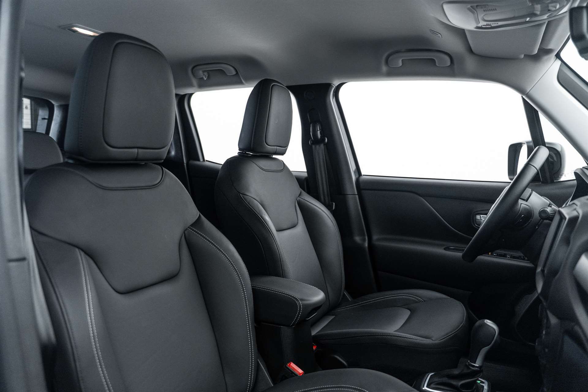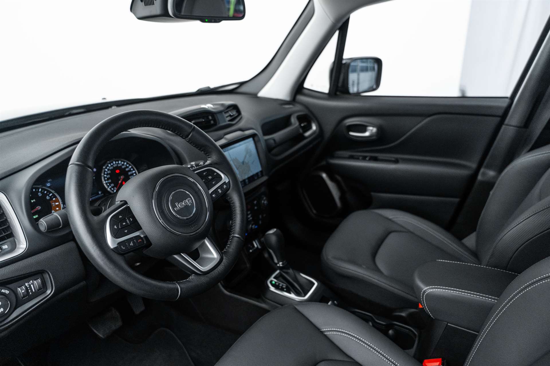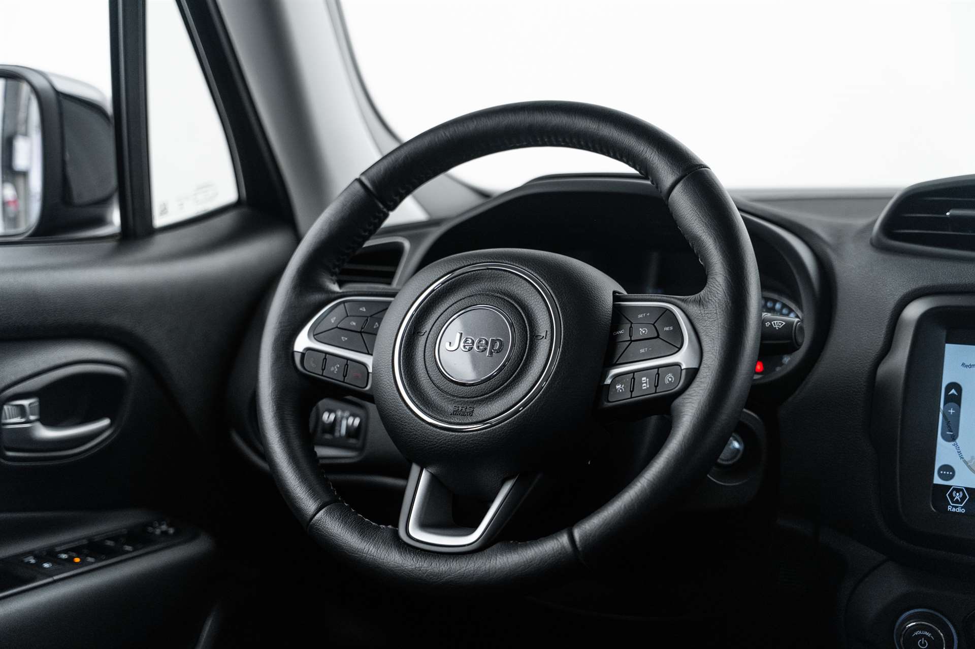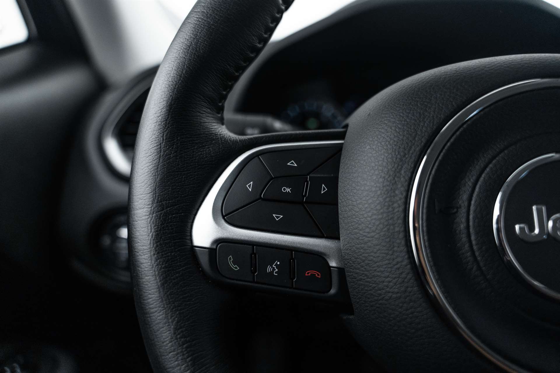 Airbag: Airbag Beifahrer deaktivierbar, Airbag: Airbags der neusten Generation (Front, Seiten, Kopf), Anhängerstabilisierung (gleicht Schwankbewegungen des Anhängers aus), Antiblockiersystem (ABS), Assist: All Speed Traction Control, Assist: Geschwindigkeitsbegrenzer, Assist: Notbremssystem (Brake Assistance System), Assist: ParkView Rückfahrkamera mit dynamischen Führungslinien, Assist: Spurhalteassistent Lane Assist, Assist: Tempomat, Elektrisch verstellbare und beheizte Aussenspiegel, Elektrische Fensterheber vorne, Elektronische Parkbremse, Elektronisches Stabilitätsprogramm (ESP), Garantie: 3 Jahre oder 100'000 km, Garantie: Durchrostungsgarantie 7 Jahre, Gepäckraumabdeckung, Getriebe: 7-Gang DDCT, ISOFIX Kindersitzvorrichtung, Klima: Automatische 2-Zonen-Klimaanlage, Lackierung: Pastell Lackierung Solid Black, Lenkrad: Beheiztes, höhen- und tiefenverstellbares Lederlenkrad, Lenkrad: Lenkrad mit integrierten Bedienelementen für Audiosystem, Licht: LED-Innenbeleuchtung, Licht: Scheinwerfer mit Dämmerungsfunktion, Media: Apple Carplay & Android Auto, Media: Kombiinstrument 10,25 Zoll-Digitalanzeige, Media: Soundsystem mit 6 Lautsprechern, Media: Uconnect Infotainment mit 10" Touchscreen, Digitalradio (DAB) und Bluetooth, Media: USB-A Anschluss vorne und hinten/USB-C & AUX Anschluss vorne, Polster: Stoffsitze, Räder: 16" Aluminiumfelgen Renegade, Räder: Fix & Go Reifenreparaturkit, Räder: Reifendruck-Kontrollsystem, Scheibenwischer mit Regensensoren, Scheibenwischerenteiser, Servolenkung, Sitze: Fahrersitz 6-fach und Beifahrersitz 4-fach manuell einstellbar, Sitze: Fahrersitz mit 2-facher elektrischer Einstellung der Lordosenstütze, Sitze: Sitzheizung vorne, Spiegelkappen Schwarz, Umkehrbarer und höhenverstellbarer Kofferraum-Ladeboden, Wegfahrsperre elektronisch, Zentralverriegelung mit Fernbedienung
