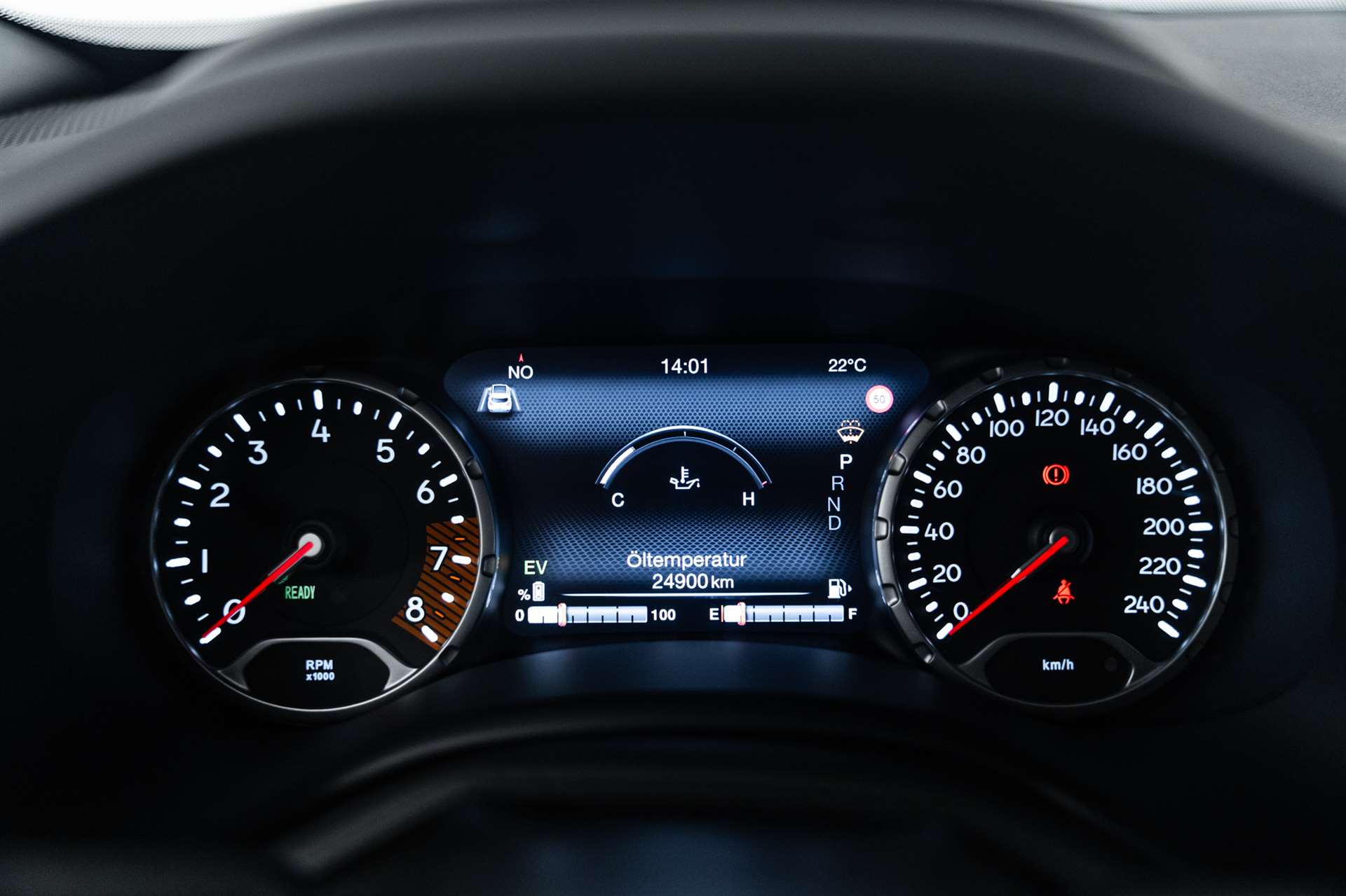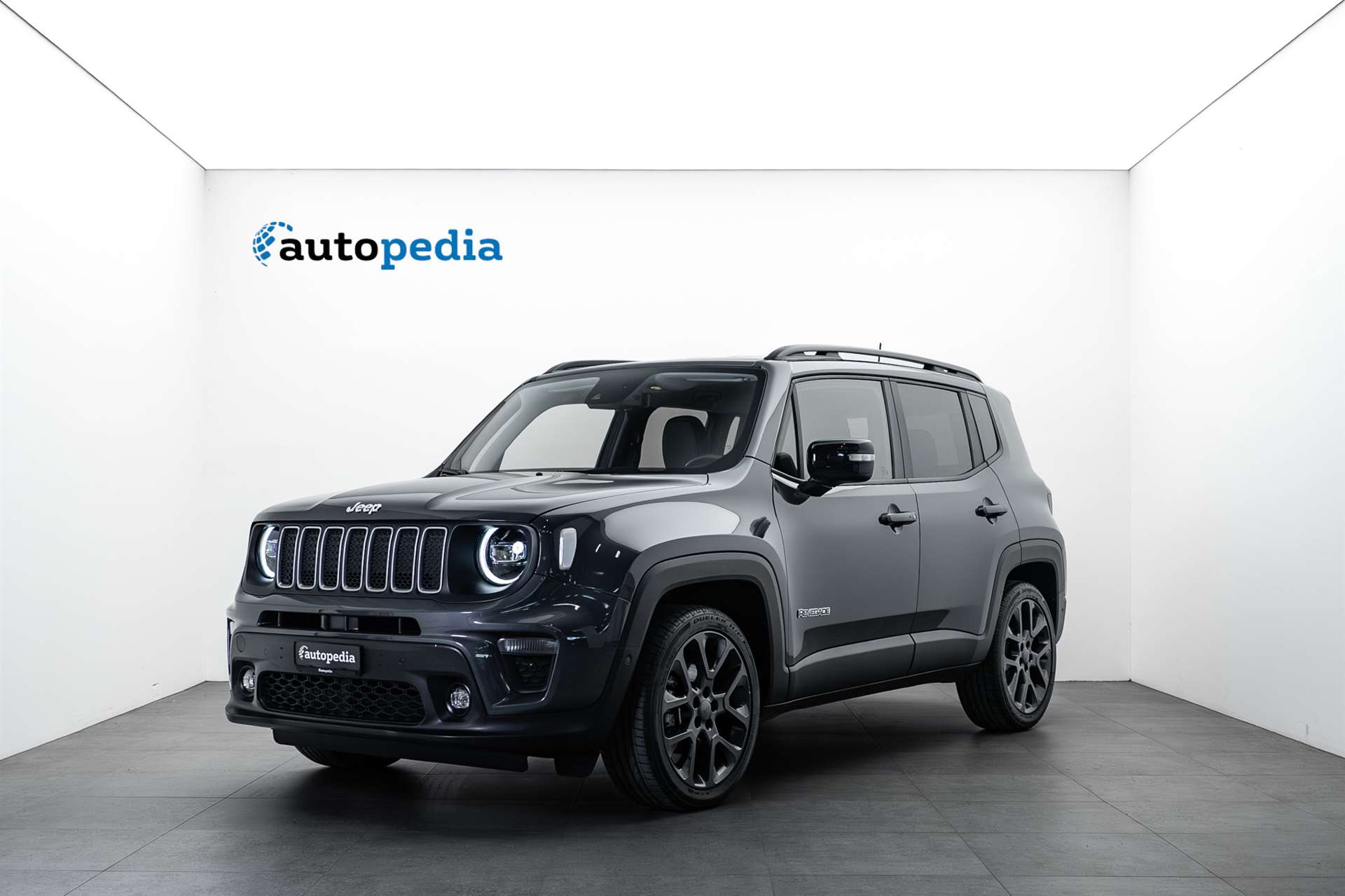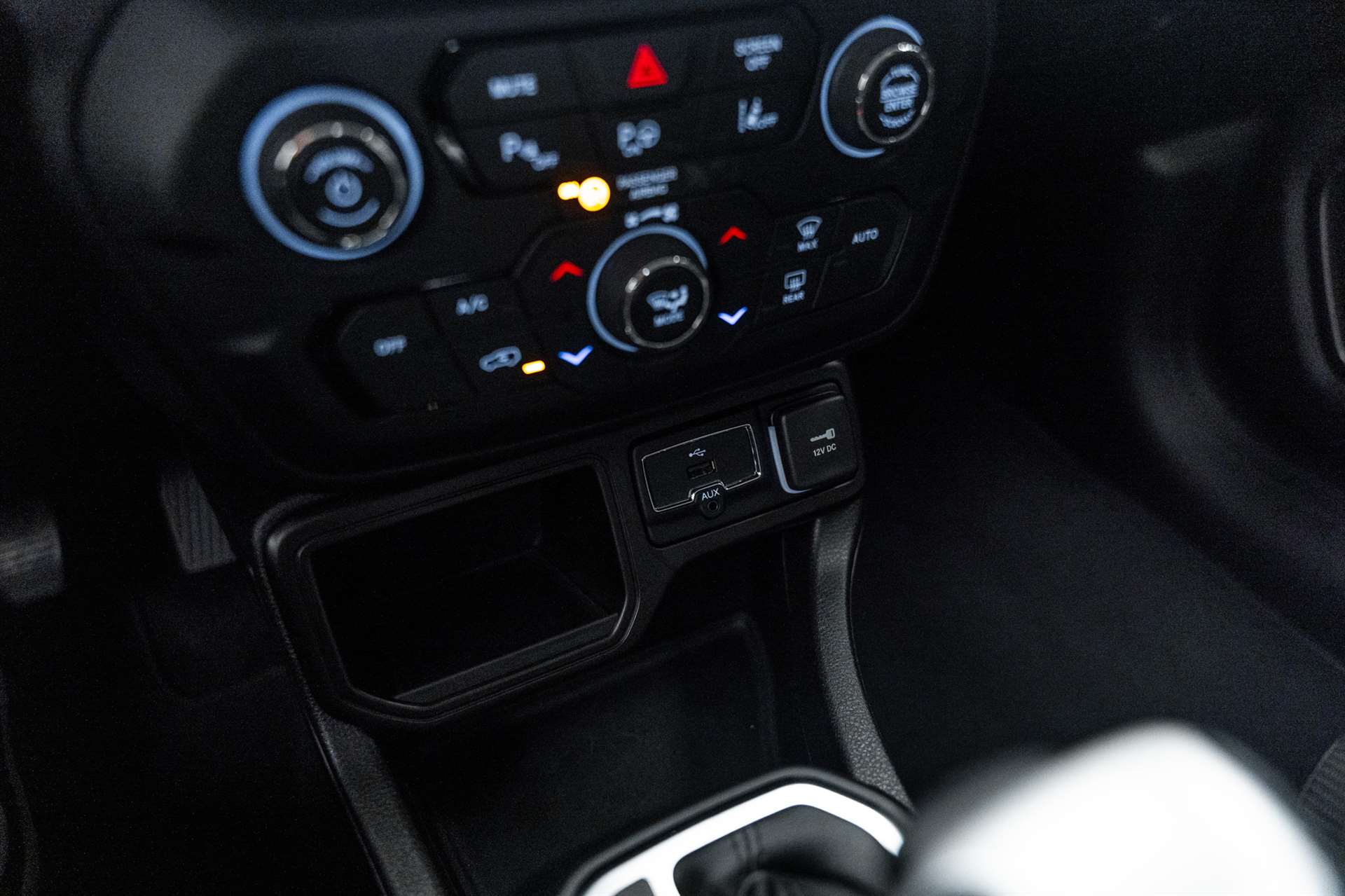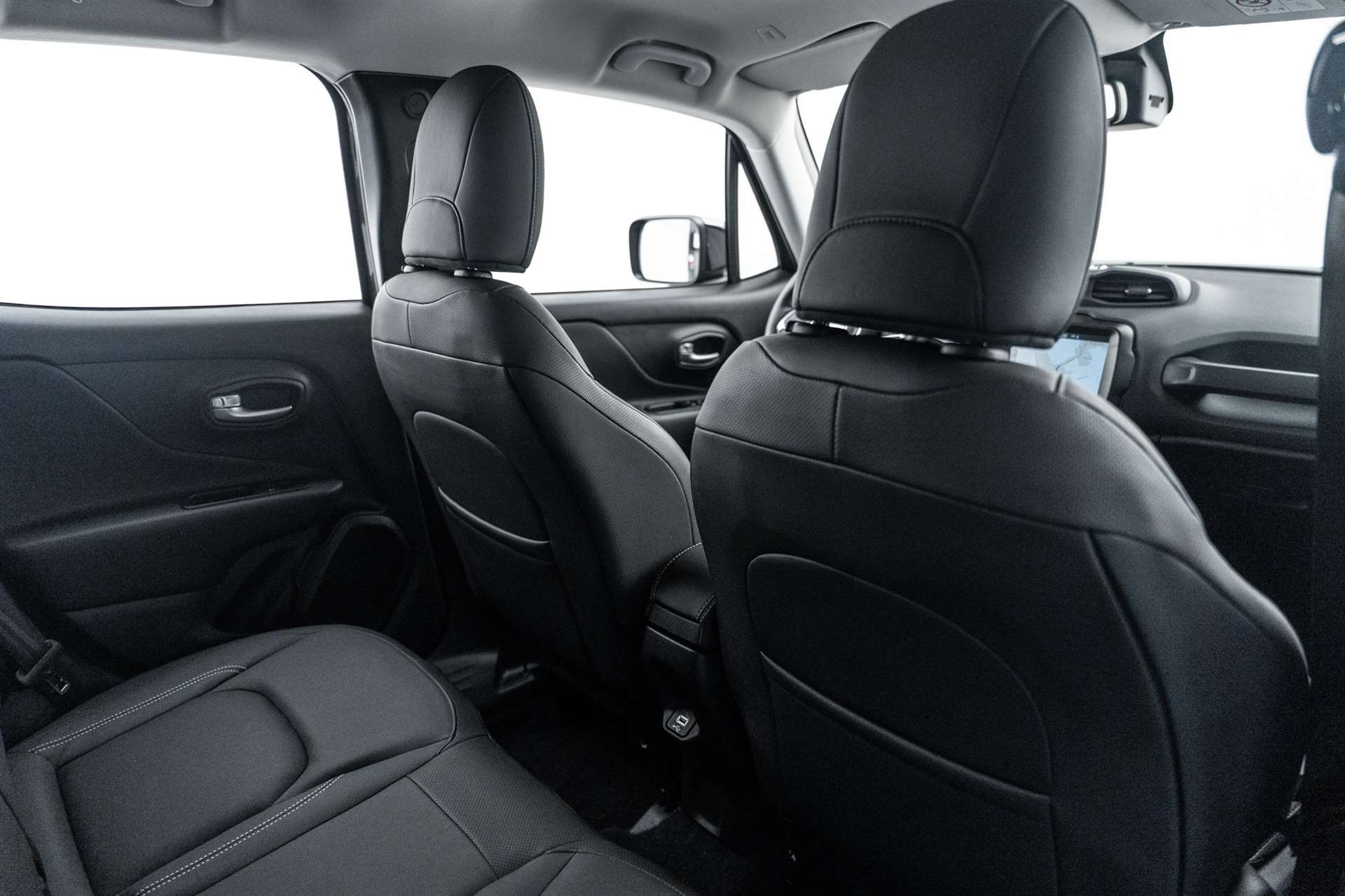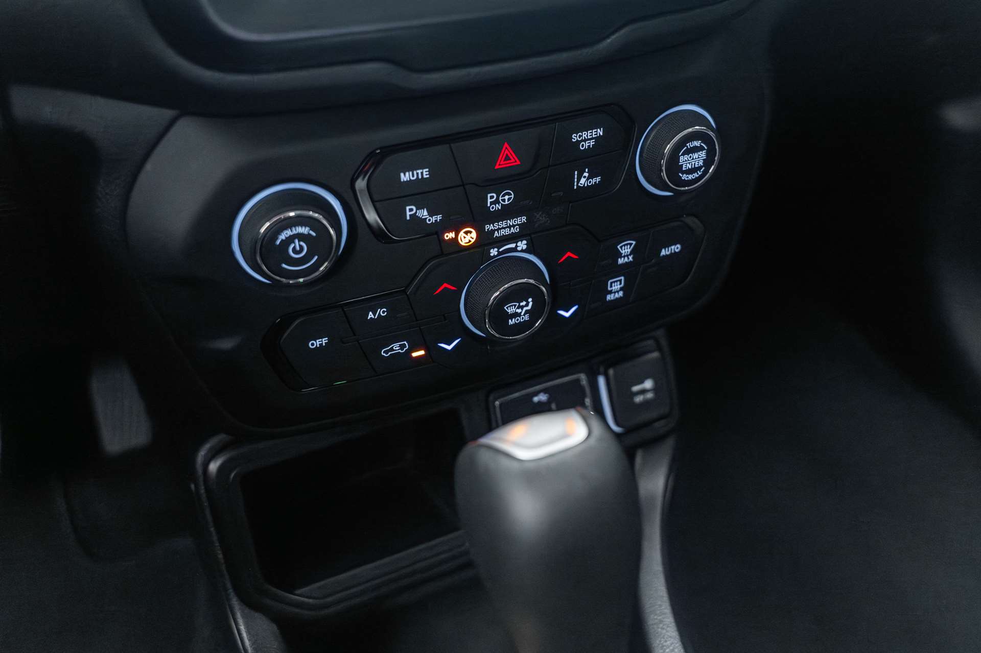 Airbag: Airbag Beifahrer deaktivierbar, Airbag: Airbags der neusten Generation (Front, Seiten, Kopf), Anhängerstabilisierung (gleicht Schwankbewegungen des Anhängers aus), Antiblockiersystem (ABS), Assist: All Speed Traction Control, Assist: Geschwindigkeitsbegrenzer, Assist: Notbremssystem (Brake Assistance System), Assist: ParkView Rückfahrkamera mit dynamischen Führungslinien, Assist: Spurhalteassistent Lane Assist, Assist: Tempomat, Elektrisch verstellbare und beheizte Aussenspiegel, Elektrische Fensterheber vorne, Elektronische Parkbremse, Elektronisches Stabilitätsprogramm (ESP), Garantie: 3 Jahre oder 100'000 km, Garantie: Durchrostungsgarantie 7 Jahre, Gepäckraumabdeckung, Getriebe: 7-Gang DDCT, ISOFIX Kindersitzvorrichtung, Klima: Automatische 2-Zonen-Klimaanlage, Lackierung: Pastell Lackierung Solid Black, Lenkrad: Beheiztes, höhen- und tiefenverstellbares Lederlenkrad, Lenkrad: Lenkrad mit integrierten Bedienelementen für Audiosystem, Licht: LED-Innenbeleuchtung, Licht: Scheinwerfer mit Dämmerungsfunktion, Media: Apple Carplay & Android Auto, Media: Kombiinstrument 10,25 Zoll-Digitalanzeige, Media: Soundsystem mit 6 Lautsprechern, Media: Uconnect Infotainment mit 10" Touchscreen, Digitalradio (DAB) und Bluetooth, Media: USB-A Anschluss vorne und hinten/USB-C & AUX Anschluss vorne, Polster: Stoffsitze, Räder: 16" Aluminiumfelgen Renegade, Räder: Fix & Go Reifenreparaturkit, Räder: Reifendruck-Kontrollsystem, Scheibenwischer mit Regensensoren, Scheibenwischerenteiser, Servolenkung, Sitze: Fahrersitz 6-fach und Beifahrersitz 4-fach manuell einstellbar, Sitze: Fahrersitz mit 2-facher elektrischer Einstellung der Lordosenstütze, Sitze: Sitzheizung vorne, Spiegelkappen Schwarz, Umkehrbarer und höhenverstellbarer Kofferraum-Ladeboden, Wegfahrsperre elektronisch, Zentralverriegelung mit Fernbedienung