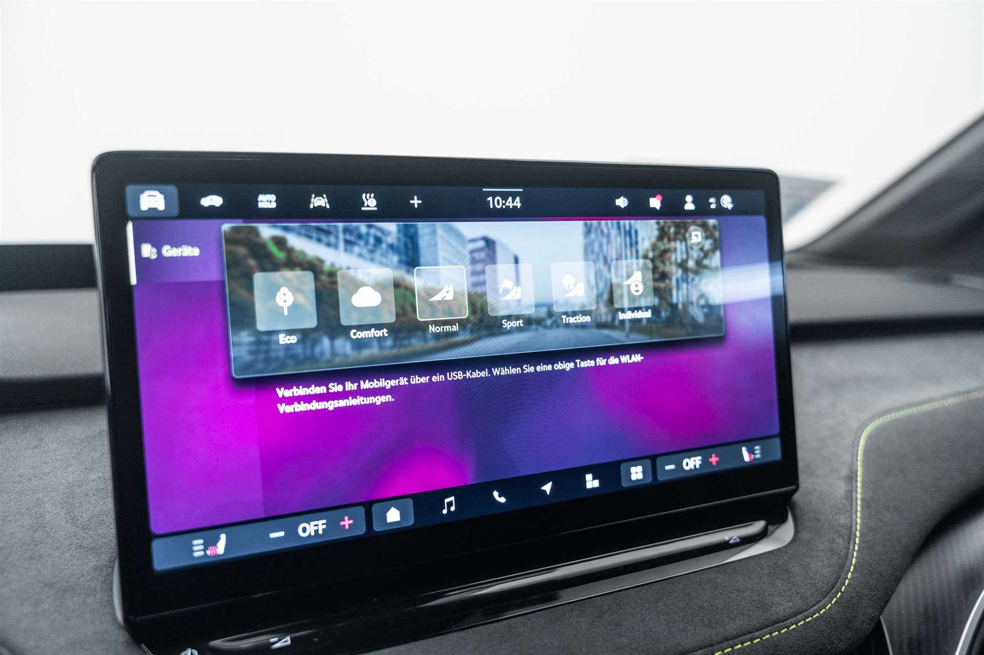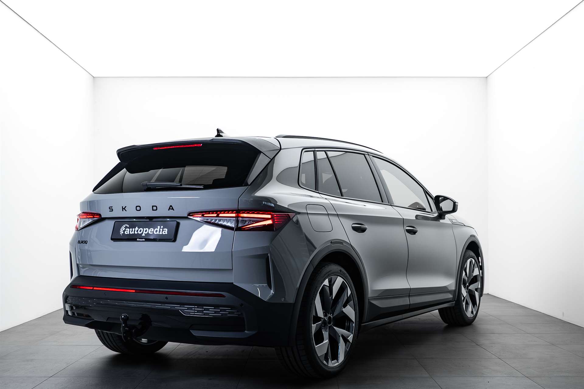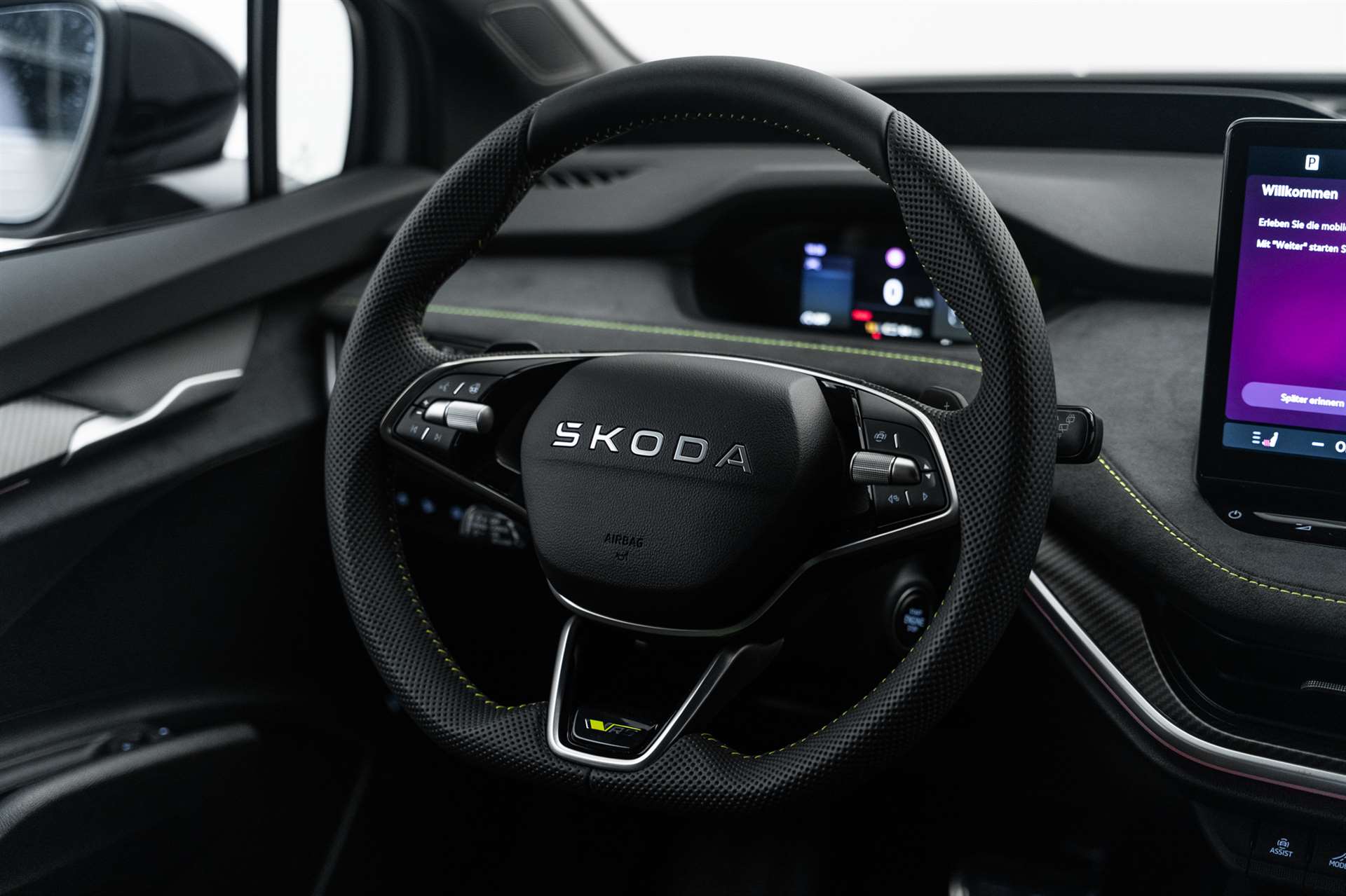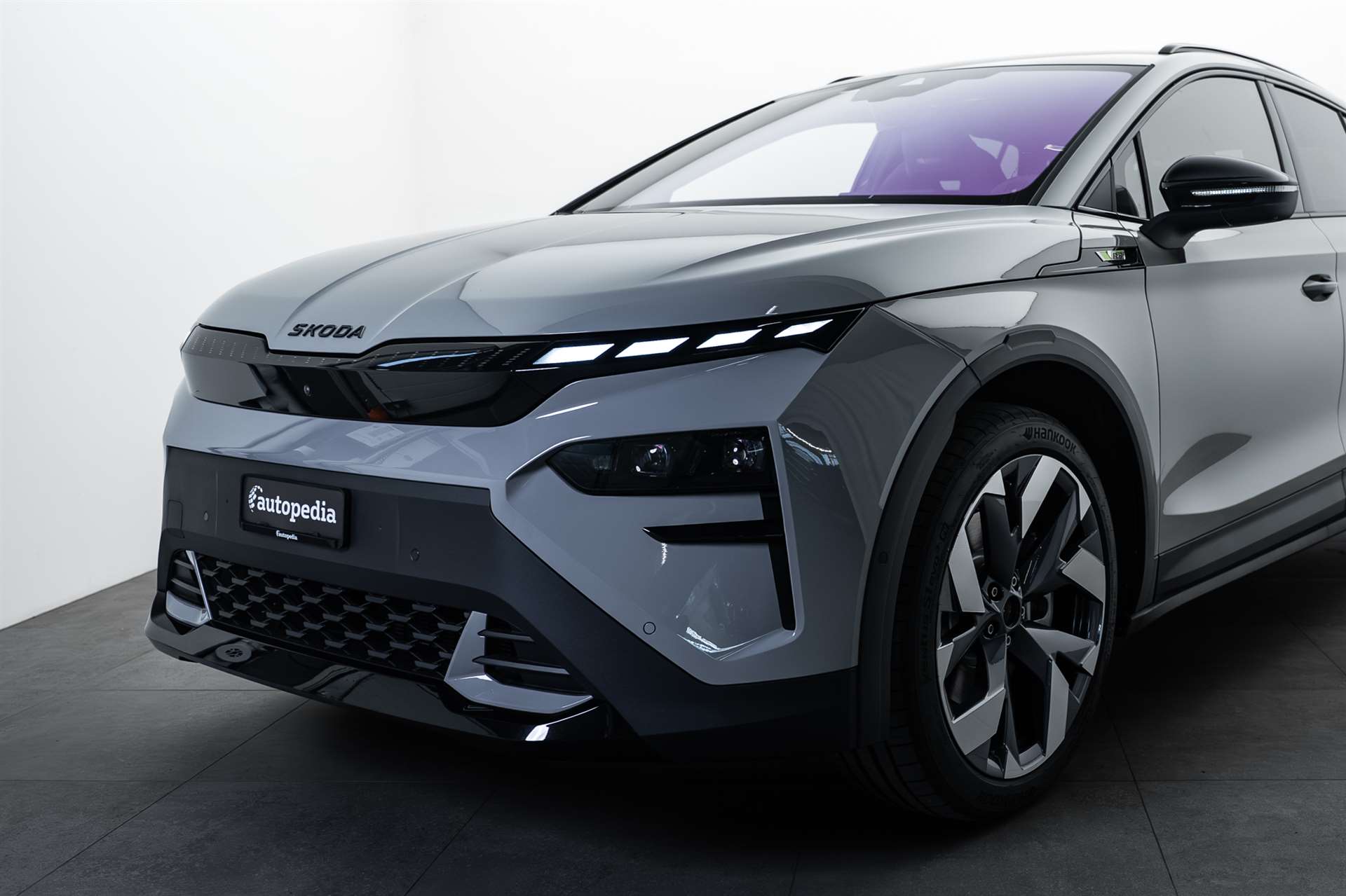 3-Punkt-Sicherheitsgurte auf allen Plätzen, Ablagekasten im Fond, Ablagekasten im Fond, Ablagekasten im Kofferraum in der Seitenverkleidung (links und rechts), ABS, EBD elektronische Bremskraftverteilung, AC Batterieladung bis 11 kW, Airbag: Airbag Beifahrer deaktivierbar, Airbag: Airbag Fahrer und Beifahrer, Airbag: Kopf- und Zentralairbag vorne (zwischen Fahrer- und Beifahrersitz), Akustikpaket mit SunSet, Allradantrieb permanent, Assist: Abbiegeassistent mit Gegenverkehr Warnung, Assist: Ablenkungs- und Müdigkeitserkennung, Assist: Adaptive Geschwindigkeitsregelanlage "Adaptive Cruise Control", Assist: Adaptiver Spurhalteassistent "Lane Assist" mit Stau- und Notbremsassistent, Assist: Emergency Call (Notruf), Assist: Fahrassistent"Travel Assist 2.6"mit Geschwindigkeitsregelanlage"Predictive Cruise Control", Assist: Insassenschutzsystem "Crew Protect Assistant" vorne, hinten und auf beiden Seiten, Assist: Memory-Funktion für Parkassistent, Assist: Notbremsassistent "Front Assist", Assist: Parkassistent mit ferngesteuerter Parkfunktion "Remote Park Assist", Assist: Parksensoren vorne und hinten, Assist: Prädiktive Geschwindigkeitswarnanlage, Assist: Rückfahrkamera, Assist: Spurwechselassistent "Side Assist", Assist: Umgebungkamera "Area View", Assist: Verkehrszeichenerkennung, Aussenspiegel elektrisch anklappbar mit automatischer Abblendung (nur Fahrerseite)und Memoryfunktion, Aussenspiegel elektrisch anklappbar mit automatischer Abblendung (nur Fahrerseite)und Memoryfunktion, Aussenspiegel elektrisch einstell- und beheizbar, Beleuchtetes Tech-Deck, Bordcomputer, Dachreling schwarz hochglanz, DC Batterieladung bis 185 kW, Design Selection RS, Diebstahlalarmanlage, Innenraumüberwachung, Back-Up-Horn und Abschleppschutz, Drittes Bremslicht, Ebener Ladeboden im Kofferraum mit Multifunktionsablage, Ebener Ladeboden im Kofferraum mit Multifunktionsablage, Elektrische Fensterheber vorne + hinten, Elektrische Kindersicherung, Elektronische Parkbremse, Elektronisches Stabilitäts-Programm (ESP), Fahrprofilauswahl- "Driving Mode Selection", Fahrwerk: Adaptive Fahrwerksregelung "DCC - Dynamic Chassis Control Plus" inkl. "Driving Mode Select, Fahrwerk: Progressivlenkung, Fenster Zierleisten in Schwarz hochglanz, Frontscheibenheizung, Getriebe: 1-Gang Getriebe, Gurtanlegesignalisation für alle Passagiere, Head-up Display mit Augmented-Reality-Technologie, Heckklappe mit berührungsloser Öffnung "Virtual Pedal", Heckscheiben-Wisch-/Waschanlage mit Iinterval, Heckscheibenheizung, Heckspoiler, Innenspiegel automatisch abblendbar, Kindersicherung manuell einstellbar, Klima: Klimaanlage "Climatronic", 2-Zonen-Temperaturregelung, vollautomatisch, getrennt regelbar, Klima: Klimaanlage "Climatronic", 3-Zonen-Temperaturregelung, vollautomatisch, getrennt regelbar, Klima: Klimaanlage "Climatronic", 3-Zonen-Temperaturregelung, vollautomatisch, getrennt regelbar, Kofferraumabdeckung, herausnehmbar mit Multifunktionstasche, Kofferraummatte doppelseitig (Teppich/gummiert), Kofferraummatte doppelseitig (Teppich/gummiert), Lackierung: Uni-Lackierung, Ladekabel für AC-Normalladen bis zu 11 kW, Typ2-Stecker, Lenkrad: Sport-Leder-Multifunktionslenkrad 3-Speichen mit Schaltwippen, beheizbar, Lenkrad: Sport-Leder-Multifunktionslenkrad 3-Speichen mit Schaltwippen, beheizbar, Licht: LED Rückleuchten mit dynamischen Blinkern, Licht: Voll LED Scheinwerfer mit "Matrix-Beam-Funktion" mit AFS (Adaptive Frontlight System), Media: 2 USB-C Anschlüsse vorne und hinten, Media: 8 Lautsprecher, Media: DAB+ (Digital Audio Broadcasting), Media: Infotainment Online 3 Jahre + "Care Connect" (Remote Access [3 Jahr] und Proactive Services), Media: Infotainmentdisplay 13", Media: Navigationsfunktion, Media: SmartLink (CarPlay und Android Auto), Media: Soundsystem "CANTON" (11 Lautsprecher und Subwoofer im Kofferraum)), Media: Sprachsteuerung, Media: Telefonvorbereitung mit Bluetooth, Mittelkonsole mit Mittelarmlehne, Nebelschlussleuchte, Netzprogramm (Netzset im Kofferraum), Netzprogramm (Netzset im Kofferraum), Paket: ADVANCED, Paket: Driver Paket, Paket: PLUS, Paket: PLUS, Pedale in Aludesign, Phonebox und Wireless Charging, Räder: Leichtmetallräder 8J x 20" / 9J x 20" "Draconis" schwarz, Aero-Blenden, Räder: Pannenset (Kompressor und Flasche mit Dichtmittel, ohne Reserverad), Räder: Reifendruckkontrollsystem, Radlaufleisten nicht lackiert, Schliess- und Startsystem schlüssellos mit Safelock "Kessy Advanced" (Keyless Access), Sitze: 3 Kopfstützen hinten, Sitze: Fahrersitz elektrisch verstellbar mit Memory, Sitze: Fahrersitz elektrisch verstellbar mit Memory, Sitze: Fahrersitz mit Massagefunktion, Lendenwirbelstütze elektrisch einstellbar für Vordersitze, Sitze: Fahrersitz mit Massagefunktion, Lendenwirbelstütze elektrisch einstellbar für Vordersitze, Sitze: Lendenwirbelstütze elektrisch einstellbar für Vordersitze mit Massagefunktion, Sitze: Rücksitzbank ungeteilt, Rücksitzlehne geteilt umklappbar, Sitze: Vorbereitung für Kindersitzhalterung mit Sicherheitssystem ISOFIX auf dem Beifahrersitz, Sitze: Vorder- und Rücksitze Beheizbar, Sitze: Vordersitze elektrisch einstellbar mit Memoryfunktion, Sitze: Vordersitze heizbar, SKODA Garantie: Anschlussgarantie 1 Jahr, max. 100’000 km, SKODA Garantie: Garantie 12 Jahre gegen Durchrostungs (ab 1. Inv.), SKODA Garantie: Garantie 3 Jahre gegen Lackschäden (ab 1. Inv.), SKODA Garantie: Garantie 8 Jahre oder 160’000 km Garantie auf HV-Batterie, SKODA Garantie: Neuwagen-Garantie: 2 Jahre ohne Kilometerbegrenzung, Sonnenschutzrollo für Seitenscheiben hinten - mechanisch, Traction control (TCS), Vorbereitung für Anhängerkupplung, Wärmepumpe, Zentralverriegelung mit Fernbedienung
