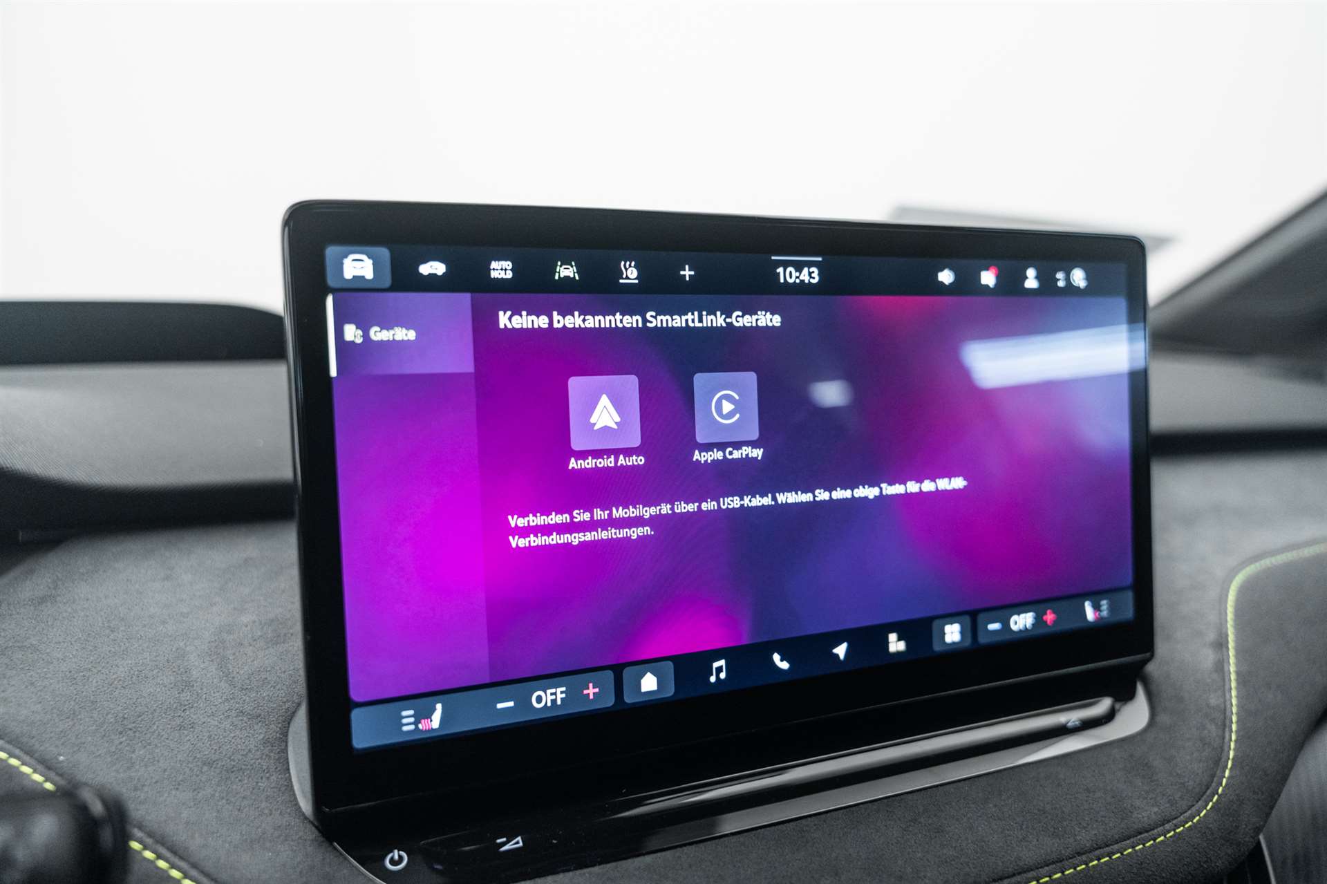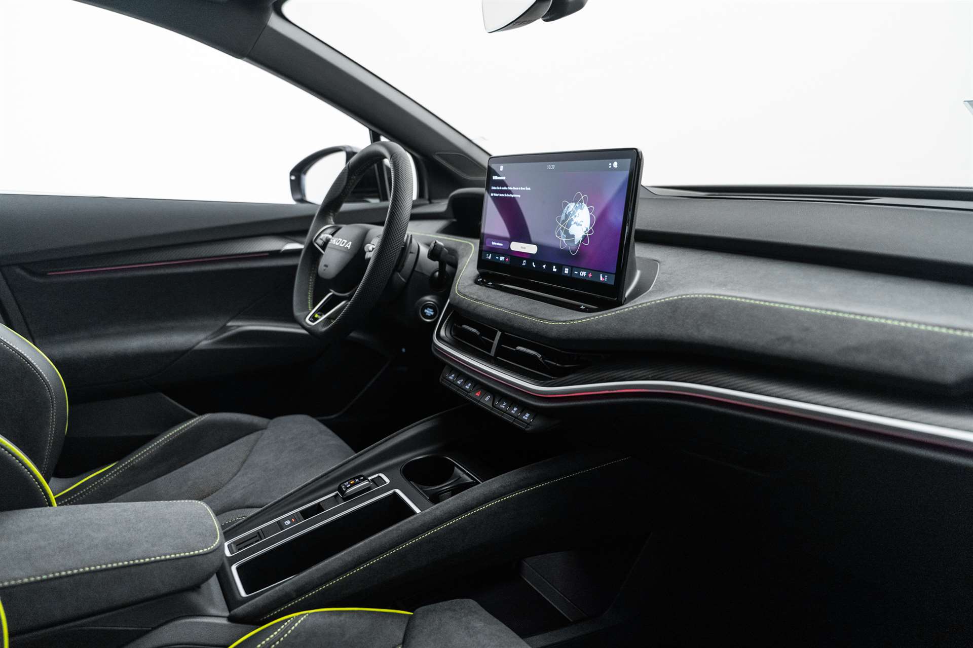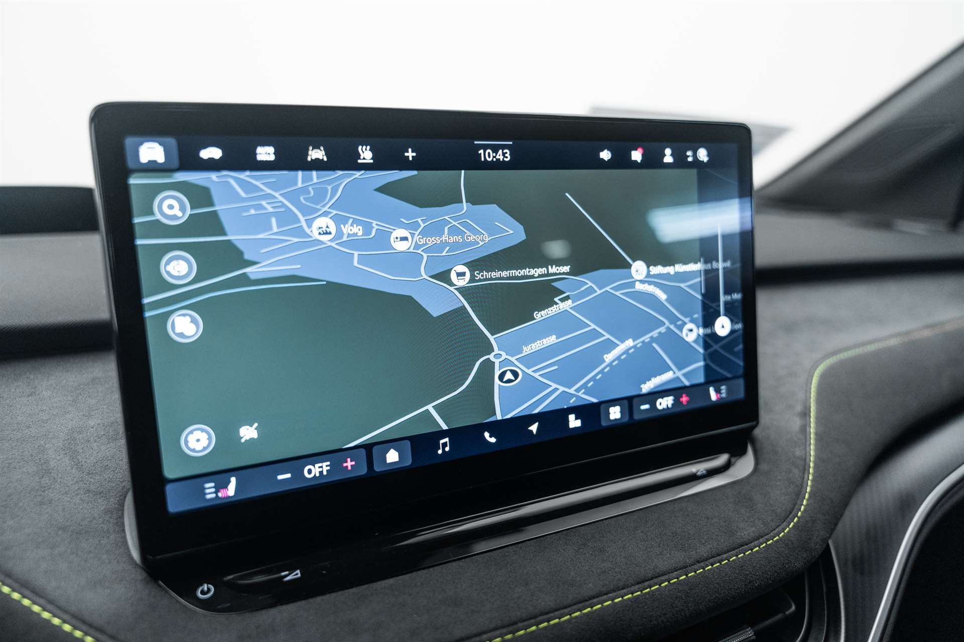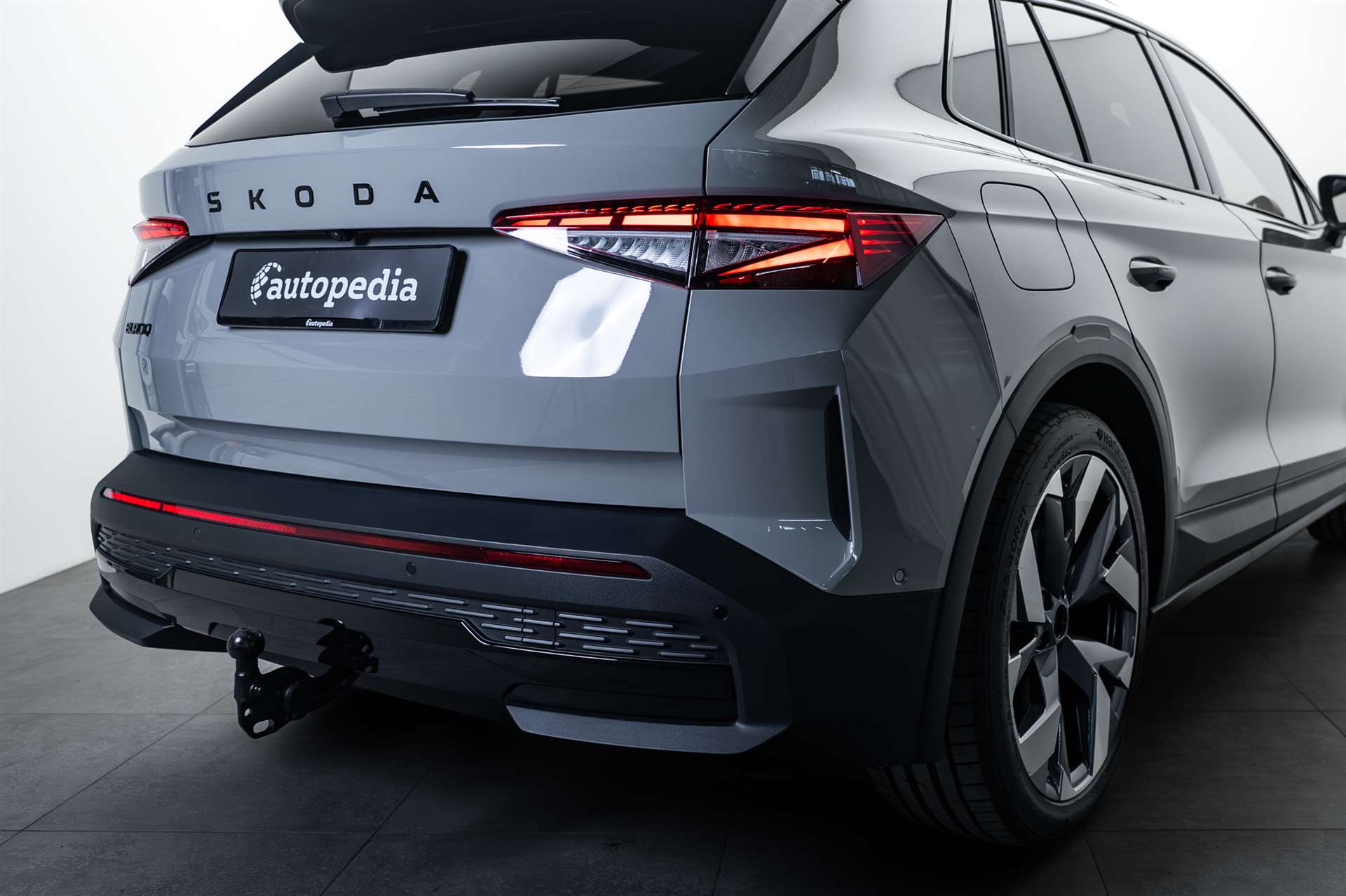 3-Punkt-Sicherheitsgurte auf allen Plätzen, Ablagekasten im Fond, Ablagekasten im Fond, Ablagekasten im Kofferraum in der Seitenverkleidung (links und rechts), ABS, EBD elektronische Bremskraftverteilung, AC Batterieladung bis 11 kW, Airbag: Airbag Beifahrer deaktivierbar, Airbag: Airbag Fahrer und Beifahrer, Airbag: Kopf- und Zentralairbag vorne (zwischen Fahrer- und Beifahrersitz), Akustikpaket mit SunSet, Allradantrieb permanent, Assist: Abbiegeassistent mit Gegenverkehr Warnung, Assist: Ablenkungs- und Müdigkeitserkennung, Assist: Adaptive Geschwindigkeitsregelanlage "Adaptive Cruise Control", Assist: Adaptiver Spurhalteassistent "Lane Assist" mit Stau- und Notbremsassistent, Assist: Emergency Call (Notruf), Assist: Fahrassistent"Travel Assist 2.6"mit Geschwindigkeitsregelanlage"Predictive Cruise Control", Assist: Insassenschutzsystem "Crew Protect Assistant" vorne, hinten und auf beiden Seiten, Assist: Memory-Funktion für Parkassistent, Assist: Notbremsassistent "Front Assist", Assist: Parkassistent mit ferngesteuerter Parkfunktion "Remote Park Assist", Assist: Parksensoren vorne und hinten, Assist: Prädiktive Geschwindigkeitswarnanlage, Assist: Rückfahrkamera, Assist: Spurwechselassistent "Side Assist", Assist: Umgebungkamera "Area View", Assist: Verkehrszeichenerkennung, Aussenspiegel elektrisch anklappbar mit automatischer Abblendung (nur Fahrerseite)und Memoryfunktion, Aussenspiegel elektrisch anklappbar mit automatischer Abblendung (nur Fahrerseite)und Memoryfunktion, Aussenspiegel elektrisch einstell- und beheizbar, Beleuchtetes Tech-Deck, Bordcomputer, Dachreling schwarz hochglanz, DC Batterieladung bis 185 kW, Design Selection RS, Diebstahlalarmanlage, Innenraumüberwachung, Back-Up-Horn und Abschleppschutz, Drittes Bremslicht, Ebener Ladeboden im Kofferraum mit Multifunktionsablage, Ebener Ladeboden im Kofferraum mit Multifunktionsablage, Elektrische Fensterheber vorne + hinten, Elektrische Kindersicherung, Elektronische Parkbremse, Elektronisches Stabilitäts-Programm (ESP), Fahrprofilauswahl- "Driving Mode Selection", Fahrwerk: Adaptive Fahrwerksregelung "DCC - Dynamic Chassis Control Plus" inkl. "Driving Mode Select, Fahrwerk: Progressivlenkung, Fenster Zierleisten in Schwarz hochglanz, Frontscheibenheizung, Getriebe: 1-Gang Getriebe, Gurtanlegesignalisation für alle Passagiere, Head-up Display mit Augmented-Reality-Technologie, Heckklappe mit berührungsloser Öffnung "Virtual Pedal", Heckscheiben-Wisch-/Waschanlage mit Iinterval, Heckscheibenheizung, Heckspoiler, Innenspiegel automatisch abblendbar, Kindersicherung manuell einstellbar, Klima: Klimaanlage "Climatronic", 2-Zonen-Temperaturregelung, vollautomatisch, getrennt regelbar, Klima: Klimaanlage "Climatronic", 3-Zonen-Temperaturregelung, vollautomatisch, getrennt regelbar, Klima: Klimaanlage "Climatronic", 3-Zonen-Temperaturregelung, vollautomatisch, getrennt regelbar, Kofferraumabdeckung, herausnehmbar mit Multifunktionstasche, Kofferraummatte doppelseitig (Teppich/gummiert), Kofferraummatte doppelseitig (Teppich/gummiert), Lackierung: Uni-Lackierung, Ladekabel für AC-Normalladen bis zu 11 kW, Typ2-Stecker, Lenkrad: Sport-Leder-Multifunktionslenkrad 3-Speichen mit Schaltwippen, beheizbar, Lenkrad: Sport-Leder-Multifunktionslenkrad 3-Speichen mit Schaltwippen, beheizbar, Licht: LED Rückleuchten mit dynamischen Blinkern, Licht: Voll LED Scheinwerfer mit "Matrix-Beam-Funktion" mit AFS (Adaptive Frontlight System), Media: 2 USB-C Anschlüsse vorne und hinten, Media: 8 Lautsprecher, Media: DAB+ (Digital Audio Broadcasting), Media: Infotainment Online 3 Jahre + "Care Connect" (Remote Access [3 Jahr] und Proactive Services), Media: Infotainmentdisplay 13", Media: Navigationsfunktion, Media: SmartLink (CarPlay und Android Auto), Media: Soundsystem "CANTON" (11 Lautsprecher und Subwoofer im Kofferraum)), Media: Sprachsteuerung, Media: Telefonvorbereitung mit Bluetooth, Mittelkonsole mit Mittelarmlehne, Nebelschlussleuchte, Netzprogramm (Netzset im Kofferraum), Netzprogramm (Netzset im Kofferraum), Paket: ADVANCED, Paket: Driver Paket, Paket: PLUS, Paket: PLUS, Pedale in Aludesign, Phonebox und Wireless Charging, Räder: Leichtmetallräder 8J x 20" / 9J x 20" "Draconis" schwarz, Aero-Blenden, Räder: Pannenset (Kompressor und Flasche mit Dichtmittel, ohne Reserverad), Räder: Reifendruckkontrollsystem, Radlaufleisten nicht lackiert, Schliess- und Startsystem schlüssellos mit Safelock "Kessy Advanced" (Keyless Access), Sitze: 3 Kopfstützen hinten, Sitze: Fahrersitz elektrisch verstellbar mit Memory, Sitze: Fahrersitz elektrisch verstellbar mit Memory, Sitze: Fahrersitz mit Massagefunktion, Lendenwirbelstütze elektrisch einstellbar für Vordersitze, Sitze: Fahrersitz mit Massagefunktion, Lendenwirbelstütze elektrisch einstellbar für Vordersitze, Sitze: Lendenwirbelstütze elektrisch einstellbar für Vordersitze mit Massagefunktion, Sitze: Rücksitzbank ungeteilt, Rücksitzlehne geteilt umklappbar, Sitze: Vorbereitung für Kindersitzhalterung mit Sicherheitssystem ISOFIX auf dem Beifahrersitz, Sitze: Vorder- und Rücksitze Beheizbar, Sitze: Vordersitze elektrisch einstellbar mit Memoryfunktion, Sitze: Vordersitze heizbar, SKODA Garantie: Anschlussgarantie 1 Jahr, max. 100’000 km, SKODA Garantie: Garantie 12 Jahre gegen Durchrostungs (ab 1. Inv.), SKODA Garantie: Garantie 3 Jahre gegen Lackschäden (ab 1. Inv.), SKODA Garantie: Garantie 8 Jahre oder 160’000 km Garantie auf HV-Batterie, SKODA Garantie: Neuwagen-Garantie: 2 Jahre ohne Kilometerbegrenzung, Sonnenschutzrollo für Seitenscheiben hinten - mechanisch, Traction control (TCS), Vorbereitung für Anhängerkupplung, Wärmepumpe, Zentralverriegelung mit Fernbedienung