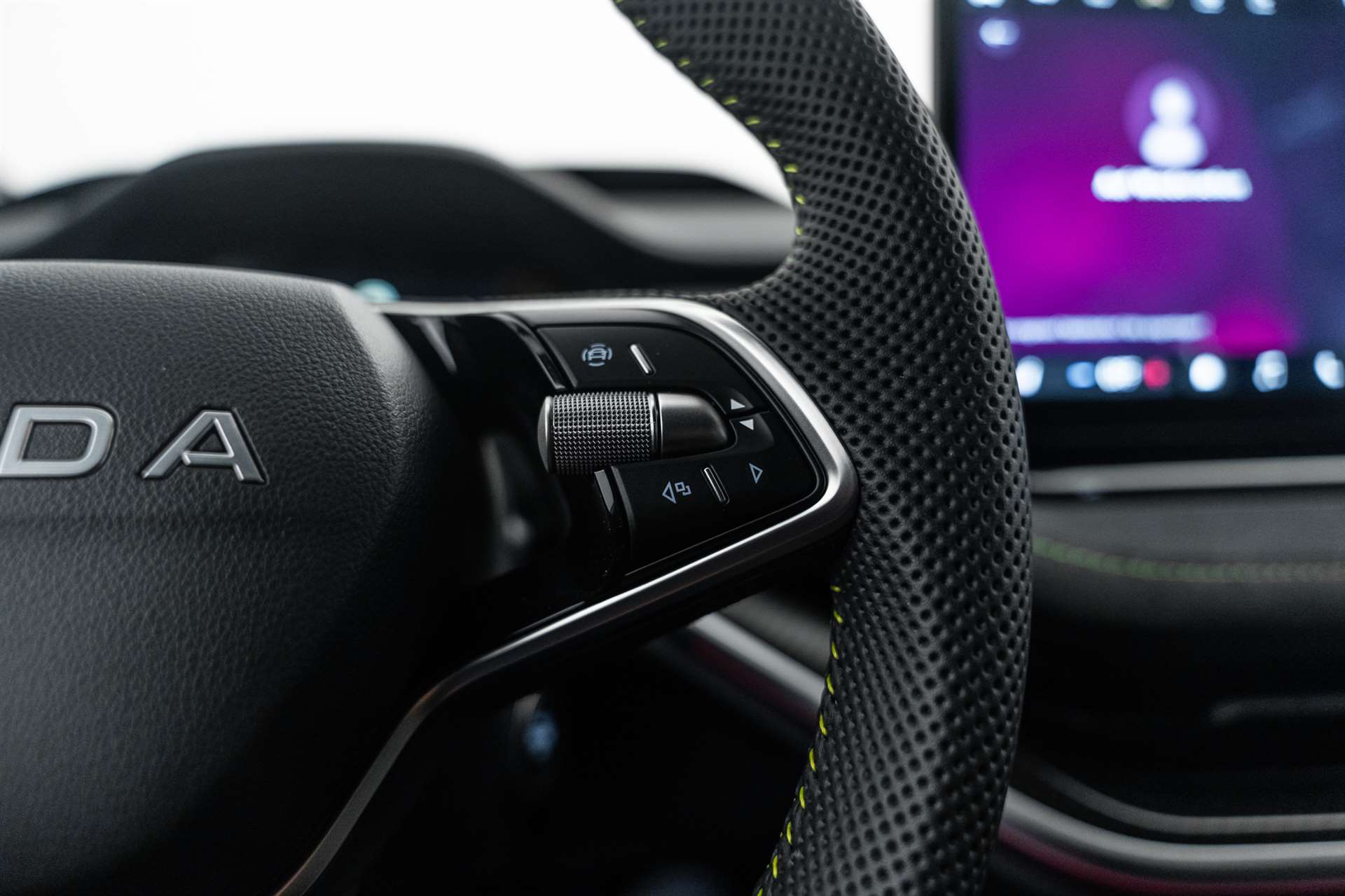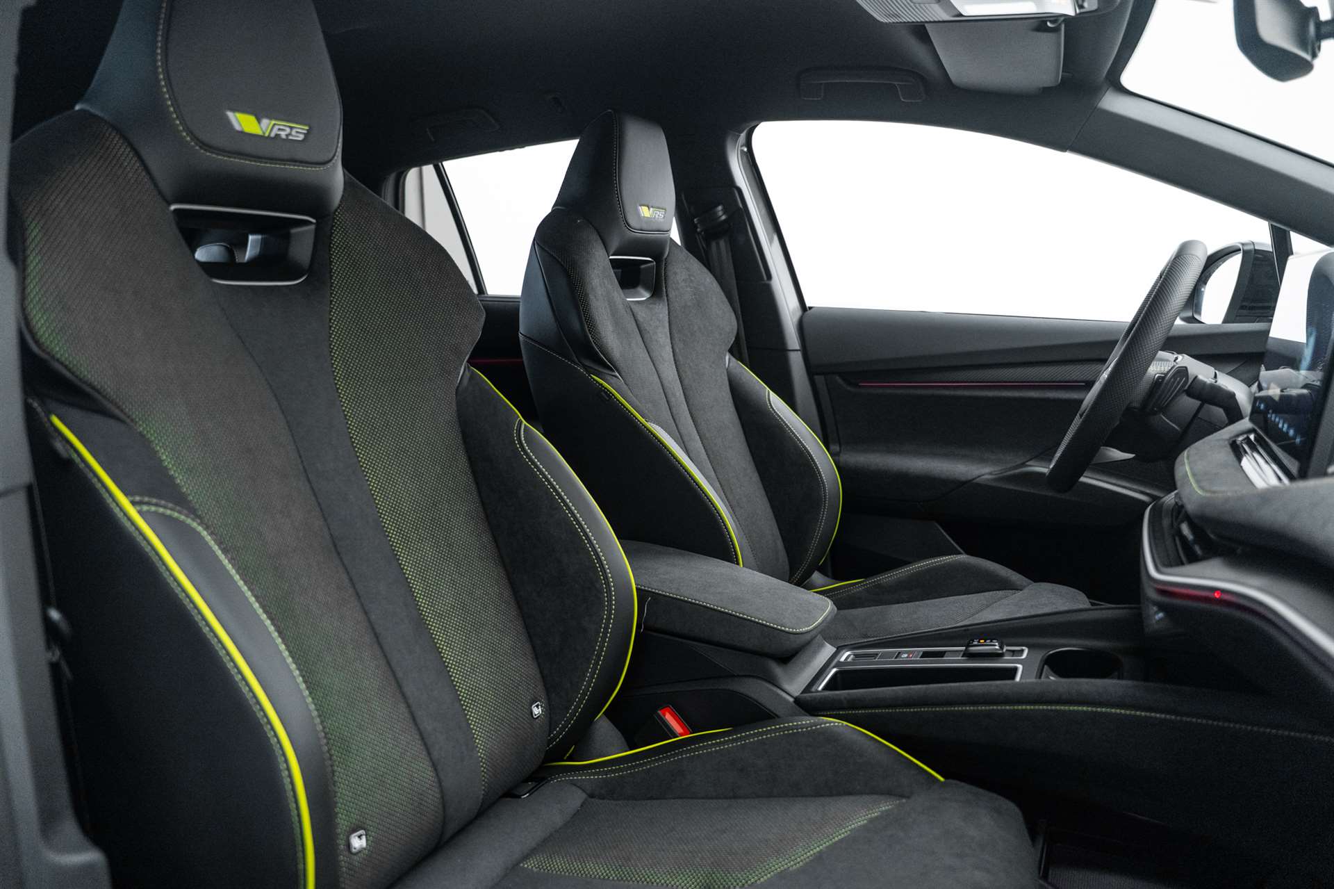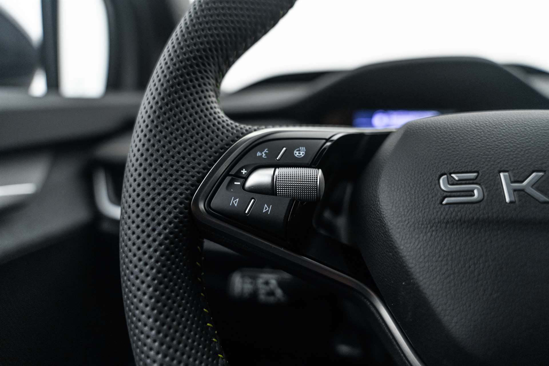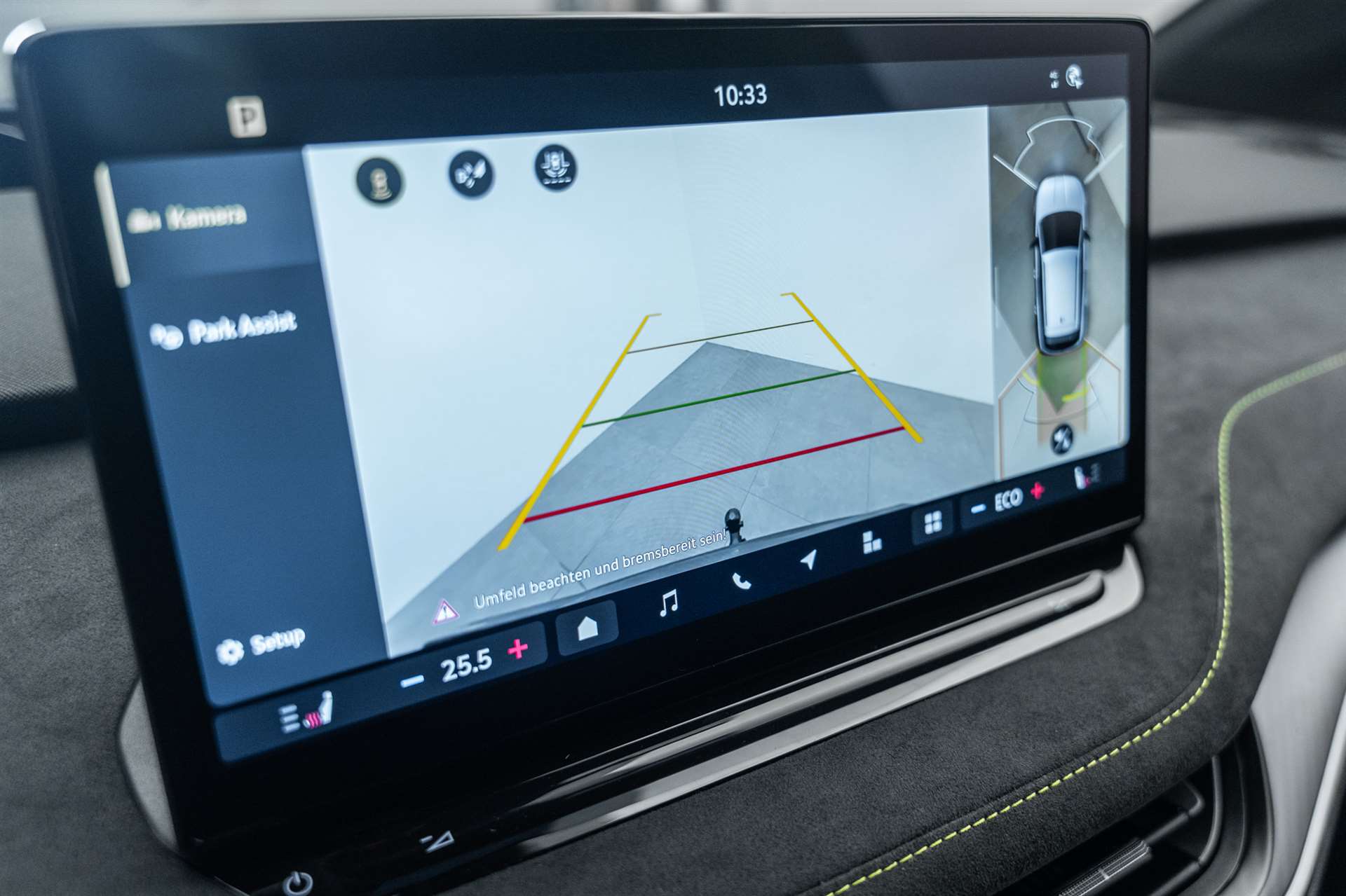 3-Punkt-Sicherheitsgurte auf allen Plätzen, Ablagekasten im Fond, Ablagekasten im Fond, Ablagekasten im Kofferraum in der Seitenverkleidung (links und rechts), ABS, EBD elektronische Bremskraftverteilung, AC Batterieladung bis 11 kW, Airbag: Airbag Beifahrer deaktivierbar, Airbag: Airbag Fahrer und Beifahrer, Airbag: Kopf- und Zentralairbag vorne (zwischen Fahrer- und Beifahrersitz), Akustikpaket mit SunSet, Allradantrieb permanent, Assist: Abbiegeassistent mit Gegenverkehr Warnung, Assist: Ablenkungs- und Müdigkeitserkennung, Assist: Adaptive Geschwindigkeitsregelanlage "Adaptive Cruise Control", Assist: Adaptiver Spurhalteassistent "Lane Assist" mit Stau- und Notbremsassistent, Assist: Emergency Call (Notruf), Assist: Fahrassistent"Travel Assist 2.6"mit Geschwindigkeitsregelanlage"Predictive Cruise Control", Assist: Insassenschutzsystem "Crew Protect Assistant" vorne, hinten und auf beiden Seiten, Assist: Memory-Funktion für Parkassistent, Assist: Notbremsassistent "Front Assist", Assist: Parkassistent mit ferngesteuerter Parkfunktion "Remote Park Assist", Assist: Parksensoren vorne und hinten, Assist: Prädiktive Geschwindigkeitswarnanlage, Assist: Rückfahrkamera, Assist: Spurwechselassistent "Side Assist", Assist: Umgebungkamera "Area View", Assist: Verkehrszeichenerkennung, Aussenspiegel elektrisch anklappbar mit automatischer Abblendung (nur Fahrerseite)und Memoryfunktion, Aussenspiegel elektrisch anklappbar mit automatischer Abblendung (nur Fahrerseite)und Memoryfunktion, Aussenspiegel elektrisch einstell- und beheizbar, Beleuchtetes Tech-Deck, Bordcomputer, Dachreling schwarz hochglanz, DC Batterieladung bis 185 kW, Design Selection RS, Diebstahlalarmanlage, Innenraumüberwachung, Back-Up-Horn und Abschleppschutz, Drittes Bremslicht, Ebener Ladeboden im Kofferraum mit Multifunktionsablage, Ebener Ladeboden im Kofferraum mit Multifunktionsablage, Elektrische Fensterheber vorne + hinten, Elektrische Kindersicherung, Elektronische Parkbremse, Elektronisches Stabilitäts-Programm (ESP), Fahrprofilauswahl- "Driving Mode Selection", Fahrwerk: Adaptive Fahrwerksregelung "DCC - Dynamic Chassis Control Plus" inkl. "Driving Mode Select, Fahrwerk: Progressivlenkung, Fenster Zierleisten in Schwarz hochglanz, Frontscheibenheizung, Getriebe: 1-Gang Getriebe, Gurtanlegesignalisation für alle Passagiere, Head-up Display mit Augmented-Reality-Technologie, Heckklappe mit berührungsloser Öffnung "Virtual Pedal", Heckscheiben-Wisch-/Waschanlage mit Iinterval, Heckscheibenheizung, Heckspoiler, Innenspiegel automatisch abblendbar, Kindersicherung manuell einstellbar, Klima: Klimaanlage "Climatronic", 2-Zonen-Temperaturregelung, vollautomatisch, getrennt regelbar, Klima: Klimaanlage "Climatronic", 3-Zonen-Temperaturregelung, vollautomatisch, getrennt regelbar, Klima: Klimaanlage "Climatronic", 3-Zonen-Temperaturregelung, vollautomatisch, getrennt regelbar, Kofferraumabdeckung, herausnehmbar mit Multifunktionstasche, Kofferraummatte doppelseitig (Teppich/gummiert), Kofferraummatte doppelseitig (Teppich/gummiert), Lackierung: Uni-Lackierung, Ladekabel für AC-Normalladen bis zu 11 kW, Typ2-Stecker, Lenkrad: Sport-Leder-Multifunktionslenkrad 3-Speichen mit Schaltwippen, beheizbar, Lenkrad: Sport-Leder-Multifunktionslenkrad 3-Speichen mit Schaltwippen, beheizbar, Licht: LED Rückleuchten mit dynamischen Blinkern, Licht: Voll LED Scheinwerfer mit "Matrix-Beam-Funktion" mit AFS (Adaptive Frontlight System), Media: 2 USB-C Anschlüsse vorne und hinten, Media: 8 Lautsprecher, Media: DAB+ (Digital Audio Broadcasting), Media: Infotainment Online 3 Jahre + "Care Connect" (Remote Access [3 Jahr] und Proactive Services), Media: Infotainmentdisplay 13", Media: Navigationsfunktion, Media: SmartLink (CarPlay und Android Auto), Media: Soundsystem "CANTON" (11 Lautsprecher und Subwoofer im Kofferraum)), Media: Sprachsteuerung, Media: Telefonvorbereitung mit Bluetooth, Mittelkonsole mit Mittelarmlehne, Nebelschlussleuchte, Netzprogramm (Netzset im Kofferraum), Netzprogramm (Netzset im Kofferraum), Paket: ADVANCED, Paket: Driver Paket, Paket: PLUS, Paket: PLUS, Pedale in Aludesign, Phonebox und Wireless Charging, Räder: Leichtmetallräder 8J x 20" / 9J x 20" "Draconis" schwarz, Aero-Blenden, Räder: Pannenset (Kompressor und Flasche mit Dichtmittel, ohne Reserverad), Räder: Reifendruckkontrollsystem, Radlaufleisten nicht lackiert, Schliess- und Startsystem schlüssellos mit Safelock "Kessy Advanced" (Keyless Access), Sitze: 3 Kopfstützen hinten, Sitze: Fahrersitz elektrisch verstellbar mit Memory, Sitze: Fahrersitz elektrisch verstellbar mit Memory, Sitze: Fahrersitz mit Massagefunktion, Lendenwirbelstütze elektrisch einstellbar für Vordersitze, Sitze: Fahrersitz mit Massagefunktion, Lendenwirbelstütze elektrisch einstellbar für Vordersitze, Sitze: Lendenwirbelstütze elektrisch einstellbar für Vordersitze mit Massagefunktion, Sitze: Rücksitzbank ungeteilt, Rücksitzlehne geteilt umklappbar, Sitze: Vorbereitung für Kindersitzhalterung mit Sicherheitssystem ISOFIX auf dem Beifahrersitz, Sitze: Vorder- und Rücksitze Beheizbar, Sitze: Vordersitze elektrisch einstellbar mit Memoryfunktion, Sitze: Vordersitze heizbar, SKODA Garantie: Anschlussgarantie 1 Jahr, max. 100’000 km, SKODA Garantie: Garantie 12 Jahre gegen Durchrostungs (ab 1. Inv.), SKODA Garantie: Garantie 3 Jahre gegen Lackschäden (ab 1. Inv.), SKODA Garantie: Garantie 8 Jahre oder 160’000 km Garantie auf HV-Batterie, SKODA Garantie: Neuwagen-Garantie: 2 Jahre ohne Kilometerbegrenzung, Sonnenschutzrollo für Seitenscheiben hinten - mechanisch, Traction control (TCS), Vorbereitung für Anhängerkupplung, Wärmepumpe, Zentralverriegelung mit Fernbedienung