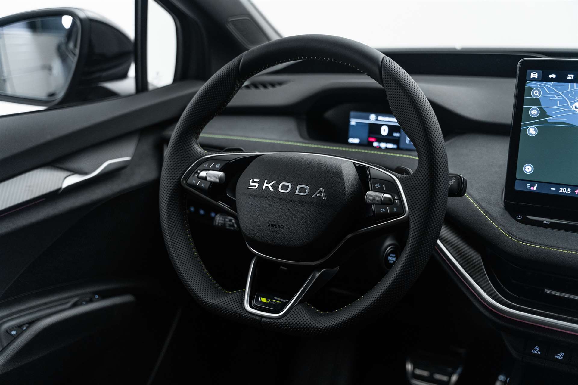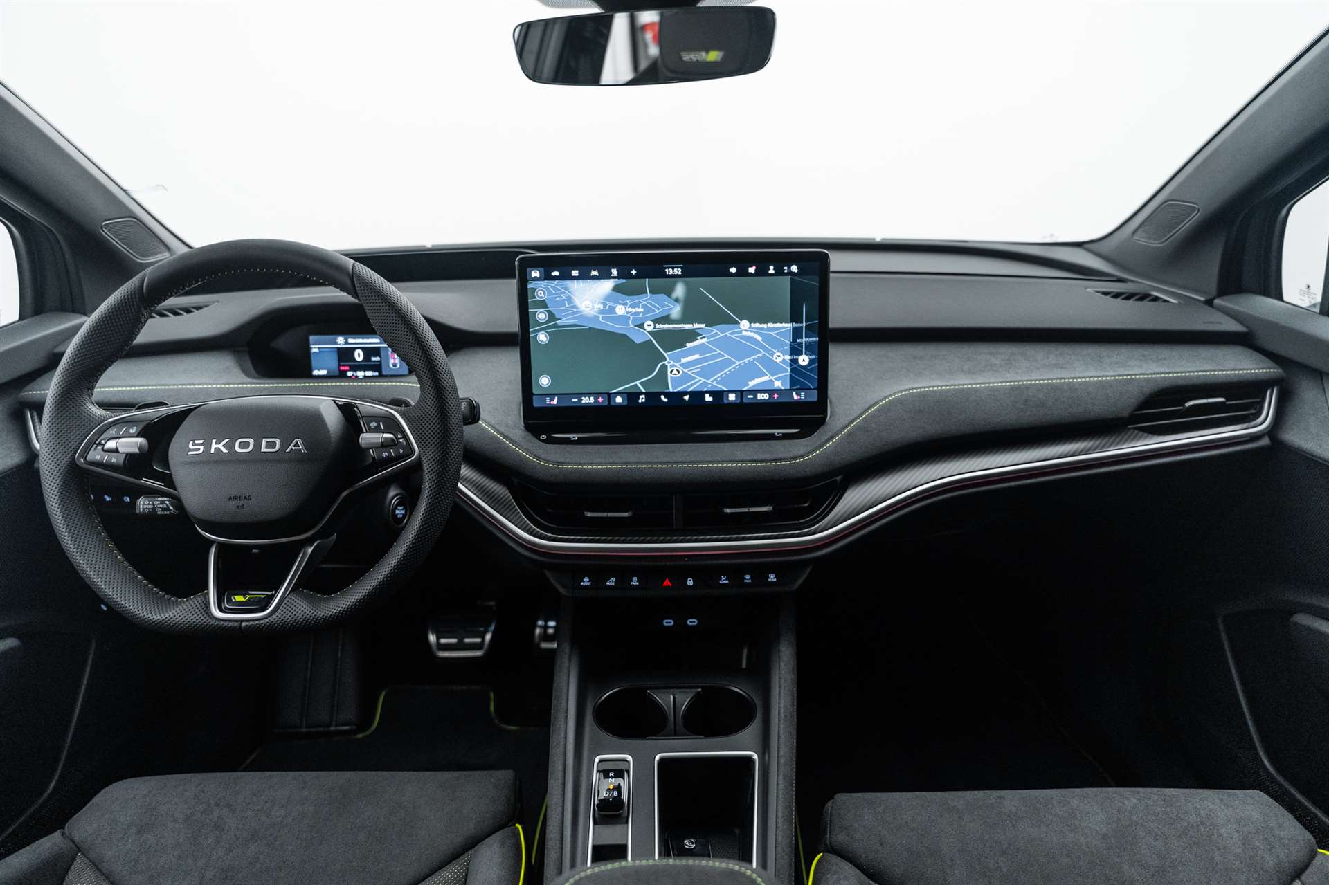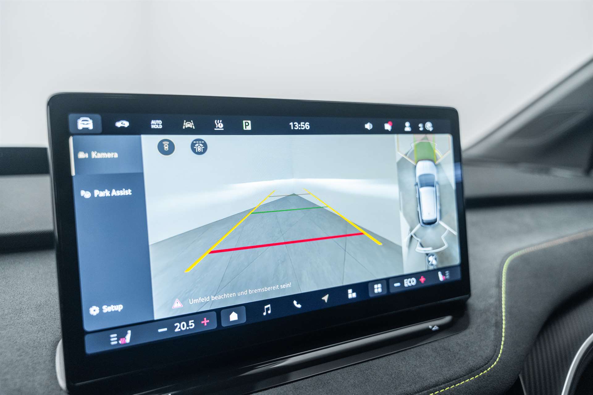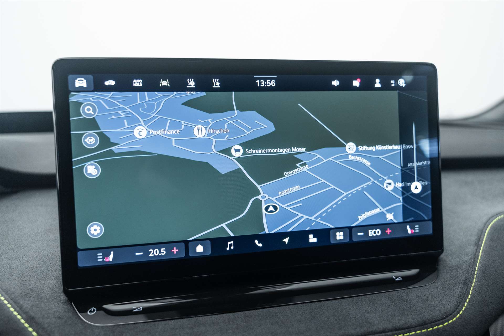 3-Punkt-Sicherheitsgurte auf allen Plätzen, Ablagekasten im Fond, Ablagekasten im Fond, Ablagekasten im Kofferraum in der Seitenverkleidung (links und rechts), ABS, EBD elektronische Bremskraftverteilung, AC Batterieladung bis 11 kW, Airbag: Airbag Beifahrer deaktivierbar, Airbag: Airbag Fahrer und Beifahrer, Airbag: Kopf- und Zentralairbag vorne (zwischen Fahrer- und Beifahrersitz), Akustikpaket mit SunSet, Allradantrieb permanent, Assist: Abbiegeassistent mit Gegenverkehr Warnung, Assist: Ablenkungs- und Müdigkeitserkennung, Assist: Adaptive Geschwindigkeitsregelanlage "Adaptive Cruise Control", Assist: Adaptiver Spurhalteassistent "Lane Assist" mit Stau- und Notbremsassistent, Assist: Emergency Call (Notruf), Assist: Fahrassistent"Travel Assist 2.6"mit Geschwindigkeitsregelanlage"Predictive Cruise Control", Assist: Insassenschutzsystem "Crew Protect Assistant" vorne, hinten und auf beiden Seiten, Assist: Memory-Funktion für Parkassistent, Assist: Notbremsassistent "Front Assist", Assist: Parkassistent mit ferngesteuerter Parkfunktion "Remote Park Assist", Assist: Parksensoren vorne und hinten, Assist: Prädiktive Geschwindigkeitswarnanlage, Assist: Rückfahrkamera, Assist: Spurwechselassistent "Side Assist", Assist: Umgebungkamera "Area View", Assist: Verkehrszeichenerkennung, Aussenspiegel elektrisch anklappbar mit automatischer Abblendung (nur Fahrerseite)und Memoryfunktion, Aussenspiegel elektrisch anklappbar mit automatischer Abblendung (nur Fahrerseite)und Memoryfunktion, Aussenspiegel elektrisch einstell- und beheizbar, Beleuchtetes Tech-Deck, Bordcomputer, Dachreling schwarz hochglanz, DC Batterieladung bis 185 kW, Design Selection RS, Diebstahlalarmanlage, Innenraumüberwachung, Back-Up-Horn und Abschleppschutz, Drittes Bremslicht, Ebener Ladeboden im Kofferraum mit Multifunktionsablage, Ebener Ladeboden im Kofferraum mit Multifunktionsablage, Elektrische Fensterheber vorne + hinten, Elektrische Kindersicherung, Elektronische Parkbremse, Elektronisches Stabilitäts-Programm (ESP), Fahrprofilauswahl- "Driving Mode Selection", Fahrwerk: Adaptive Fahrwerksregelung "DCC - Dynamic Chassis Control Plus" inkl. "Driving Mode Select, Fahrwerk: Progressivlenkung, Fenster Zierleisten in Schwarz hochglanz, Frontscheibenheizung, Getriebe: 1-Gang Getriebe, Gurtanlegesignalisation für alle Passagiere, Head-up Display mit Augmented-Reality-Technologie, Heckklappe mit berührungsloser Öffnung "Virtual Pedal", Heckscheiben-Wisch-/Waschanlage mit Iinterval, Heckscheibenheizung, Heckspoiler, Innenspiegel automatisch abblendbar, Kindersicherung manuell einstellbar, Klima: Klimaanlage "Climatronic", 2-Zonen-Temperaturregelung, vollautomatisch, getrennt regelbar, Klima: Klimaanlage "Climatronic", 3-Zonen-Temperaturregelung, vollautomatisch, getrennt regelbar, Klima: Klimaanlage "Climatronic", 3-Zonen-Temperaturregelung, vollautomatisch, getrennt regelbar, Kofferraumabdeckung, herausnehmbar mit Multifunktionstasche, Kofferraummatte doppelseitig (Teppich/gummiert), Kofferraummatte doppelseitig (Teppich/gummiert), Lackierung: Uni-Lackierung, Ladekabel für AC-Normalladen bis zu 11 kW, Typ2-Stecker, Lenkrad: Sport-Leder-Multifunktionslenkrad 3-Speichen mit Schaltwippen, beheizbar, Lenkrad: Sport-Leder-Multifunktionslenkrad 3-Speichen mit Schaltwippen, beheizbar, Licht: LED Rückleuchten mit dynamischen Blinkern, Licht: Voll LED Scheinwerfer mit "Matrix-Beam-Funktion" mit AFS (Adaptive Frontlight System), Media: 2 USB-C Anschlüsse vorne und hinten, Media: 8 Lautsprecher, Media: DAB+ (Digital Audio Broadcasting), Media: Infotainment Online 3 Jahre + "Care Connect" (Remote Access [3 Jahr] und Proactive Services), Media: Infotainmentdisplay 13", Media: Navigationsfunktion, Media: SmartLink (CarPlay und Android Auto), Media: Soundsystem "CANTON" (11 Lautsprecher und Subwoofer im Kofferraum)), Media: Sprachsteuerung, Media: Telefonvorbereitung mit Bluetooth, Mittelkonsole mit Mittelarmlehne, Nebelschlussleuchte, Netzprogramm (Netzset im Kofferraum), Netzprogramm (Netzset im Kofferraum), Paket: ADVANCED, Paket: Driver Paket, Paket: PLUS, Paket: PLUS, Pedale in Aludesign, Phonebox und Wireless Charging, Räder: Leichtmetallräder 8J x 20" / 9J x 20" "Draconis" schwarz, Aero-Blenden, Räder: Pannenset (Kompressor und Flasche mit Dichtmittel, ohne Reserverad), Räder: Reifendruckkontrollsystem, Radlaufleisten nicht lackiert, Schliess- und Startsystem schlüssellos mit Safelock "Kessy Advanced" (Keyless Access), Sitze: 3 Kopfstützen hinten, Sitze: Fahrersitz elektrisch verstellbar mit Memory, Sitze: Fahrersitz elektrisch verstellbar mit Memory, Sitze: Fahrersitz mit Massagefunktion, Lendenwirbelstütze elektrisch einstellbar für Vordersitze, Sitze: Fahrersitz mit Massagefunktion, Lendenwirbelstütze elektrisch einstellbar für Vordersitze, Sitze: Lendenwirbelstütze elektrisch einstellbar für Vordersitze mit Massagefunktion, Sitze: Rücksitzbank ungeteilt, Rücksitzlehne geteilt umklappbar, Sitze: Vorbereitung für Kindersitzhalterung mit Sicherheitssystem ISOFIX auf dem Beifahrersitz, Sitze: Vorder- und Rücksitze Beheizbar, Sitze: Vordersitze elektrisch einstellbar mit Memoryfunktion, Sitze: Vordersitze heizbar, SKODA Garantie: Anschlussgarantie 1 Jahr, max. 100’000 km, SKODA Garantie: Garantie 12 Jahre gegen Durchrostungs (ab 1. Inv.), SKODA Garantie: Garantie 3 Jahre gegen Lackschäden (ab 1. Inv.), SKODA Garantie: Garantie 8 Jahre oder 160’000 km Garantie auf HV-Batterie, SKODA Garantie: Neuwagen-Garantie: 2 Jahre ohne Kilometerbegrenzung, Sonnenschutzrollo für Seitenscheiben hinten - mechanisch, Traction control (TCS), Vorbereitung für Anhängerkupplung, Wärmepumpe, Zentralverriegelung mit Fernbedienung
