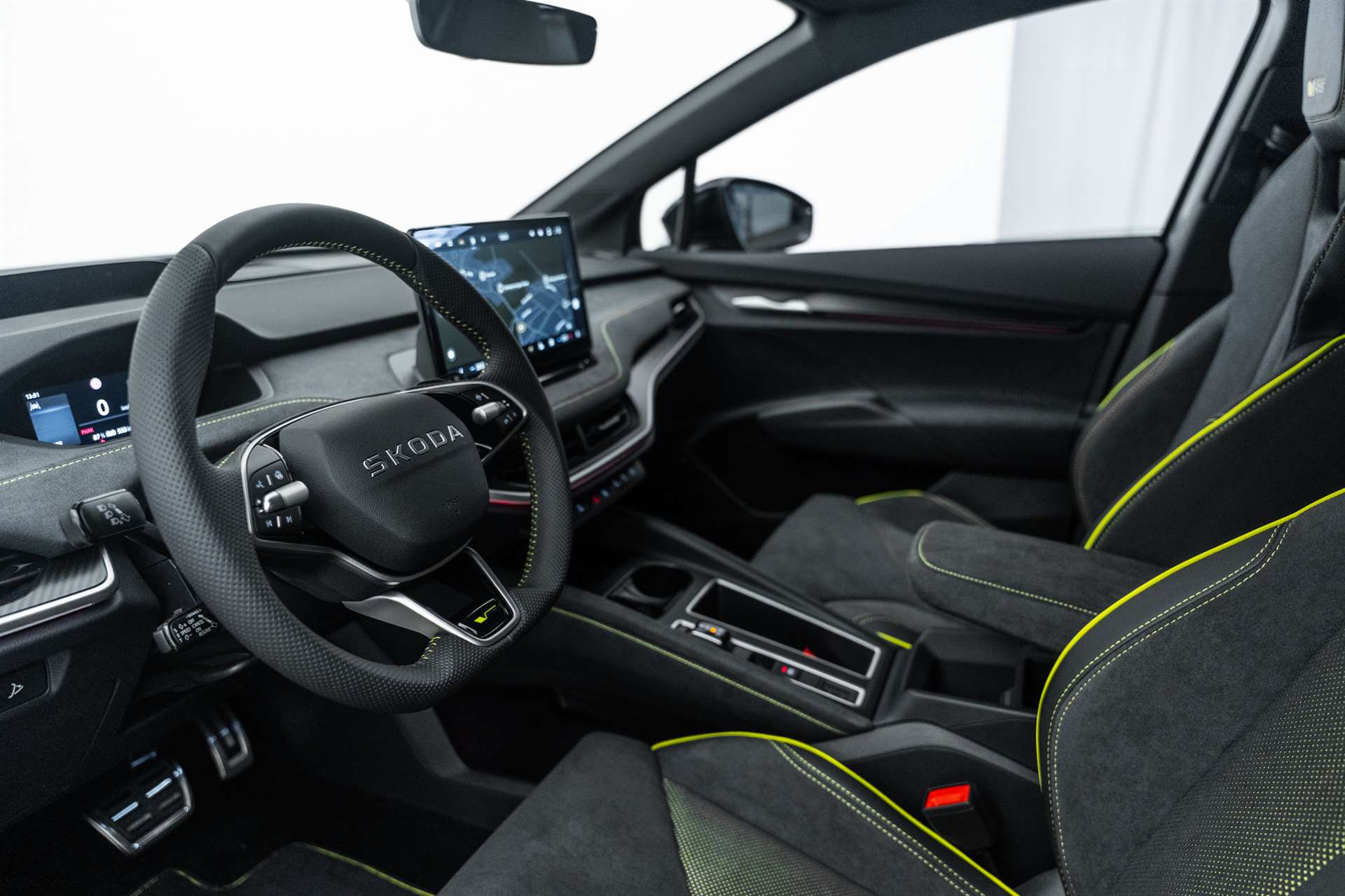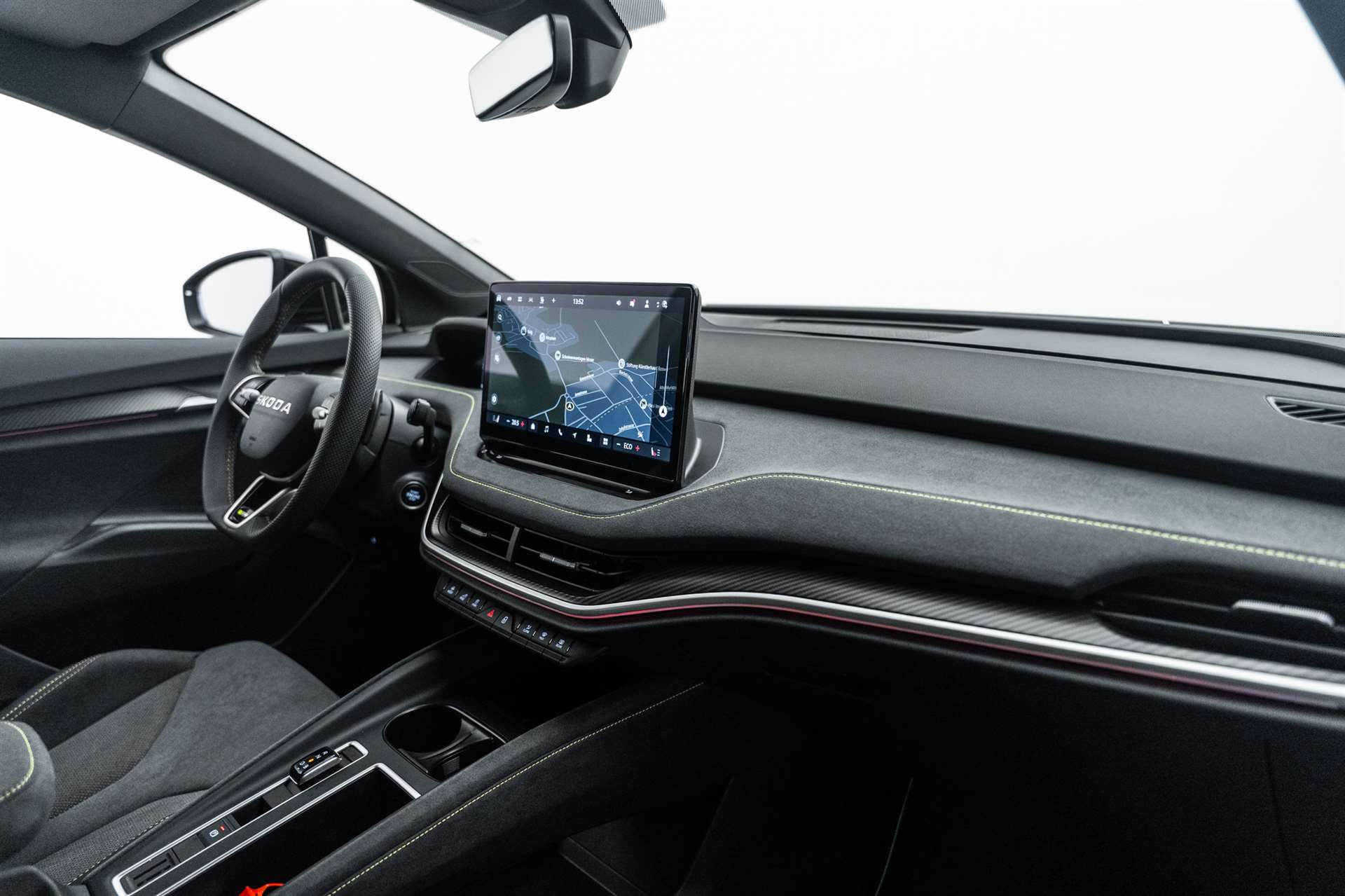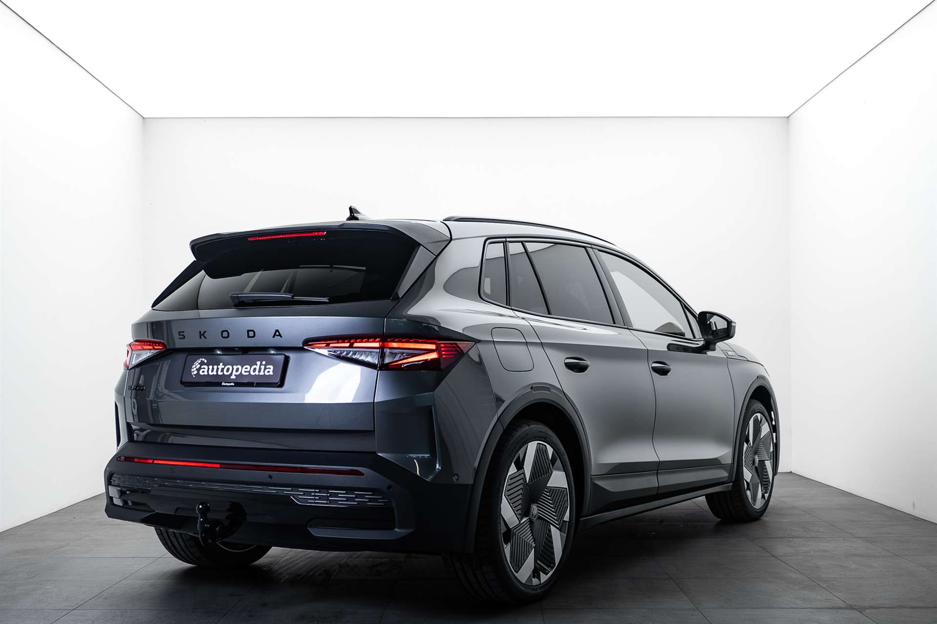 3-Punkt-Sicherheitsgurte auf allen Plätzen, Ablagekasten im Fond, Ablagekasten im Fond, Ablagekasten im Kofferraum in der Seitenverkleidung (links und rechts), ABS, EBD elektronische Bremskraftverteilung, AC Batterieladung bis 11 kW, Airbag: Airbag Beifahrer deaktivierbar, Airbag: Airbag Fahrer und Beifahrer, Airbag: Kopf- und Zentralairbag vorne (zwischen Fahrer- und Beifahrersitz), Akustikpaket mit SunSet, Allradantrieb permanent, Assist: Abbiegeassistent mit Gegenverkehr Warnung, Assist: Ablenkungs- und Müdigkeitserkennung, Assist: Adaptive Geschwindigkeitsregelanlage "Adaptive Cruise Control", Assist: Adaptiver Spurhalteassistent "Lane Assist" mit Stau- und Notbremsassistent, Assist: Emergency Call (Notruf), Assist: Fahrassistent"Travel Assist 2.6"mit Geschwindigkeitsregelanlage"Predictive Cruise Control", Assist: Insassenschutzsystem "Crew Protect Assistant" vorne, hinten und auf beiden Seiten, Assist: Memory-Funktion für Parkassistent, Assist: Notbremsassistent "Front Assist", Assist: Parkassistent mit ferngesteuerter Parkfunktion "Remote Park Assist", Assist: Parksensoren vorne und hinten, Assist: Prädiktive Geschwindigkeitswarnanlage, Assist: Rückfahrkamera, Assist: Spurwechselassistent "Side Assist", Assist: Umgebungkamera "Area View", Assist: Verkehrszeichenerkennung, Aussenspiegel elektrisch anklappbar mit automatischer Abblendung (nur Fahrerseite)und Memoryfunktion, Aussenspiegel elektrisch anklappbar mit automatischer Abblendung (nur Fahrerseite)und Memoryfunktion, Aussenspiegel elektrisch einstell- und beheizbar, Beleuchtetes Tech-Deck, Bordcomputer, Dachreling schwarz hochglanz, DC Batterieladung bis 185 kW, Design Selection RS, Diebstahlalarmanlage, Innenraumüberwachung, Back-Up-Horn und Abschleppschutz, Drittes Bremslicht, Ebener Ladeboden im Kofferraum mit Multifunktionsablage, Ebener Ladeboden im Kofferraum mit Multifunktionsablage, Elektrische Fensterheber vorne + hinten, Elektrische Kindersicherung, Elektronische Parkbremse, Elektronisches Stabilitäts-Programm (ESP), Fahrprofilauswahl- "Driving Mode Selection", Fahrwerk: Adaptive Fahrwerksregelung "DCC - Dynamic Chassis Control Plus" inkl. "Driving Mode Select, Fahrwerk: Progressivlenkung, Fenster Zierleisten in Schwarz hochglanz, Frontscheibenheizung, Getriebe: 1-Gang Getriebe, Gurtanlegesignalisation für alle Passagiere, Head-up Display mit Augmented-Reality-Technologie, Heckklappe mit berührungsloser Öffnung "Virtual Pedal", Heckscheiben-Wisch-/Waschanlage mit Iinterval, Heckscheibenheizung, Heckspoiler, Innenspiegel automatisch abblendbar, Kindersicherung manuell einstellbar, Klima: Klimaanlage "Climatronic", 2-Zonen-Temperaturregelung, vollautomatisch, getrennt regelbar, Klima: Klimaanlage "Climatronic", 3-Zonen-Temperaturregelung, vollautomatisch, getrennt regelbar, Klima: Klimaanlage "Climatronic", 3-Zonen-Temperaturregelung, vollautomatisch, getrennt regelbar, Kofferraumabdeckung, herausnehmbar mit Multifunktionstasche, Kofferraummatte doppelseitig (Teppich/gummiert), Kofferraummatte doppelseitig (Teppich/gummiert), Lackierung: Uni-Lackierung, Ladekabel für AC-Normalladen bis zu 11 kW, Typ2-Stecker, Lenkrad: Sport-Leder-Multifunktionslenkrad 3-Speichen mit Schaltwippen, beheizbar, Lenkrad: Sport-Leder-Multifunktionslenkrad 3-Speichen mit Schaltwippen, beheizbar, Licht: LED Rückleuchten mit dynamischen Blinkern, Licht: Voll LED Scheinwerfer mit "Matrix-Beam-Funktion" mit AFS (Adaptive Frontlight System), Media: 2 USB-C Anschlüsse vorne und hinten, Media: 8 Lautsprecher, Media: DAB+ (Digital Audio Broadcasting), Media: Infotainment Online 3 Jahre + "Care Connect" (Remote Access [3 Jahr] und Proactive Services), Media: Infotainmentdisplay 13", Media: Navigationsfunktion, Media: SmartLink (CarPlay und Android Auto), Media: Soundsystem "CANTON" (11 Lautsprecher und Subwoofer im Kofferraum)), Media: Sprachsteuerung, Media: Telefonvorbereitung mit Bluetooth, Mittelkonsole mit Mittelarmlehne, Nebelschlussleuchte, Netzprogramm (Netzset im Kofferraum), Netzprogramm (Netzset im Kofferraum), Paket: ADVANCED, Paket: Driver Paket, Paket: PLUS, Paket: PLUS, Pedale in Aludesign, Phonebox und Wireless Charging, Räder: Leichtmetallräder 8J x 20" / 9J x 20" "Draconis" schwarz, Aero-Blenden, Räder: Pannenset (Kompressor und Flasche mit Dichtmittel, ohne Reserverad), Räder: Reifendruckkontrollsystem, Radlaufleisten nicht lackiert, Schliess- und Startsystem schlüssellos mit Safelock "Kessy Advanced" (Keyless Access), Sitze: 3 Kopfstützen hinten, Sitze: Fahrersitz elektrisch verstellbar mit Memory, Sitze: Fahrersitz elektrisch verstellbar mit Memory, Sitze: Fahrersitz mit Massagefunktion, Lendenwirbelstütze elektrisch einstellbar für Vordersitze, Sitze: Fahrersitz mit Massagefunktion, Lendenwirbelstütze elektrisch einstellbar für Vordersitze, Sitze: Lendenwirbelstütze elektrisch einstellbar für Vordersitze mit Massagefunktion, Sitze: Rücksitzbank ungeteilt, Rücksitzlehne geteilt umklappbar, Sitze: Vorbereitung für Kindersitzhalterung mit Sicherheitssystem ISOFIX auf dem Beifahrersitz, Sitze: Vorder- und Rücksitze Beheizbar, Sitze: Vordersitze elektrisch einstellbar mit Memoryfunktion, Sitze: Vordersitze heizbar, SKODA Garantie: Anschlussgarantie 1 Jahr, max. 100’000 km, SKODA Garantie: Garantie 12 Jahre gegen Durchrostungs (ab 1. Inv.), SKODA Garantie: Garantie 3 Jahre gegen Lackschäden (ab 1. Inv.), SKODA Garantie: Garantie 8 Jahre oder 160’000 km Garantie auf HV-Batterie, SKODA Garantie: Neuwagen-Garantie: 2 Jahre ohne Kilometerbegrenzung, Sonnenschutzrollo für Seitenscheiben hinten - mechanisch, Traction control (TCS), Vorbereitung für Anhängerkupplung, Wärmepumpe, Zentralverriegelung mit Fernbedienung