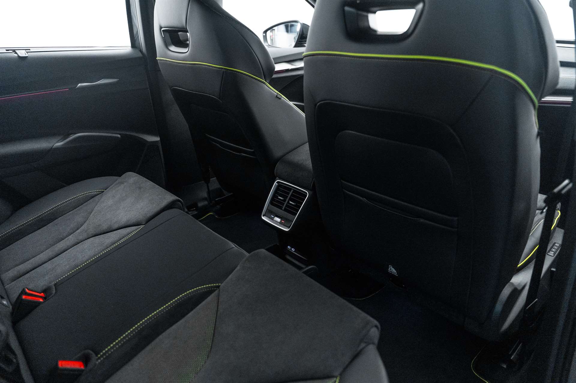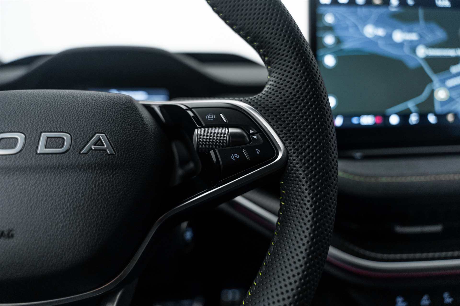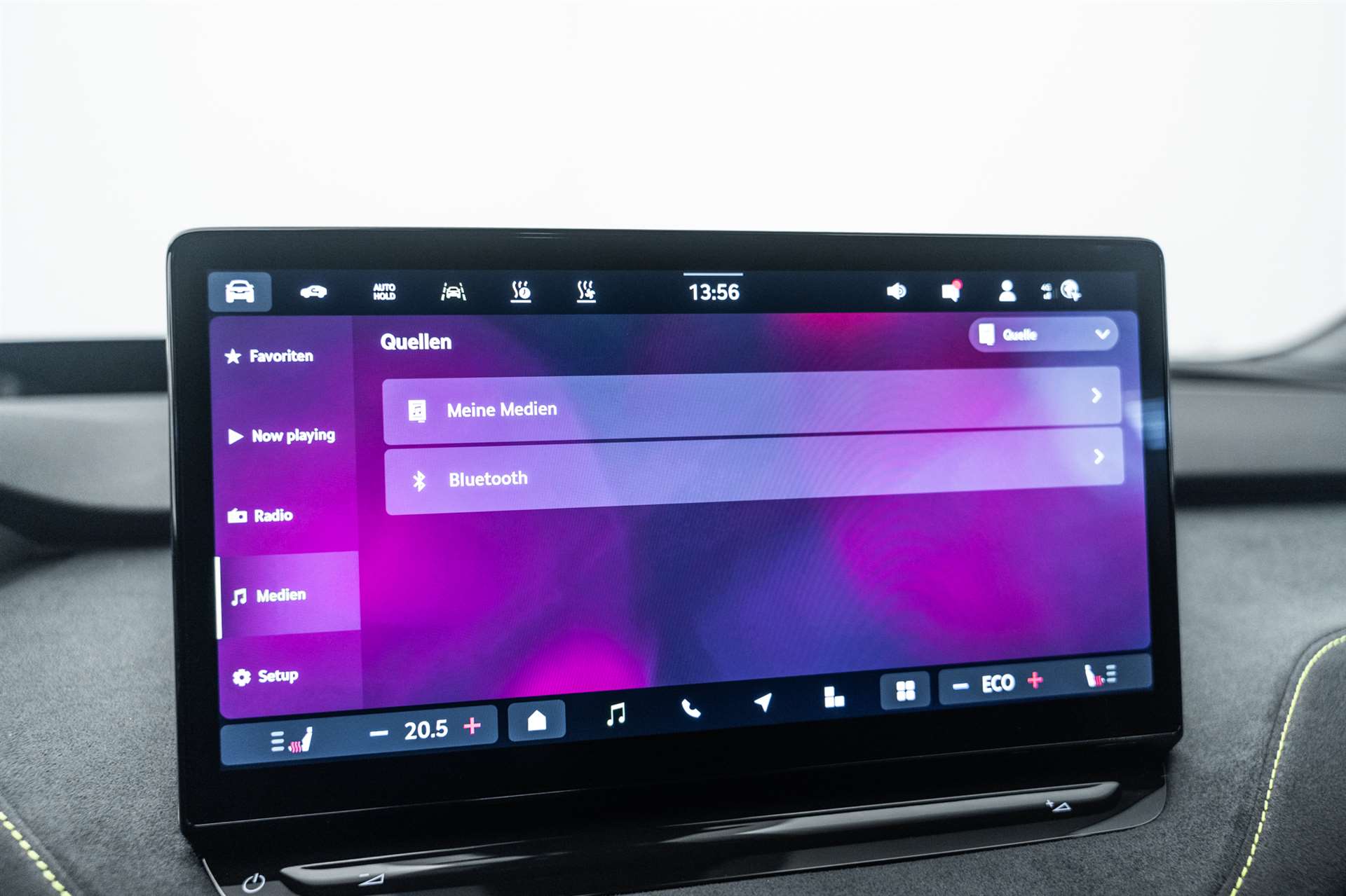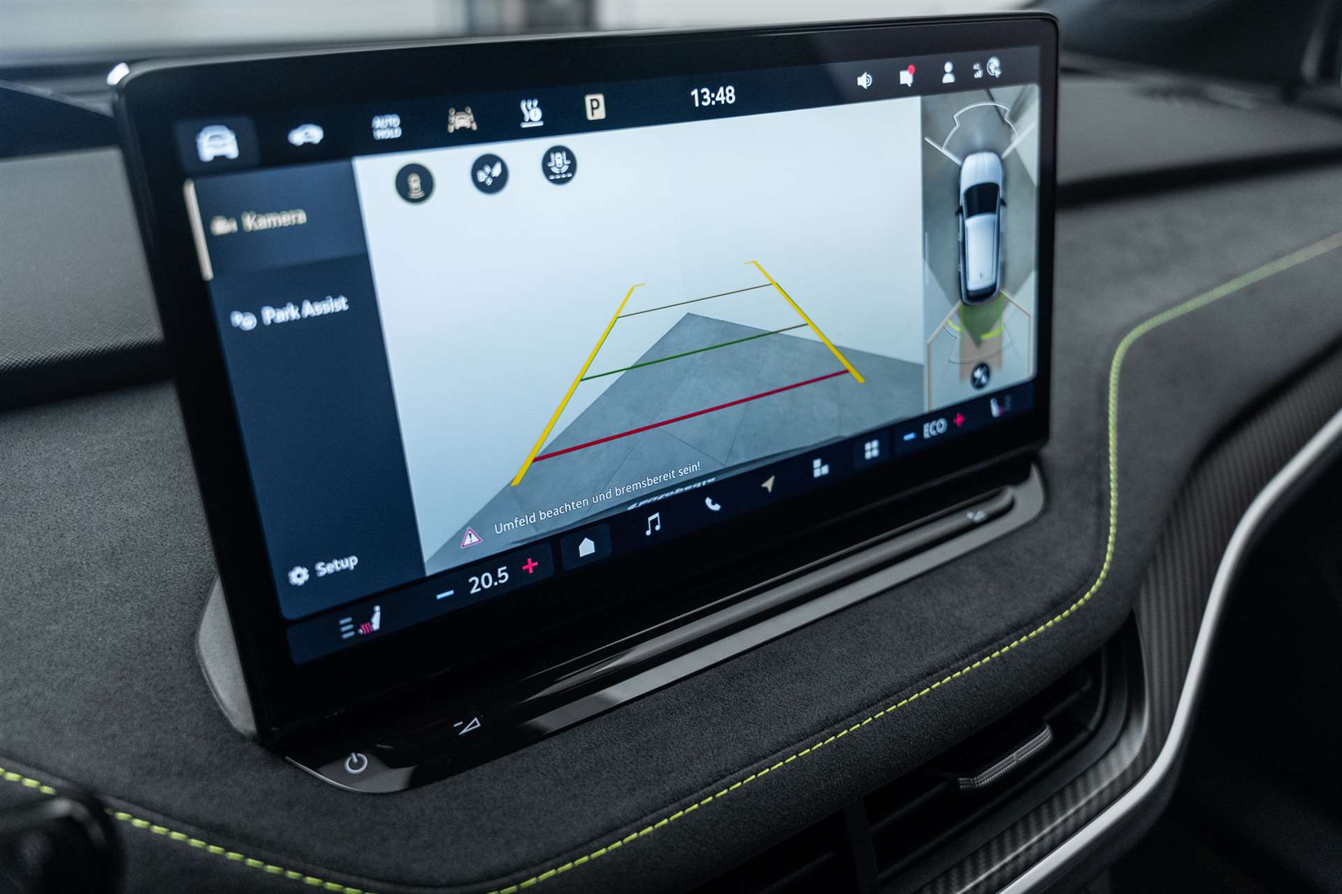 3-Punkt-Sicherheitsgurte auf allen Plätzen, Ablagekasten im Fond, Ablagekasten im Fond, Ablagekasten im Kofferraum in der Seitenverkleidung (links und rechts), ABS, EBD elektronische Bremskraftverteilung, AC Batterieladung bis 11 kW, Airbag: Airbag Beifahrer deaktivierbar, Airbag: Airbag Fahrer und Beifahrer, Airbag: Kopf- und Zentralairbag vorne (zwischen Fahrer- und Beifahrersitz), Akustikpaket mit SunSet, Allradantrieb permanent, Assist: Abbiegeassistent mit Gegenverkehr Warnung, Assist: Ablenkungs- und Müdigkeitserkennung, Assist: Adaptive Geschwindigkeitsregelanlage "Adaptive Cruise Control", Assist: Adaptiver Spurhalteassistent "Lane Assist" mit Stau- und Notbremsassistent, Assist: Emergency Call (Notruf), Assist: Fahrassistent"Travel Assist 2.6"mit Geschwindigkeitsregelanlage"Predictive Cruise Control", Assist: Insassenschutzsystem "Crew Protect Assistant" vorne, hinten und auf beiden Seiten, Assist: Memory-Funktion für Parkassistent, Assist: Notbremsassistent "Front Assist", Assist: Parkassistent mit ferngesteuerter Parkfunktion "Remote Park Assist", Assist: Parksensoren vorne und hinten, Assist: Prädiktive Geschwindigkeitswarnanlage, Assist: Rückfahrkamera, Assist: Spurwechselassistent "Side Assist", Assist: Umgebungkamera "Area View", Assist: Verkehrszeichenerkennung, Aussenspiegel elektrisch anklappbar mit automatischer Abblendung (nur Fahrerseite)und Memoryfunktion, Aussenspiegel elektrisch anklappbar mit automatischer Abblendung (nur Fahrerseite)und Memoryfunktion, Aussenspiegel elektrisch einstell- und beheizbar, Beleuchtetes Tech-Deck, Bordcomputer, Dachreling schwarz hochglanz, DC Batterieladung bis 185 kW, Design Selection RS, Diebstahlalarmanlage, Innenraumüberwachung, Back-Up-Horn und Abschleppschutz, Drittes Bremslicht, Ebener Ladeboden im Kofferraum mit Multifunktionsablage, Ebener Ladeboden im Kofferraum mit Multifunktionsablage, Elektrische Fensterheber vorne + hinten, Elektrische Kindersicherung, Elektronische Parkbremse, Elektronisches Stabilitäts-Programm (ESP), Fahrprofilauswahl- "Driving Mode Selection", Fahrwerk: Adaptive Fahrwerksregelung "DCC - Dynamic Chassis Control Plus" inkl. "Driving Mode Select, Fahrwerk: Progressivlenkung, Fenster Zierleisten in Schwarz hochglanz, Frontscheibenheizung, Getriebe: 1-Gang Getriebe, Gurtanlegesignalisation für alle Passagiere, Head-up Display mit Augmented-Reality-Technologie, Heckklappe mit berührungsloser Öffnung "Virtual Pedal", Heckscheiben-Wisch-/Waschanlage mit Iinterval, Heckscheibenheizung, Heckspoiler, Innenspiegel automatisch abblendbar, Kindersicherung manuell einstellbar, Klima: Klimaanlage "Climatronic", 2-Zonen-Temperaturregelung, vollautomatisch, getrennt regelbar, Klima: Klimaanlage "Climatronic", 3-Zonen-Temperaturregelung, vollautomatisch, getrennt regelbar, Klima: Klimaanlage "Climatronic", 3-Zonen-Temperaturregelung, vollautomatisch, getrennt regelbar, Kofferraumabdeckung, herausnehmbar mit Multifunktionstasche, Kofferraummatte doppelseitig (Teppich/gummiert), Kofferraummatte doppelseitig (Teppich/gummiert), Lackierung: Uni-Lackierung, Ladekabel für AC-Normalladen bis zu 11 kW, Typ2-Stecker, Lenkrad: Sport-Leder-Multifunktionslenkrad 3-Speichen mit Schaltwippen, beheizbar, Lenkrad: Sport-Leder-Multifunktionslenkrad 3-Speichen mit Schaltwippen, beheizbar, Licht: LED Rückleuchten mit dynamischen Blinkern, Licht: Voll LED Scheinwerfer mit "Matrix-Beam-Funktion" mit AFS (Adaptive Frontlight System), Media: 2 USB-C Anschlüsse vorne und hinten, Media: 8 Lautsprecher, Media: DAB+ (Digital Audio Broadcasting), Media: Infotainment Online 3 Jahre + "Care Connect" (Remote Access [3 Jahr] und Proactive Services), Media: Infotainmentdisplay 13", Media: Navigationsfunktion, Media: SmartLink (CarPlay und Android Auto), Media: Soundsystem "CANTON" (11 Lautsprecher und Subwoofer im Kofferraum)), Media: Sprachsteuerung, Media: Telefonvorbereitung mit Bluetooth, Mittelkonsole mit Mittelarmlehne, Nebelschlussleuchte, Netzprogramm (Netzset im Kofferraum), Netzprogramm (Netzset im Kofferraum), Paket: ADVANCED, Paket: Driver Paket, Paket: PLUS, Paket: PLUS, Pedale in Aludesign, Phonebox und Wireless Charging, Räder: Leichtmetallräder 8J x 20" / 9J x 20" "Draconis" schwarz, Aero-Blenden, Räder: Pannenset (Kompressor und Flasche mit Dichtmittel, ohne Reserverad), Räder: Reifendruckkontrollsystem, Radlaufleisten nicht lackiert, Schliess- und Startsystem schlüssellos mit Safelock "Kessy Advanced" (Keyless Access), Sitze: 3 Kopfstützen hinten, Sitze: Fahrersitz elektrisch verstellbar mit Memory, Sitze: Fahrersitz elektrisch verstellbar mit Memory, Sitze: Fahrersitz mit Massagefunktion, Lendenwirbelstütze elektrisch einstellbar für Vordersitze, Sitze: Fahrersitz mit Massagefunktion, Lendenwirbelstütze elektrisch einstellbar für Vordersitze, Sitze: Lendenwirbelstütze elektrisch einstellbar für Vordersitze mit Massagefunktion, Sitze: Rücksitzbank ungeteilt, Rücksitzlehne geteilt umklappbar, Sitze: Vorbereitung für Kindersitzhalterung mit Sicherheitssystem ISOFIX auf dem Beifahrersitz, Sitze: Vorder- und Rücksitze Beheizbar, Sitze: Vordersitze elektrisch einstellbar mit Memoryfunktion, Sitze: Vordersitze heizbar, SKODA Garantie: Anschlussgarantie 1 Jahr, max. 100’000 km, SKODA Garantie: Garantie 12 Jahre gegen Durchrostungs (ab 1. Inv.), SKODA Garantie: Garantie 3 Jahre gegen Lackschäden (ab 1. Inv.), SKODA Garantie: Garantie 8 Jahre oder 160’000 km Garantie auf HV-Batterie, SKODA Garantie: Neuwagen-Garantie: 2 Jahre ohne Kilometerbegrenzung, Sonnenschutzrollo für Seitenscheiben hinten - mechanisch, Traction control (TCS), Vorbereitung für Anhängerkupplung, Wärmepumpe, Zentralverriegelung mit Fernbedienung