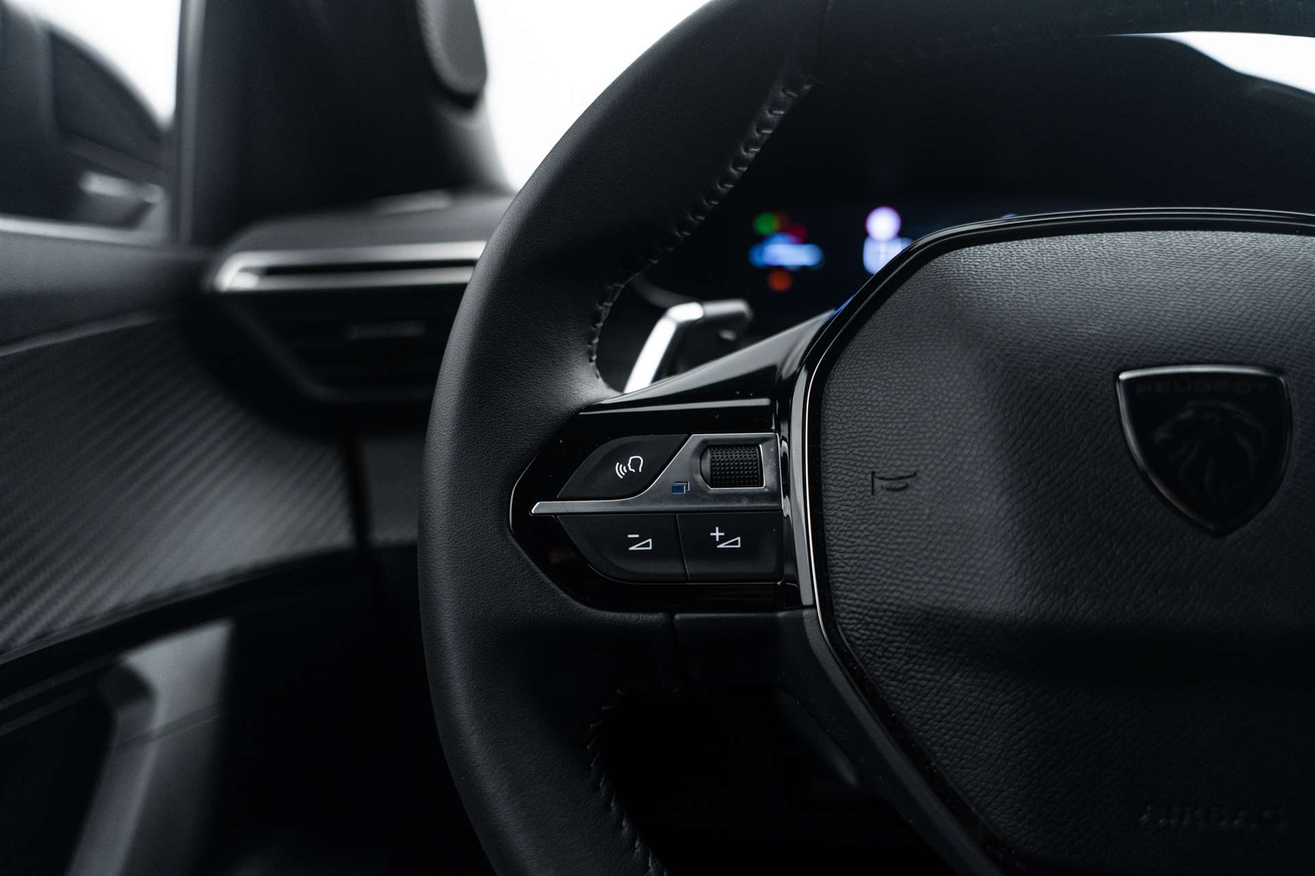 3-Tasten-Fernbedienung + Standardschlüssel, 4 Haltegriffe (2 vorne und 2 hinten), Abschaltbares ESP, Airbag: 6 Airbags, Akustische Windschutzscheibe, Antiblockiersystem (ABS), Armaturenbrett aus Schaumstoff mit Carbone-Dekor, Armlehnen in den Türen vorne und hinten Baladin Grau meliert, Assist: Adaptiver Geschwindigkeitsregler mit Stop/Go, Assist: Aktiver Warnhinweis auf unbeabsichtigtes Überfahren von Linie und Strassenrand, Assist: Aufmerksamkeitswarnung für den Fahrer, Assist: Automatische Notbremsung mit Kollisionswarnung, Assist: Einparkhilfe hinten, akustisch und visuell, Assist: Einparkhilfe vorn, Assist: Erweiterte Verkehrszeichenerkennung und Geschwindigkeitsempfehlung, Assist: Spurhalteassistent, Assist: Teilautonomes Fahren, Assist: Tempomat / Geschwindigkeitsbegrenzer, Assist: Traktionskontrolle (ASR), Assist: Visiopark 2, Aussenbeleuchtung für Empfang und Begleitung, Aussenspiegel in Schwarz glänzend, Automatisches Einschalten der Frontscheibenwischer, Beheizbare Aussenspiegel, elektrisch einstell- und anklappbar, Dachkantenspoiler in der Wagenfarbe, Dachreling in glänzendem Schwarz, Elektrische Fensterheber vorne und hinten, sequenziell und mit Einklemmschutz, Garantie: 12 Jahre Korrosionsschutzgarantie, Garantie: 3 Jahre / 100'000 km Garantie auf Teile, Arbeit und Lackierung, Getriebe: 8-Stufen-Automat sequentiell, Hohe Konsole mit Armlehne & elektrischer Feststellbremse, Höhenverstellbare Kopfstützen mit optimierter Sicherheit, Innenbeleuchtung, Innenraum und Dachhimmel Schwarz, Innenspiegel automatisch abblendbar, ISOFIX- und Top-Tether-Befestigungen an den hinteren Seitenplatzen, Kabellose Smartphone-Aufladung, Katana Mattschwarz, Klima: Automatische Einzonen-Klimaanlage, Kofferraumschutzleiste Grau Meteor, Kühlergrill, Lackierung: Metallic-Lackierung, Lenkrad: Kompaktlederlenkrad mit integrierten Bedienelementen, Licht: 3-Krallen-LED-Rückleuchten, Licht: Automatische Abblendlichteinschaltung, Licht: Scheinwerfer Peugeot LED Technology mit 3-Krallen-LED-Tagfahrlicht, Mattschwarze Zierleisten an den Seitenfenstern, Media: 1 USB-C-Steckdose (Aufladung), Media: 6 Lautsprecher (2 tweeters und 2 woofers vorne u. 2 hinten), Media: PEUGEOT i-Connect, Media: PEUGEOT i-Connect Advanced, Modularer Kofferraumboden 2 Positionen, Paket: Paket Safety, Paket: Paket Safety Plus, Paket: Paket Vision and Drive Assist Plus, Paket: Sicht-Paket, Peugeot Connect SOS & Assistenz, Peugeot i-Cockpit mit digitalem 10-Zoll-Head-up-Kombiinstrument, Polster: Stoff CASUAL LOMSA geprägt,, Räder: 17-Zoll-Alufelgen 'Karakoy', glanzgedreht, Räder: Reifendruck-Kontrollanzeige, Räder: Reserverad, Schlüsselloses Zugangs- und Startsystem, Seitenscheiben hinten und Heckscheibe stärker getönt, Seitliche Türschutzleisten Schwarz genarbt, Servolenkung, Sitze: Beifahrersitz höhenverstellbar, Sitze: Fahrersitz mit manueller höhenverstellbar, Sitze: Im Verhältnis 1/3 zu 2/3 umklappbare Rücksitzbank, Sitze: Sitzheizung vorne, Türarmlehnen vorne und hinten in Stoff/Kunstleder Isabella mit Quarznaht, Türgriffe in Wagenfarbe, Türverkleidung hinten mit Karsten-Maserung, Verchromte Auspuffkanüle, Vordere Türverkleidungen mit Tampondruck in matt schwarz, Zentralverriegelung, Zierleiste unterhalb der Heckfenster in Schwarz