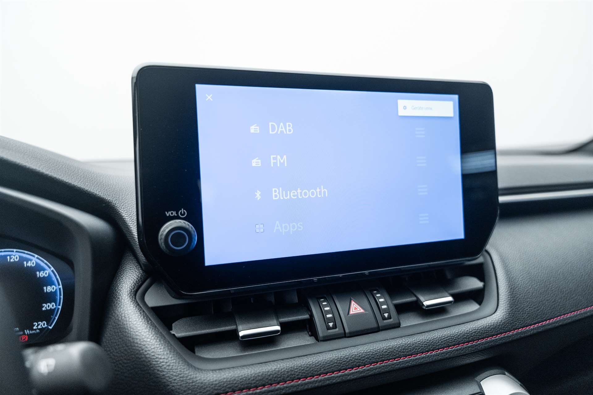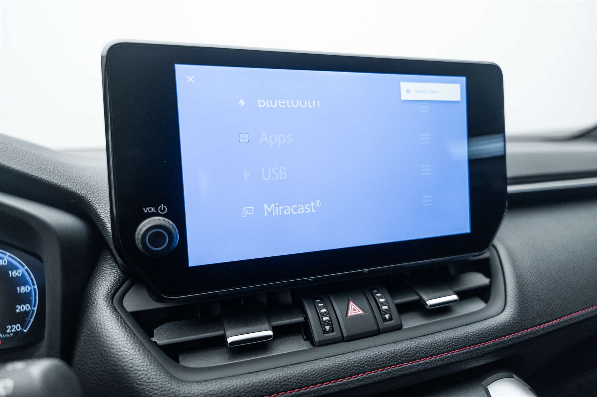 12 Volt Anschlüsse vorne (2x), Airbag: Airbag Beifahrer deaktivierbar, Airbag: Airbag Fahrer und Beifahrer, Airbag: Knie-Airbag für Fahrer, Airbag: Kopfairbags vorne und hinten, Anhängerstabilisierung (TSC), Antiblockiersystem (ABS), Assist: Adaptiver Tempomat ACC, Assist: Berganfahrhilfe (Hill Assist Control - HAC), Assist: Geschwindigkeitsbegrenzer ASL, Assist: Parksensoren vorne und hinten, Assist: Pre Collision System mit Fussgänger- und Fahrraderkennung (PCS), Assist: Rückfahrkamera mit Führungslinien, Assist: Spurverfolgungsassistent (LTA) mit Spurverlasswarner (LDA) und aktiver Lenkunterstützung, Assist: Totwinkelassistent (BSM) und Querverkehrswarner hinten (RCTA), Assist: Verkehrszeichenerkennung (RSA), Aussenspiegel elektrisch einklappbar, verstellbar und beheizt, Aussenspiegel in Wagenfarbe, Bodenteppiche, Dachhimmel schwarz, Dachreling schwarz, Dachspoiler in Wagenfarbe, Doppel-Auspuffendrohre, Elektrische Feststellbremse, Elektronische Traktionskontrolle, Elektronisches Stabilitäts-Programm (ESP), Fensterheber elektrisch mit Auf- und Abwärtsautomatik mit Einklemmschutz, Frontscheibenheizung, Garantie: 3 Jahre oder 100'000 km, Garantie: 3 Jahre/Unbegrenzt, Garantie: Durchrostungsgarantie PW 12 Jahre, Garantie: Garantieverlängerung bis 10 Jahre/185’000 km, Garantie: Toyota Hybrid Garantie 5 Jahre auf Hybridkomponenten oder 100'000 km, Gepäckraumabdeckung, Getränkehalter, vorn beleuchtet, Getriebe: Stufenloser Automat, Innenspiegel automatisch abblendbar, Klima: 2-Zonen-Klimaautomatik, Lackierung: Uni-Lackierung, Ladekabel 7,5m (Mode 3, Type 2, 32A), Lenkrad: Lederlenkrad, Lenkrad: Lenkrad beheizbar, Lenkrad: Lenkrad mit Bedienelementen, Lenkrad: Lenkrad mit Schaltwippen, Lenksäule manuell höhenverstellbar und längsverstellbar, Licht: Fernlicht-Automatik (AHB), Licht: Innenraumbeleuchtung LED, Licht: LED Heckleuchten, Licht: LED Nebelscheinwerfer, Licht: LED Scheinwerfer mit automatischer Höhenverstellung, Licht: LED-Tagfahrlicht, Media: 12,3" Multiinformationsdisplay (Tachodisplay), Media: 2 USB-Anschlüsse hinten (USB-C), Media: 7" Multiinformationsdisplay (Tachodisplay), Media: AUX-Anschluss, Media: MyT App Connected Services (10 Jahre gratis), Media: MyT App EV Features (10 Jahre gratis), Media: MyT App Smart Connect Pack (4 Jahre gratis), Media: Radio, DAB+ und Bluetooth, Media: Smartphone Integration: Apple CarPlay ohne Kabel / Android Auto mit Kabel, Media: Toyota Smart Connect (T1) Multimedia mit 10.5" HD Bildschirm, Cloud-Navigationssystem, Media: Toyota Smart Connect+ (T2) Multimedia mit 10.5" HD Bildschirm, integriertes Navigationssyste, Media: USB-Anschlüsse vorne (1x USB-A), Pannendreieck, Passgenaue Kofferraummatte, Polster: Stoff, Räder: 18"-Leichtmetallfelgen, 225/60-R18-Reifen, Räder: 4 hochwertige Winter-Leichtmetallräder 18", Räder: Reifendruck-Warnsystem (TPWS), Räder: Reifenreparatur-Set, Regensensor, Reiseapotheke, Scheinwerferreinigungsanlage, Servolenkung, Sicherheitsweste, Sitze: 2. Sitzreihe, im Verhältnis 60:40 manuell umklappbar, Sitze: Ablagetaschen Rückenlehne Fahrer- und Beifahrersitz, Sitze: Beifahrersitz 4 -fach manuell verstellbar, Sitze: Fahrersitz 8-fach elektrisch verstellbar, Sitze: Fahrersitz höhenverstellbar, Sitze: Fahrersitz mit Lendenwirbelstütze, Sitze: Sitzheizung 2.Reihe, Sitze: Sitzheizung vorne, Smart Entry-/Start-System, Sonnenblende Fahrer und Beifahrerseite mit Spiegel, Stossstangenschutzplatte hinten aus Edelstahl, Türgriffe aussen in Wagenfarbe, Zentralverriegelung mit Fernbedienung, Zierleisten aussen schwarz lackiert
