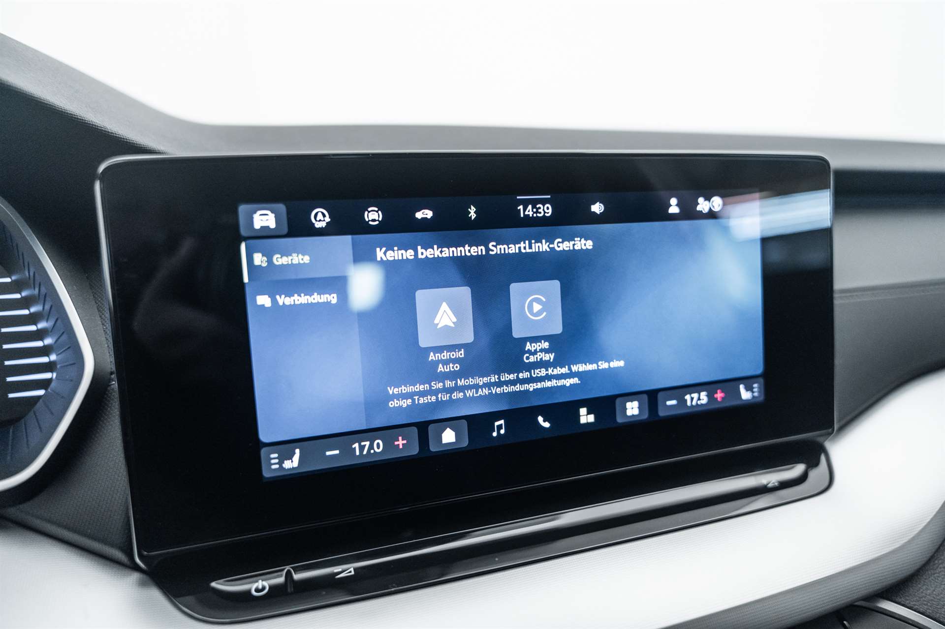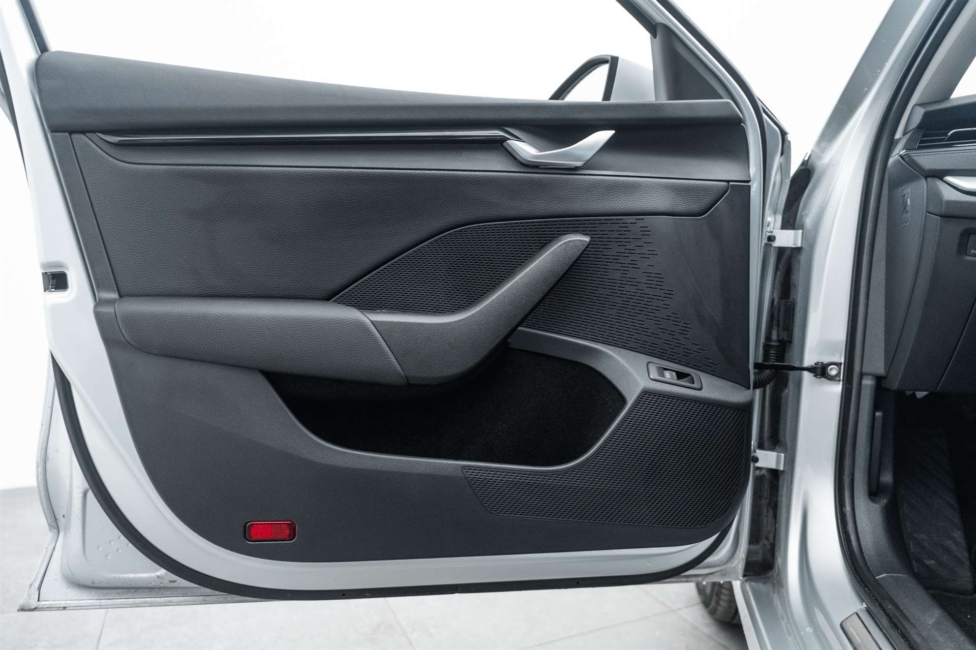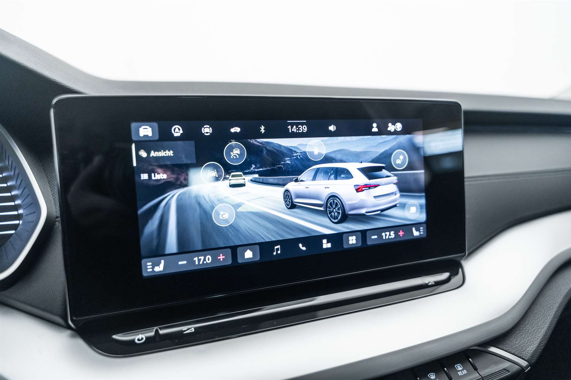 12 Volt-Steckdose im Laderaum, 3 Kopfstützen hinten, 3-Punkt-Sicherheitsgurte auf allen Plätzen, ABS mit ASR und EDS, Airbag: Airbag für Vordersitze mit Beifahrerairbag-Deaktivierung und Fahrer Knieairbag, Airbag: Kopf-, Seiten- und Zentralairbag vorne (zwischen Fahrer- und Beifahrersitz), Akustikpaket mit SunSet, Ambiente- und Fussraumbeleuchtung, Assist: Abbiegeassistent mit Gegenverkehr Warnung, Assist: Ablenkungs- und Müdigkeitserkennung, Assist: Adaptive Geschwindigkeitsregelanlage "Adaptive Cruise Control", Assist: Adaptiver Spurhalteassistent "Lane Assist" mit Stau- und Notbremsassistent, Assist: Berganfahrassistent, Assist: Intelligenter Parkassistent "Park Assist" mit Memoryfunktion, Assist: Notbremsassistent "Front Assist", Assist: Notrufsystem Emergency-Call, Assist: Parksensoren vorne und hinten, Assist: Parksensoren vorne und hinten, Assist: Predictive Cruise Control (PCC), Assist: Rückfahrkamera, Assist: Spurwechselassistent "Side Assist", Assist: Verkehrszeichenerkennung, Aussenspiegel elektrisch anklappbar, Aussenspiegel elektrisch einstell- und beheizbar, Aussenspiegel in schwarz lackiert, Aussenspiegel mit automatischer Abblendung (nur Fahrerseite) und Memoryfunktion, Aussenspiegel mit automatischer Abblendung (nur Fahrerseite) und Memoryfunktion, Dachreling schwarz, Dekor: Dekoreinlage am Armaturenbrett "Black Carbon Haptic", Diebstahlwarnanlage, Innenraumüberwachung, Back-up-Horn und Abschleppschutz, Drittes Bremslicht LED, Einstiegsleisten, Elektrische Fensterheber vorne + hinten, Elektrische Kindersicherung, Elektronisches Stabilitäts-Programm (ESP), Fahrprofilauswahl "Driving Mode Selection", Fahrwerk: Progressivlenkung, Frontscheibenheizung, Getriebe: 7-Gang DSG, Gurtstraffer vorne und hinten, Heckklappe mit berührungsloser Öffnung "Virtual Pedal", Heckscheiben-Wisch-/Waschanlage mit Iinterval, Innenspiegel automatisch abblendbar, Klima: Climatronic 2-Zonen-Temperaturregelung, vollautomatisch, getrennt regelbar, Kofferraumrollo elektrisch, Kopfstützen hinten höhenverstellbar, Kopfstützen vorne, Lackierung: Uni-Lackierung, Lenkrad: 3-Speichen-Sport-Leder-Multifunktionslenkrad mit Schaltwippen (DSG), beheizbar, Licht: Fernlichtassistent, Licht: LED Hauptscheinwerfer mit variabler Lichtverteilung, Licht: LED Rückleuchten mit dynamischer Blinkleuchte, Licht: LED Rückleuchten mit dynamischer Blinkleuchte, Licht: Leuchtweitenregulierung automatisch mit Kurvenfahrlicht, Licht: Matrix-Beam, Media: "SmartLink" (CarPlay und Android Auto), Media: 8 Lautsprecher, Media: DAB+ (Digital Audio Broadcasting), Media: Infotainment Online 3 Jahre + "Care Connect" (Remote Access 3 Jahre), Media: Infotainmentdisplay 13" mit Navigationsfunktion, Media: Phonebox und Wireless Charging, Media: Sprachsteuerung, Media: Zwei USB-C Anschlüsse hinten, Mittelarmlehne vorne, Mittelkonsole mit Jalousie, Mittelkonsole mit Jalousie mit Mediahalter und mit Ablagefach hinten, Nebelschlussleuchte, Netzprogramm und Cargoelemente, Netztrennwand, Ohne Ablagekasten unter Beifahrersitz, Paket: Assisted Drive Paket Plus, Paket: Komfort Paket, Paket: Light & View Paket Plus, Paket: Simply Clever Paket Premium, Paket: Winter Paket Plus, Pedalerie mit Aluminiumauflage, Polster: Sitzbezüge Stoff / Kunstleder schwarz, Räder: Leichtmetallräder 7,0 J x 17" "Slagard Aero", schwarz mit polierter Oberfläche, Räder: Pannenset (Kompressor und Flasche mit Dichtmittel, ohne Reserverad), Räder: Reifendruckkontrollsystem, Regenschirm in der Fahrertüre, Regensensor mit Lichtassistent (Coming Home, Leaving Home, Tunnel Light), Scheinwerferreinigungsanlage, Schliess- und Startsystem schlüssellos mit Safelock "Kessy Advanced" (Keyless Access), Servolenkung, Sitze: Lendenwirbelstütze elektrisch einstellbar für Vordersitze, Sitze: Rücksitzlehne mit Fernbedienung aus Kofferraum, Sitze: Sport-Komfortsitze vorne, Sitze: Ungeteilte Rücksitzbank, geteilt umklappbare Rückenlehne, mit Mittelarmlehne, Sitze: Vorbereitung für Kindersitzhalterung mit Sicherheitssystem ISOFIX auf dem Beifahrersitz, Sitze: Vordersitze elektrisch einstellbar mit Memoryfunktion, Sitze: Vordersitze heizbar, Sitze: Vordersitze höhenverstellbar (manuell), Sitze: Vordersitze mit Lendenwirbelstütze manuell anpassbar, SKODA Garantie: Anschlussgarantie: 2+3 Jahre (total 5 Jahre) bis max. 100’000 km), SKODA Garantie: Garantie 12 Jahre gegen Durchrostungs (ab 1. Inv.), SKODA Garantie: Garantie 3 Jahre gegen Lackschäden (ab 1. Inv.), SKODA Garantie: Neuwagen-Garantie: 2 Jahre ohne Kilometerbegrenzung, Tablet Halter, Zusatzschlüssel,Abfallbehälter in der Türverkleidung,Regenschirm in der Beifahrertüre, Textilfussmatten, Variabler Ladeboden im Kofferraum, Virtuelles Cockpit Plus, Vorbereitung Alkohol-Zündschlosssperre "Alcohol Interlock", Vorbereitung für Anhängevorrichtung, Wegfahrsperre elektronisch, Zentralverriegelung mit Fernbedienung, Zweiseitiger Kofferraum Bodenbelag