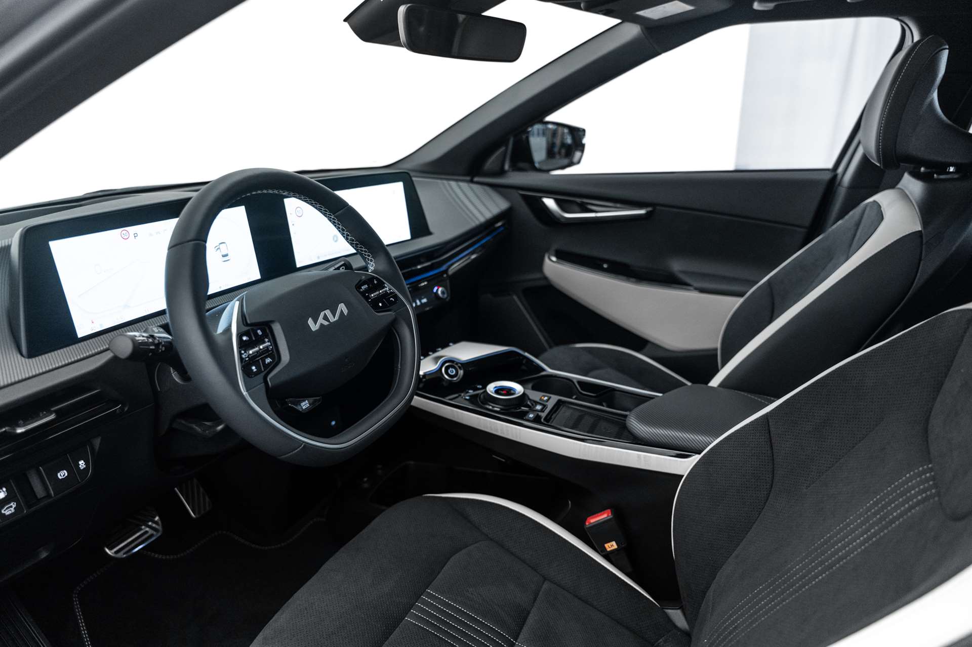 3-Punkt-Sicherheitsgurte an allen Sitzplätzen, vorn höhenverstellbar, Airbag: Airbag Fahrer und Beifahrer, Airbag: Kopfairbags (Vorhang) vorn und hinten, Airbag: Seitenairbags vorn, Ambientebeleuchtung, Antiblockiersystem (ABS), Assist: 360° Monitor Rundumsichtkamera mit 3D Darstellung (SVM), Assist: 360° Monitor Rundumsichtkamera mit 3D Darstellung (SVM), Assist: Aktiv Bremslicht (ESS), Assist: Ausstiegsassistent, Assist: Autobahnassistent (HDA 2.0), Assist: Autonomer Notbremsassistent mit Kreuzungserkennung (FCA-JX), Assist: Autonomer Notbremsassistent mit Abbiegeerkennung (FCA-JX), Assist: Autonomer Notbremsassistent mit Fussgänger- und Fahrraderkennung (FCA), Assist: Berganfahrassistent (HAC), Assist: e-Call automatisches Notrufsystem, Assist: Elektronische Traktionskontrolle (TCS), Assist: Elektronischer Bremskraftverteilung (EBD), Assist: Fahreraufmerksamkeitswarnung, Assist: Ferngesteuerter Parkassistent, Assist: Ferngesteuerter Parkassistent, Assist: Inteligenter Geschwindigkeitsassistent (ISLA), Assist: Intelligenter Tempomat (SCC), Assist: Kollisionsvermeidungsassistent, Assist: Kollisionsvermeidungsassistent, Assist: Lichtsensor, Assist: Multikollisionsbremse, Assist: Parksensoren hinten, Assist: Parksensoren vorn, Assist: Rückfahrkamera, Assist: Spurhalteassistent, Assist: Totwinkel-Assistent, Assist: Totwinkelassistent mit Kollisionsverhinderung hinten (RCCA), Assist: Totwinkelassistent mit Monitoranzeige, Assist: Totwinkelassistent mit Monitoranzeige, Aussenspiegel elektrisch einklappbar, Aussenspiegel elektrisch verstell- und beheizbar, Aussenspiegel in Schwarz, Batterieheizung, Bordcomputer, Dekor: "Geonic" Armaturentafel, Drive Mode Select, Elektrische Handbremse, Elektronisches Stabilitäts-Programm (ESP), Fensterheber elektrisch vorn und hinten, Garantie: Audio-, Entertainment- und Navigationssystem 3 Jahre oder 100'000 km, Garantie: KIA Garantie 12 Jahre gegen Durchrostung, Garantie: KIA Garantie 5 Jahre oder 150'000 km Lackgarantie, Garantie: KIA Garantie 7 Jahre Mobilitätsgarantie, Garantie: KIA Garantie 7 Jahre oder 150'000 km, Garantie: KIA Garantie HV Batterie 7 Jahre oder 150’000 km (was zuerst eintrifft), Gepäckraumbeleuchtung, Getriebe: 1-Gang Getriebe automatisiert, Head-Up-Display mit AR-Funktion, Heckscheibenheizung, Innenraumbeleuchtung, Innenrückspiegel automatisch abblendbar, Insassenalarm, Kindersicherung elektrisch, Klima: 2-Zonen-Klima-Automatik, Klima: Wärmepumpe, Lackierung: Uni Lackierung, Ladeboden variabel, Lenkrad: Lederlenkrad, Lenkrad: Lenkrad beheizbar, Lenkrad: Lenkrad höhen- und tiefenverstellbar, Lenkrad: Schaltwippen hinter dem Lenkrad, Licht: Bi-LED-Scheinwerfer (Intelligentes Scheinwerfer System), Licht: Bi-LED-Scheinwerfer (Intelligentes Scheinwerfer System), Licht: Drittes Bremslicht, Licht: LED-Rückleuchten, Licht: LED-Tagfahrlicht, Licht: Nebelschlussleuchte, Media: 12.3"-Navigationssystem, DAB+, Media: 14 Lautsprecher, Media: Android Auto und Apple CarPlay, Media: Bluetooth mit Sprachsteuerung, Media: Induktive Ladestation für Smartphone, Media: Meridian Soundsystem mit aktiver Klanggestaltung (ASD), Media: Online-Dienste Kia Connect inkl. 7 Jahre, Media: USB-Anschluss, Mittelarmlehne vorne mit Staufach, Mittelkonsole in Klavierlackoptik, Paket: Assistance Pack, Paket: Innovation, Paket: Visibility, Panorama-Glasdach, Pedalerie mit Aluminiumauflage, Polster: Sitzbezüge Wildleder, Räder: Leichtmetallfelgen 20", Räder: Reifendruckkontrollsystem (TPMS), Räder: Tire mobility kit, Radläufe in Wagenfarbe, Regensensor, Servolenkung, Sitze: Beifahrersitz elektr. verstellbar mit Relax-Funktion, Sitze: Beifahrersitz höhenverstellbar, Sitze: Fahrer- und Beifahrersitz elektrisch verstellbar, Sitze: Fahrersitz höhenverstellbar, Sitze: ISOFIX-Kindersitzverankerung hinten, Sitze: Kopfstützen höhenverstellbar vorne und hinten, Sitze: Sitzbelüftung vorne, Sitze: Sitzheizung hinten, Sitze: Sitzheizung vorne, Sitze: Sitzlehne der 2. Sitzreihe umklappbar, asymmetrisch 60:40, Sonnenblende mit Make-up-Spiegel mit Beleuchtung, Start-/Stop-Knopf mit Smart Key, Supervision Cluster digital 12.3", Türen: Verzierung Türen schwarz, Vehicle-to-Load-Funktion (V2L), Vorbereitung Anhängerkupplung, Wärmepumpe, Wegfahrsperre elektronisch, Zentralverriegelung mit Fernbedienung