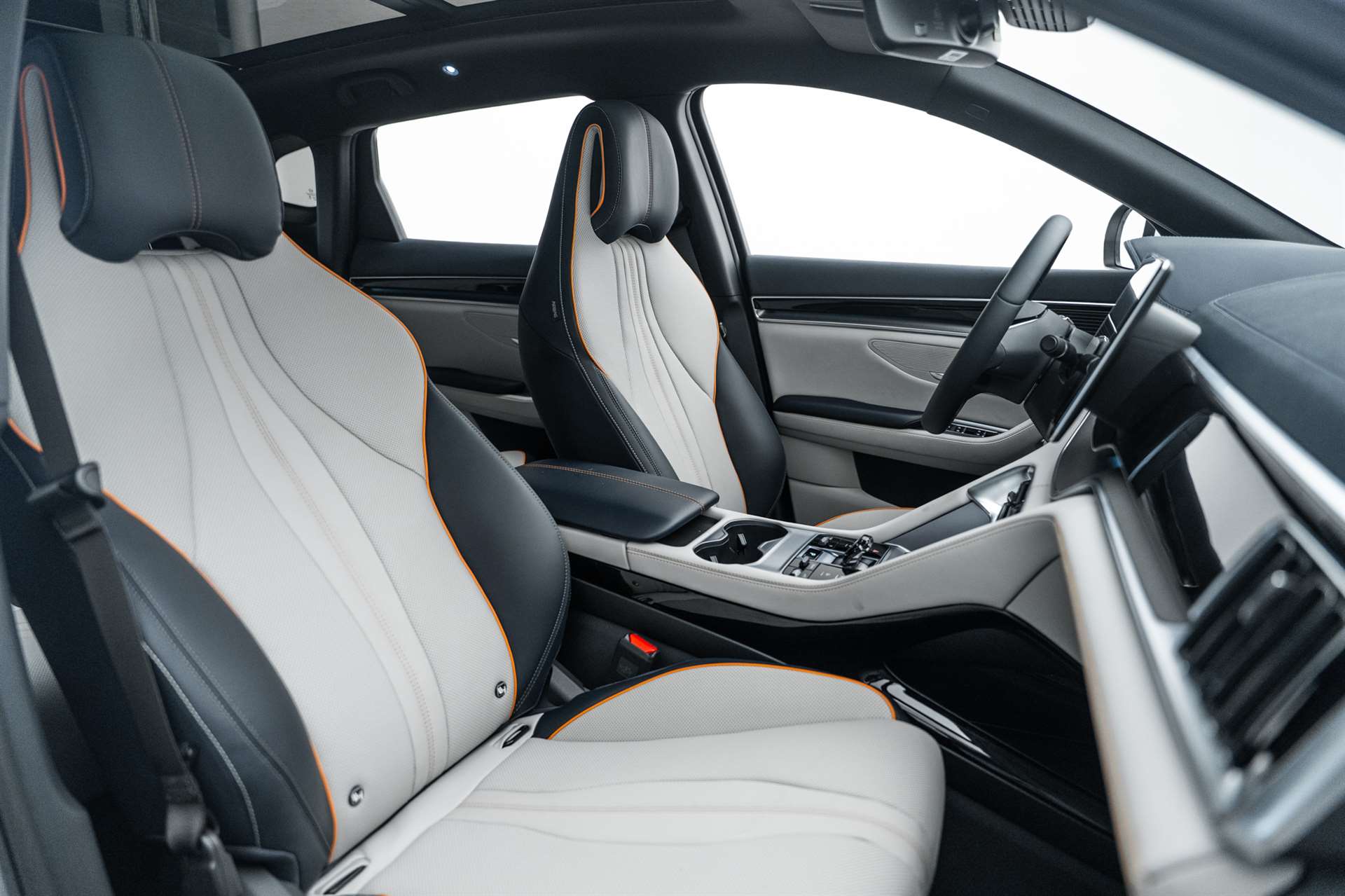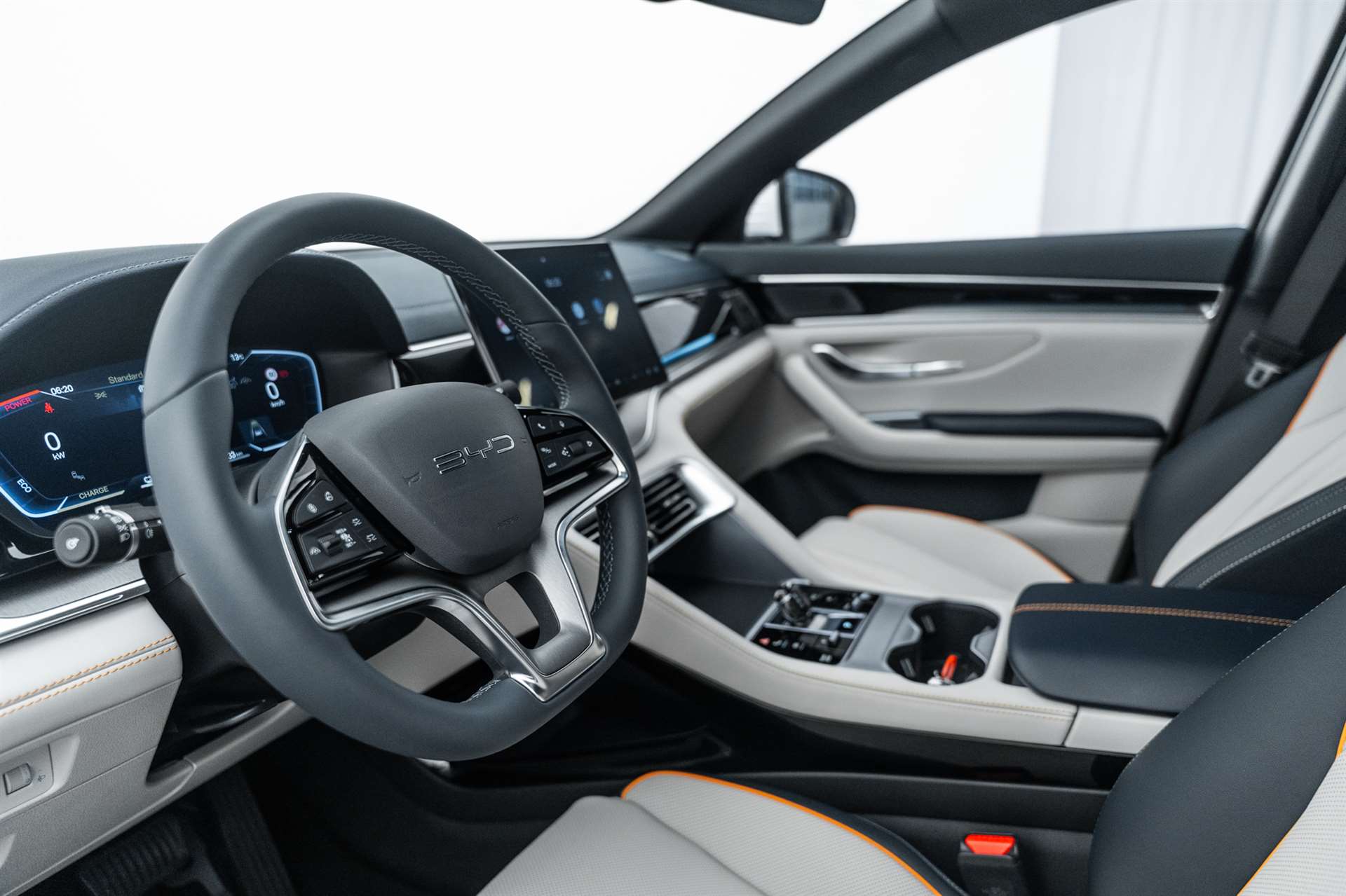 11kW On-Board Charger (OBC), 12-V-Stromanschluss, 2 x Smart Key, 4 x One-Touch-Fensterheber mit Einklemmschutzfunktion, Airbag: Fahrerairbag und Beifahrerairbag, Airbag: Frontairbag in der Mitte, Airbag: Seitenairbags vorn, Airbag: Vorhangairbags, Ambientebeleuchtung, mehrfarbig, Antiblockiersystem (ABS), Armlehne hinten, 2 Getränkehalter, Assist: Spurverlassenswarnung (LDW), Assist: 360° view camera, Assist: Adaptive Geschwindigkeitsregelung (ACC) & Intelligente Geschwindigkeitsregelung (ICC), Assist: Auto Hold, Assist: Automatische Notbremsung (AEB), Assist: Bergabfahrhilfe (HDC), Assist: Berganfahrassistent (HSA), Assist: Comfort Stop (CST), Assist: Elektrische Parkbremse (EPB), Assist: Heckkollisionswarnung (RCW), Assist: Hydraulischer Bremsassistent (HBA), Assist: Kindererkennung (CPD), Assist: Kontrollierte Verzögerung mit Feststellbremse (CDP), Assist: Müdigkeitserkennung für den Fahrer (DFW) und Aufmerksamkeitswarnung für den Fahrer (DFW), Assist: Parksensoren vorne und hinten, Assist: Querverkehrswarnung hinten (RCTA) & Querverkehrsbremse hinten (RCTB), Assist: Querverkehrswarnung vorn (FCTA) & Querverkehrsbremse vorn (FCTB), Assist: Spurhalteassistent (ELKA), Assist: Spurverlassensverhinderung (LDP), Assist: Spurwechselassistent (LCA), Assist: Toter-Winkel-Warnung (BSD), Assist: Traktionskontrolle (TCS), Assist: Überschlagskontrollsystem (RMI), Assist: Verkehrszeichenerkennung (TSR), Assist: Vorwärtskollisionswarnung (FCW), Aussenspiegel elektrisch verstellbar, elektrisch anklappbar, beheizbar, Automatisch abblendender Rückspiegel, Automatisches Verriegelungssystem, Bodenbeleuchtung vorne, Bremsüberbrückungssystem (BOS), Dachreling in Aluminium, Diebstahlsicherung, Dynamische Blinker, Elektrische Heckklappe, Elektronische Bremskraftverteilung (EBD), Elektronische Kindersicherung, ESP (Elektronisches Stabilitätsprogramm), Fahrmodus: Eco, Normal, Sport, Snow, Fahrwerk: Fahrdynamikregelung (VDC), Frontscheibe, Scheibenwischer mit Regensensor, Frontscheibe, UV-Schutz, Wärmedämmung, Schalldämmung, Fussraumbeleuchtung in den Aussenspiegeln, Garantie: Batterie-Garantie 8 Jahre oder 200'000 km, Garantie: Garantie 6 Jahre oder 150'000 km, Gepäckraumleuchte, Getriebe: Direktantrieb, kein Getriebe, Head-up-Display (HUD), ISOFIX und i-Size, Beifahrer- und äussere Rücksitze, Keyless entry & keyless start, Kindersicherung manuell, Klima: Belüftungsdüsen hinten, Kofferraum-Gepäckablage, Kraftbegrenzender Sicherheitsgurt auf dem mittleren Rücksitz, Lackierung: Metallic-Lackierung, LED-Leseleuchten hinten, LED-Leseleuchten vorn, Licht: Fernlichtassistent (HMA), Licht: Follow-me-Home, Licht: LED-Rückleuchten, Licht: LED-Scheinwerfer, automatisches Ein-/Ausschalten, Licht: LED-Tagfahrlicht, Licht: Nebelschlussleuchten, Media: 12,3" TFT-LCD-Instrumententafel, Media: 15,6" elektrisch drehbarer Touchscreen, Media: Android Auto & Apple CarPlay, Media: DAB+ & FM, Media: Infinity-Soundsystem, 10 Lautsprecher, Media: Integrierte 4G-Konnektivität2, Media: Intelligente Sprachsteuerung "Hallo, BYD", Media: Smartphone wireless charging, 2x 15 W, Media: USB-Anschlüsse hinten: 1 x 18W Typ C, 1 x 60 W Typ C, Media: USB-Anschlüsse vorn: 1 x 18W Typ C, 1 x 60 W Typ C, Mehrfarbige LED-Ladeanzeige, Mittelarmlehne hinten, 2 Getränkehalter, Mittelarmlehne vorn, 2 Getränkehalter, Notruf, Panoramadach, elektrisch verstellbares Sonnenschutzrollo, PM2.5 filter, PM2.5-Luftreinigungssystem, Privacy glass in fond, Räder: 19" Bicolor- Leichtmetallfelgen, Reifendruckkontrolle (TPMS), Servolenkung, Sitze: Beifahrersitz belüftet, beheizt, Sitze: Beifahrersitz, elektrisch verstellbar, 4-fach, Sitze: Fahrersitz belüftet, beheizt, gespeicherte Einstellung, Sitze: Fahrersitz und Beifahrer, integrierte Kopfstütze, Sitze: Fahrersitz, elektrisch verstellbar, 8-fach, Positionsspeicher, Sitze: Rücksitze 40:60 geteilt umklappbar, Sitze: Rücksitze, manuell einstellbare Kopfstütze, Türöffnungswarnung (DOW), Vier LED-Türleuchten, Vordersitz-Sonnenblenden mit beleuchtetem Schminkspiegel, Vorgespannte und kraftbegrenzende Sicherheitsgurte vorn, Wärmepumpe