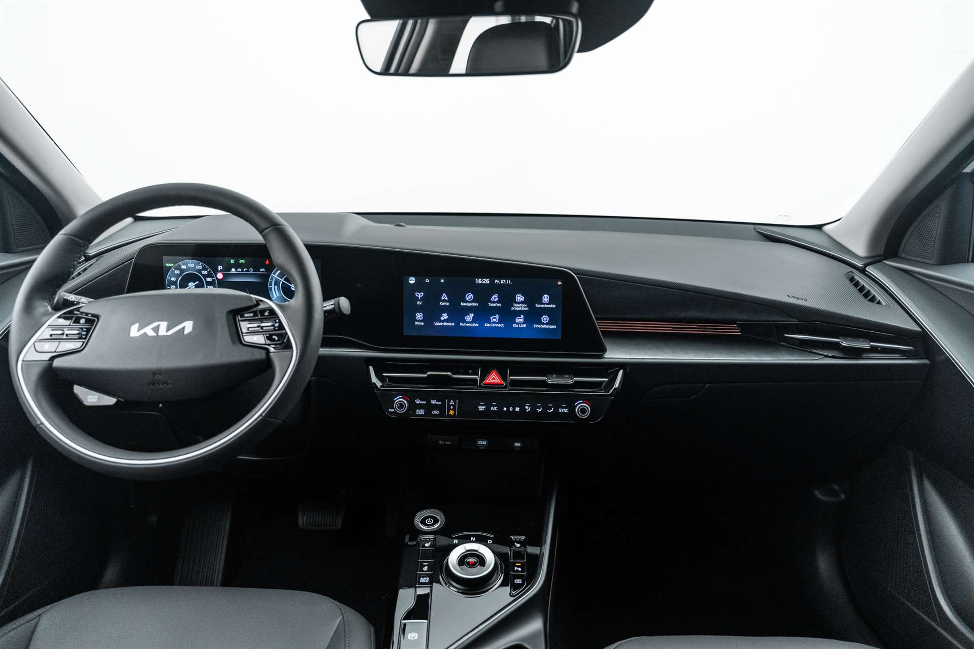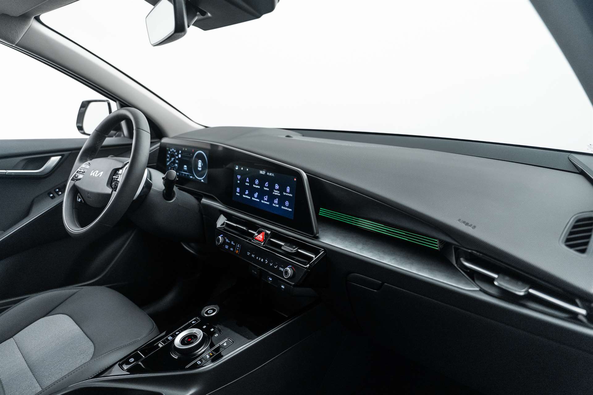 Airbag: Airbag Fahrer und Beifahrer, Beifahrerairbag abschaltbar, Airbag: Center Airbag (zwischen Fahrer und Beifahrer), Airbag: Knie-Airbag, Airbag: Kopfairbags (Vorhang) vorn und hinten, Airbag: Seitenairbags vorn, Antiblockiersystem (ABS), Assist: Autonomer Notbremsassistent mit Abbiegeerkennung (Drive Wise FCA 1.5), Assist: Berganfahrassistent (HAC), Assist: e-Call automatisches Notrufsystem, Assist: Elektronische Traktionskontrolle (TCS), Assist: Fernlichtassistent, Assist: Inteligenter Geschwindigkeitsassistent (ISLA), Assist: Intelligentes regeneratives Bremssystem (SRBS 2.0), Assist: Lichtsensor, Assist: Müdigkeitserkennung, Assist: Parksensoren hinten, Assist: Rückfahrkamera, Assist: Spurfolgeassistent (LFA), Assist: Spurhalteassistent, Assist: Tempomat mit Distanzassistent, Aussenspiegel elektrisch verstell- und beheizbar, Aussenspiegel in Wagenfarbe, Design-Elemente (Stossstange, Radläufe und Seitendekor) in Kunststoff Schwarz, Drive Mode Select, Elektrische Handbremse, Elektronisches Stabilitäts-Programm (ESP), Fensterheber elektrisch vorn und hinten, Frontscheibe mit integrierter Akustikfolie, Gangwahl-Drehschalter, Garantie: Audio-, Entertainment- und Navigationssystem 3 Jahre oder 100'000 km, Garantie: KIA Garantie 12 Jahre gegen Durchrostung, Garantie: KIA Garantie 5 Jahre oder 150'000 km Lackgarantie, Garantie: KIA Garantie 7 Jahre Mobilitätsgarantie, Garantie: KIA Garantie 7 Jahre oder 150'000 km, Garantie: KIA Garantie HV Batterie 7 Jahre oder 150’000 km (was zuerst eintrifft), Gepäckraumbeleuchtung, Getränkehalter in der Mittelkonsole, Getriebe: Direktantrieb, kein Getriebe, Heckscheiben-Wisch-/Waschanlage, Heckscheibenheizung, Insassenalarm, Klima: Klimaautomatik 2-Zonen, Lackierung: Uni Lackierung, Lenkrad: Lenkrad höhen- und tiefenverstellbar, Lenkrad: Multifunktionslenkrad, Lenkrad: Schaltwippen hinter dem Lenkrad, Licht: Drittes Bremslicht, Licht: Halogenscheinwerfer, Licht: LED-Rückleuchten, Licht: LED-Tagfahrlicht, Licht: Nebelschlussleuchte, Media: 10.25"-Navigationssystem, DAB+, Media: 6 Lautsprecher, Media: Android Auto und Apple CarPlay, Media: Bluetooth Freisprecheinrichtung, Media: Online-Dienste Kia Connect inkl. 7 Jahre, Media: USB-Anschluss, Media: USB-Anschlüsse Rücksitzlehnen, Mittelarmlehne vorne mit Staufach, On-Board-Charger (3 Phasen), Polster: Sitzbezüge Stoff, Räder: 4 Leichtmetallfelgen 7 J × 17", Räder: Reifendruckkontrollsystem (TPMS), Räder: Tire mobility kit, Servolenkung, Sitze: Beifahrersitz höhenverstellbar, Sitze: Fahrersitz höhenverstellbar, Sitze: ISOFIX-Kindersitzverankerung hinten, Sitze: Kopfstützen höhenverstellbar vorne und hinten, Sitze: Sitzlehne der 2. Sitzreihe umklappbar, asymmetrisch 60:40, Sitze: Tasche an der Rücksitzlehne Beifahrersitz, Sonnenblende Fahrer und Beifahrerseite, Start-/Stop-Knopf mit Smart Key, Supervision Cluster digital 10.25", Vorbereitung Anhängerkupplung, Wegfahrsperre elektronisch, Zentralverriegelung mit Fernbedienung