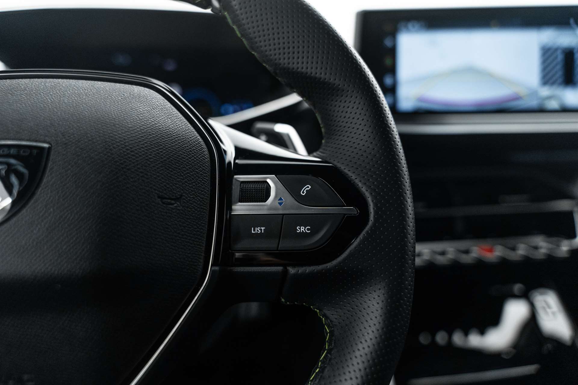 3-Tasten-Fernbedienung + Standardschlüssel, Airbag: Fahrer und Beifahrer Frontairbags, Seitenairbags für Fahrer und Beifahrer vorn und hinten, Assist: Adaptiver Geschwindigkeitsregler mit Stop & GO-Funktion, Assist: Aktiver Warnhinweis auf unbeabsichtigtes Überfahren von Linie und Strassenrand, Assist: Automatische Sicherheitsbremse, Assist: Erweiterte Verkehrszeichenerkennung und Geschwindigkeitsempfehlung, Assist: Müdigkeitswarner mit Kamera, Assist: Rückfahrkamera HD, Assist: Spurhalteassistent (Lane Positioning Assist), Assist: Tempomat / Geschwindigkeitsbegrenzer, Assist: Visuelle und akustische Einparkhilfe vorn und hinten, Aussenspiegel elektrisch anklappbar, Aussenspiegel elektrisch verstell- und beheizbar, Aussenspiegelgehäuse in glänzendem Schwarz, Automatische Verriegelung aller Türen beim Fahren, Automatischer Frontwischer, Befestigung für zwei Kindersitze nach ISOFIX-Standard auf den Rücksitzen, inklusive Top Tether, Blende zwischen den Heckleuchten im glänzendem Schwarz, Dachkantenspoiler in glänzendem Schwarz, Dekor: Armaturenbrett aus Schaumstoff mit Doppelsteppnähten, Elektrische und sequenzielle Fensterheber vorn und hinten mit Klemmschutz, Elektronische Stabilitätskontrolle (ESP) mit Traktionskontrolle (ASR), ABS (Antiblockiersystem), Fahrwerk: Fahrmodus-Schalter Normal/Eco/Sport, Fussmatten vorn und hinten mit Ziernähte Grün Adamite, Garantie: 12 Jahre Korrosionsschutzgarantie, Garantie: 3 Jahre / 100'000 km Garantie auf Teile, Arbeit, Getriebe: 6-Stufen-Automat sequentiell, Hintere Seitenscheiben und Heckscheibe getönt, Höhenverstellbare Kopfstützen an Fahrer Fahrer-und Beifahrersitz sowie Rücksitzen, Innenraum und Dachhimmel Schwarz Mistral, Innenspiegel automatisch abblendbar, Klima: Automatische Einzonen-Klimaanlage, Kühlergrill in Schwarz mit Details in Wagenfarbe, Lamellen in Dark Chrome, Lackierung: Metallic-Lackierung, Lenkrad: Kompaktes Lenkrad aus perforiertem Vollnarbenleder mit GT-Badge, Lenkrad: Lenkrad in Höhe und Weite verstellbar, Lenkrad: Lenkrad mit integrierten Bedienelementen, Licht: 3-Krallen-LED-Rückleuchten, Licht: Ambientebeleuchtung in 8 Farben, Licht: Automatische Umschaltung Fernlicht/Abblendlicht, Licht: Automatisches Abblendlicht, Licht: Drittes Bremslicht, Licht: Innenbeleuchtung : Deckenleuchte vorne (1 Lampe und 2 Leseleuchten) +, Licht: LED Blinker vorne, Licht: LED-beleuchteter Make Make-up - Spiegel in der Sonnenblende, Licht: LED-Beleuchtung im unteren Bereich des hinteren Stauraums und der Fussräume, Licht: Nebelschlussleuchte, Licht: Scheinwerfer mit Peugeot Full LED Technology und LED-Tagfahrlicht im 3-Krallen Design, Media: 6 Lautsprecher, Media: Kabellose Mirror Screen ( Apple Car Play / Android Auto ), Media: Kabellose Smartphone-Aufladung (15 W), Media: Peugeot i-Cockpit 3D mit digitalem 10-Zoll-Kombiinstrument, Media: PEUGEOT i-Connect, Media: PEUGEOT i-Connect Advanced, Mittelkonsole mit integrierter Armlehne und elektrischer Parkbremse inkl. Berganfahrhilfe, Netze an der Rückenlehne der Vordersitze, Ohne Werkzeug abnehmbare Anhängerkupplung, Paket: Paket Safety, Paket: Paket Safety Plus, Paket: Visio Park 1, Paket: Visio Park 2, Pausenwarner, Pedale aus Aluminium, Peugeot Connect SOS & Assistenz, Polster: Alcantara Mistral ICONIUM mit Kuntslederbegleitung Isabella, Tri-Material Alcantara schwarz, Polster: Stoff BELOMKA mit Kunstlederbegleitung Isabella,, Räder: 17-Zoll-Leichtmetallfelgen YANAKA, Räder: Indirekte Reifenluftdruckkontrolle, Räder: Notrad, Schlüsselloses Zugangs- und Startsystem Proximity, Servolenkung elektrisch, Sicherheitsgurte hinten, mit progressiven Kraftbegrenzern, Sicherheitsgurte vorne mit pyrotechnischer Haspel mit Gurtstraffern und Kraftbegrenzern, Sitze: Beifahrersitz höhenverstellbar, Sitze: Beifahrersitz mit manueller Höhenverstellung, beheizbar, Sitze: Elektrisch verstellbarer, beheizbarer Fahrersitz mit Massagefunktion, Sitze: Umklappbare Rücksitzbank 1/3 - 2/3, Türschwellen vorn mit PEUGEOT-Signatur, Türverkleidungen vorne mit Carbon Dekor und Zierleiste schwarz glänzend, Untere und obere Heckschürze Schwarz glänzend, Verchromte Dekorauspuffendblenden, Vordere Einstiegsleisten aus Aluminium mit PEUGEOT-Signatur, Wegfahrsperre elektronisch, Zentralverriegelung mit Fernbedienung, Zierleiste für Seitenfenster und Radkästen Schwarz glänzend