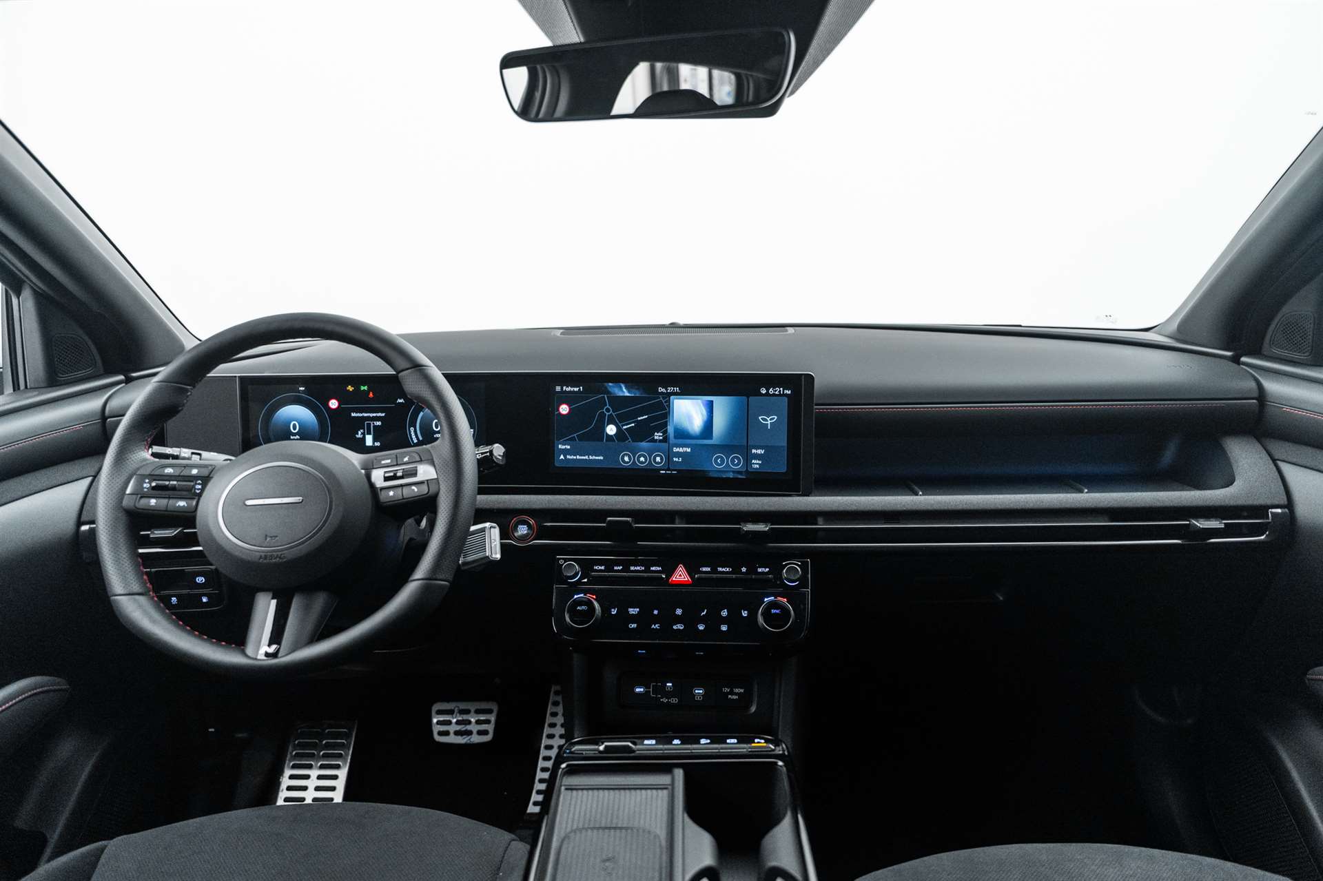 ABS mit elektronischer Bremskraftverteilung EBD, Airbag: Center Airbag vorne, Airbag: Deaktivierung Frontairbag Beifahrerseite, Airbag: Front- und Seitenairbags vorne, Vorhangairbags vorne und hinten, Alarmanlage, Ambientebeleuchtung, Assist: Aktiver Totwinkelassistent, Assist: Anfahralarm Vorderfahrzeug, Assist: Aufmerksamkeitsassistent, Assist: Bergabfahrhilfe (DAC), Assist: Berganfahrhilfe, Assist: Einparkhilfe vorne und hinten, Assist: Elektrische Parkbremse mit Auto-Hold-Funktion, Assist: Elektronische Traktionskontrolle, Assist: Navigationsbasierter adaptiver Tempomat, Assist: Notbremsassistent mit Fussgänger-/Fahrraderkennung und Abbiegefunktion, Assist: Querverkehrswarner hinten mit Bremsassistent, Assist: Rückfahrkamera, Assist: Spurfolgeassistent, Assist: Spurhalteassistent, Assist: Verkehrszeichenerkennung, Assist: Verkehrszeichenerkennung mit automatischer Geschwindigkeitsregelung, Aussenspiegel mit Welcome-Light, Aussenspiegel und Türgriffe in Wagenfarbe, Aussentemperaturanzeige, Automatisch abblendender Innenspiegel, Automatisches Notrufsystem eCall, Bordcomputer, Dachreling, Dreipunkt-Sicherheitsgurte auf allen Plätzen, vorne höhenverstellbar, Drive Mode Select (2 Fahrmodi), Elektrisch einklappbare Aussenspiegel, Elektrisch verstell- und beheizbare Aussenspiegel, Elektrische Fensterheber vorne + hinten, Elektronische Gangschaltung (Shift by wire), Elektronisches Stabilitätsprogramm ESP mit Multikollisionsbremse, Fahrtrichtungsanzeiger mit Antippfunktion, Fahrwerk: Terrain Mode Selector, Garantie: 5 Jahre ohne Kilometerbegrenzung, Garantie: Garantie 12 Jahre gegen Durchrostung, Garantie: Hochvoltbatterie: 8 Jahre / 160 000 km, Gepäcknetz, Getriebe: 6-Gang Automatikgetriebe, Insassenalarm, ISOFIX Kindersitzvorrichtung, Klima: 2-Zonen-Klimaautomatik mit Anti-Beschlagsystem, Lackierung: Uni-Lackierung Engine Red, Lenkrad; Lederlenkrad und -schaltknauf, Lenkrad: Audiofernbedienung am Lenkrad, Lenkrad: Lenkrad beheizbar, Lenkrad: Lenkrad vertikal und axial verstellbar, Lenkrad: Lenkrad-Wippschaltung (Paddles), Licht: Fernlichtassistent, Licht: LED Rückleuchten, Licht: LED-Projektionsscheinwerfer, Licht: LED-Tagfahrlicht, Licht: Lichtautomatik, Media: 8 Lautsprecher, Media: Digitalradio DAB+, USB-C Anschlüsse (2 vorne / 2 hinten), Media: Kabellose Android Auto - und Apple CarPlay-Funktion, Media: Kabelloses Laden für Smartphone, Media: Mapcare Lifetime, Media: Multi-Bluetooth mit Freisprecheinrichtung, Media: Navigationssystem mit 12.3"-Farbdisplay, Media: Premium Audiosystem Krell, Media: Supervision Armaturentafel mit 12.3" TFT LCD Anzeige, Media: Telematikdienst Bluelink Lite und LIVE Services (10 Jahre gratis), Mittelarmlehne hinten, Mittelarmlehne vorne, Paket: Autobahn- und Stauassistent:, Polster: Stoffsitze, Privacy Glass, abgedunkeltes Scheibenglas hinten (ab B-Säule), Räder: 18'' Leichtmetallfelgen, Räder: Reifendruck-Kontrollsystem High Line, Räder: Reifenreparatur-Set, Regensensor, Schlüsselloses Zugangssystem Smart Key mit Engine Start/Stop-Taste, Servolenkung geschwindigkeitsabhängig, Sicherheitsgurte mit Straffern und Gurtkraftbegrenzern vorne, Sitze: Manuell höhenverstellbarer Fahrer- und Beifahrersitz, Sitze: Rücksitze getrennt abklappbar (40/20/40), Sitze: Rücksitzlehne verstellbar, Sitze: Sitzheizung vorne, Start-/Stopp-Automatik, UV-absorbierende Scheiben vorne, Zentralverriegelung mit Fernbedienung