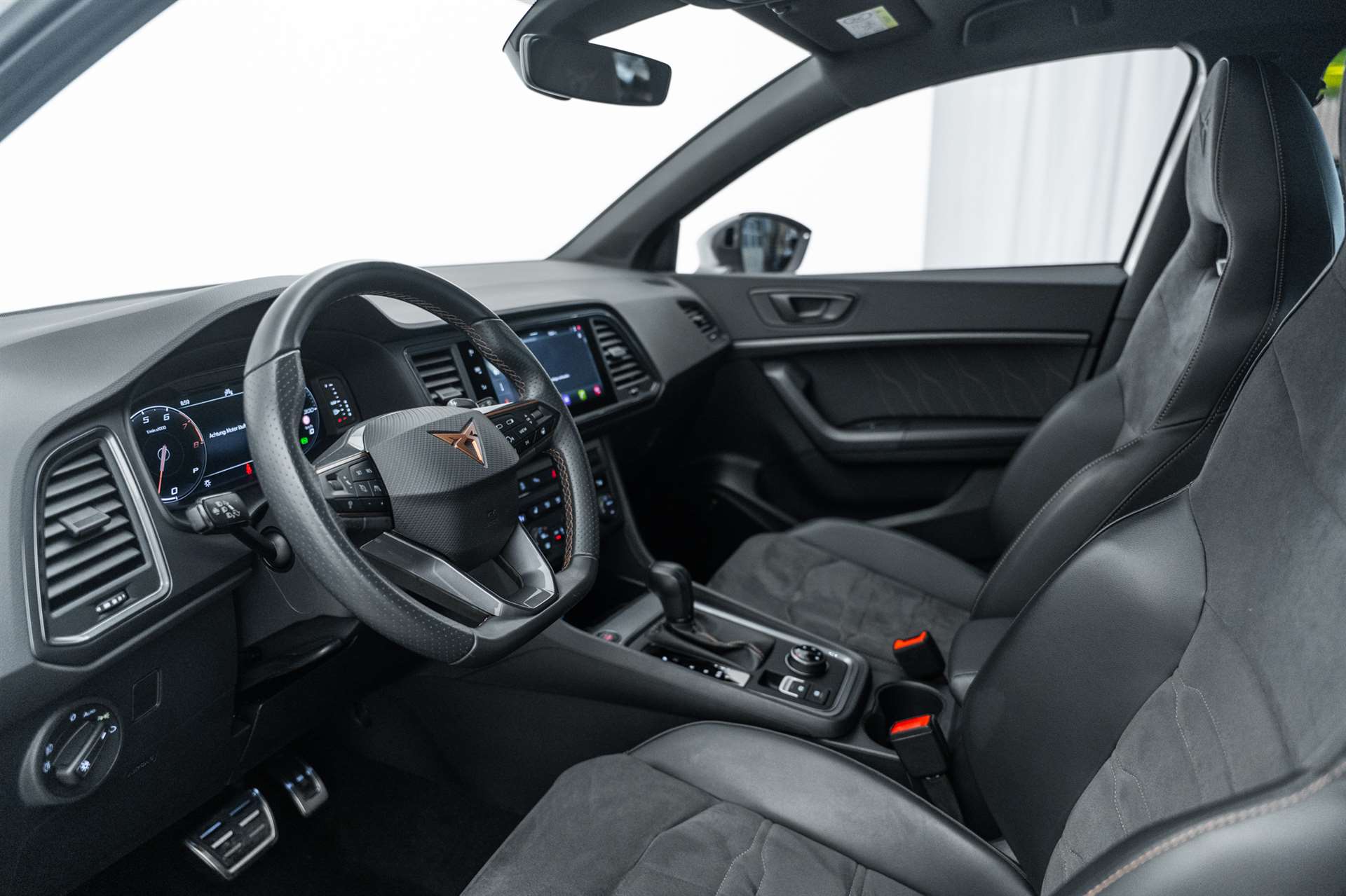 Paket: Elektrikpaket-, 230-Volt und 12-Volt Steckdose im Kofferraum, CUPRA Mobilität Plus, Variabler Ladeboden, Netztrennwand, Assist: Trailer Assist, Räder: Alufelgen 8J x 19", "EXCLUSIVE" 36/1 Machined in Copper (245/40 R19), Paket: Winterpaket 2, Athermisch beschichtete und beheizbare Windschutzscheibe, Sitze: Fahrersitz elektrisch einstellbar, Garantie: Cupra Hersteller-Garantieverlängerung für das 3. und 4. Jahr / max. 80000 km, Heckklappe elektrisch öffnend und schliessend "Virtual Pedal", Räder: Alufelgen 8J x 19", "EXCLUSIVE" 36/2 Machined Aerowheels in Sport Black Matt, Lenkrad: Supersportlenkrad mit Start-/ Drive Profile-Knopfsystem und Schaltwippen, Garantie: Cupra Hersteller-Garantieverlängerung für das 3., 4. und 5. Jahr / max.100000 km, Lackierung: Metallic-Lackierung, Räder: Alufelgen 8J x 19", "EXCLUSIVE" 36/2 Machined in Silver (245/40 R19), Räder: Alufelgen 8J x 19", "EXCLUSIVE" 36/5 Machined Aerowheels in Copper, Polster: Lederausstattung mit Sportsitzen vorne "black", Polster: Lederausstattung mit Sport-Schalensitze vorne "petrol blue", Anhängevorrichtung (Einklappbar), Paket: CUPRA Ateca Pack, Lenkrad: Supersportlenkrad mit Start-/ Drive Profile-Knopfsystem und Schaltwippen, Paket: Fahrerassistenzpaket XL, Sitze: Fahrersitz elektrisch einstellbar, Paket: Elektrikpaket-, Räder: Alufelgen 8J x 19", "EXCLUSIVE" 36/3 Machined in Copper (245/40 R19), Lackierung: Metallic-Lackierung, Panorama-Schiebe-/Ausstelldach, CUPRA Service, CUPRA Räder, CUPRA ServicePLUS, Paket: Performance Brembo Bremssättel vorne, CUPRA Räder Plus, CUPRA Reifen, CUPRA Reifen Plus