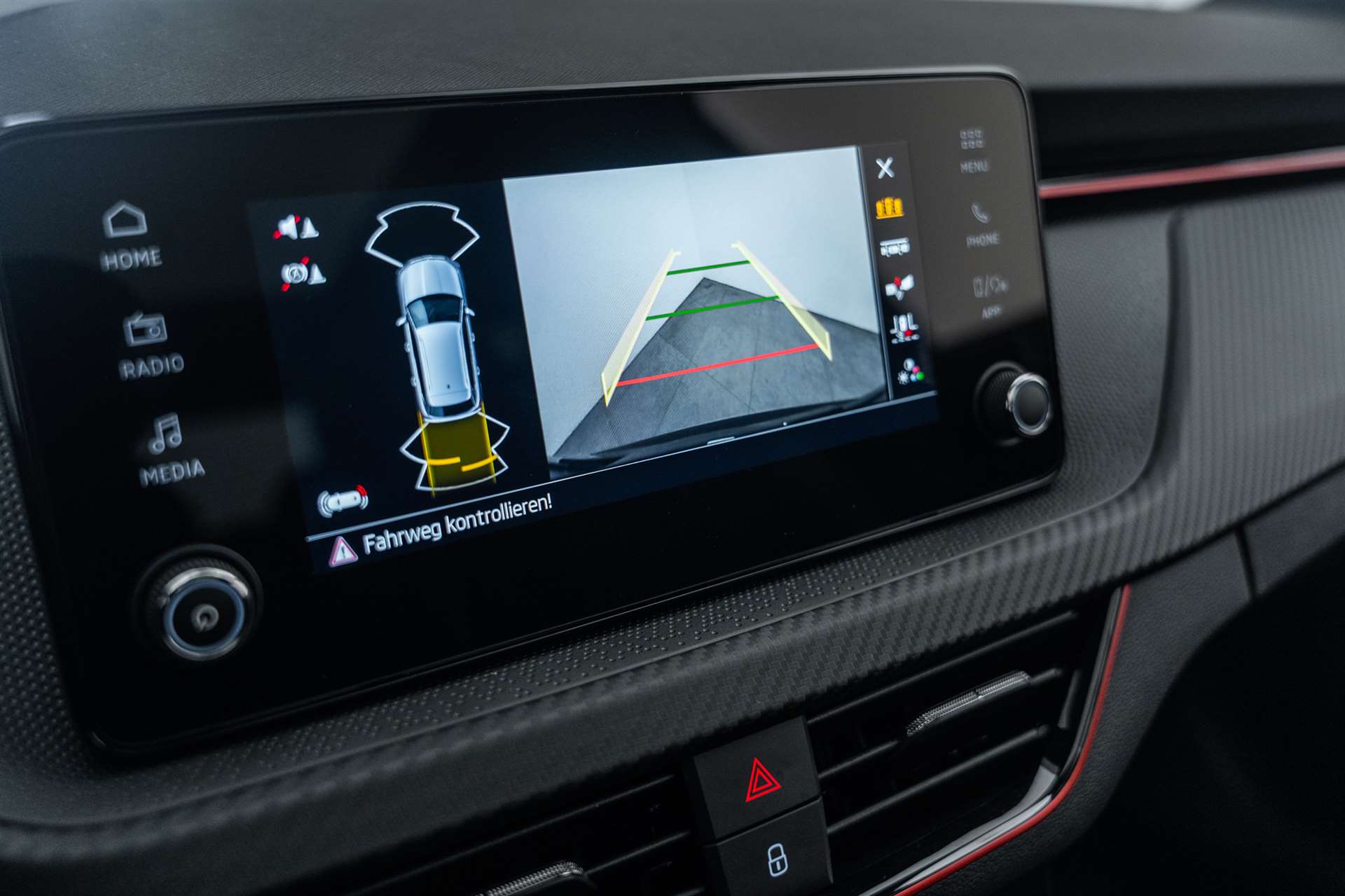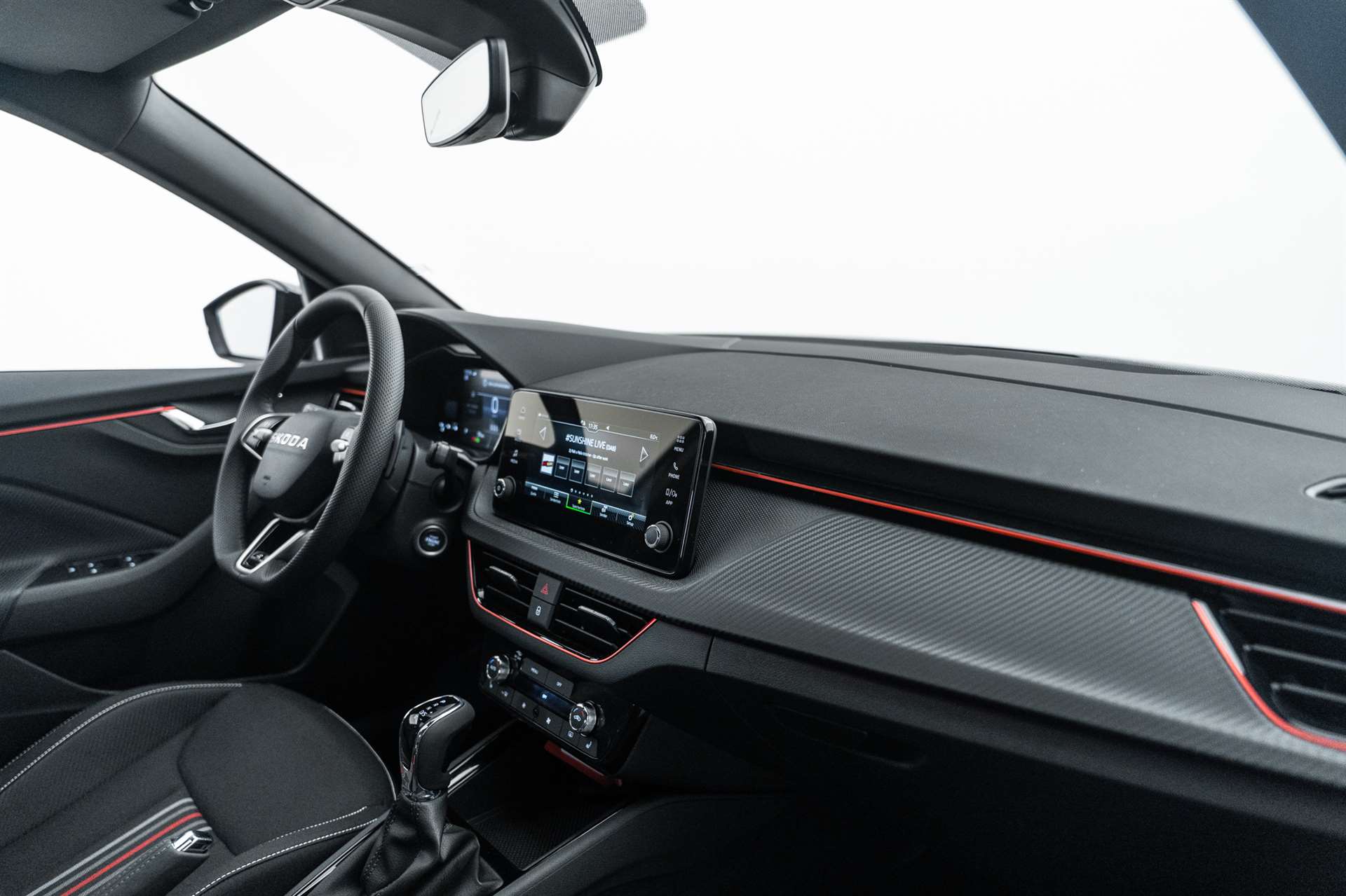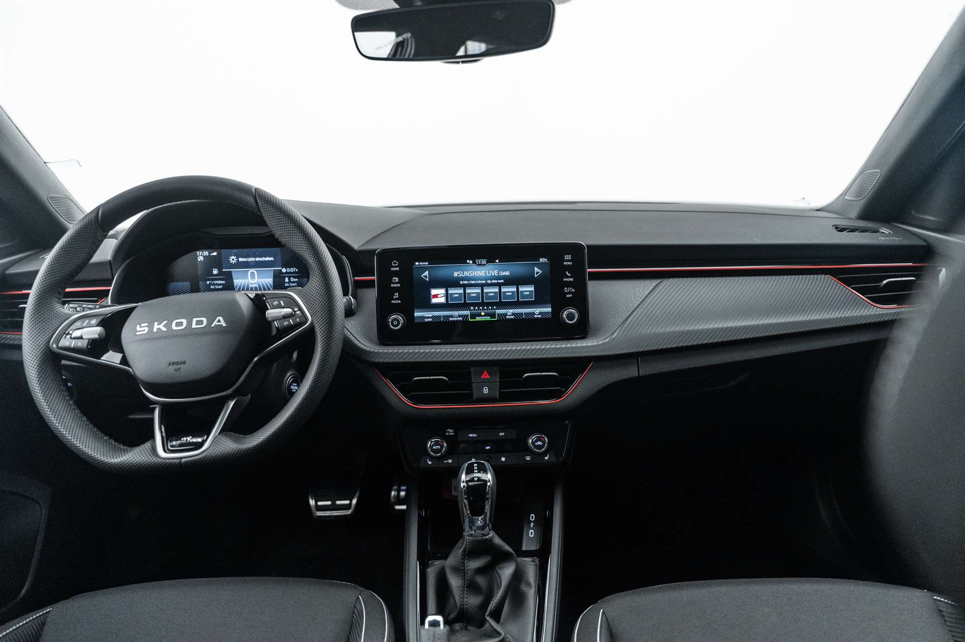 3-Punkt-Sicherheitsgurte auf allen Plätzen, ABS mit ASR und EDS, Airbag: Airbag Beifahrer deaktivierbar, Airbag: Airbag Fahrer und Beifahrer, Airbag: Kopf- und Seitenairbags vorne, Airbag: Kopf- und Seitenairbags vorne, Ambiente Beleuchtung 2-farbig, Assist: Ablenkungs- und Müdigkeitserkennung, Assist: Berganfahrassistent, Assist: Front Assistant inkl. City-Notbremsfunktion, Assist: Geschwindigkeitsregelanlage (Tempomat), Assist: Parksensoren hinten, Assist: Regensensor mit Lichtassistent (Coming Home, Leaving Home, Tunnel Light), Assist: Spurhalteassistent "Lane Assist", Assist: Verkehrszeichenerkennung, Aussenspiegel elektrisch einstell-, beheiz- und anklappbar, automatische Abblendung Fahrerseite, Aussenspiegel in schwarz lackiert, Aussenspiegel rechts und links beheizbar und elektrisch verstellbar, Chromrahmen am Kühlergrill, Dachhimmel schwarz, Dachreling schwarz-lackiert, Design Monte Carlo, Drehzahlmesser, Drittes Bremslicht LED, EASY START, Elektrische Fensterheber vorne + hinten, Elektronisches Stabilitäts-Programm (ESP), Emergency Call (Notruf), ESC (Elektronische Stabilisierungskontrolle) mit Multikollisionsbremse, ABS und ASR, Fahrprofilauswahl "Driving Mode Selection", Fahrprofilauswahl "Driving Mode Selection", Getriebe: 7-Gang DSG, Gurtanlegesignalisation für alle Passagiere, Heckscheiben-Wisch-/Waschanlage, Heckscheibenheizung, Innenspiegel automatisch abblendbar, Klappbare Gepäckhaken im Kofferraum, Klima: Klimaanlage "Climatronic", 2-Zonen-Temperaturregelung, vollautomatisch, getrennt regelbar, Kühlergrill schwarz lackiert, Lackierung: Uni-Lackierung, Lenkrad: 3-Speichen-Sport-Leder-Multifunktionslenkrad mit Schaltwippen (DSG), Lenkrad: 3-Speichen-Sport-Leder-Multifunktionslenkrad mit Schaltwippen (DSG), beheizbar und HOD, Lenkrad: 3-Speichen-Sport-Leder-Multifunktionslenkrad mit Schaltwippen (DSG), beheizbar und HOD, Licht: Easy Light Assist (automatische Lichtschaltung, Coming Home, Leaving Home), Licht: LED Rückleuchten mit dynamischer Blinkleuchte, Licht: LED-Tagfahrlicht, Licht: Nebelscheinwerfer mit Cornering-Funktion, Licht: Voll-LED-Matrix-Scheinwerfer und AFS (Adaptive Frontlight System), Media: 2 USB-C Anschlüsse im Fond, Media: 2 USB-C Anschlüsse vorne, Media: 4 zusätzliche Lausprecher hinten, Media: 4 zusätzliche Lausprecher hinten, Media: DAB - Digitaler Radioempfang, Media: Infotainment Online 3 Jahre + "Care Connect" (Remote Access 3 Jahre), Media: Skoda Infotainment 8.25", Media: SmartLink (CarPlay und Android Auto), Media: SmartLink (CarPlay und Android Auto), Media: Telefonvorbereitung mit Bluetooth, Mittelarmlehne hinten mit Doppel Getränkehalter und ohne Durchladefunktion, Mittelarmlehne hinten mit Doppel Getränkehalter und ohne Durchladefunktion, Mittelarmlehne vorne inkl. grosser Jumbo-Box, Paket: Black Paket, Paket: Light and View Plus Paket, Paket: Open Sky Paket, Paket: Winter Paket, Panoramadach, Polster: Sportsitzbezüge Stoff schwarz, teilweise Carbon-Optik und roten und grauen Streifen, Räder: Leichtmetallräder 17" "Kajam Aero" schwarz mit schwarzer Aero-Blende, Räder: Pannenset (Kompressor und Flasche mit Dichtmittel, ohne Reserverad), Räder: Reifendruckkontrollsystem, Seitliche Luftführungen im Stossfänger vorne schwarz lackiert, Servolenkung, Sitze: 3 Kopfstützen hinten, Sitze: ISOFIX-Vorbereitung und Top-Tether, Sitze: Rücksitzlehne geteilt umklappbar (60:40), Sitze: Vordersitze heizbar, Sitze: Vordersitze höhenverstellbar, SKODA Garantie: Anschlussgarantie 1 Jahr, max. 100000 km, SKODA Neuwagen-Garantie: 2 Jahre ohne Kilometerbegrenzung, SunSet (Heckscheibe und hintere Seitenscheiben dunkel getönt), SunSet (Heckscheibe und hintere Seitenscheiben dunkel getönt), Textilfussmatten vorne und hinten, Türgriffe aussen in Wagenfarbe, Virtuelles Cockpit Basic, Waschwasser-Standanzeige, Wegfahrsperre elektronisch