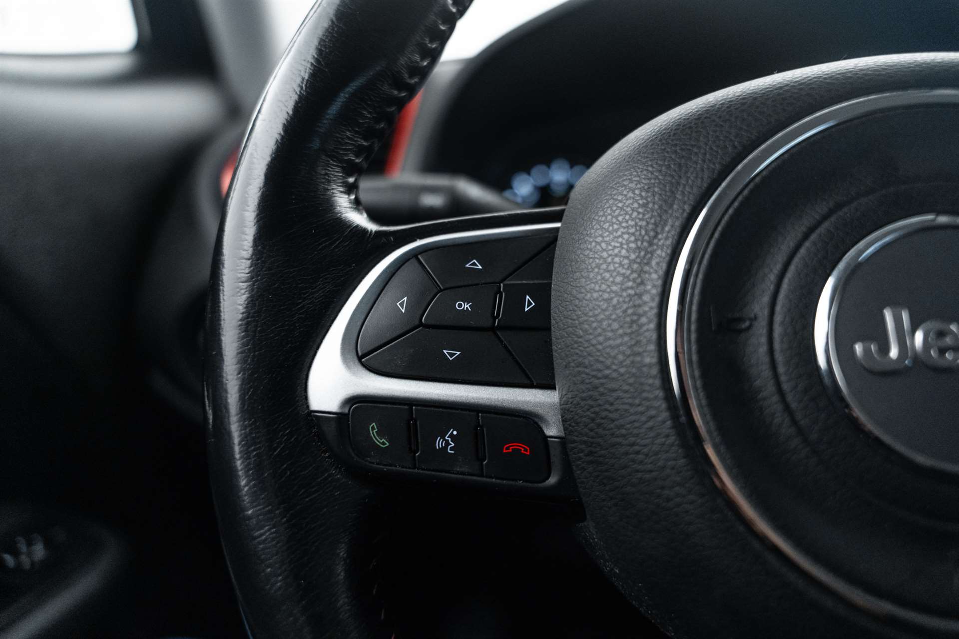 3-Punkt-Sicherheitsgurte auf allen Plätzen, Airbag: Airbag Beifahrer deaktivierbar, Airbag: Airbag Fahrer und Beifahrer, Airbag: Seitenairbag für Fahrer und Beifahrer, Airbag: Window-Kopfairbags, Allradantrieb permanent, Antiblockiersystem (ABS), Antriebsschlupfregelung (ASR), Assist: Bergabfahrassistent, Assist: Berganfahrhilfe - Hill Start Assist, Assist: Einparkhilfe vorne und hinten, Assist: Spurhalteassistent Lane Assist, Assist: Tempomat mit Geschwindigkeitsbegrenzer, Auspuffblende, verchromt, Aussenspiegel in Wagenfarbe, Aussenspiegel rechts und links beheizbar und elektrisch verstellbar, Blinker in Aussenspiegel, Bordcomputer, Dachreling schwarz, Drehzahlmesser, Elektrische Fensterheber hinten, Elektrische Fensterheber vorne, Elektronische Parkbremse, Garantie: Garantie 3 Jahre ohne Kilometerbegrenzung (ab 1. Inv.), Getönte Scheiben Privacy, Getriebe: 9-Stufen-Automat sequentiell, Gurtstraffer vorne, ISOFIX Kindersitzvorrichtung, Jeep Gratis-Service 3 Jahre, max., Kartentaschen an den Rückenlehnen, Klima: 2-Zonen-Klimaautomatik, Kühlergrill mit Designelemente, Lackierung: Uni-Lackierung, Lenkrad: Lederlenkrad, Lenkrad: Lenkrad längs- und höhenverstellbar, Lenkrad: Multifunktionslenkrad, Licht: Adaptives Bremslicht, Licht: Ambiente Beleuchtung LED, Licht: Nebelscheinwerfer, Licht: Nebelschlussleuchte, Media: Digitaler Radioempfang (DAB/DAB+), Media:6 Lautsprecher, Media:Uconnect Multimedia: 7'' mit, Mittelarmlehne vorne mit Ablagefach, Modellbezeichnungen (Logo & Model), Multifunktions Touchscreen, Partikelfilter und Oxydationskatalysator, Pollenfilter (Staubfilter), Räder: 4 Leichtmetallfelgen 17J mit Pneu, Räder: Reifendruck-Kontrollanzeige, Räder: Reifenreparatur-Set (Tire Fit), Raucherpaket, Schalthebelknauf aus Leder, Servolenkung, Sitze: 3 Kopfstützen hinten, Sitze: Beifahrerlehne umklappbar, Sitze: Einstellbare Lendenwirbelstütze für den Fahrersitz, Sitze: Fahrersitz manuell einstellbar, Sitze: Rücksitzlehne geteilt abklappbar, Spezielle Stoff-Ausstattung, Start/Stop-Funktion, Steckdose 12V, Steckdose im Kofferraum, Türgriffe in Wagenfarbe, Überrollschutzsystem, Unterfahrschutz, USB-Anschluss, Warnblinkautomatik bei Vollbremsung, Wegfahrsperre elektronisch, Zentralverriegelung mit Fernbedienung