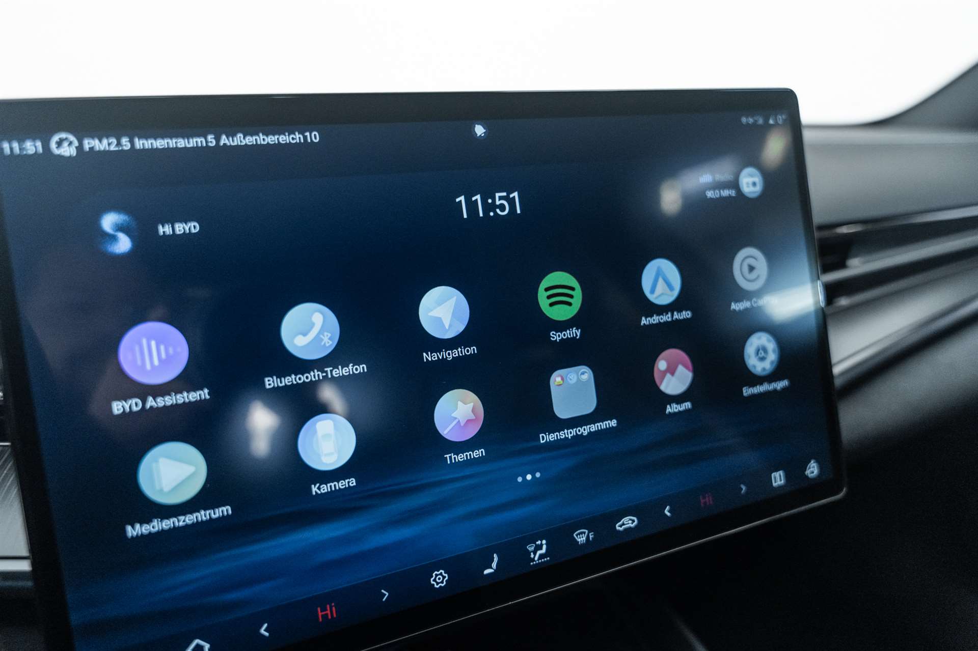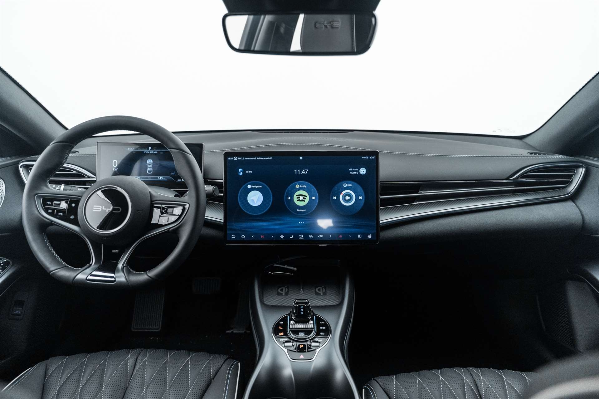 11kW On-Board Charger (OBC), 12-V-Stromanschluss, 2 x Smart Key & 1 x NFC-Schlüssel, Airbag: Fahrerairbag und Beifahrerairbag, Airbag: Frontairbag in der Mitte, Airbag: Seitenairbags vorn und hinten, Airbag: Vorhangairbags, Ambientebeleuchtung, mehrfarbig, Antiblockiersystem (ABS), Armlehne hinten, 2 Getränkehalter, Assist: 360° view camera, Assist: Adaptive Geschwindigkeitsregelung (ACC) & Intelligente Geschwindigkeitsregelung (ICC), Assist: Auto Hold, Assist: Automatische Notbremsung (AEB), Assist: Berganfahrassistent (HSA), Assist: Elektrische Parkbremse (EPB), Assist: Fahreraufmerksamkeitswarnung (DAW), Assist: Heckkollisionswarnung (RCW), Assist: Intelligente Geschwindigkeitsbegrenzungsinformation (ISLI), Assist: Kindererkennung (CPD), Assist: Parksensoren vorne und hinten, Assist: Querverkehrswarnung hinten (RCTA) & Querverkehrsbremse hinten (RCTB), Assist: Querverkehrswarnung vorn (FCTA) & Querverkehrsbremse vorn (FCTB), Assist: Spurhalteassistent (ELKA), Assist: Spurverlassensassistent (LDA) & Spurverlassenswarnung (LDW), Assist: Spurwechselassistent (LCA), Assist: Stauassistent (TJA), Assist: Toter-Winkel-Warnung (BSD), Assist: Traktionskontrolle (TCS), Assist: Verkehrszeichenerkennung (TSR), Assist: Vorausschauende Kollisionswarnung (PCW), Assist: Vorwärtskollisionswarnung (FCW), Aussenspiegel elektrisch verstellbar, elektrisch anklappbar, beheizbar, Automatisch abblendender Rückspiegel, Automatisches Verriegelungssystem, Diebstahlsicherung, Easy entry, Elektrische Fensterheber vorn, Elektrische Heckklappe, Elektronische Kindersicherung, ESP (Elektronisches Stabilitätsprogramm), Fahrmodus: Eco, Normal, Sport, Snow, Fahrwerk: Fahrdynamikregelung (VDC), Fahrwerk: Komfortbremssystem, Frontscheibe, Scheibenwischer mit Regensensor, Frontscheibe, UV-Schutz, Wärmedämmung, Schalldämmung, Fussraumbeleuchtung in den Aussenspiegeln, Garantie: Batterie-Garantie 8 Jahre oder 200'000 km, Garantie: Garantie 6 Jahre oder 150'000 km, Getriebe: Direktantrieb, kein Getriebe, Integrierte Servobremse (IPB), ISOFIX und i-Size, Beifahrer- und äussere Rücksitze, Keyless entry & keyless start, Klima: Zweizonen-Klimaautomatik, Lackierung: Metallic-Lackierung, Lenkrad: Multifunktionslenkrad, Leder, beheizt, Licht: Fernlichtassistent (HMA), Licht: Follow-me-Home, Licht: LED-Rückleuchten, Licht: LED-Scheinwerfer, automatisches Ein-/Ausschalten, Licht: LED-Tagfahrlicht, Media: 10,25" TFT-LCD-Instrumententafel, Media: 15,6" elektrisch drehbarer Touchscreen, Media: 2 x kabelloses Smartphone-Laden: 15 W, Media: Android Auto & Apple CarPlay, Media: Dynaudio Soundsystem, 12 Lautsprecher, Media: Integrierte 4G-Konnektivität2, Media: Intelligente Sprachsteuerung "Hallo, BYD", Media: Navigationsystem, Media: USB-Anschlüsse hinten: 1 x Typ A, 1 x 60 W Typ C, Media: USB-Anschlüsse vorn: 1 x Typ A, 1 x 60 W Typ C, Mittelarmlehne vorn, 2 Getränkehalter, Notruf, Panorama-Schiebedach, PM2.5 filter, Polster: Leder-Sitze, Privacy glass in fond, Räder: 19" Leichtmetallfelgen, Reifendruckkontrolle (TPMS), Servolenkung, Sitze: Beifahrersitz belüftet, beheizt, Sitze: Beifahrersitz, elektrisch verstellbar, 6-fach, Sitze: Fahrersitz belüftet, beheizt, gespeicherte Einstellung, Sitze: Fahrersitz und Beifahrer, integrierte Kopfstütze, Sitze: Fahrersitz, elektrisch verstellbar, 8-fach, Positionsspeicher, Sitze: Fahrersitz, elektrische Lordosenstütze, 4-fach, Sitze: Rücksitze 40:60 geteilt umklappbar, Türöffnungswarnung (DOW), Vorgespannte und höhenverstellbare Sicherheitsgurte vorn, Wärmepumpe