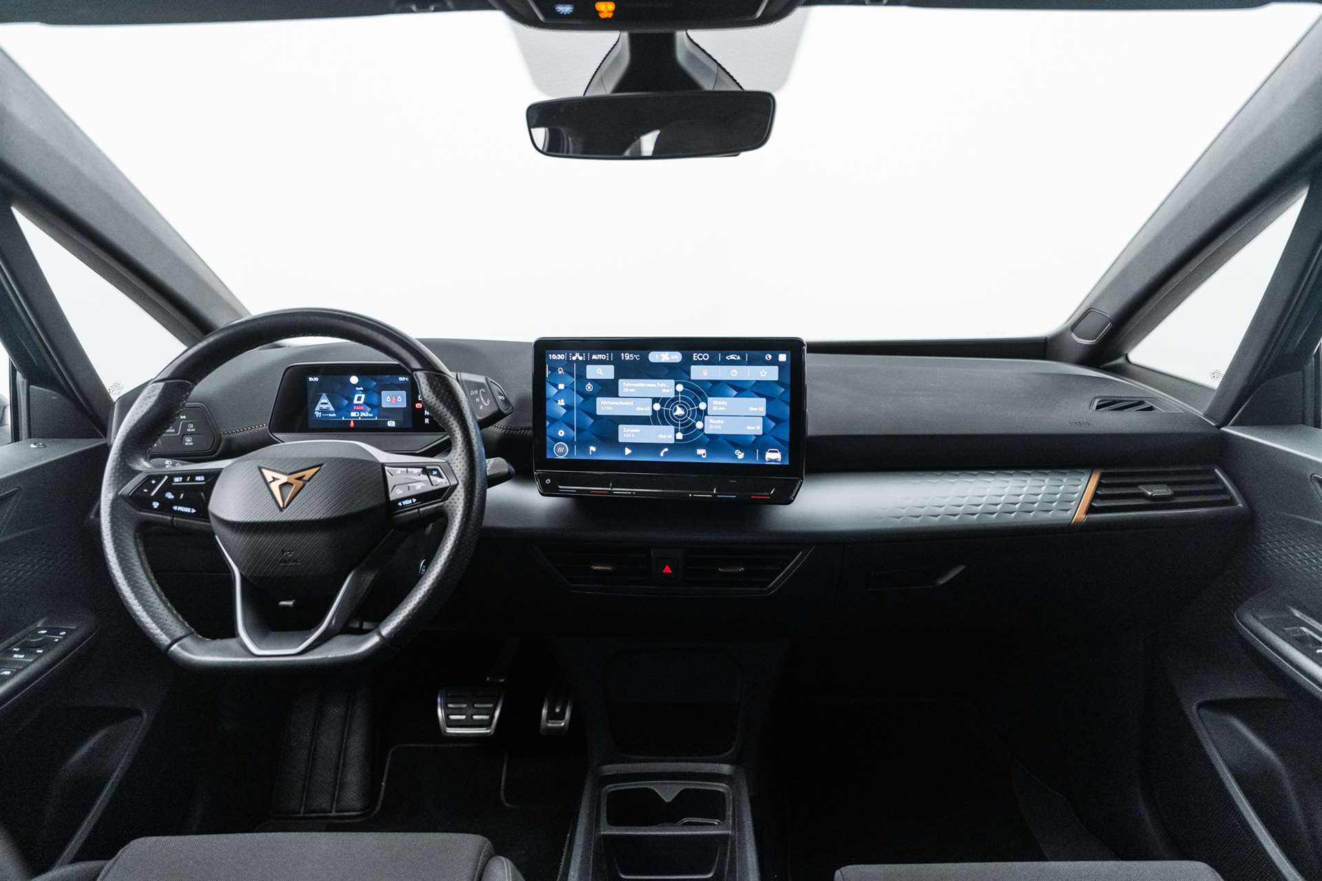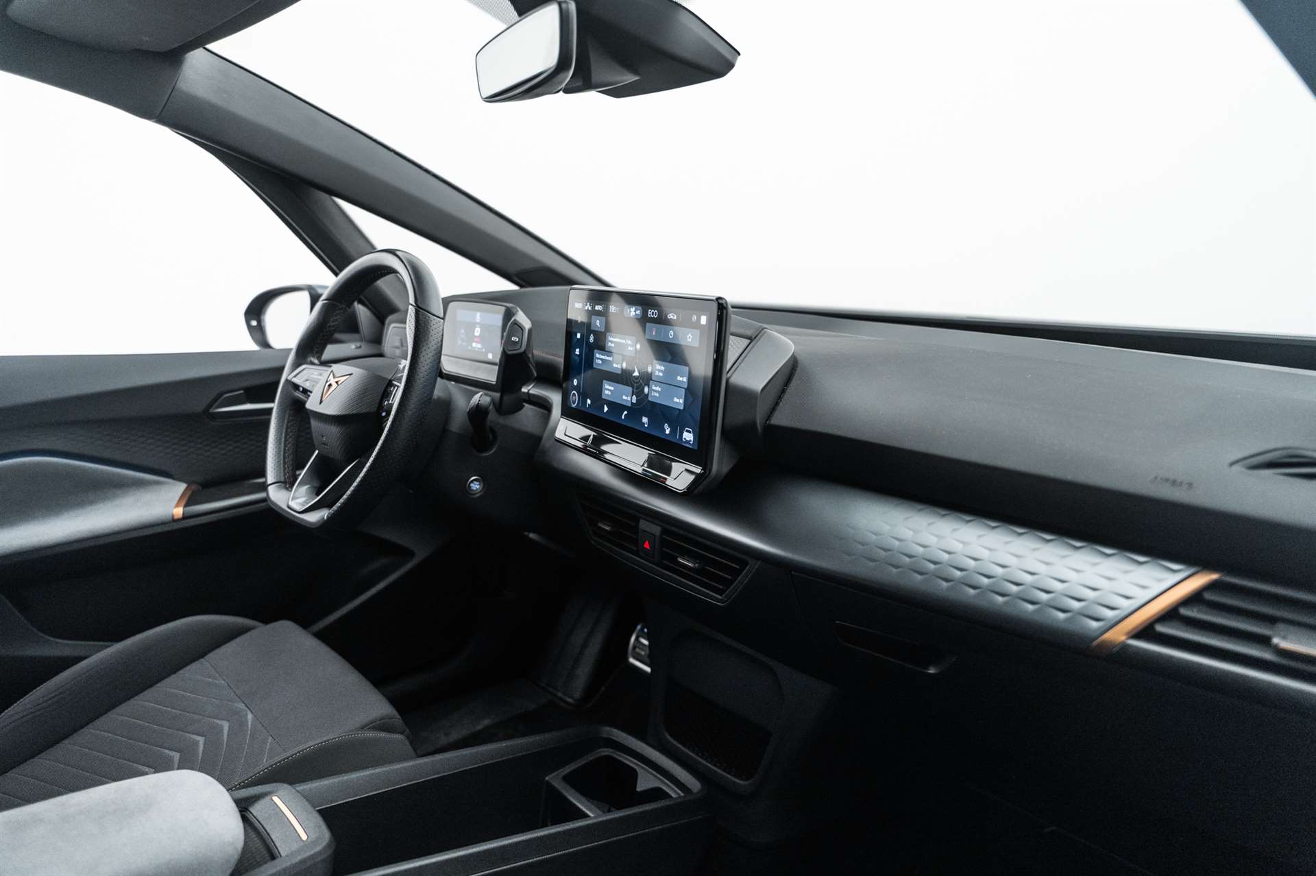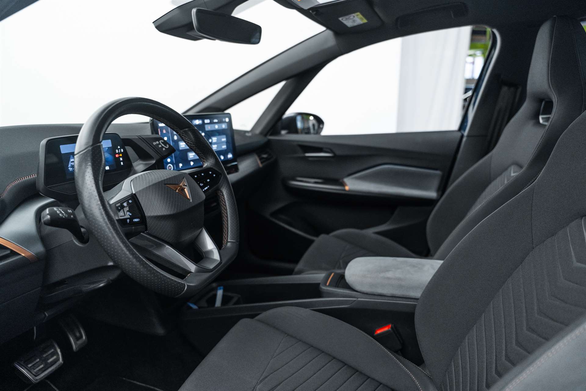 3-Punkt-Sicherheitsgurte auf allen Plätzen, Abgedunkelte Scheiben ab B-Säule hinten, ABS, EBV elektronische Bremskraft-verteilung, Airbag: Airbag Beifahrer deaktivierbar, Airbag: Airbag Fahrer und Beifahrer, Airbag: Seitenairbag für Fahrer und Beifahrer, Airbag: Window-Kopfairbags, Airbag: Zentral Airbag, Ambiente Innenraumbeleuchtung "Multicolor" mit 6 Farben, Assist: Automatische Distanzregelung ACC, Assist: City Notbremsfunktion, Assist: eCall Notruffunktion, Assist: Elektronische Parkbremse mit Auto Hold Funktion, Assist: Fernlichtassistent, Assist: Lane assist (Spurhalteassistent), Assist: Rückfahrkamera, Assist: Tiredness detection (Müdigkeitserkennung), Assist: Traffic sign recognition (Verkehrszeichenerkennung), Aussenspiegel elektrisch einstell-, beheiz- und einklappbar, Beleuchtete Türgriffe, Elektrische Fensterheber vorne und hinten mit Komfortschaltung und Einklemmschutz, ESC mit EBA, DSR und Reifendruckkontrolle, Fahrwerk: CUPRA Sportfahrwerk, Fahrwerk: Progressivlenkung, Full Digital Cockpit, Garantie: Cupra 12 Jahre Gewährleistung gegen Karosserie-Durchrostung, Garantie: Cupra 3 Jahre Lack-Gewährleistung, Garantie: Cupra Garantie 2 Jahre ohne Kilometerbegrenzung, Garantie: Cupra Garantie Batterie- Gewährleistung 8 Jahre oder 160000 KM auf 70% Batterieleistung., Getriebe: 1-Gang Automatik, Heckscheiben-Wisch-/Waschanlage mit Intervall, Heckscheibenheizung, Innenspiegel automatisch abblendbar, Kindersitzverankerung ISOFIX (äussere Plätze hinten), Klima: 2-Zonen Climatronic, Lackierung: Uni-Lackierung, Ladekabel (Mode 2 und Mode 3), Lenkrad: Beheizbares Ledermultifunktionslenkrad, Licht- und Regensensor, Licht: Drittes Bremslicht, Licht: Full LED-Scheinwerfer für Abblend-und Fernlicht und Coming Home Funktion, Media: 12" Infotainment (MIB3), Media: CUPRA Connect für Navigationssystem, Media: CUPRA Connect Online, Media: CUPRA FullLink, Media: CUPRA Navigationssystem, Media: DAB+ (Digital Audio Broadcasting), Media: Mobiltelefon Freisprechanlage Bluetooth, Media: Wireless Charger zur induktiven Smartphone Ladung, Nebelschlussleuchte, Pollenfilter (Staubfilter), Pyrotechnische Gurtstraffer und Gurtkraftbegrenzer, Räder: Alufelgen 7.5J x 19", "TYPHOON" 31/2 ,Glossy Black / Copper, Scheibenwaschdüsen beheizt, Schlüsselloses Schliess- und Startsystem (KESSY), Servolenkung mit geschwindigkeitsabhängiger Lenkkraftunterstützung, Sicherheitsgurtkontrolle für alle Sitze, Sitze: CUPRA Sport Schalensitze in Textil, schwarz "SEAQUAL", Sitze: Sitzheizung für Vordersitze, getrennt regelbar, Sitze: Vordersitze höhenverstellbar, Vollverzinkte Karosserie, Wärmepumpe, Wärmepumpe, Wärmeschutzverglasung, Wegfahrsperre elektronisch, Zentralverriegelung "Keyless-Go"