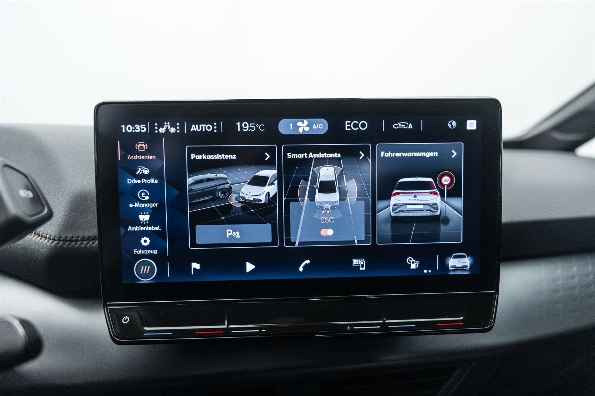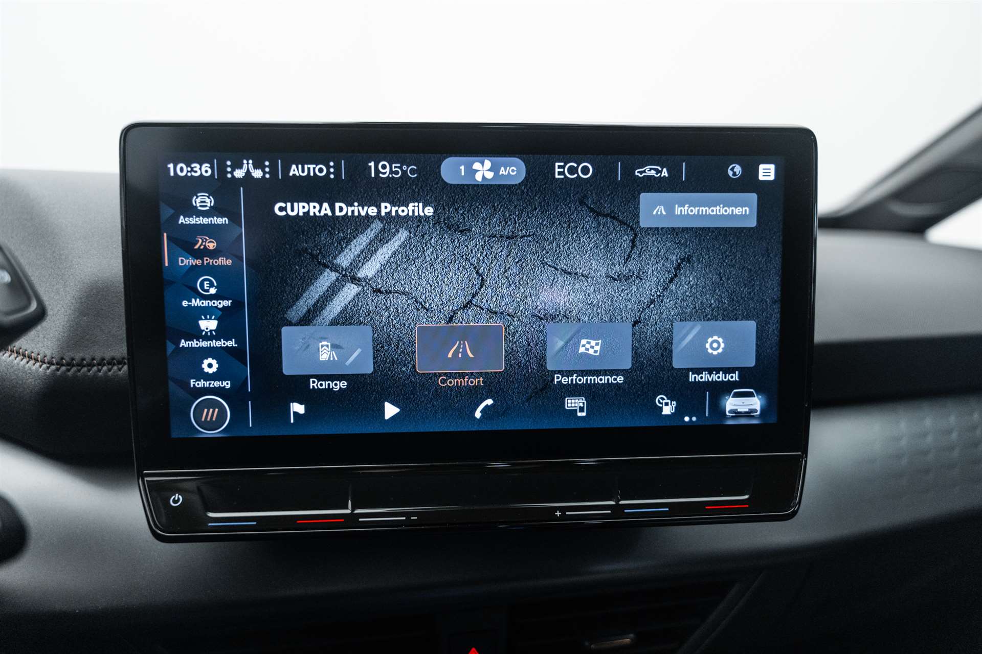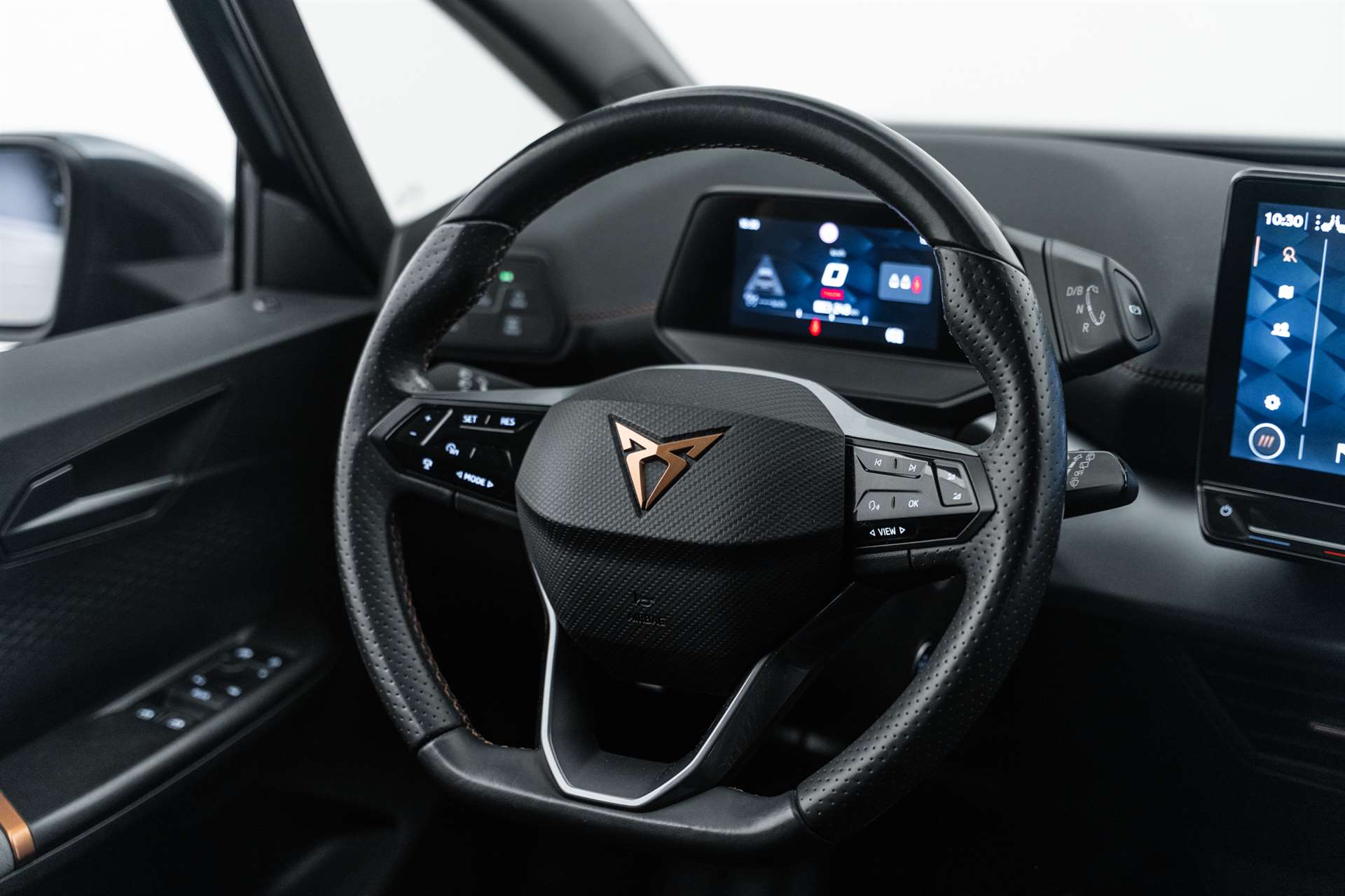 3-Punkt-Sicherheitsgurte auf allen Plätzen, Abgedunkelte Scheiben ab B-Säule hinten, ABS, EBV elektronische Bremskraft-verteilung, Airbag: Airbag Beifahrer deaktivierbar, Airbag: Airbag Fahrer und Beifahrer, Airbag: Seitenairbag für Fahrer und Beifahrer, Airbag: Window-Kopfairbags, Airbag: Zentral Airbag, Ambiente Innenraumbeleuchtung "Multicolor" mit 6 Farben, Assist: Automatische Distanzregelung ACC, Assist: City Notbremsfunktion, Assist: eCall Notruffunktion, Assist: Elektronische Parkbremse mit Auto Hold Funktion, Assist: Fernlichtassistent, Assist: Lane assist (Spurhalteassistent), Assist: Rückfahrkamera, Assist: Tiredness detection (Müdigkeitserkennung), Assist: Traffic sign recognition (Verkehrszeichenerkennung), Aussenspiegel elektrisch einstell-, beheiz- und einklappbar, Beleuchtete Türgriffe, Elektrische Fensterheber vorne und hinten mit Komfortschaltung und Einklemmschutz, ESC mit EBA, DSR und Reifendruckkontrolle, Fahrwerk: CUPRA Sportfahrwerk, Fahrwerk: Progressivlenkung, Full Digital Cockpit, Garantie: Cupra 12 Jahre Gewährleistung gegen Karosserie-Durchrostung, Garantie: Cupra 3 Jahre Lack-Gewährleistung, Garantie: Cupra Garantie 2 Jahre ohne Kilometerbegrenzung, Garantie: Cupra Garantie Batterie- Gewährleistung 8 Jahre oder 160000 KM auf 70% Batterieleistung., Getriebe: 1-Gang Automatik, Heckscheiben-Wisch-/Waschanlage mit Intervall, Heckscheibenheizung, Innenspiegel automatisch abblendbar, Kindersitzverankerung ISOFIX (äussere Plätze hinten), Klima: 2-Zonen Climatronic, Lackierung: Uni-Lackierung, Ladekabel (Mode 2 und Mode 3), Lenkrad: Beheizbares Ledermultifunktionslenkrad, Licht- und Regensensor, Licht: Drittes Bremslicht, Licht: Full LED-Scheinwerfer für Abblend-und Fernlicht und Coming Home Funktion, Media: 12" Infotainment (MIB3), Media: CUPRA Connect für Navigationssystem, Media: CUPRA Connect Online, Media: CUPRA FullLink, Media: CUPRA Navigationssystem, Media: DAB+ (Digital Audio Broadcasting), Media: Mobiltelefon Freisprechanlage Bluetooth, Media: Wireless Charger zur induktiven Smartphone Ladung, Nebelschlussleuchte, Pollenfilter (Staubfilter), Pyrotechnische Gurtstraffer und Gurtkraftbegrenzer, Räder: Alufelgen 7.5J x 19", "TYPHOON" 31/2 ,Glossy Black / Copper, Scheibenwaschdüsen beheizt, Schlüsselloses Schliess- und Startsystem (KESSY), Servolenkung mit geschwindigkeitsabhängiger Lenkkraftunterstützung, Sicherheitsgurtkontrolle für alle Sitze, Sitze: CUPRA Sport Schalensitze in Textil, schwarz "SEAQUAL", Sitze: Sitzheizung für Vordersitze, getrennt regelbar, Sitze: Vordersitze höhenverstellbar, Vollverzinkte Karosserie, Wärmepumpe, Wärmepumpe, Wärmeschutzverglasung, Wegfahrsperre elektronisch, Zentralverriegelung "Keyless-Go"