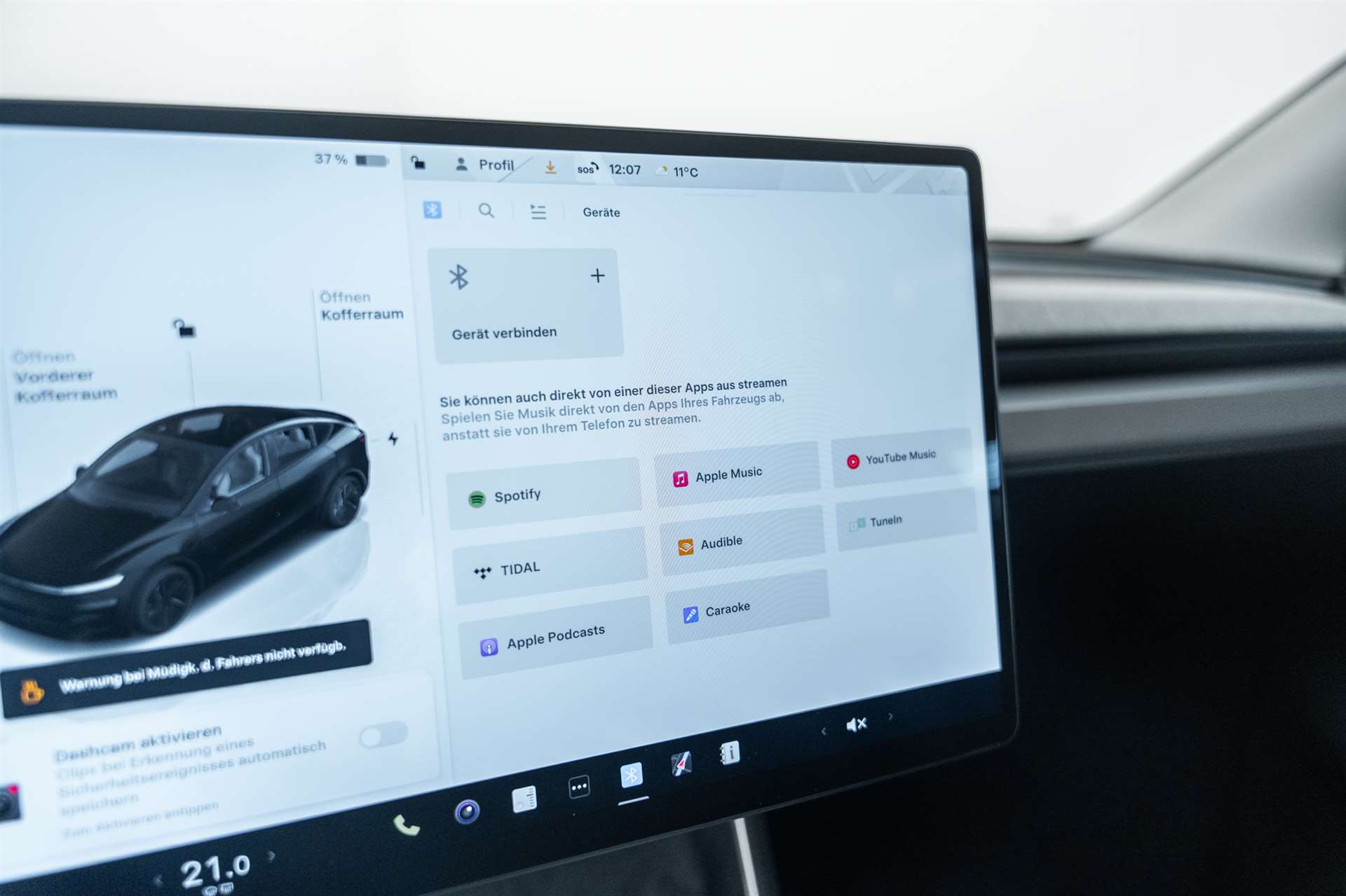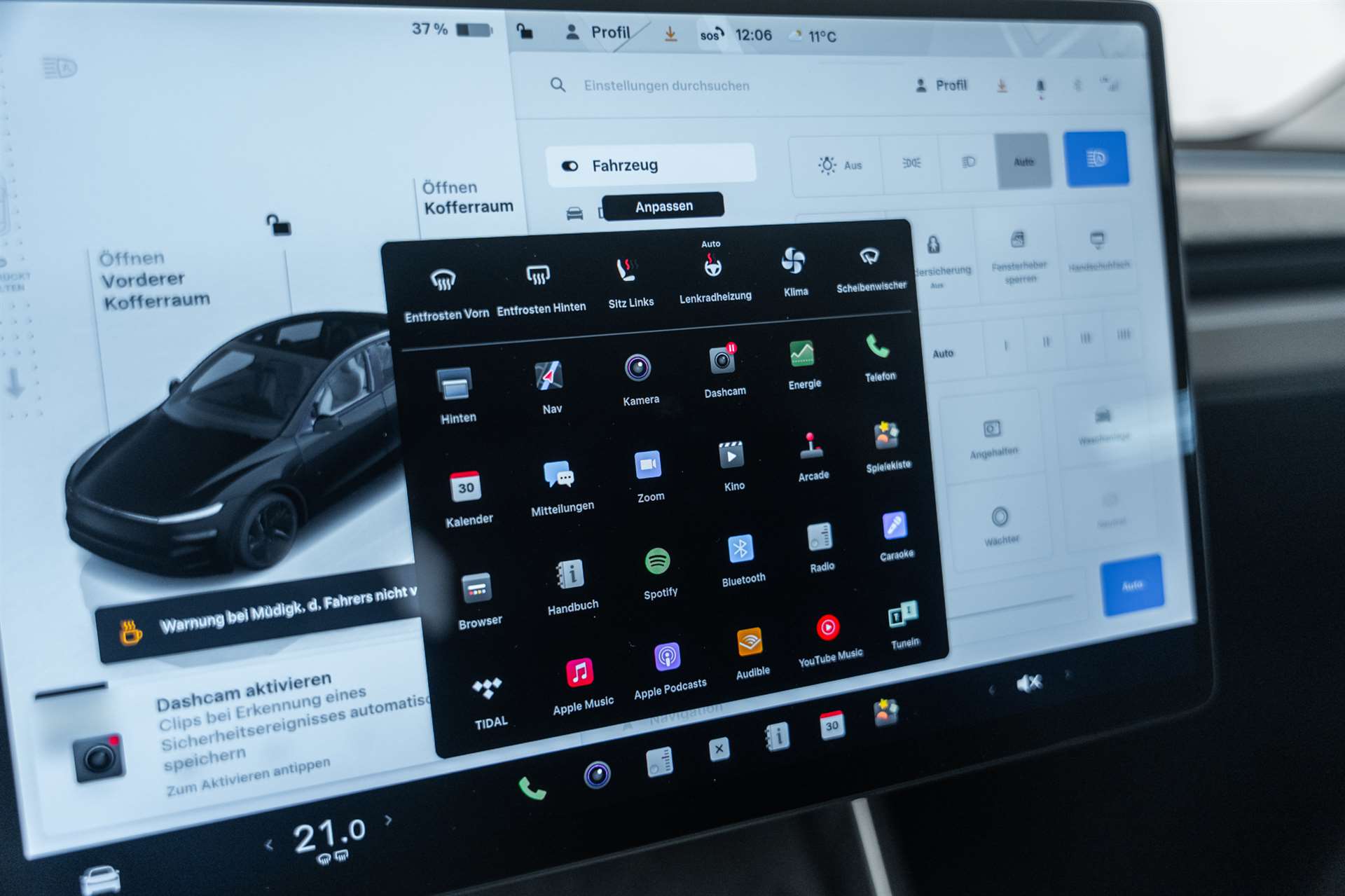 12-Volt-Steckdose vorne, Airbag: Airbag Beifahrer deaktivierbar, Airbag: Airbag Fahrer und Beifahrer, Airbag: Seiten- und Kopfairbags, Allradantrieb permanent, Ambiente Beleuchtung, Assist: 8 Aussenkameras inkl.Frontkamera, Assist: ABS und TCS, Assist: Adaptive Cruise Control, Assist: Basic Autopilot, Assist: Echtzeit-Verkehrsflussanzeige, Assist: Frontaufprallwarnung, Assist: Kollisionswarnung, Assist: Lenkassistent, Assist: Notbremsassistent, Assist: Park Distance Control (PDC), Assist: Parkassistent, Assist: Satellitenbildkarten, Assist: Spurhalteassistent, Assist: Toter-Winkel-Warnsystem, Aussenspiegel automatisch abblendend, Aussenspiegel rechts und links beheizt,, Bodenleuchten-Emblem, Bordcomputer, Decor: All black premium interior, Dekor: Aluminiumdetails und Premium-Textilbezug, Easy Entry, Elektrisch gesteuerte Luftauslässe für 1. und 2. Sitzreihe, Elektrische Fensterheber vorne und hinten, Elektronisches Stabilitäts-Programm, Fahrwerk: Federung der 2. Generation, Frontscheibenheizung, Fußgängerwarnsystem, Garantie: 4 Jahre oder 80'000 km, Garantie: 8 Jahre oder 192'000 km, Getöntes Verbundsicherheitsglas mit metallischer Infrarot-Reflexionsbeschichtung, Getriebe: Direktantrieb, Gurtstraffer vorne, Heckklappe automatisch, virtual Pedal, Heckklappen-Emblem, Heckscheibenheizung, Heckspoiler, ISOFIX Kindersitzvorrichtung, Keyless Entry, Klima: 3-Zonen-Klimaautomatik, Lackierung: Pearl-Lackierung, Ladekabel, Lenkrad: Lenkrad elektrisch längs- und höhen-verstellbar, Lenkrad: Lenkradheizung, Lenkrad: Multifunktionslenkrad, Licht: Drittes Bremslicht LED, Licht: Fernlichtautomatik, Licht: LED Scheinwerfer, Licht: LED-Nebelscheinwerfer, Licht: LED-Tagfahrlicht, Licht: Nebelschlussleuchte, Media: 15,4-Zoll-Touchscreen vorne, Media: 8-Zoll-Touchscreen hinten, Media: Bluetooth Freisprecheinrichtung, Media: Internet-Browser, Media: Media Player, Media: Musik-Streaming, Media: Navigationssystem mit Onboard-Karten, Media: Premium-Audiosystem, Media: USB-A Anschluss im Handschuhfach mit abnehmbaren 128 GB Speichermedium, Media: Video-Streaming, Zugriff auf Inhalte von Netflix, Youtube, Twitch und anderen Anbietern, Media: Wi-Fi Hotspot, Mittelkonsole mit Ablagefach, Paket: Premium-Konnektivität, 1 Jahr kostenlos, Panorama-Glasdach, Polster: Veganes Leder und Wildleder, Räder: 19" Crossflow Wheels, Reifendruck-Kontrollanzeige, Reifenreparatur-Set (Tire Fit), Scheibenwischer vorne mit Intervall, Schwellerleisten-Schriftzug, Seitenaufprall-Schutzsystem, Servolenkung, Sicherheitsgurtsystem, Sitze: Fünfsitzer-Innenraum, Sitze: Kopfstützen verstellbar, Sitze: Rücksitze elektrisch umklappbar, Sitze: Rücksitze elektrisch verstellbar, Sitze: Rücksitzlehne geteilt abklappbar, Sitze: Vordersitze belüftet, Sitze: Vordersitze elektrisch verstellbar, Sitze: Vordersitze heizbar, Supercharger Network Access + Pay-as-you-go, Wegfahrsperre elektronisch, Zentralverriegelung mit Fernbedienung