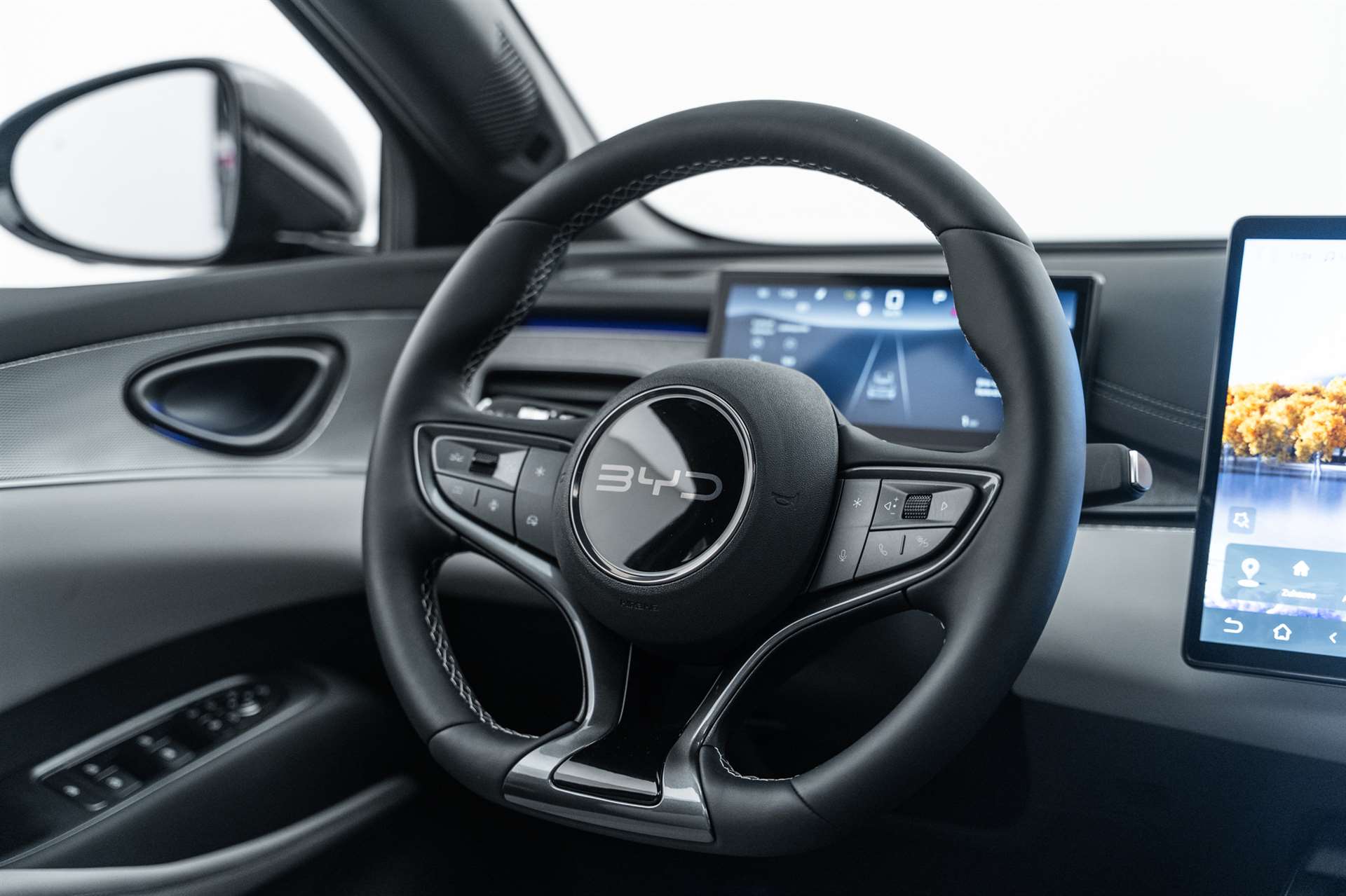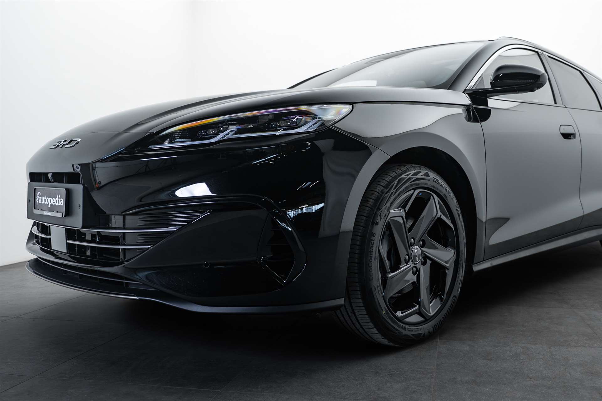 12-V-Stromanschluss, 2 x Smart Key, 4 x Fensterheber mit Ein-Klick-Funktion und Einklemmschutz, 6.6-kW-Bordladegerät (OBC), Airbag: Fahrerairbag und Beifahrerairbag, Airbag: Mittelairbag vorne, Airbag: Seitenairbags vorn, Airbag: Vorhangairbags, Ambientebeleuchtung, mehrfarbig, rhythmusempfindlich, Anhänger-Stabilitätsmanagementsystem (TSM), Antiblockiersystem (ABS), Assist: 360° view camera, Assist: Adaptive Geschwindigkeitsregelung (ACC) & Intelligente Geschwindigkeitsregelung (ICC), Assist: Auto Hold, Assist: Automatische Notbremsung (AEB), Assist: Berganfahrhilfe (HHC), Assist: Comfort Stop (CST), Assist: Direktes Fahrerermüdungsmanagement (DFM), Assist: Elektrische Parkbremse (EPB), Assist: Frontkollisionswarnung (FCW), Assist: Geschwindigkeitsabhängiges automatisches Verriegelungssystem, Assist: Heckkollisionswarnung (RCW), Assist: Hydraulischer Bremsassistent (HBA), Assist: Intelligente Bremskraftverstärker (IPB), Assist: Intelligente Geschwindigkeitsbegrenzungsinformation (ISLI), Assist: Intelligente Geschwindigkeitsbegrenzungskontrolle (ISLC), Assist: Kindererkennung (CPD), Assist: Kontrollierte Verzögerung mit Feststellbremse (CDP), Assist: Notfall-Spurhalteassistent (ELKA), Assist: Parkradar hinten, Assist: Parkradar vorne, Assist: Querverkehrswarnung hinten (RCTA) & Querverkehrsbremse hinten (RCTB), Assist: Spurverlassensassistent (LDA), Assist: Toter-Winkel-Warnung (BSD), Assist: Traktionskontrolle (TCS), Assist: Verkehrszeichenerkennung (TSR), Aussenspiegel elektrisch verstellbar, elektrisch anklappbar, beheizbar, Außenspiegel-Bodenbeleuchtung, Automatisch abblendender Rückspiegel, Bremsüberbrückungssystem (BOS), Dachhimmel in Stoff, Dachreling in Aluminium, Doppelt vorgespannte, höhenverstellbare Sicherheitsgurte vorn, Elektrische Heckklappe, Elektronische Bremskraftverteilung (EBD), ESP (Elektronisches Stabilitätsprogramm), Fahrmodus: Eco, Normal, Sport, Snow, Fahrwerk: Fahrdynamikregelung (VDC), Frontscheibe, Scheibenwischer mit Regensensor, Fußraumbeleuchtung vorne, Getriebe: Direktantrieb, kein Getriebe, Gurtwarner, Handschuhfachbeleuchtung, Heckscheibe, elektrische Heizung zum Entfeuchten und Enteisen, Heckscheibenwischer, ISOFIX und i-Size, Beifahrer- und äussere Rücksitze, Keyless entry & keyless start, Klima: Belüftungsdüsen hinten, Klima: PM2,5-Filter, Klima: Zweizonen-Klimaautomatik, Kofferraum-Gepäckablage, Kofferraumbeleuchtung, Konsolenbeleuchtung, Lackierung: Metallic-Lackierung, LED-Leseleuchten hinten, LED-Leseleuchten vorn, LED-Türbeleuchtung vorne, Lenkrad: Lenkrad beheiztbar, Lenkrad: Multifunktionslenkrad in Vegan-Leder, Licht: Automatische Scheinwerfer, Licht: Follow-me-Home, Licht: Intelligenter Fernlichtassistent (IHBC), Licht: LED-Rückleuchten, Licht: LED-Scheinwerfer, automatisches Ein-/Ausschalten, Licht: LED-Tagfahrlicht, Licht: Nebelschlussleuchten, Mechanische Kindersicherung, Media: 15,6-Zoll-Touchscreen, Media: 8,8" TFT-LCD-Instrumententafel, Media: Android Auto & Apple CarPlay, Media: Cloud-Service - BYD App, Media: DAB+ & FM, Media: HiFi-Soundeffekt, 8 Lautsprecher, Media: Integrierte 4G-Konnektivität, Media: Intelligente Sprachsteuerung "Hallo, BYD", Media: Kabelloses Laden von Smartphones, 50 W Einzelaufladung, Media: USB-Anschlüsse hinten: 2 x 18W Typ C, Media: USB-Anschlüsse vorn: 1 x 18W Typ C, 1 x 60 W Typ C, Mittelarmlehne hinten, 2 Getränkehalter, Mittelarmlehne vorn, 2 Getränkehalter, Mittelkonsolenleuchte, Notfallverriegelung für den mittleren Sitz hinten, Notruf, Panorama-Schiebedach, einklemmschutz, elektrisch verstellbare Sonnenblende, Polster: Vegan-Leder Sitze, Räder: 18"-Monochrom-Leichtmetallräder, Reifendruckkontrollsystem (TPMS), Scheibenwischer vorne mit Regensensor, Seitenfenster hinten und Heckscheibe mit Privacy-Verglasung, Servolenkung, Sitze: Beifahrersitz belüftet, beheizt, Sitze: Beifahrersitz, elektrisch verstellbar, 4-fach, Sitze: Fahrersitz, belüftet, beheizbar, mit Memory-Funktion, Sitze: Fahrersitz, elektrisch verstellbar, 6-fach, Sitze: Rücksitze 40:60 geteilt umklappbar, Sitze: Rücksitze, manuell einstellbare Kopfstütze, Sitze: Vordersitze, manuell verstellbare Kopfstützen, Smartphone-Bluetooth-Schlüssel & Smartphone-NFC-Schlüssel, Sonnenblenden vorne mit beleuchtetem Spiegel, Türöffnungswarnung (DOW), Vehicle-to-Load-Funktion (V2L), Vorgespannte Sicherheitsgurte auf den Rücksitzen hinten