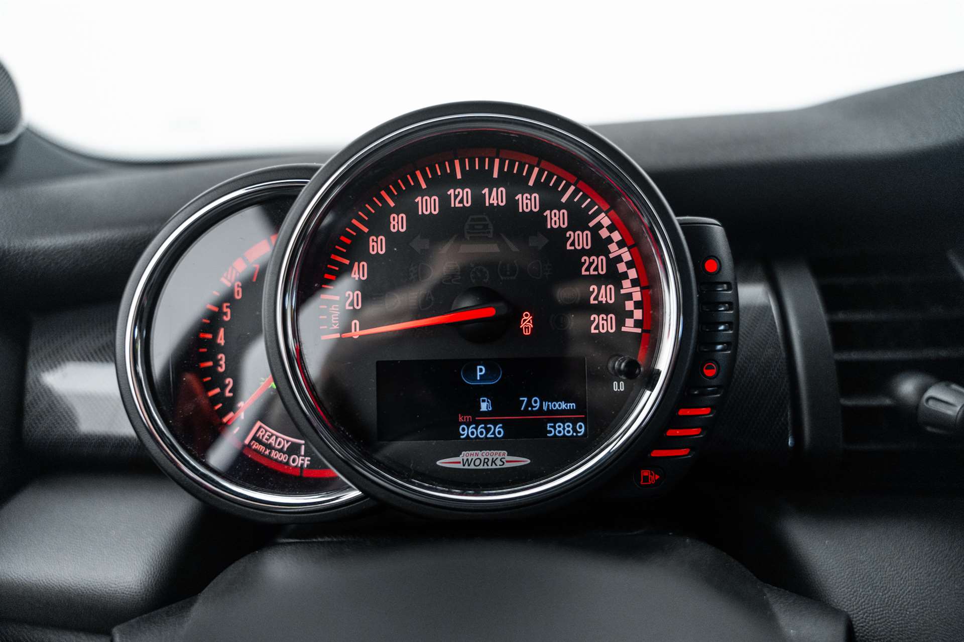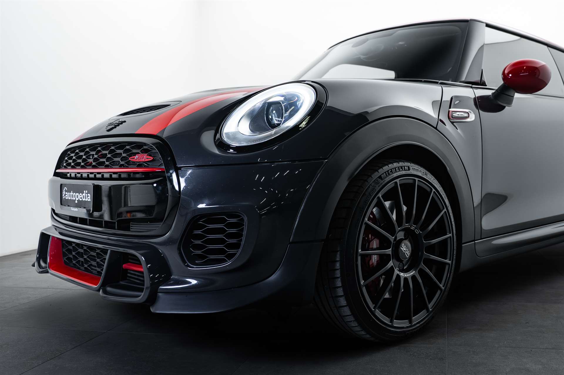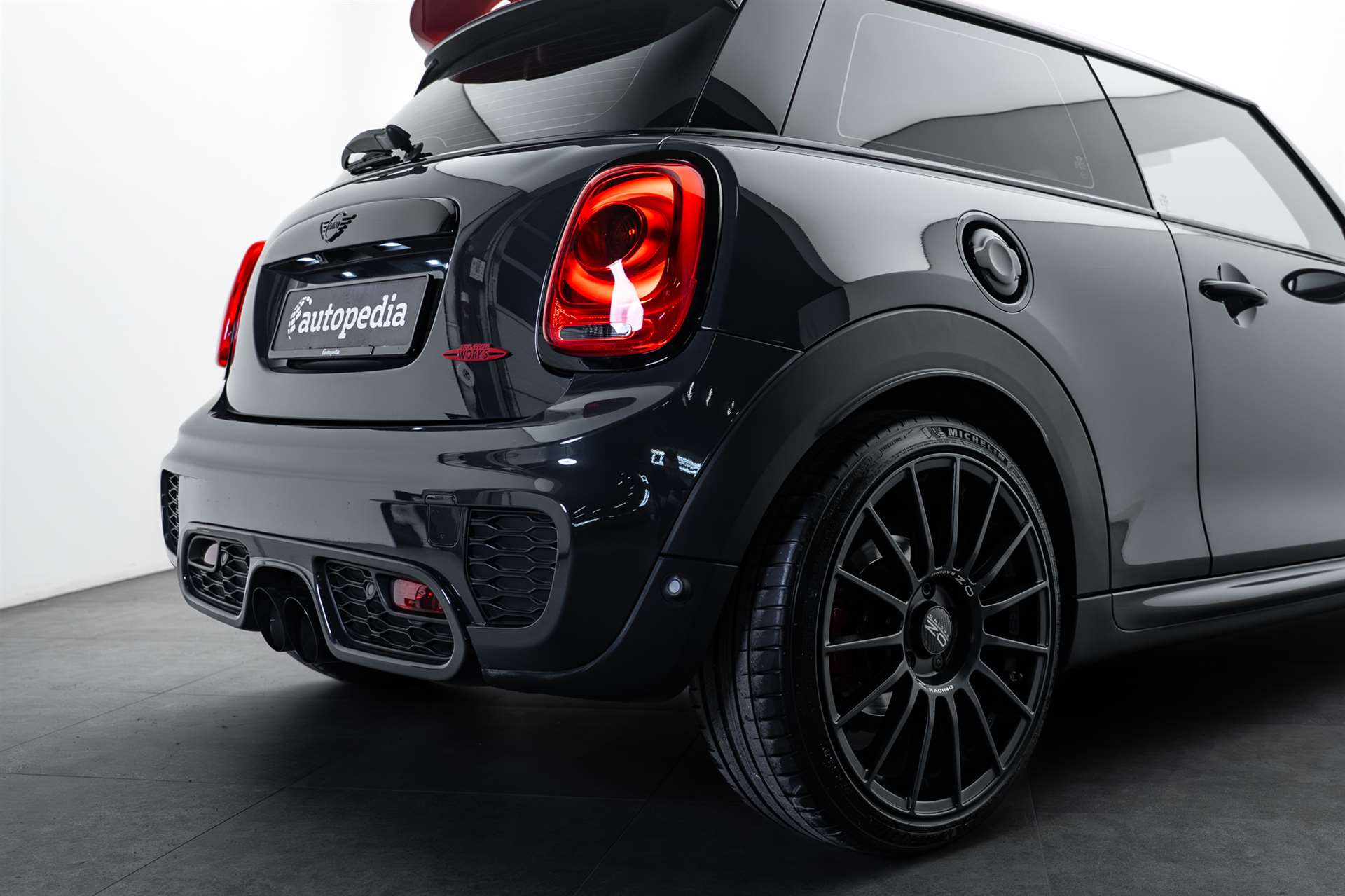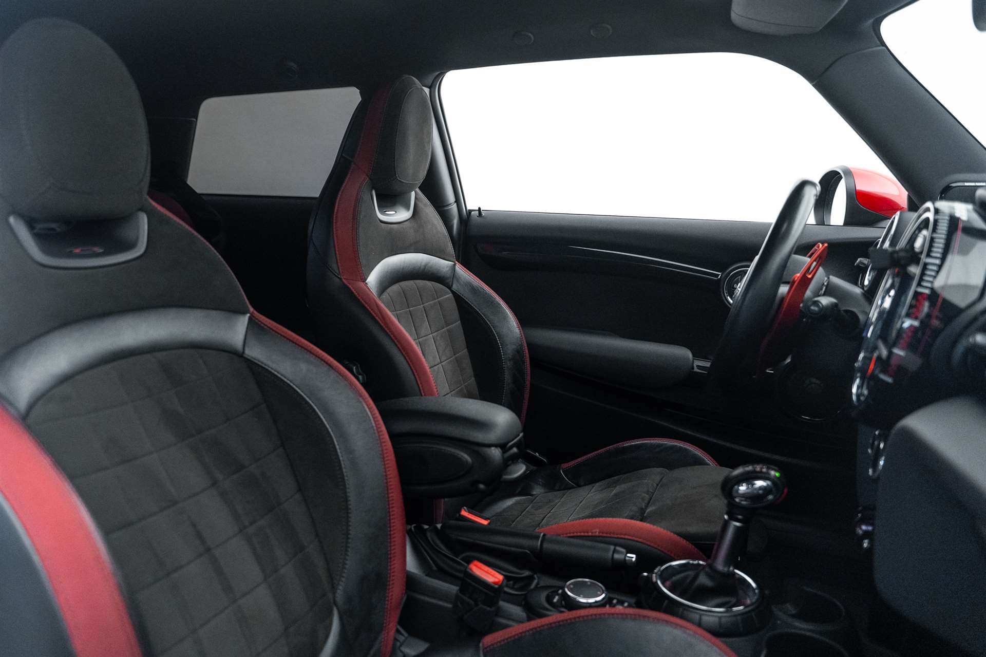 12-Volt-Steckdose vorne, 3-Punkt-Sicherheitsgurte auf allen Plätzen, Ablagefach, Ablagenpaket, Abschliessbare Radschrauben, Airbag Beifahrer deaktivierbar, Airbag: Airbag Fahrer und Beifahrer, Antiblockiersystem (ABS), Assist: Geschwindigkeitsregelung mit Bremsfunktion, Assist: Geschwindigkeitsregelung mit Bremsfunktion, Aussenspiegel in Wagenfarbe, Aussenspiegel rechts und links, Aux-In Anschluss, Befestigungsösen im Laderaum, Bordcomputer, Cornering Brake Control (CBC), Crash-Sensor, Cupholder, Dach und Spiegelkappen rot, Dach und Spiegelkappen rot, Dach und Spiegelkappen schwarz, Dach und Spiegelkappen weiss, Dachhimmel Anthrazit, Dachspoiler, Dekor: Colour Line Carbon Black, Dekor: Interieurfarbe Satellite Grey, Dinamica-/ Stoffkombination, Drehzahlmesser, Drittes Bremslicht, Dynamische Bremsleuchten, Dynamische Stabilitätskontrolle (DSC), Einstiegsschienen, Elektrische Fensterheber vorne, Elektronischer Bremskraftverteilung EBD, Getriebe: 6-Stufen-Automat sequentiell, Gurtstraffer vorne, Heckscheiben-Wisch-/Waschanlage mit, Heckscheibenheizung, Heckspoiler, Innenraumbeleuchtung, Intelligenter Notruf, Interieuroberflächen Black Checkered, ISOFIX Kindersitzvorrichtung, John Cooper Works Lederlenkrad, Katalysator geregelt, Klimatisierungsautomatik, Kopfstützen hinten, Lackierung: Uni-Lackierung, Laderaumbeleuchtung, Leichtmetallräder Race Spoke 17J,silber, Lenkrad: Lenkrad längs- und höhenverstellbar, Lenkrad: Multifunktion für Lenkrad, Leuchtweitenregulierung elektrisch, Licht: Abblendlichtausschaltverzögerung, Licht: LED Scheinwerfer, Licht: Nebelschlussleuchte, Licht: Tagfahrlicht, Licht: Weisse Blinkleuchten, Media: DAB+ (Digital Audio Broadcasting), Media: MINI Connected, Media: MINI Connected, Media: USB-Anschluss, MINI Driving Modes, MINI Driving Modes, Mini Garantie: 2 Jahre ohne Kilometerbe-, MINI Mobility System, MINI-TENDER LOVING CARE. Garantie:, Nichtraucherausführung, Ohne Modellbezeichnung, Parkassistent, Performance Control, Polster: Stoff-Ausstattung, Reifendruck-Kontrollanzeige, Servotronic, Sitze: Rücksitzlehne geteilt abklappbar, Sitze: Sportsitze vorne, Sitze: Vordersitze höhenverstellbar, Sportfahrwerk, Start-/Stop-Knopf, Start/Stop-Funktion, Traffic Information, Türgriffe aussen verchromt, Türgriffe innen verchromt, Veloursfussmatten vorne und hinten, Verbandskasten, Wegfahrsperre elektronisch, Zentralverriegelung mit Fernbedienung
