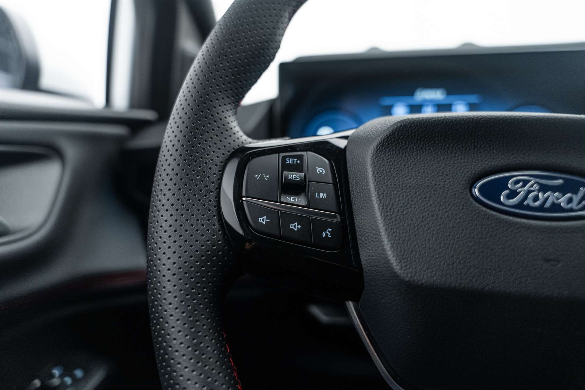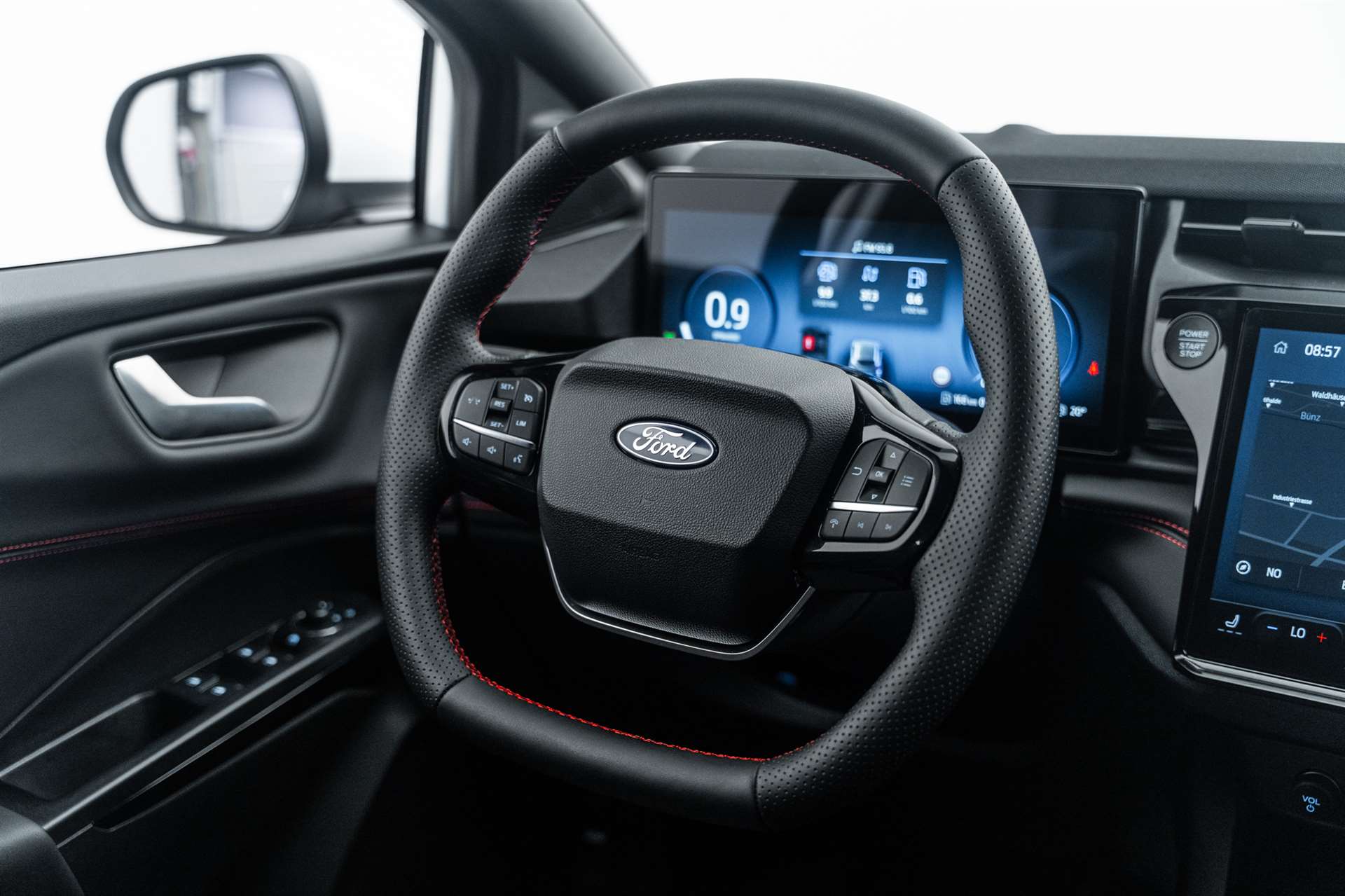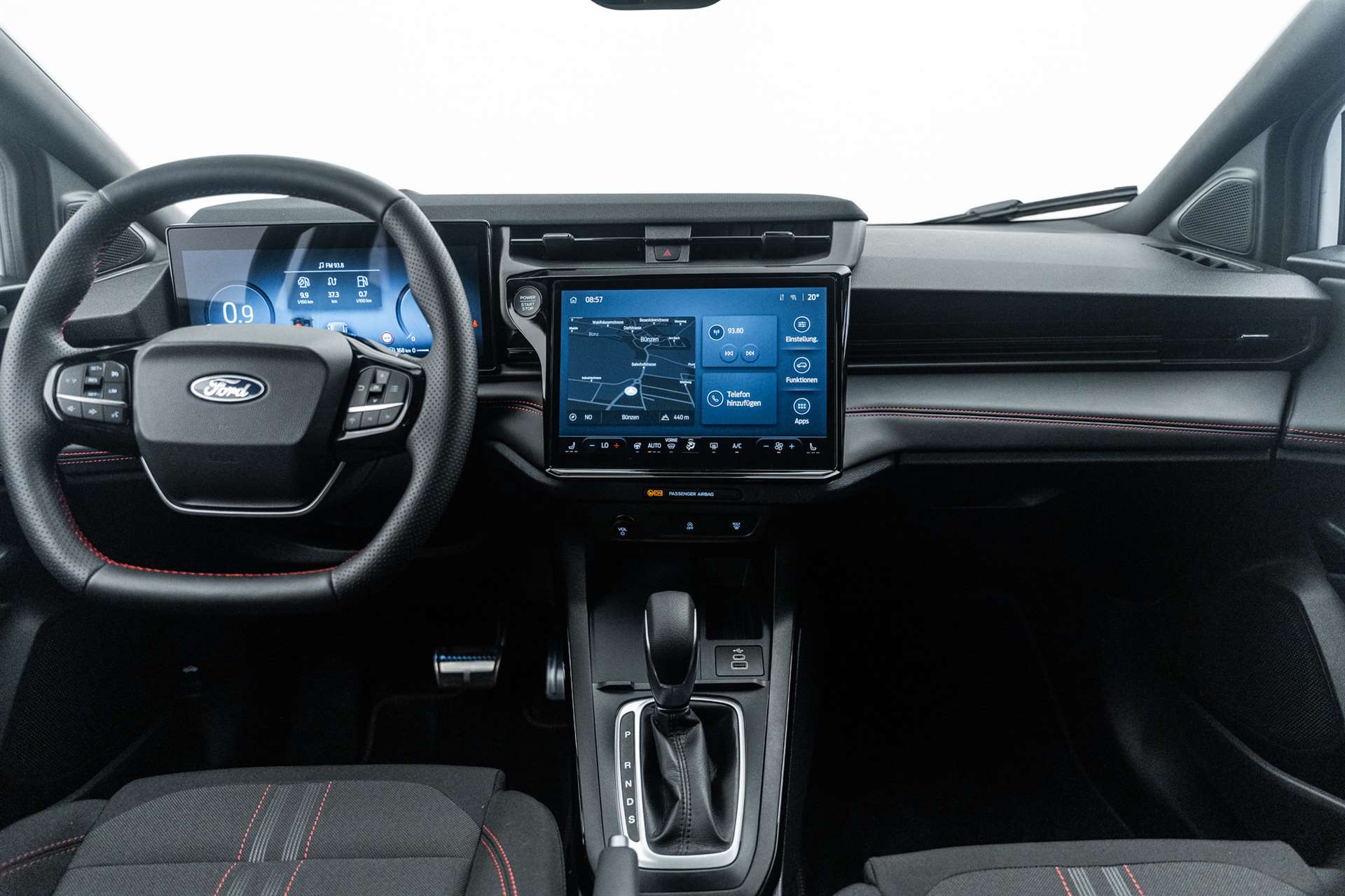 12-Volt-Anschluss hinter der Mittelkonsole vorn für die 2. Sitzreihe und im Kofferraum, 3-Punkt-Sicherheitsgurte auf allen Plätzen, Airbag: Kopf-Schulterairbags vorn und hinten, Ambientebeleuchtung vorn inkl. Armaturenbrett, Vordertürablage-,, Antiblockier-Bremssystem (ABS), Assist: Fahrspur-Assistent, Assist: Falschfahrer-Warnfuntion, Assist: Geschwindigkeitsregelanlage und intelligenter Geschwindigkeitsbegrenzer mit Tempolimit-Anze, Assist: Müdigkeitswarner, Assist: Park-Pilot System hinten, Assist: Pre-Collision-Assist, Assist: Rückfahrkamera, Assist: Verkehrsschild-Erkennungssystem, Aussenspiegel in Wagenfarbe lackiert, elektrisch einstellbar, beheizbar, Body-Styling-Kit ST-Line / ST-Line X, Dachhimmel aus Webstoff, Anthrazit, Dekor: Armaturenbrett teilweise mit Kunstlederbezug, Einstiegszierleisten vorn, ST-Line-Design, Elektronisches Stabilitäts-Programm (ESP), Fahrwerk: Selektiver Fahrmodus-Schalter, Fahrwerk: Sportlich abgestimmtes Fahrwerk, Fensterheber vorn und hinten elektrisch mit Gesamtschließungsfunktion bzw mit Quickdown-Schaltung, Ford EcoCoach (Effizienzanzeige für umweltschonende Fahrweise), Ford MegaBox, Ford Power-Startfunktion (schlüsselfreies Starten), Frontscheibe, Akustik-Verbundglas, Garantie: Ford Garantie 2 Jahre Werksgarantie, Getriebe: 7-Gang-Automatikgetriebe, Heckscheiben-Wisch-/Waschanlage, Heckscheibenheizung, Innenspiegel automatisch abblendbar, Intelligentes Sicherheits-System (IPS - Intelligent Protection System), Klima: Klimaanlage mit automatischer Temperaturkontrolle, Kopfstützen vorn (2) und Kopfstützen hinten (3), höhenverstellbar, Lackierung: Frozen White, Lenkrad: Lenkrad, Sensico in Leder-Optik, perforiert, Licht: Drittes Bremslicht, Licht: LED Heckleuchten, Licht: LED-Scheinwerfer inkl. Scheinwerfer-Assistent mit Tag/ Nacht Sensor, Licht: Nebelschlussleuchte, Licht: Scheinwerfer, automatisch höhenverstellbar, Media: 2 USB Anschlüsse vorn unter dem Armaturenbrett (1x Typ-A/ 1x Typ-C), Media: 5G Modem, Media: Ford SYNC 4 mit AppLink, 12"-Touchscreen (30.5 cm Bildschirmdiagonale), Mittelkonsole vorn mit 2 Getränkehaltern, 12-Volt-Anschluss, integrierter Armauflage und Ablagefäche, Pedalerie mit Aluminiumauflage, Polster: Stoffpolsterung in Anthrazit mit Ziernähten in Rot, Räder: Leichtmetallräder 7 J x 17 mit 215/55 R17 Reifen, Räder: Reifendruckkontrollsystem, Räder: Reifenreparatur-Set (Tire Fit), Räder: Umweltfreundliches Reifenprofil, Scheibenbremsen vorn, innenbelüftet, und Trommelbremsen hinten, Scheibenwischer mit Regensensor, Seitenscheiben ab 2. Sitzreihe und Heckscheibe, dunkel getönt, Servolenkung, Sitze: Beifahrersitz, 2-fach einstellbar, Sitze: Fahrersitz mit Lendenwirbelstütze, Sitze: Fahrersitz, manuell höhenverstellbar, Sitze: ISOFIX-Halterung an den äusseren Sitzplätzen der 2. Sitzreihe, Teppichfussmatten vorn, Variabler Kühlerlufteinlass, Wegfahrsperre elektronisch, Zentralverriegelung mit Fernbedienung
