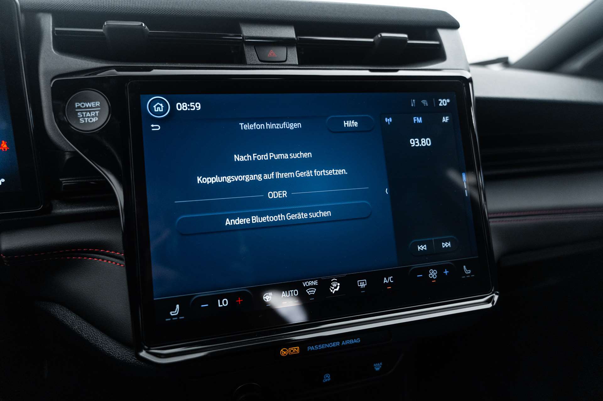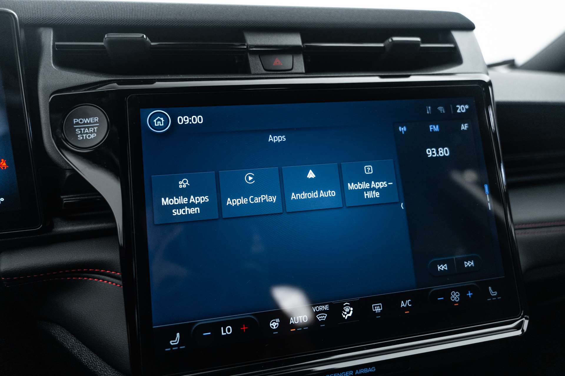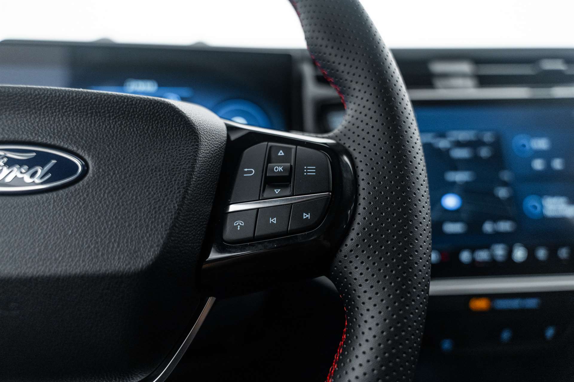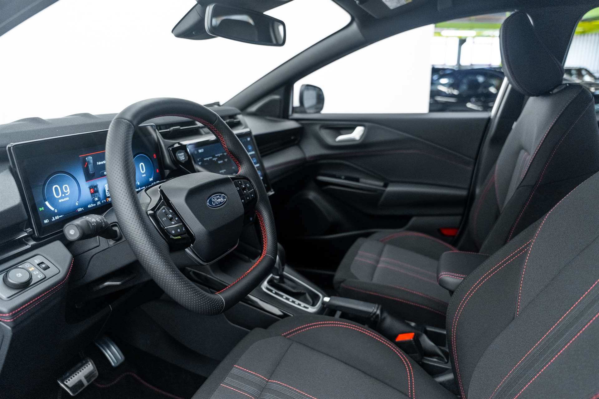 12-Volt-Anschluss hinter der Mittelkonsole vorn für die 2. Sitzreihe und im Kofferraum, 3-Punkt-Sicherheitsgurte auf allen Plätzen, Airbag: Kopf-Schulterairbags vorn und hinten, Ambientebeleuchtung vorn inkl. Armaturenbrett, Vordertürablage-,, Antiblockier-Bremssystem (ABS), Assist: Fahrspur-Assistent, Assist: Falschfahrer-Warnfuntion, Assist: Geschwindigkeitsregelanlage und intelligenter Geschwindigkeitsbegrenzer mit Tempolimit-Anze, Assist: Müdigkeitswarner, Assist: Park-Pilot System hinten, Assist: Pre-Collision-Assist, Assist: Rückfahrkamera, Assist: Verkehrsschild-Erkennungssystem, Aussenspiegel in Wagenfarbe lackiert, elektrisch einstellbar, beheizbar, Body-Styling-Kit ST-Line / ST-Line X, Dachhimmel aus Webstoff, Anthrazit, Dekor: Armaturenbrett teilweise mit Kunstlederbezug, Einstiegszierleisten vorn, ST-Line-Design, Elektronisches Stabilitäts-Programm (ESP), Fahrwerk: Selektiver Fahrmodus-Schalter, Fahrwerk: Sportlich abgestimmtes Fahrwerk, Fensterheber vorn und hinten elektrisch mit Gesamtschließungsfunktion bzw mit Quickdown-Schaltung, Ford EcoCoach (Effizienzanzeige für umweltschonende Fahrweise), Ford MegaBox, Ford Power-Startfunktion (schlüsselfreies Starten), Frontscheibe, Akustik-Verbundglas, Garantie: Ford Garantie 2 Jahre Werksgarantie, Getriebe: 7-Gang-Automatikgetriebe, Heckscheiben-Wisch-/Waschanlage, Heckscheibenheizung, Innenspiegel automatisch abblendbar, Intelligentes Sicherheits-System (IPS - Intelligent Protection System), Klima: Klimaanlage mit automatischer Temperaturkontrolle, Kopfstützen vorn (2) und Kopfstützen hinten (3), höhenverstellbar, Lackierung: Frozen White, Lenkrad: Lenkrad, Sensico in Leder-Optik, perforiert, Licht: Drittes Bremslicht, Licht: LED Heckleuchten, Licht: LED-Scheinwerfer inkl. Scheinwerfer-Assistent mit Tag/ Nacht Sensor, Licht: Nebelschlussleuchte, Licht: Scheinwerfer, automatisch höhenverstellbar, Media: 2 USB Anschlüsse vorn unter dem Armaturenbrett (1x Typ-A/ 1x Typ-C), Media: 5G Modem, Media: Ford SYNC 4 mit AppLink, 12"-Touchscreen (30.5 cm Bildschirmdiagonale), Mittelkonsole vorn mit 2 Getränkehaltern, 12-Volt-Anschluss, integrierter Armauflage und Ablagefäche, Pedalerie mit Aluminiumauflage, Polster: Stoffpolsterung in Anthrazit mit Ziernähten in Rot, Räder: Leichtmetallräder 7 J x 17 mit 215/55 R17 Reifen, Räder: Reifendruckkontrollsystem, Räder: Reifenreparatur-Set (Tire Fit), Räder: Umweltfreundliches Reifenprofil, Scheibenbremsen vorn, innenbelüftet, und Trommelbremsen hinten, Scheibenwischer mit Regensensor, Seitenscheiben ab 2. Sitzreihe und Heckscheibe, dunkel getönt, Servolenkung, Sitze: Beifahrersitz, 2-fach einstellbar, Sitze: Fahrersitz mit Lendenwirbelstütze, Sitze: Fahrersitz, manuell höhenverstellbar, Sitze: ISOFIX-Halterung an den äusseren Sitzplätzen der 2. Sitzreihe, Teppichfussmatten vorn, Variabler Kühlerlufteinlass, Wegfahrsperre elektronisch, Zentralverriegelung mit Fernbedienung