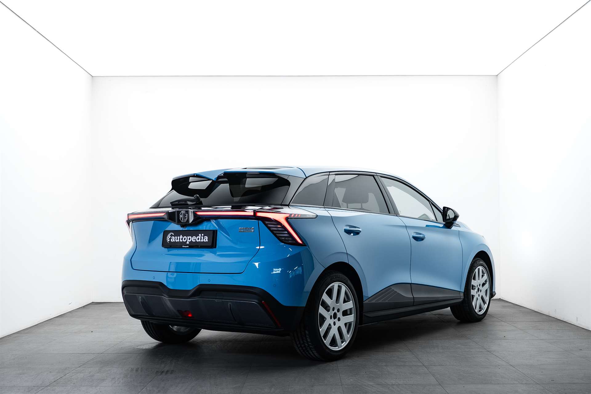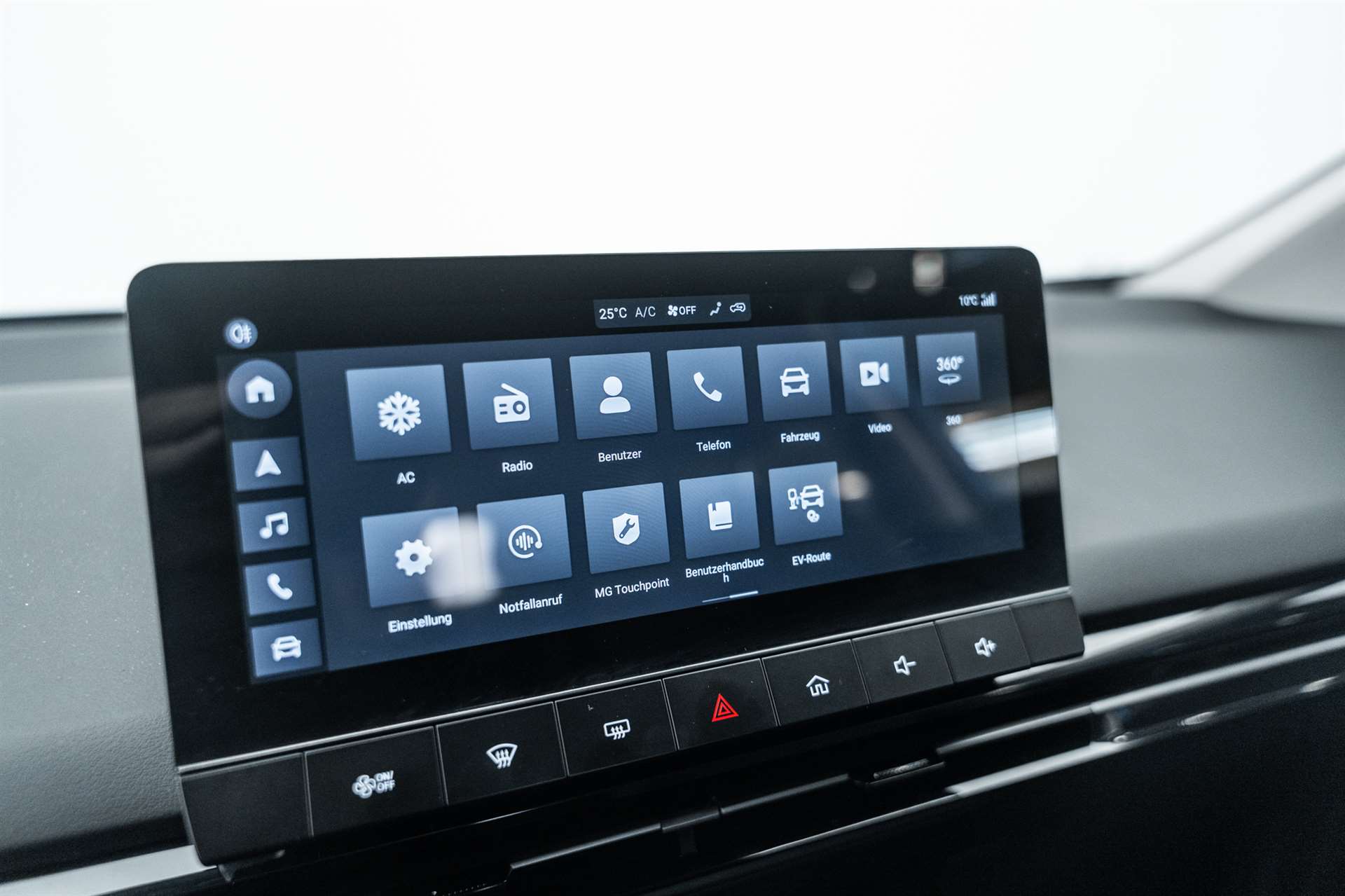"Twin-Aero" Spoiler, 3-Punkt-Sicherheitsgurte auf allen Plätzen, Airbag: Airbag Fahrer und Beifahrer, Airbag: Kopfairbags vorne, Airbag: Seitenairbags, Aktive Luftklappen, Antiblockiersystem (ABS), Assist: 360-Kamera, Assist: MG Pilot: +BSD/LCA/CTA/DOW, Assist: MG Pilot: ACC/TJA/FCW/AEB/IHC/SAS/LDW/LKA/UDW, Auto Start/Stop & Keyless Entry, Beheizbare Aussenspiegel, Dunkel getönte Scheiben hinten, Elektrisch anklappbare Aussenspiegel, Elektrische Fensterheber vorne + hinten, ESP und TCS, Fahrwerk: "One Pedal"-Fahrmodus, Garantie: 7 Jahre oder 150'000 km, Getriebe: Direktantrieb, kein Getriebe, Heckscheiben-Wisch-/Waschanlage, Klima: Automatische Klimaanlage, Lackierung: Uni-Lackierung, Lenkrad: Beheizbares Lenkrad, Lenkrad: Lederlenkrad, Licht: Drittes Bremslicht, Licht: LED-Beleuchtung (Tagfahrlicht/Vorder-/Rücklicht), Licht: Nebelschlussleuchte, Media: 6 Lautsprecher, Media: Android Auto/Apple CarPlay, Media: Digital Cluster 7'', Media: EV-Routenplaner, Media: iSMART, Media: Kabelloses Ladegerät, Media: Touch Screen 10.25'', Polster: Stoff-Ausstattung, Polster: Teilleder Polsterung, Räder: 17-Zoll-Leichtmetallfelgen, Räder: 18-Zoll-Leichtmetallfelgen, Reserverad, Servolenkung geschwindigkeitsabhängig, Sitze: 6-fach verstellbarer Fahrersitz, Sitze: Beheizbare Vordersitze, Sitze: Elektrisch verstellbarer Fahrersitz, Sitze: Rücksitzbank umklappbar 60/40, Sonnenblende mit Make-up-Spiegel, Sonnenbrillenhalter, Vehicle to Load, Wärmepumpe, Wegfahrsperre elektronisch, Zentralverriegelung mit Fernbedienung