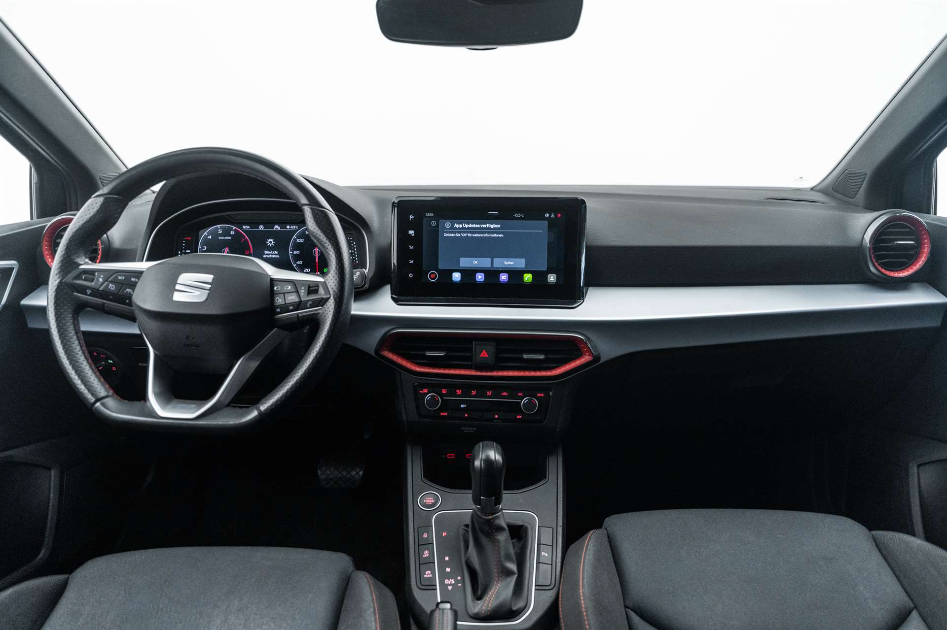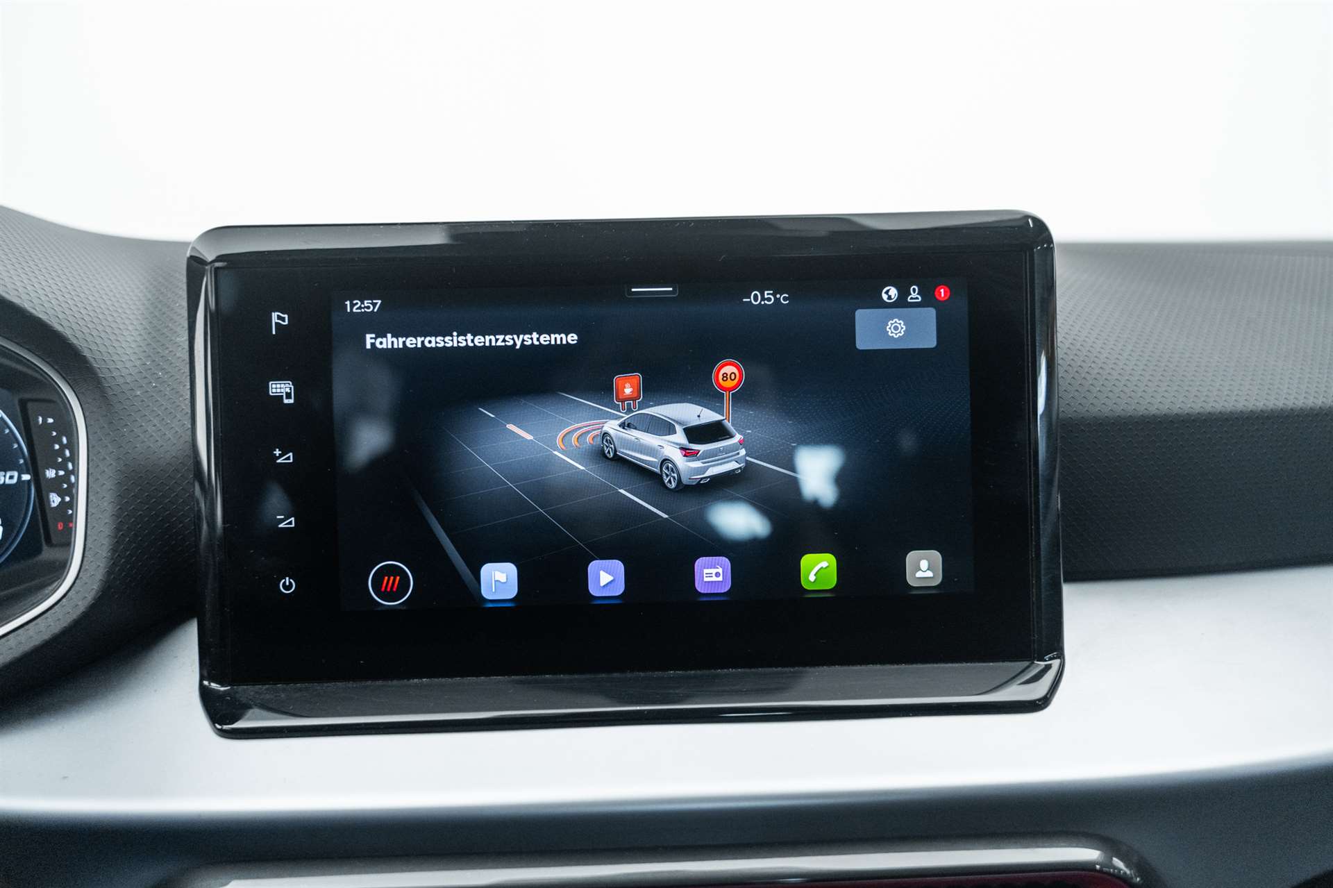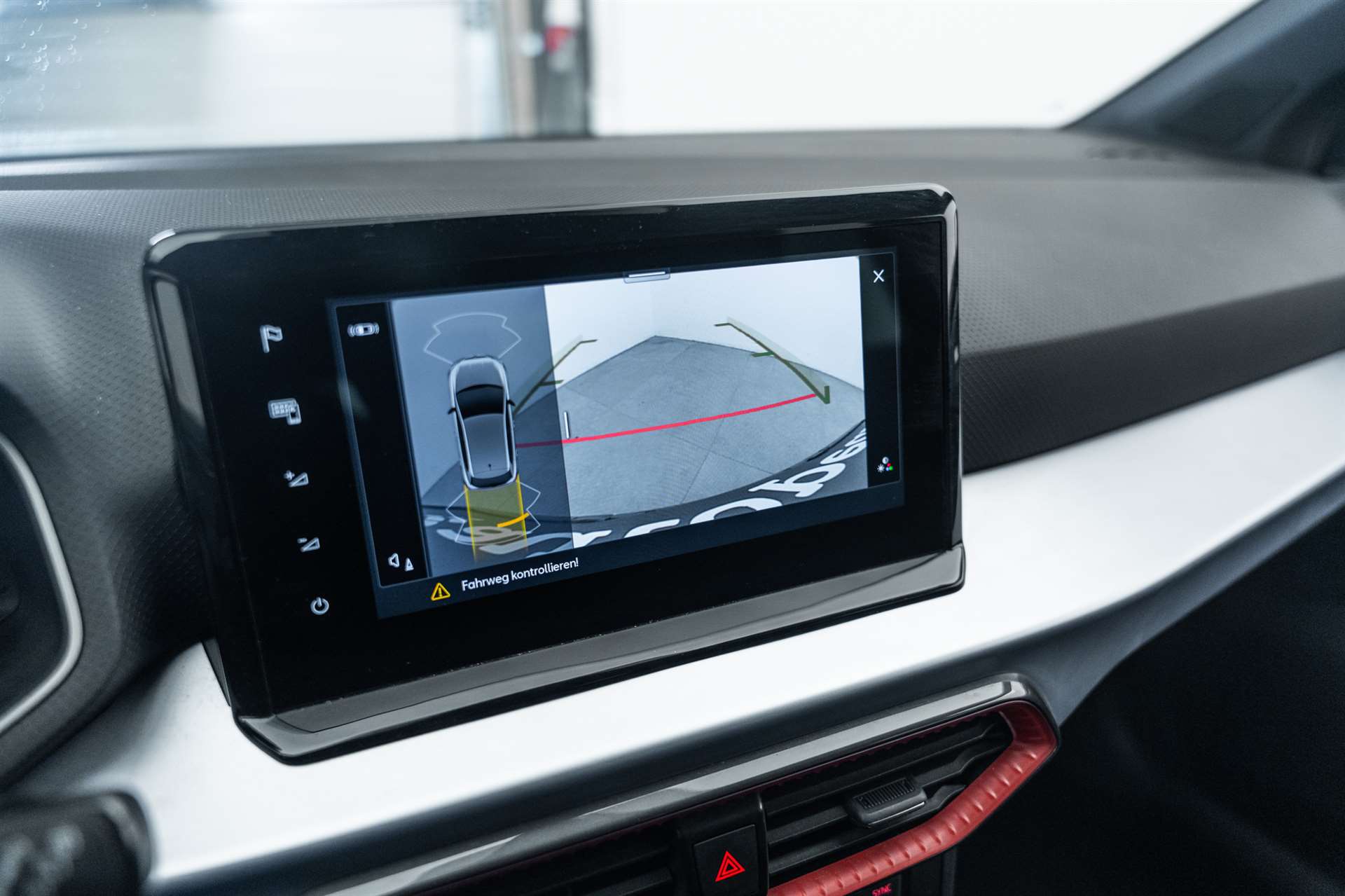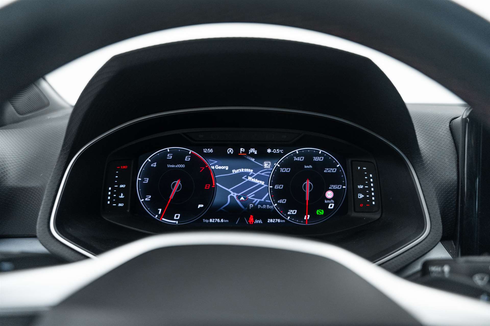 8.0" Digital Cockpit, 8.25'' Farbdisplay, Abgedunkelte Scheiben ab B-Säule hinten, Airbag: Beifahrerairbag deaktivierbar, Airbag: Fahrer und Beifahrer Airbag, Airbag: Seitenairbag für Fahrer und Beifahrer, Ambiente Innenraumbeleuchtung, Antiblockiersystem (ABS), Assist: Aufmerksamkeits- und Müdigkeitserkennung (ADA), Assist: Berganfahrhilfe, Assist: Einparkhilfe hinten, Assist: Front-Assist, Assist: Fussgänger Notbremsfunktion, Assist: Multikollisionsbremse, Assist: Speedlimiter, Assist: Spurhalteassistent Lane Assist, Assist: Tempomat, Assist: Traction Control (TCS), Assist: Traffic sign recognition (Verkehrszeichenerkennung), Aussenspiegel elektrisch einstell-, beheiz- und einklappbar, Aussenspiegel in Glanzschwarz, Bordcomputer, Dachhimmel schwarz, Dekor: Dekoreinlagen "Leatherette", Drehzahlmesser, Dreipunkt-Automatiksicherheitsgurte hinten, Elektrische Fensterheber vorne und hinten mit Komfortschaltung und Einklemmschutz, Elektronische Differentialsperre (XDS), Elektronisches Stabilitäts-Programm, Fahrwerk: Sportfahrwerk, Fussmatten vorne und hinten, Getriebe: 7-Gang DSG, Gurtkontrolle, Handschuhfach, Heckscheiben-Wisch-Waschanlage mit Intervall, Heckscheibenheizung, Heckspoiler mit integriertem 3. Bremslicht, Heizung mit mechanischer Regelung, Höheneinstellbare 3-Punkt-Sicherheitsgurte mit Gurtstraffer vorne, Innenspiegel automatisch abblendbar, ISOFIX Kindersitzvorrichtung, Katalysator geregelt, Klima: 2-Zonen Climatronic, Lackierung: Uni-Lackierung, Lenkrad längs- und höhenverstellbar, Lenkrad: Ledermultifunktionslenkrad, Lenkrad: Schaltwippen am Lenkrad für DSG, Leuchtweitenregulierung, Licht- und Regensensor, Licht: Coming-home-Funktion, Licht: Eco-LED Scheinwerfer, Licht: LED Heckleuchten, Licht: LED-Tagfahrlicht, Licht: Nebelscheinwerfer, Licht: Nebelschlussleuchte, Luftausströmer in rot, Media: DAB+ (Digital Audio Broadcasting), Media: Lautsprecher 6, Media: Mobiltelefon Freisprecheinrichtung Bluetooth, Media: SEAT Connect Safety & Services für Media System, Media: SEAT Media System CONNECT, Media: USB-Anschluss Typ C, Multifunktionsanzeige Medium, Pollenfilter (Staubfilter), Polster: Stoff, Räder: Leichtmetallräder 7J x 17", "DYNAMIC" 20/2, Räder: Reifenreparatur-Set (Tire Fit), Scheibenbremsen hinten, Scheibenwischer vorne mit Intervall, SEAT Drive Profile, Servolenkung, Sitze: Beifahrersitz höhenverstellbar, Sitze: Fahrersitz höhenverstellbar, Sitze: Kopfstützen vorne und hinten, Sitze: Rücksitzlehne geteilt abklappbar, Sitze: Sportsitze vorne, Sport-Stossstangen, Stop/Start-Technologie, Tageskilometerzähler, Türgriffe aussen in Wagenfarbe, Wärmeschutzverglasung, Wassertemperaturanzeige, Wegfahrsperre elektronisch, Zentralverriegelung mit Fernbedienung