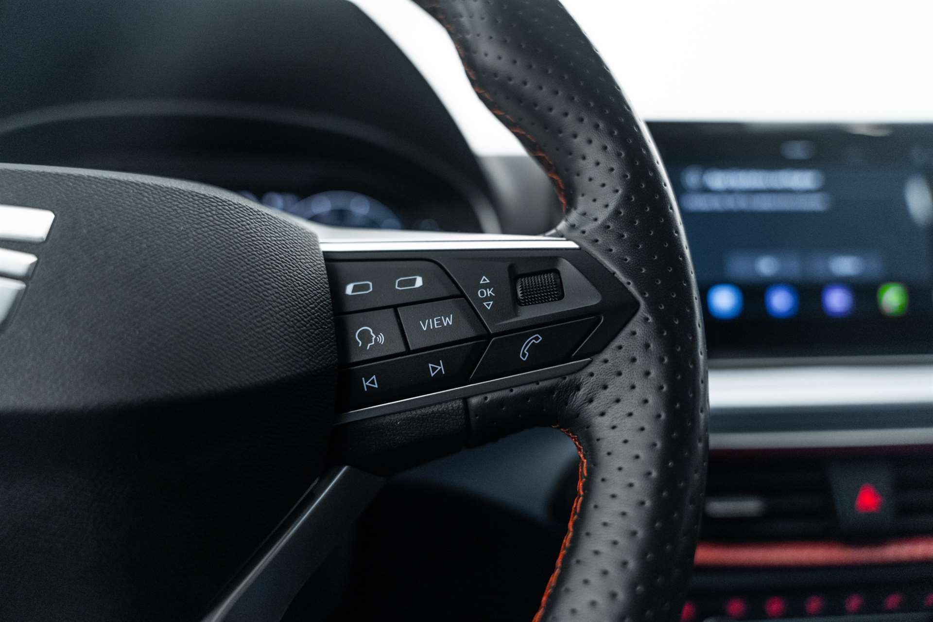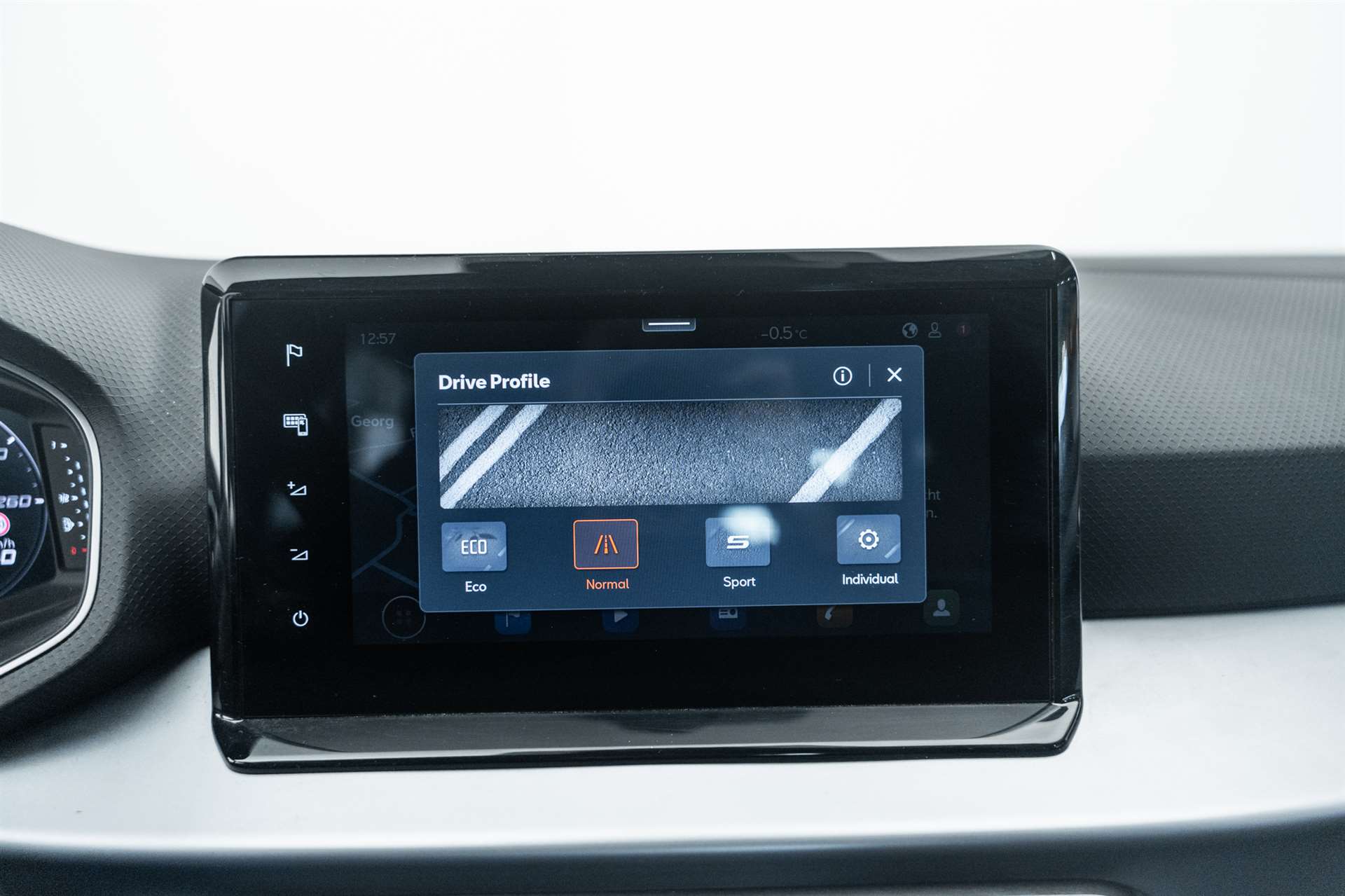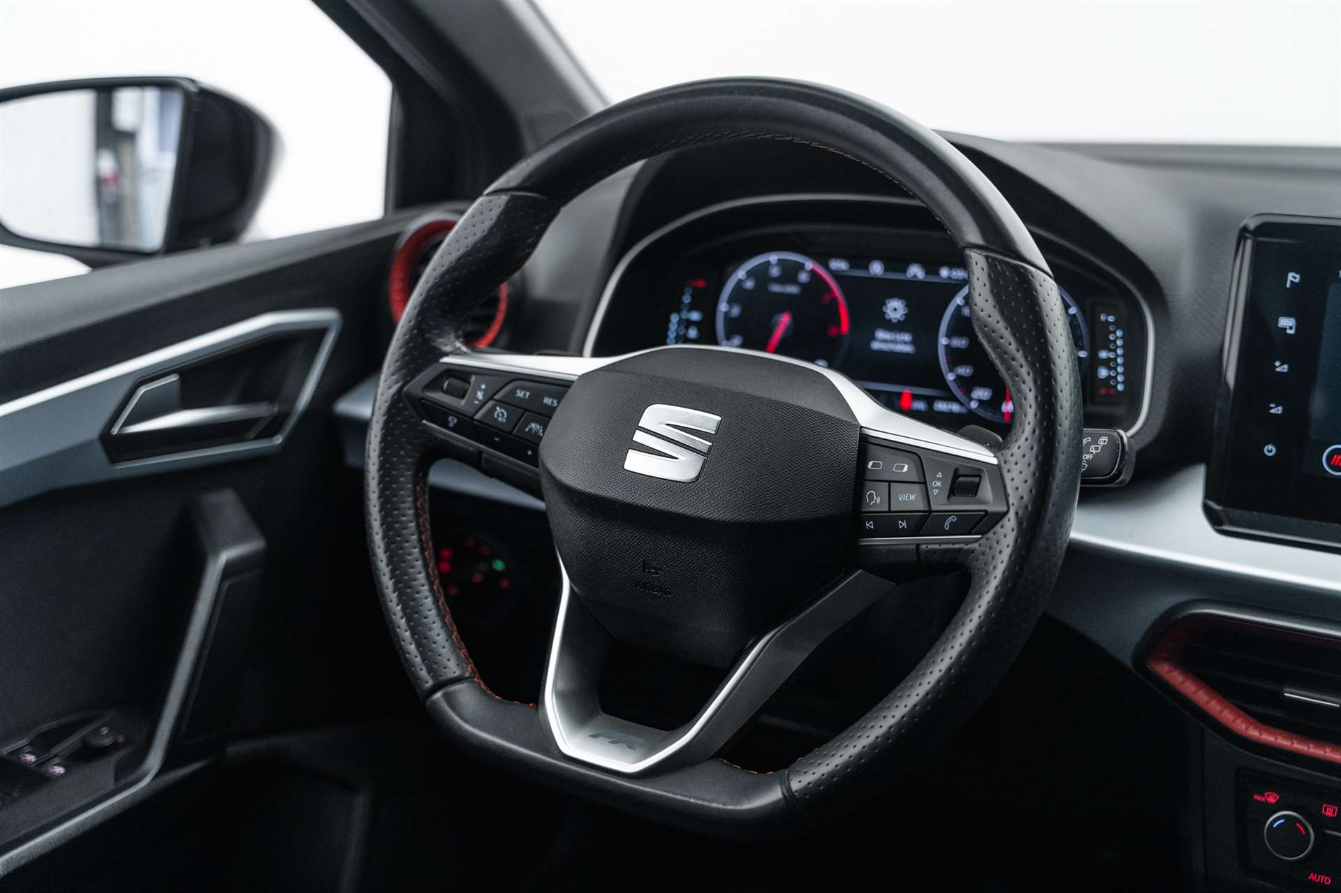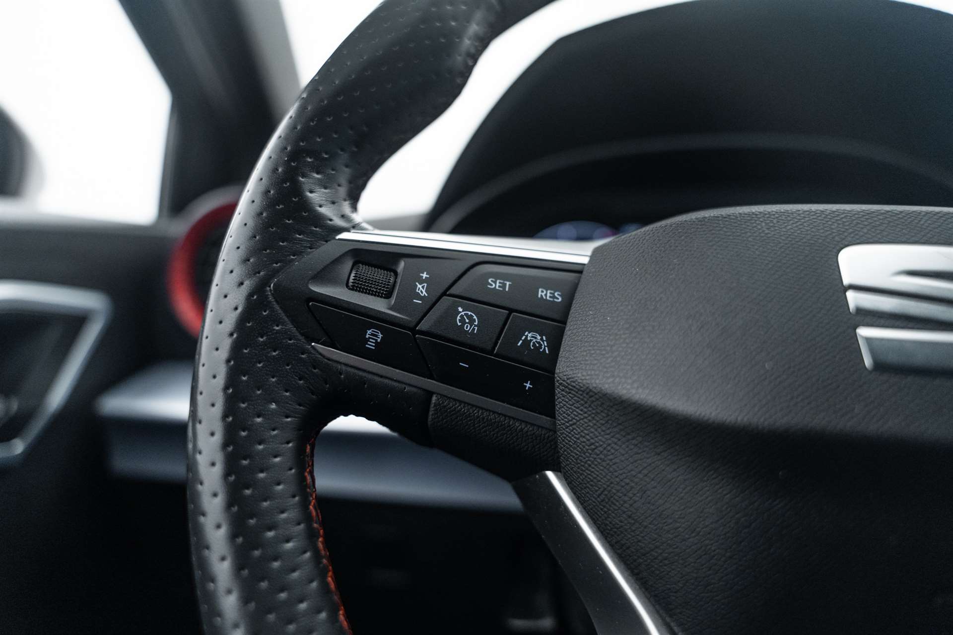 8.0" Digital Cockpit, 8.25'' Farbdisplay, Abgedunkelte Scheiben ab B-Säule hinten, Airbag: Beifahrerairbag deaktivierbar, Airbag: Fahrer und Beifahrer Airbag, Airbag: Seitenairbag für Fahrer und Beifahrer, Ambiente Innenraumbeleuchtung, Antiblockiersystem (ABS), Assist: Aufmerksamkeits- und Müdigkeitserkennung (ADA), Assist: Berganfahrhilfe, Assist: Einparkhilfe hinten, Assist: Front-Assist, Assist: Fussgänger Notbremsfunktion, Assist: Multikollisionsbremse, Assist: Speedlimiter, Assist: Spurhalteassistent Lane Assist, Assist: Tempomat, Assist: Traction Control (TCS), Assist: Traffic sign recognition (Verkehrszeichenerkennung), Aussenspiegel elektrisch einstell-, beheiz- und einklappbar, Aussenspiegel in Glanzschwarz, Bordcomputer, Dachhimmel schwarz, Dekor: Dekoreinlagen "Leatherette", Drehzahlmesser, Dreipunkt-Automatiksicherheitsgurte hinten, Elektrische Fensterheber vorne und hinten mit Komfortschaltung und Einklemmschutz, Elektronische Differentialsperre (XDS), Elektronisches Stabilitäts-Programm, Fahrwerk: Sportfahrwerk, Fussmatten vorne und hinten, Getriebe: 7-Gang DSG, Gurtkontrolle, Handschuhfach, Heckscheiben-Wisch-Waschanlage mit Intervall, Heckscheibenheizung, Heckspoiler mit integriertem 3. Bremslicht, Heizung mit mechanischer Regelung, Höheneinstellbare 3-Punkt-Sicherheitsgurte mit Gurtstraffer vorne, Innenspiegel automatisch abblendbar, ISOFIX Kindersitzvorrichtung, Katalysator geregelt, Klima: 2-Zonen Climatronic, Lackierung: Uni-Lackierung, Lenkrad längs- und höhenverstellbar, Lenkrad: Ledermultifunktionslenkrad, Lenkrad: Schaltwippen am Lenkrad für DSG, Leuchtweitenregulierung, Licht- und Regensensor, Licht: Coming-home-Funktion, Licht: Eco-LED Scheinwerfer, Licht: LED Heckleuchten, Licht: LED-Tagfahrlicht, Licht: Nebelscheinwerfer, Licht: Nebelschlussleuchte, Luftausströmer in rot, Media: DAB+ (Digital Audio Broadcasting), Media: Lautsprecher 6, Media: Mobiltelefon Freisprecheinrichtung Bluetooth, Media: SEAT Connect Safety & Services für Media System, Media: SEAT Media System CONNECT, Media: USB-Anschluss Typ C, Multifunktionsanzeige Medium, Pollenfilter (Staubfilter), Polster: Stoff, Räder: Leichtmetallräder 7J x 17", "DYNAMIC" 20/2, Räder: Reifenreparatur-Set (Tire Fit), Scheibenbremsen hinten, Scheibenwischer vorne mit Intervall, SEAT Drive Profile, Servolenkung, Sitze: Beifahrersitz höhenverstellbar, Sitze: Fahrersitz höhenverstellbar, Sitze: Kopfstützen vorne und hinten, Sitze: Rücksitzlehne geteilt abklappbar, Sitze: Sportsitze vorne, Sport-Stossstangen, Stop/Start-Technologie, Tageskilometerzähler, Türgriffe aussen in Wagenfarbe, Wärmeschutzverglasung, Wassertemperaturanzeige, Wegfahrsperre elektronisch, Zentralverriegelung mit Fernbedienung