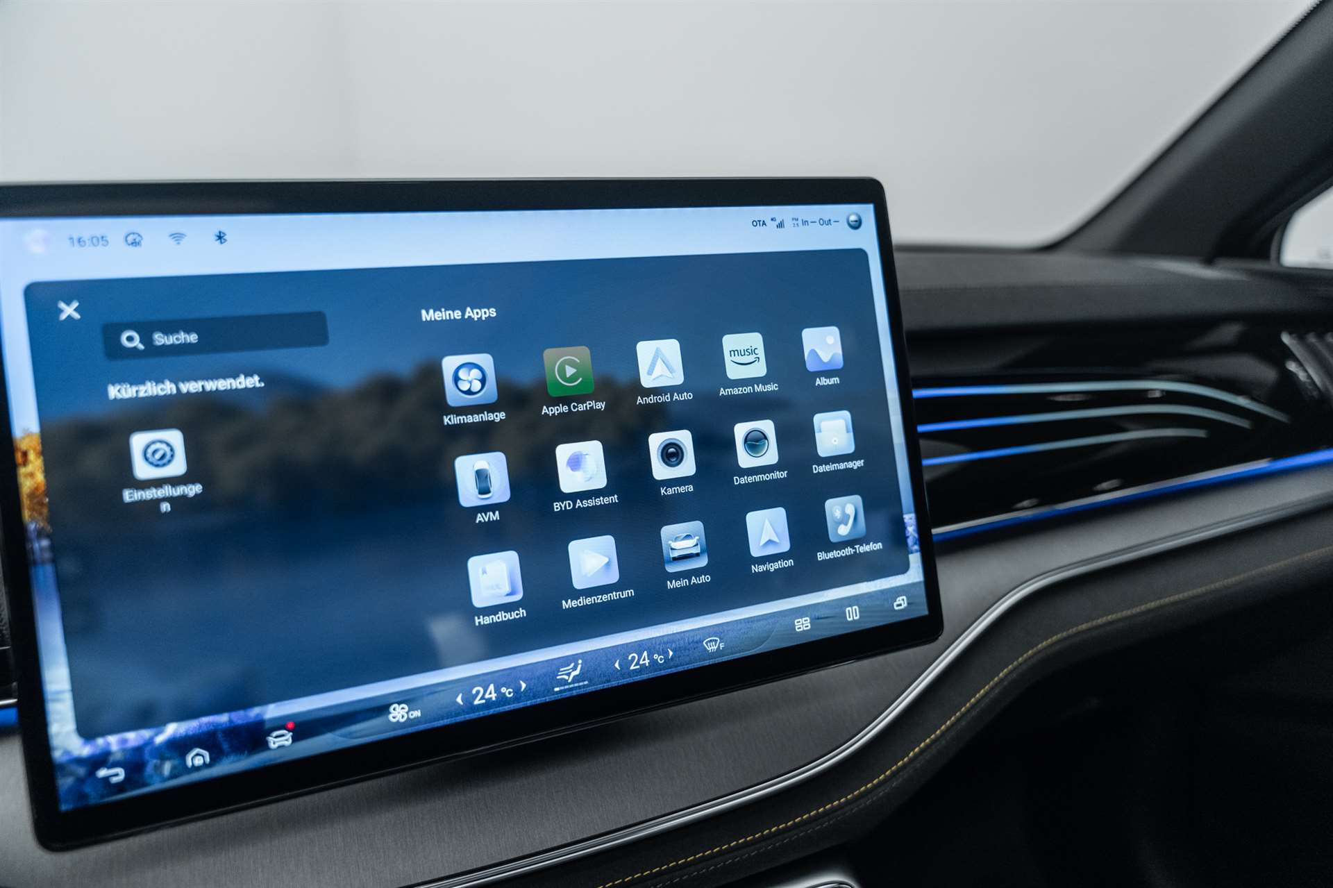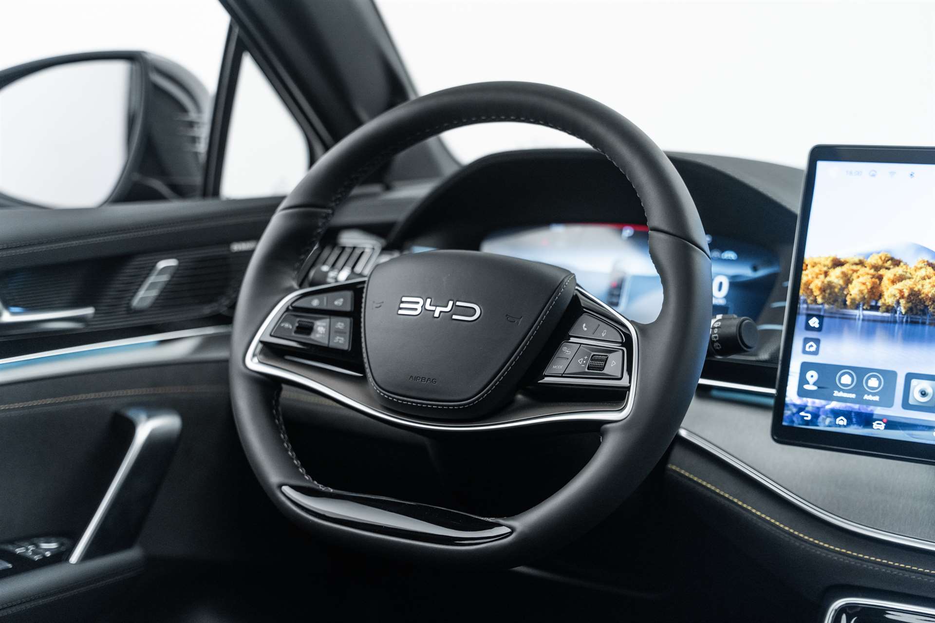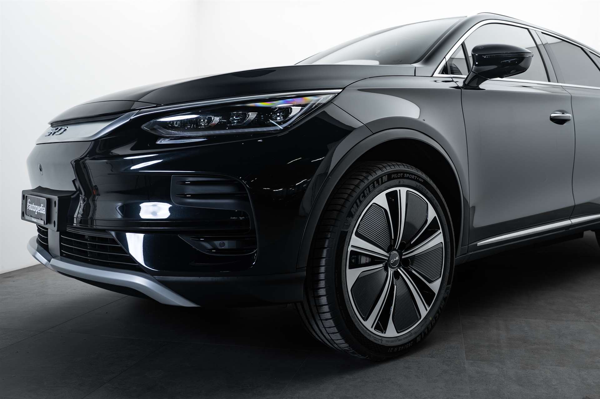 Mittelarmlehne hinten, 2 Getränkehalter, Airbag: Vorhangairbags, Sitze: Beifahrersitz, elektrisch verstellbar, 6-fach, Sitze: Rücksitze, manuell einstellbare Kopfstütze, Servolenkung, Licht: Dynamisches Begrüssungslicht, Media: USB-Anschlüsse hinten: 1 x 18W Typ C, 1 x 60 W Typ C, Wärmepumpe, Vordersitz-Fussraumleuchten, mehrfarbig, Assist: Kindererkennung (CPD), Sicherheitsgurtwarnung vorne und hinten, Gepäckraumleuchte, Aussenspiegel elektrisch verstellbar, elektrisch anklappbar, beheizbar, Assist: Müdigkeitserkennung für den Fahrer (DFW) und Aufmerksamkeitswarnung für den Fahrer (DFW), Reifendruckkontrolle, Assist: Spurverlassenswarnung (LDW), Assist: Heckkollisionswarnung (RCW), Handschuhfachleuchte, Media: Intelligente Sprachsteuerung "Hallo, BYD", Assist: Vorwärtskollisionswarnung (FCW), Media: 15,6" elektrisch drehbarer Touchscreen, Ambientebeleuchtung, mehrfarbig, Privacy glass in fond, Sitze: Rücksitze 40:60 geteilt umklappbar, Elektronische Bremskraftverteilung (EBD), 12-V-Stromanschluss, Licht: LED-Rückleuchten, Klima: Zweizonen-Klimaautomatik, ESP (Elektronisches Stabilitätsprogramm), Sitze: Beifahrersitz, 2 x Dokumentenfächer, Frontscheibe, UV-Schutz, Wärmedämmung, Schalldämmung, Assist: Auto Hold, Sitze: Rücksitze, Rückenlehnenwinkel manuell einstellbar, Mehrfarbige LED-Ladeanzeige, Airbag: Fahrerairbag und Beifahrerairbag, Media: In-car WLAN-Hotspot, Licht: LED-Scheinwerfer, automatisches Ein-/Ausschalten, Klima: Belüftungsdüsen hinten, Elektronische Kindersicherung, Räder: 20" Bicolor- Leichtmetallfelgen, Frontscheibe, Scheibenwischer mit Regensensor, Beschlagentfernung, Enteisung, Sitze: Fahrersitz, 2 x Dokumentenfächer, Sitze: Fahrersitz mit elektr. Schenkelstütze, Heckscheiben, UV-Schutz, Wärmedämmung, Sichtschutzglas, Sitze: Fahrersitz, elektrische Lordosenstütze, 4-fach, Assist: Adaptive Geschwindigkeitsregelung (ACC), Airbag: Seitenairbags vorn und hinten, Vordersitz-Sonnenblenden mit beleuchtetem Schminkspiegel, Assist: Elektrische Parkbremse (EPB), Dynamische Blinker, Automatisch abblendender Rückspiegel, Antiblockiersystem (ABS), Keyless entry & keyless start, Assist: Fahrerablenkungswarnung (DDW), Panoramadach, elektrisch verstellbares Sonnenschutzrollo, Media: Android Auto & Apple CarPlay3, Sitze: Fahrersitz belüftet, beheizt, gespeicherte Einstellung, Media: Integrierte 4G-Konnektivität2, 2 x Smart Key & 1 x NFC-Schlüssel, Assist: Spurverlassensassistent (LDA) & Spurverlassenswarnung (LDW), 11kW On-Board Charger (OBC), Licht: Follow-me-Home, Mittelarmlehne vorn, 2 Getränkehalter, Licht: Intelligenter Fernlichtassistent (IHBC), Lenkrad: Multifunktionslenkrad, Leder, beheizt, Assist: Hydraulischer Bremsassistent (HBA), Bodenbeleuchtung vorne, Assist: Intelligente Geschwindigkeitsbegrenzungsinformation (ISLI), 4 x One-Touch-Fensterheber mit Einklemmschutzfunktion, Media: Navigationsystem, Media: USB-Anschlüsse vorn: 1 x 18W Typ C, 1 x 60 W Typ C, LED-Leseleuchten hinten, Blinkerleuchten im Aussenspiegel, Mittelkonsolenleuchte, Polster: Vegan-Leder Sitze, Licht: Kurvenlicht, Assist: Toter-Winkel-Warnung (BSD), Media: Smartphone wireless charging, 1 x 50 W, Armlehne hinten, 2 Getränkehalter, Sitze: Beifahrersitz belüftet, beheizt, PM2.5-Luftreinigungssystem, Airbag: Frontairbag in der Mitte, Assist: Berganfahrassistent (HSA), Fahrwerk: Fahrdynamikregelung (VDC), Notruf, Getriebe: Direktantrieb, kein Getriebe, Media: Dynaudio Soundsystem, 12 Lautsprecher, LED-Leseleuchten vorn, Assist: Automatische Notbremsung (AEB), Fußraumbeleuchtung in den Außenspiegeln, Assist: Vorausschauende Kollisionswarnung (PCW), Assist: Parksensoren vorne und hinten, Türöffnungswarnung (DOW), Assist: Spurhalteassistent (ELKA), Lackierung: Metallic-Lackierung, Assist: Querverkehrswarnung hinten (RCTA) & Querverkehrsbremse hinten (RCTB), Traktionskontrolle (TCS), Sitze: Rücksitze beheizt, Assist: 360° view camera, Heckscheibe, beheizt, beschlagfrei, entfrostend, Licht: LED-Tagfahrlicht, Assist: Verkehrszeichenerkennung (TSR), Assist: Spurwechselassistent (LCA), Assist: Kontrollierte Verzögerung mit Feststellbremse (CDP), Licht: Nebelschlussleuchten, Sitze: Fahrersitz und Beifahrer, integrierte Kopfstütze, Sitze: Fahrersitz, elektrisch verstellbar, 8-fach, Positionsspeicher, Easy entry, Media: 10,25" TFT-LCD-Instrumententafel, Vorgespannte und höhenverstellbare Sicherheitsgurte vorn, Elektrische Heckklappe, Kick-to-Open-Funktion, ISOFIX und i-Size, Beifahrer- und äußere Rücksitze, Fahrmodus: Eco, Normal, Sport, Snow, Licht: Fernlichtassistent (HMA), Assist: Querverkehrswarnung vorn (FCTA) & Querverkehrsbremse vorn (FCTB), Vier LED-Türleuchten, Lackierung: Premium Metallic-Lackierung