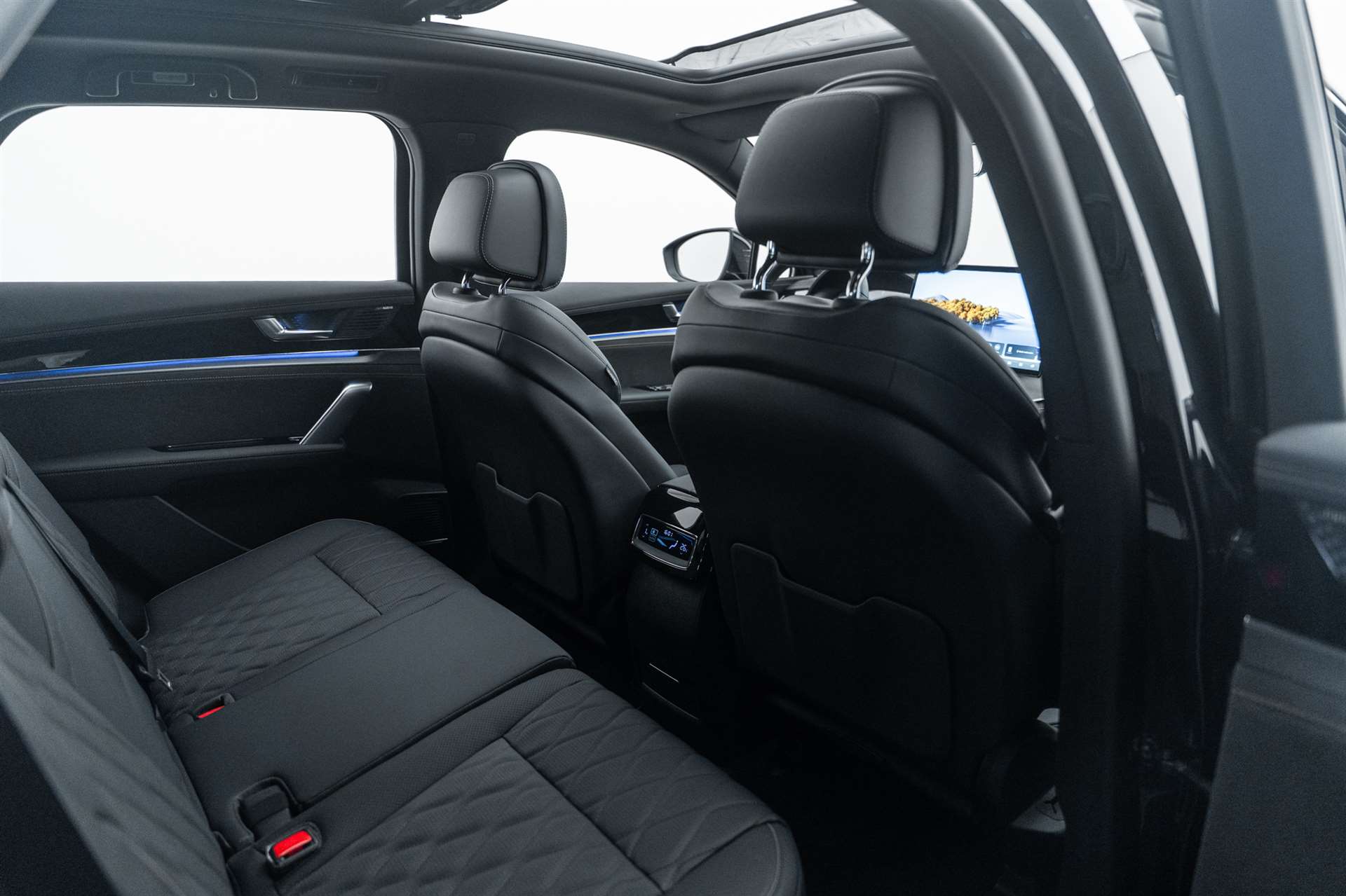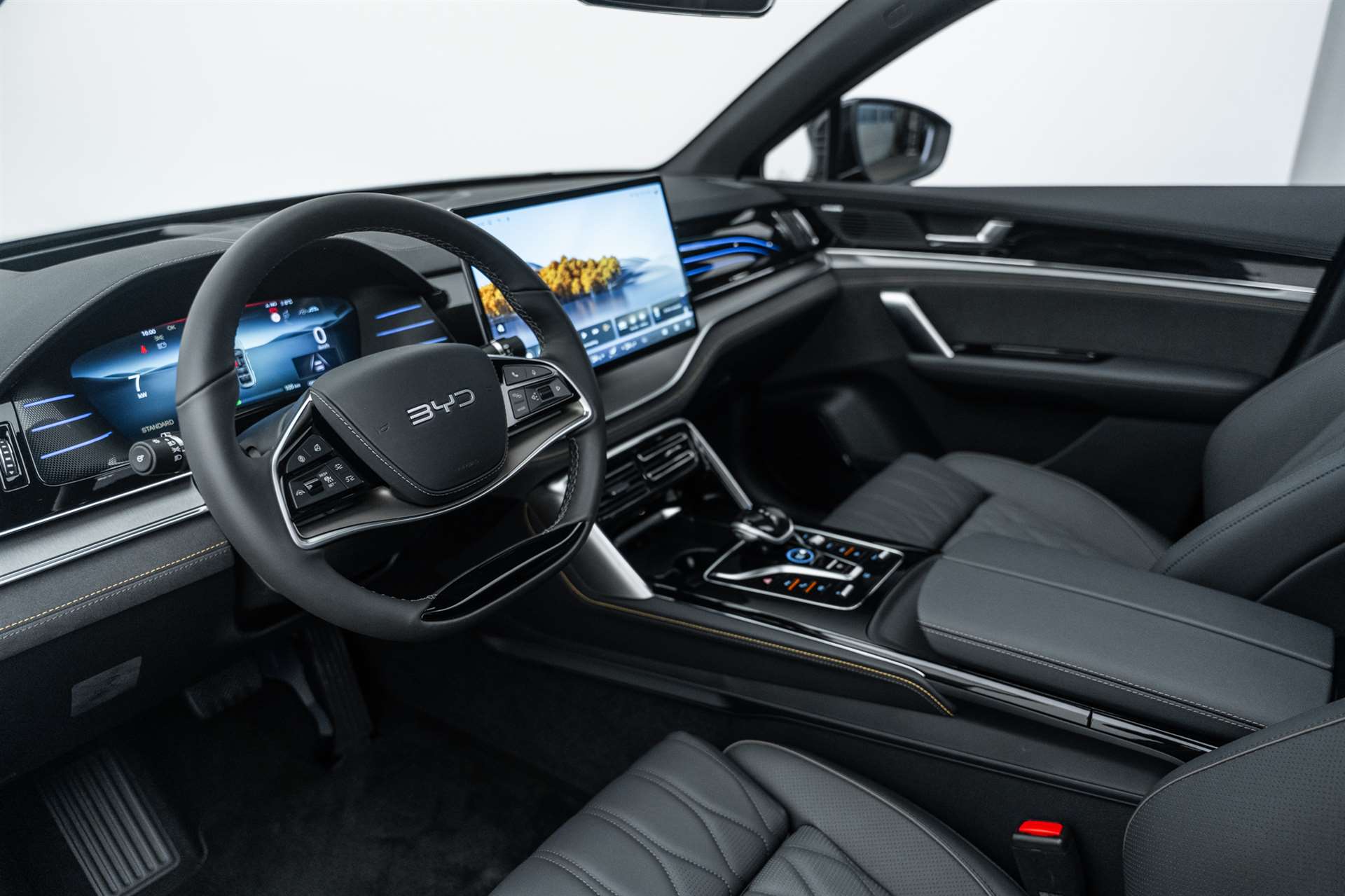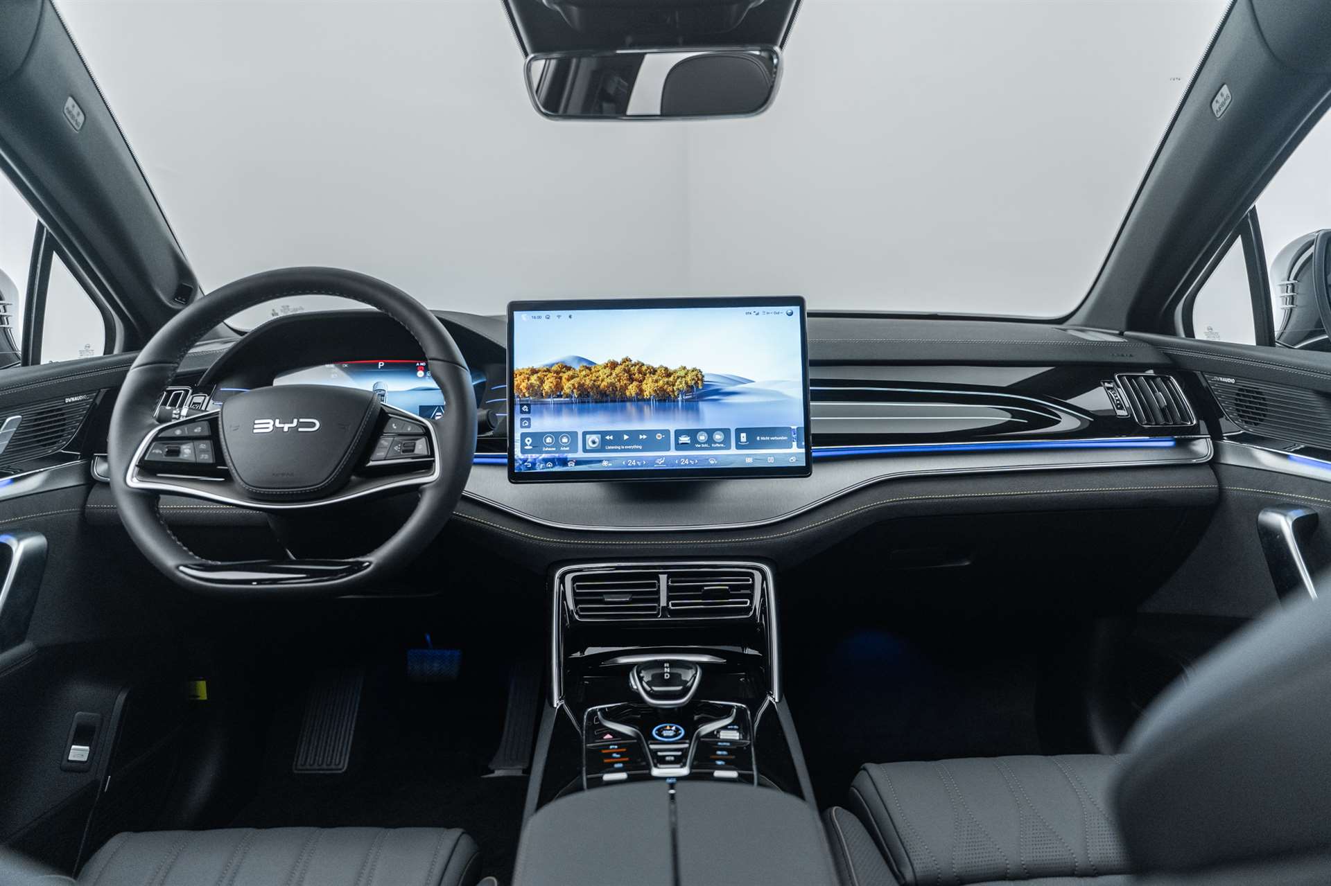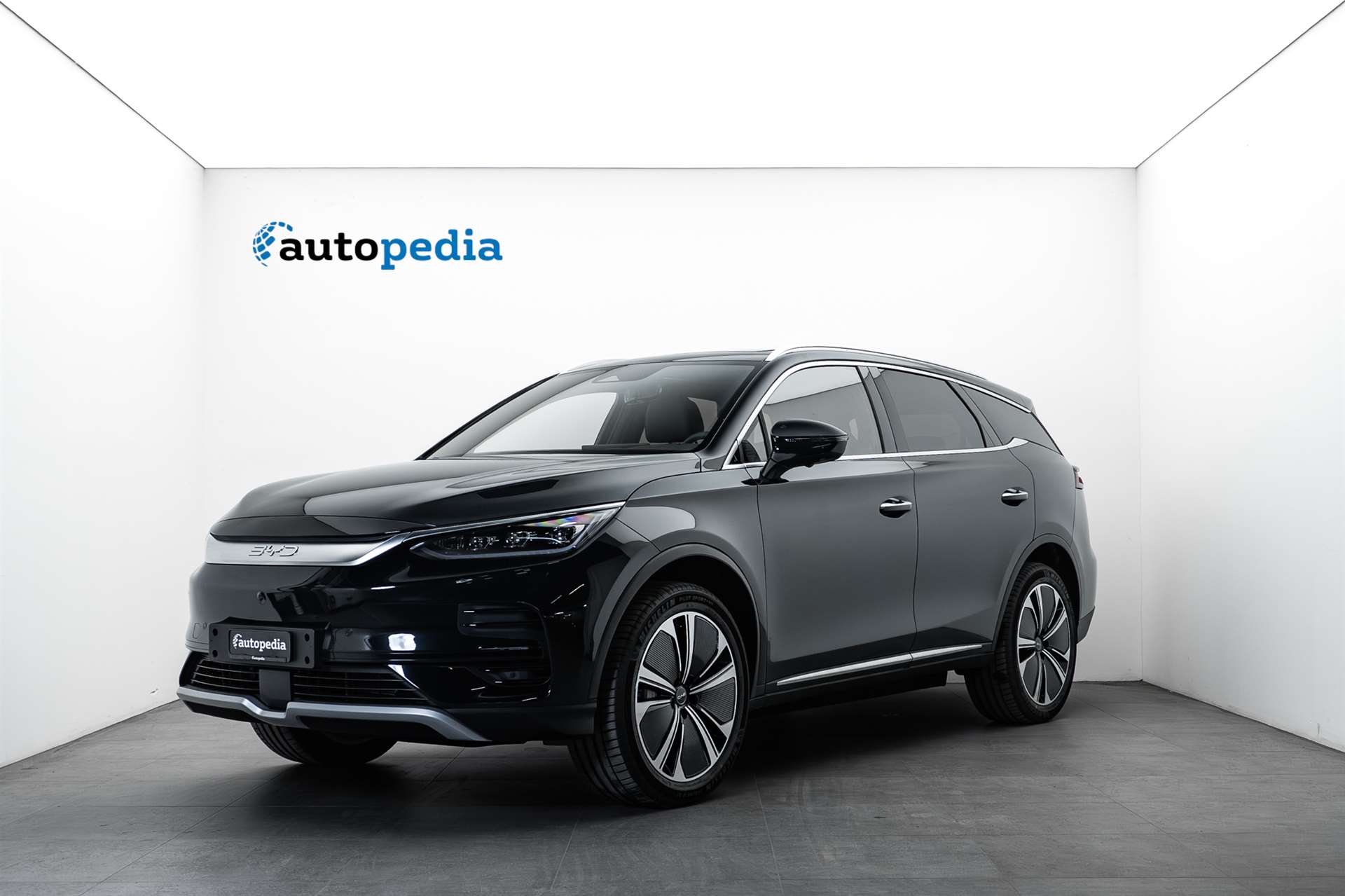 12-V-Steckdose, 12,3"-Fahrerdisplay, 15,6"-Zentraldisplay (um 90° drehbar), 2 × Schlüssel & 1 × NFC-Karte, 21"-Leichtmetallfelgen im zweifarbigen Design, 3,3-kW-V2L-Funktion (Vehicle-to-Load), 360°-Rundumsichtkamera, 4G-Internet, Adaptiver Tempomat (ACC) & Intelligenter Tempomat (ICC), Armaturenbrett in Wildleder, Ausziehbare Kofferraumabdeckung, Automatisch abblendender Innenspiegel, Automatischer Notbremsassistent (AEB), Bedienfeld für die Rücksitze, Begrüßungslicht (verzögertes Ein- und Ausschalten der Scheinwerfer), Beifahrerairbag vorne mit Deaktivierungsschalter, Beleuchtetes Handschuhfach, Bergabfahrhilfe (HDC), BYD App, BYD Sprachassistent („Hi BYD“) [nur englische Sprache], DAB-Radio & FM-Radio, Dachreling aus Aluminium, Diebstahlalarm, Dunkel getönte hintere Scheiben, Dynamischer Blinker, Dynamisches Begrüßungslicht, Dynaudio® Soundsystem (12 Lautsprecher), Elektrisch anklappbare, einstellbare und beheizbare Außenspiegel, Elektrisch beheizbares Lenkrad, Elektrisch verstellbarer Beifahrersitz (6-fach), Elektrisch verstellbarer Fahrersitz mit Memory-Funktion (8-fach), Elektrische Heckklappe, Elektrische Seitenscheiben mit One-Touch-Funktion, Elektrisches Sonnenrollo für das Panorama-Glasdach, Elektronisches Parkbremssystem (EPB), Fahrer-Müdigkeitserkennung (DFM), Fahrerairbag, Fahrmodi: Eco, Normal, Sport, Schnee, Fernlichtassistent (HBA), Front-Mittelairbag, Frontkollisionswarnung (FCW), Frontquerverkehrswarner (FCTA) & Frontquerverkehrs-Bremsassistent (FCTB), Fußraumbeleuchtung vorne, Garantie: Batterie-Garantie 8 Jahre oder 200'000 km, Garantie: Garantie 6 Jahre oder 150'000 km, Geräuschdämmende Frontscheibe, Gummimatte mit Velours-Einlegematte, Head-up display (HUD), Heckkollisionswarnung (RCW), Heckquerverkehrswarner (RCTA) & Heckquerverkehrs-Bremsassistent (RCTB), Hinten: 2 × LED-Leselampen, Hinten: 2 × Parksensoren, Hinten: 2 × USB-Ladeanschlüsse (1 × USB-A, 1 × USB-C), Höhenverstellbare Sicherheitsgurte vorne, Innenraumkamera, Integrierte Parkbremse (IPB), Intelligente Geschwindigkeitsregelung (ISLC), ISOFIX (Beifahrersitz vorne sowie äußere Sitzplätze der 2. und 3. Sitzreihe), Kabelloses Apple CarPlay und Android Auto, Kabelloses Laden für Smartphones, Klimaautomatik (3-Zonen), Klimabedienfeld für die Rücksitze, Klimatisierte Vordersitze mit Massagefunktion (Kühl- und Heizfunktion), Kofferraumbeleuchtung, Komfortstopp (CST), Kopfairbag (Vorhangairbag), Kurvenlicht, LED-Innenraumbeleuchtung, LED-Rückleuchten, LED-Scheinwerfer, LED-Tagfahrlicht, Licht- und Regensensor, Luftausströmer im Fond, Luftionisator, Manuell verstellbare 2. Sitzreihe (2-fach), Manuell verstellbare Kopfstützen im Fond, Mechanische Kindersicherung, Mehrfarbige, rhythmusaktive Ambientebeleuchtung (31 Farben), Metallic-Lackierung, Mittelkonsole vorne mit doppeltem Getränkehalter, Multifunktionslenkrad in Kunstleder, Navigation mit Routenplaner, Notbrems-Signalsystem (EBSS), Notbremsassistent beim Spurwechsel (ELK), Notrufsystem, Öffnen und Schließen der Heckklappe mit Kick-/Fußsensor, Panorama-Glasdach, Personenerkennung (CPD), Platz für 7 Personen (2+3+2), PM2,5-Luftfilter, PM2,5-Luftreinigungssystem, Reifendruckkontrollsystem (TPMS), Rücksitze: Sicherheitsgurte mit Kraftbegrenzer, Schlüsselloser Zugang & schlüsselloser Start, Schwarzer Dachhimmel, Seitenairbag vorne, Sitzbezüge: Nappaleder in frei wählbarer Farbe, Sonnenblenden mit beleuchteten Make-up-Spiegeln, Spurhalteassistent (LKA), Spurverlassensassistent (LDA), Spurverlassenswarnung (LDW), Spurzentrierungssystem (LCC), Stauassistent (TJP), Totwinkelassistent (BSD), Traktionskontrolle (TCS), Türöffnungswarnung (DOW), Umgebungsbeleuchtung aus den Außenspiegeln, Umklappbare 2. Sitzreihe (40:60), Umklappbare 3. Sitzreihe (50:50), Umklappbare Mittelarmlehne im Fond mit doppeltem Getränkehalter (2. Sitzreihe), V2L-adapter, Verkehrszeichenerkennung (TSR), Vordersitze mit elektrisch verstellbarer Lendenwirbelstütze (4-fach), Vordersitze mit integrierten Kopfstützen, Vordersitze: Sicherheitsgurte mit Kraftbegrenzer, Vorne: 2 × LED-Leselampen, Vorne: 2 × Parksensoren, Vorne: 2 × USB-Ladeanschlüsse (1 × USB-A, 1 × USB-C), Wärmepumpe, Zentralverriegelung