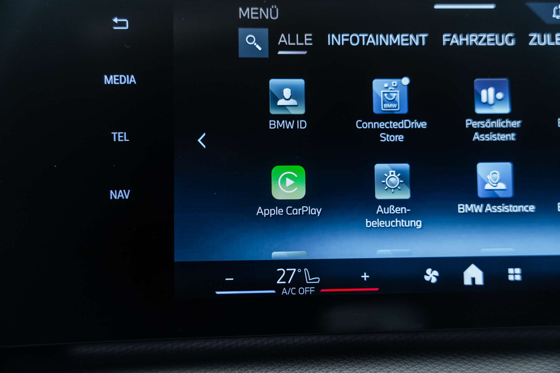 Paket: Innovationspaket, Lackierung: BMW Individual Frozen Pure Grey metallic, BMW Garantie: Repair Inclusive 5 Jahre oder 200'000 km, Räder: 19" Leichtmetallräder V-Speiche 867 Bicolor mit Sportreifen, Assist: Driving Assistant Professional, Räder: 20" BMW Individual Leichtmetallräder Vielspeiche 869, Lackierung: BMW Individual Lackierung, Räder: 19" M Leichtmetallräder Doppelspeiche 871 M Bicolor mit Sportreifen, Räder: 18" Leichtmetallräder Sternspeiche 865, Paket: Komfort Paket, M Compound-Bremse, Grau hochglänzend, Assist: Driving Assistant Plus, Panorama-Glasdach, Polster: Leder Vernasca, BMW Head-Up Display, Licht: Adaptiver LED-Scheinwerfer, Assist: Parking Assistant Professional, Sitze: Sitzverstellung, elektrisch mit Memory, Sitze: M Sportsitze für Fahrer und Beifahrer, Media: HiFi Lautsprechersystem harman/kardon, Sitze: Sitzverstellung, elektrisch mit Memory, Fahrer, M Sportbremse, dunkelblau metallic, Assist: Driving Assistant, BMW Garantie: Repair Inclusive 4 Jahre oder 200'000 km, Sitze: Aktivsitz für Fahrer und Beifahrer, Sonnenschutzverglasung, Polster: Veganza perforiert, Dachreling Aluminium satiniert, Polster: Veganza perforiert, Flexible Fast Charger (Mode 2), Sitze: Aktivsitz für Fahrer, M Hochglanz Shadow Line mit erweiterten Umfängen, Lenkrad: Lenkrad beheizbar, BMW IconicSounds Electric, Polster: Stoff Econeer, Gepäckraumtrennnetz, Media: Innenraumkamera, Dekor: Edelholzausführung Eukalyptus offenporig und Akzentleisten in Perlglanz Chrom, Spiegelkappen schwarz, Polster: Sensatec perforiert, Räder: Reifenpannenset Plus, BMW Mobile Care, Räder: 18" M Leichtmetallräder Doppelspeiche 838 M Bicolor, BMW Garantie: BMW Service Plus, BMW Garantie: Repair Inclusive - 3 Jahre/100.000 km, Sitze: Aktivsitz für Fahrer und Beifahrer, Sitze: Sitzverstellung, elektrisch mit Memory, Media: HiFi Lautsprechersystem harman/kardon, Komfortzugang, Innenspiegel, automatisch abblendend, BMW Head-Up Display, Paket: Innen- und Aussenspiegelpaket, Licht: Adaptiver LED-Scheinwerfer, Media: Ablage für Wireless Charging, Media: BMW Live Cockpit Professional, Licht: Fernlicht-Assistent