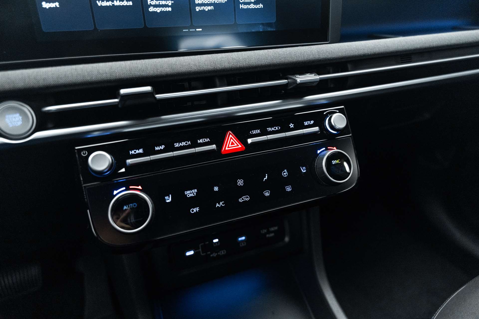 ABS mit elektronischer Bremskraftverteilung EBD, Airbag: Center Airbag vorne, Airbag: Deaktivierung Frontairbag Beifahrerseite, Airbag: Front- und Seitenairbags vorne, Vorhangairbags vorne und hinten, Alarmanlage, Ambientebeleuchtung, Assist: Aktiver Totwinkelassistent, Assist: Anfahralarm Vorderfahrzeug, Assist: Aufmerksamkeitsassistent, Assist: Bergabfahrhilfe (DAC), Assist: Berganfahrhilfe, Assist: Einparkhilfe vorne und hinten, Assist: Elektrische Parkbremse mit Auto-Hold-Funktion, Assist: Elektronische Traktionskontrolle, Assist: Navigationsbasierter adaptiver Tempomat, Assist: Notbremsassistent mit Fussgänger-/Fahrraderkennung und Abbiegefunktion, Assist: Querverkehrswarner hinten mit Bremsassistent, Assist: Rückfahrkamera, Assist: Spurfolgeassistent, Assist: Spurhalteassistent, Assist: Verkehrszeichenerkennung, Assist: Verkehrszeichenerkennung mit automatischer Geschwindigkeitsregelung, Aussenspiegel mit Welcome-Light, Aussenspiegel und Türgriffe in Wagenfarbe, Aussentemperaturanzeige, Automatisch abblendender Innenspiegel, Automatisches Notrufsystem eCall, Bordcomputer, Dachreling, Dreipunkt-Sicherheitsgurte auf allen Plätzen, vorne höhenverstellbar, Drive Mode Select (2 Fahrmodi), Elektrisch einklappbare Aussenspiegel, Elektrisch verstell- und beheizbare Aussenspiegel, Elektrische Fensterheber vorne u. hinten, Elektronische Gangschaltung (Shift by wire), Elektronisches Stabilitätsprogramm ESP mit Multikollisionsbremse, Fahrtrichtungsanzeiger mit Antippfunktion, Fahrwerk: Terrain Mode Selector, Gepäcknetz, Getriebe: 6-Gang Automatikgetriebe, Insassenalarm, ISOFIX Kindersitzvorrichtung, Klima: 2-Zonen-Klimaautomatik mit Anti-Beschlagsystem, Lackierung: Uni-Lackierung Engine Red, Lenkrad; Lederlenkrad und -schaltknauf, Lenkrad: Audiofernbedienung am Lenkrad, Lenkrad: Lenkrad beheizbar, Lenkrad: Lenkrad vertikal und axial verstellbar, Lenkrad: Lenkrad-Wippschaltung (Paddles), Licht: Fernlichtassistent, Licht: LED Rückleuchten, Licht: LED-Projektionsscheinwerfer, Licht: LED-Tagfahrlicht, Licht: Lichtautomatik, Media: 8 Lautsprecher, Media: Digitalradio DAB+, USB-C Anschlüsse (2 vorne / 2 hinten), Media: Kabellose Android Auto - und Apple CarPlay-Funktion, Media: Kabelloses Laden für Smartphone, Media: MapCare Lifetime / Over-the-Air Update, Media: Multi-Bluetooth mit Freisprecheinrichtung, Media: Navigationssystem mit 12.3"-Farbdisplay, Media: Premium Audiosystem Krell, Media: Supervision Armaturentafel mit 12.3" TFT LCD Anzeige, Media: Telematikdienst Bluelink Lite und LIVE Services (10 Jahre gratis), Mittelarmlehne hinten, Mittelarmlehne vorne, Paket: Autobahn- und Stauassistent:, Polster: Stoff-Ledersitze, Privacy Glass, abgedunkeltes Scheibenglas hinten (ab B-Säule), Räder: 18'' Leichtmetallfelgen, Räder: Reifendruck-Kontrollsystem High Line, Räder: Reifenreparatur-Set, Regensensor, Schlüsselloses Zugangssystem Smart Key mit Engine Start/Stop-Taste, Servolenkung geschwindigkeitsabhängig, Sicherheitsgurte mit Straffern und Gurtkraftbegrenzern vorne, Sitze: Höhenverstellbarer Beifahrersitz, Sitze: Höhenverstellbarer Fahrersitz, Sitze: Rücksitze getrennt abklappbar (40/20/40), Sitze: Rücksitzlehne verstellbar, Sitze: Sitzheizung vorne, Start-/Stopp-Automatik, UV-absorbierende Scheiben vorne, Zentralverriegelung mit Fernbedienung