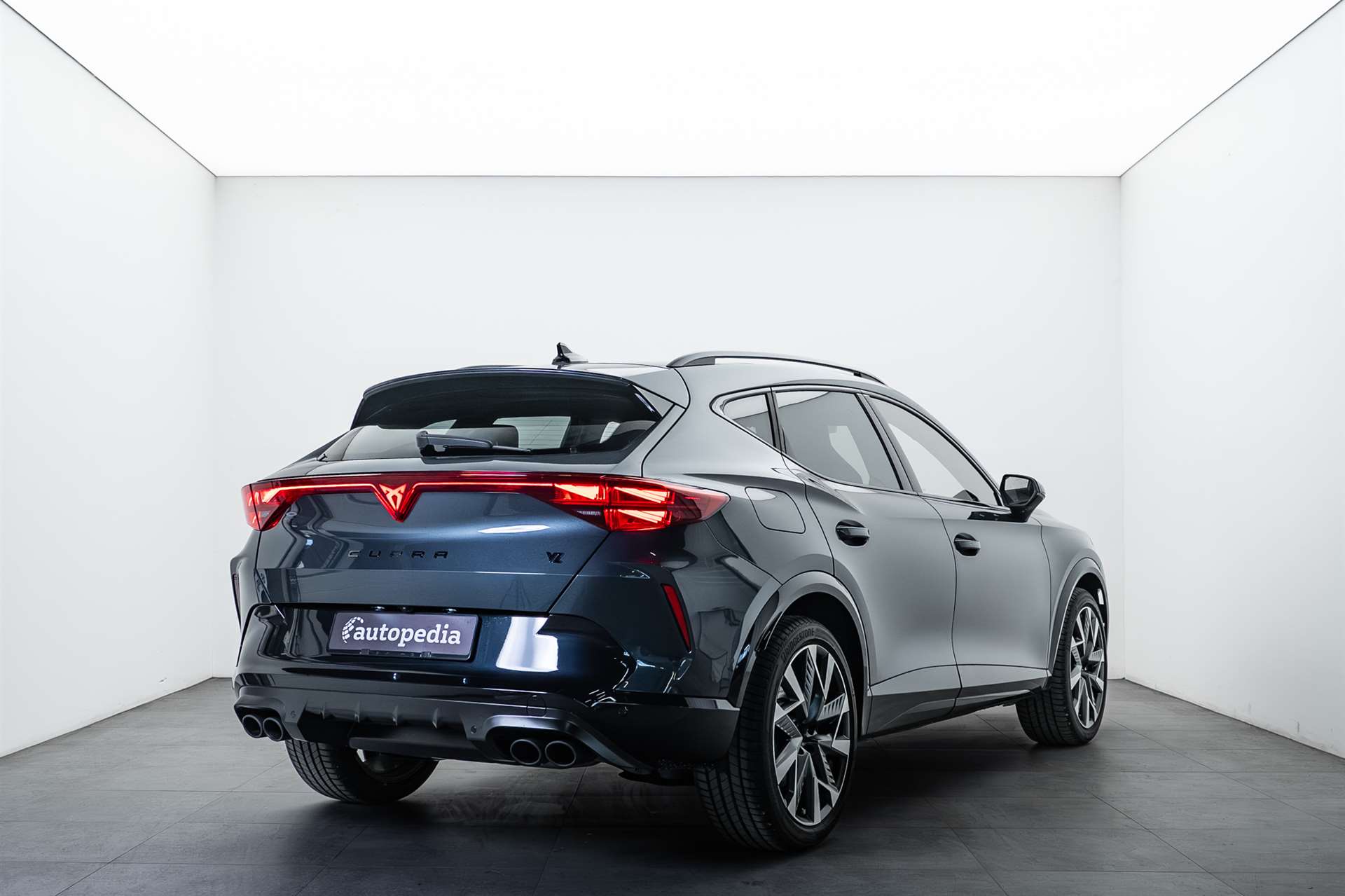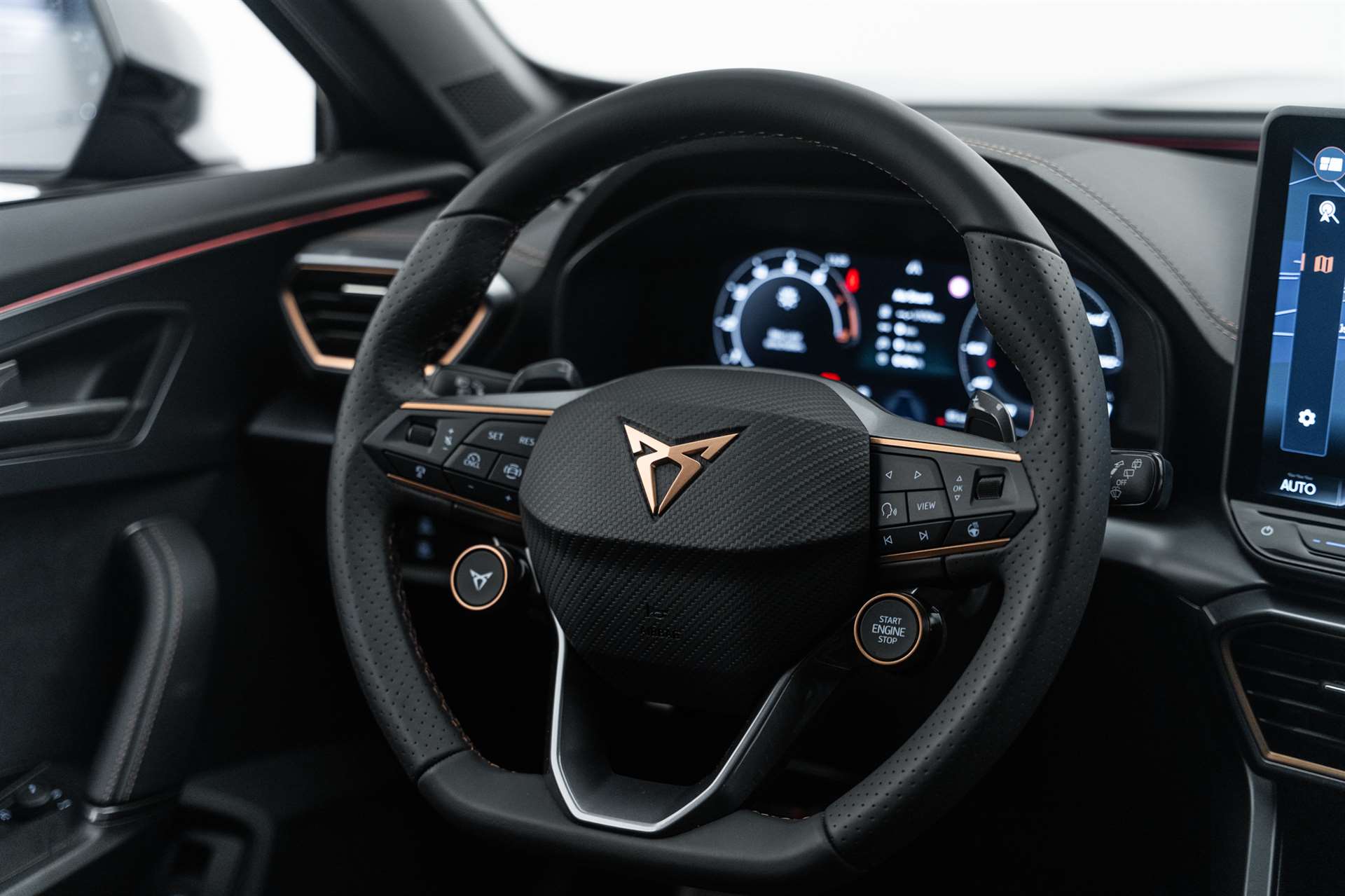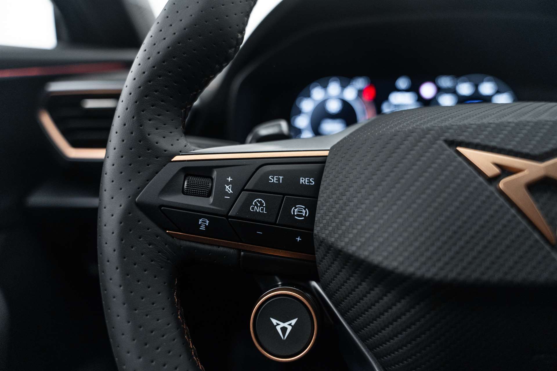 Räder: Performance Reifen, Airbag: Seitenairbags vorne und hinten, mit Kopfairbag und Interaktionsairbag vorne, mit Knieairbag, Lackierung: Matt-Lackierungen, Räder: Alufelgen 8J x 19", "ARTIC" Machined in Sport Black & Silver, Media: CUPRA Connect Online Infotainment, Paket: INTELLIGENT DRIVE, Assist: Parklenkassistent IPA (Intelligent Park Assist), Assist: Exit Warning (Ausstiegswarner), Assist: Travel Assist, Paket: Fahrerassistenzpaket XL, Assist: Side Assist (Spurwechselassistent), Assist: Exit Assist (Ausparkassistent), Assist: PreCrash Sicherheitssystem, Assist: Top View Camera (Rundumblick), CUPRA Service, Räder: Alufelgen 8J x 19", "ARTIC COPPER" Machined in Black & Copper, Anhängevorrichtung (Einklappbar), Skyline, Garantie: Cupra Hersteller-Garantieverlängerung für das 3., 4. und 5. Jahr / max.150000 km, Räder: Alufelgen 8J x 19", "HAILSTORM" Machined in Sport Black Silver, Akrapovic Abgasanlage, Fahrwerk: Performance AKEBONO Bremssättel vorne und hinten, Media: IMMERSIVE by SENNHEISER, CUPRA ServicePLUS, Paket: PROGRESSIVE DESIGN, Sitze: Lendenwirbelstütze Fahrer- und Beifahrerseite elektrisch einstellbar, Sitze: Elektrische Sitzverstellung mit Memory-Funktion für Fahrer- und Beifahrerseite, Sitze: Ohne Dokumentenablage und Schublade unter den Vordersitzen, Dekor: Metallized Ambiente, Sitze: CUPRA Sport Schalensitze in Leder, Aussenspiegel elektrisch einstell-, beheiz- und einklappbar mit Memory -Funktion, Lackierung: Spezial- Lackierungen, Räder: Alufelgen 8J x 19", "HAILSTORM COPPER" Machined in Sport Black Silver, Paket: CUPRA Formentor VZ Pack, Paket: PURE PERFORMANCE, Paket: INTELLIGENT DRIVE, Media: CUPRA Navigationssystem 12.9" Infotainment, Media: CUPRA Connect Online Infotainment