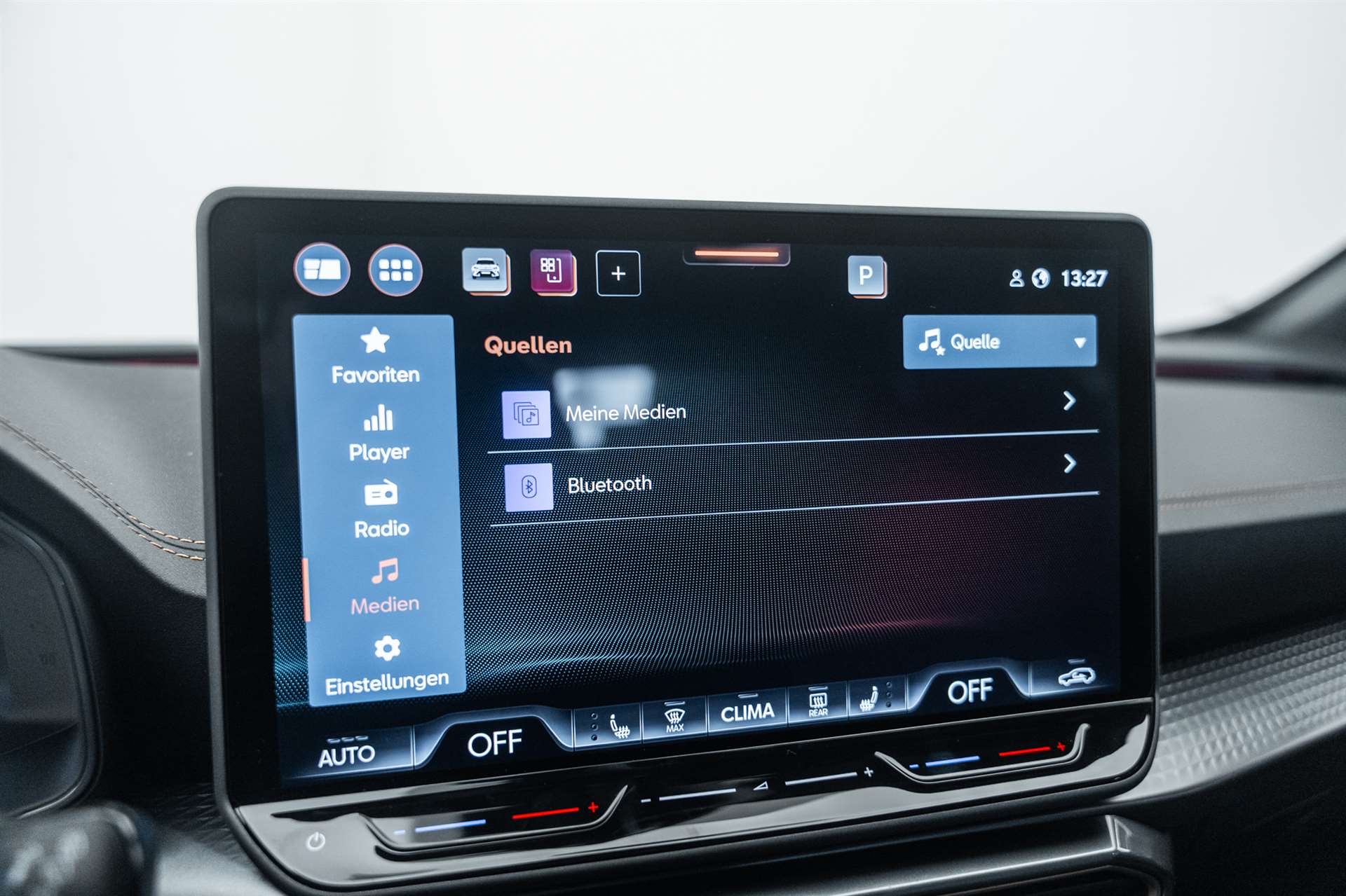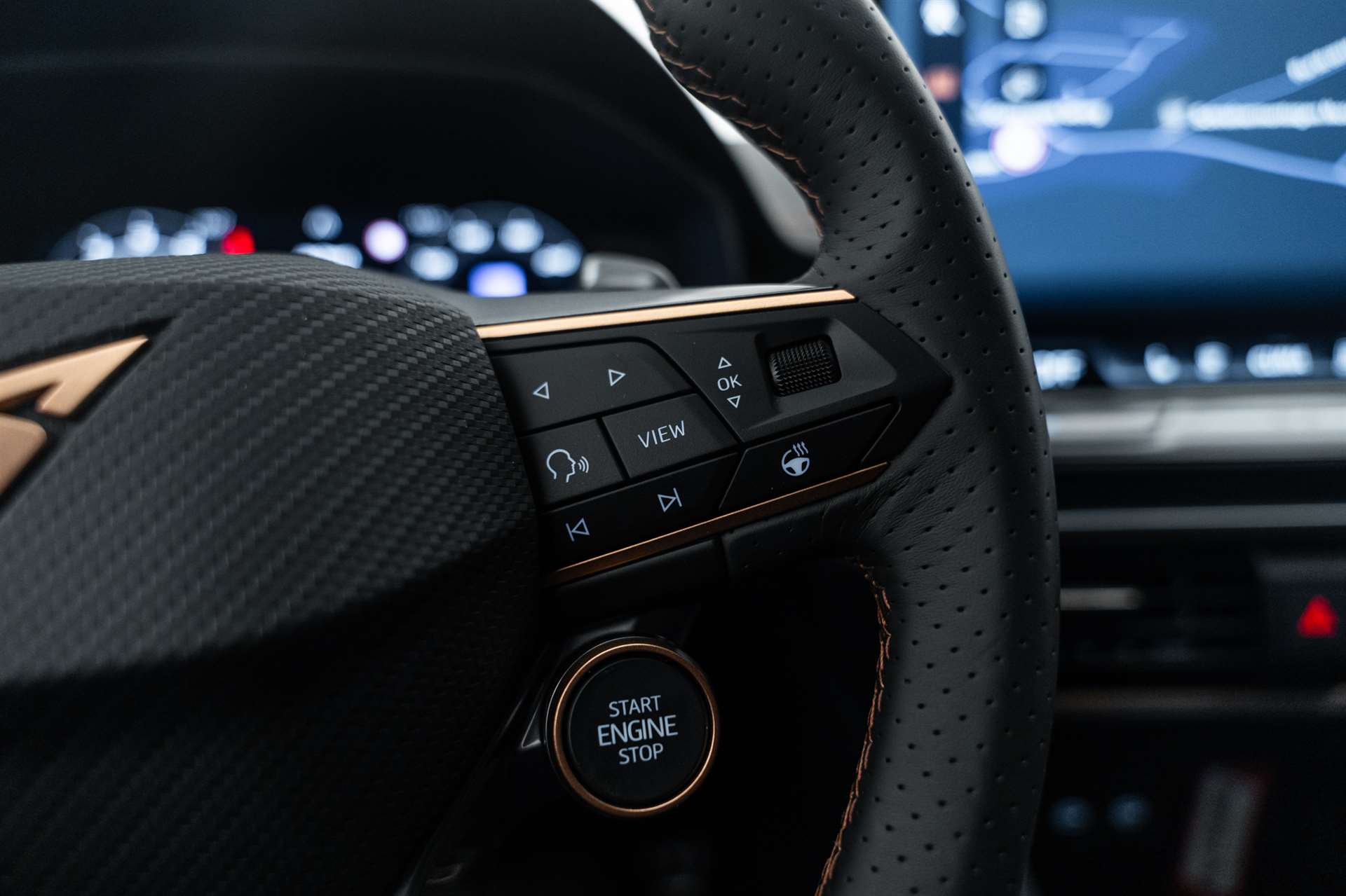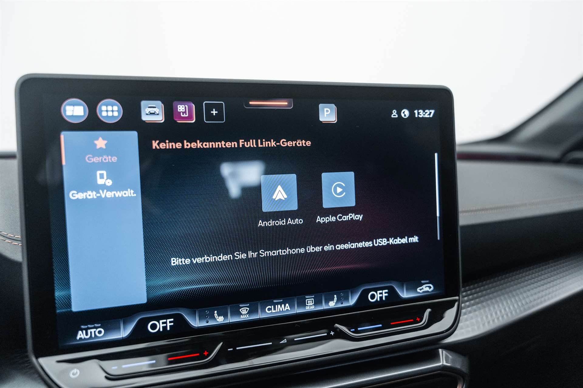Räder: Performance Reifen, Airbag: Seitenairbags vorne und hinten, mit Kopfairbag und Interaktionsairbag vorne, mit Knieairbag, Lackierung: Matt-Lackierungen, Räder: Alufelgen 8J x 19", "ARTIC" Machined in Sport Black & Silver, Media: CUPRA Connect Online Infotainment, Paket: INTELLIGENT DRIVE, Assist: Parklenkassistent IPA (Intelligent Park Assist), Assist: Exit Warning (Ausstiegswarner), Assist: Travel Assist, Paket: Fahrerassistenzpaket XL, Assist: Side Assist (Spurwechselassistent), Assist: Exit Assist (Ausparkassistent), Assist: PreCrash Sicherheitssystem, Assist: Top View Camera (Rundumblick), CUPRA Service, Räder: Alufelgen 8J x 19", "ARTIC COPPER" Machined in Black & Copper, Anhängevorrichtung (Einklappbar), Skyline, Garantie: Cupra Hersteller-Garantieverlängerung für das 3., 4. und 5. Jahr / max.150000 km, Räder: Alufelgen 8J x 19", "HAILSTORM" Machined in Sport Black Silver, Akrapovic Abgasanlage, Fahrwerk: Performance AKEBONO Bremssättel vorne und hinten, Media: IMMERSIVE by SENNHEISER, CUPRA ServicePLUS, Paket: PROGRESSIVE DESIGN, Sitze: Lendenwirbelstütze Fahrer- und Beifahrerseite elektrisch einstellbar, Sitze: Elektrische Sitzverstellung mit Memory-Funktion für Fahrer- und Beifahrerseite, Sitze: Ohne Dokumentenablage und Schublade unter den Vordersitzen, Dekor: Metallized Ambiente, Sitze: CUPRA Sport Schalensitze in Leder, Aussenspiegel elektrisch einstell-, beheiz- und einklappbar mit Memory -Funktion, Lackierung: Spezial- Lackierungen, Räder: Alufelgen 8J x 19", "HAILSTORM COPPER" Machined in Sport Black Silver, Paket: CUPRA Formentor VZ Pack, Paket: PURE PERFORMANCE, Paket: INTELLIGENT DRIVE, Media: CUPRA Navigationssystem 12.9" Infotainment, Media: CUPRA Connect Online Infotainment