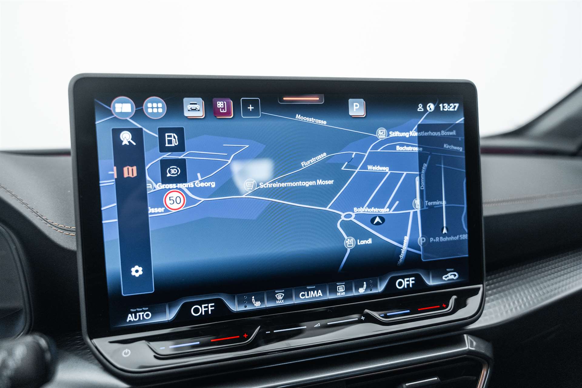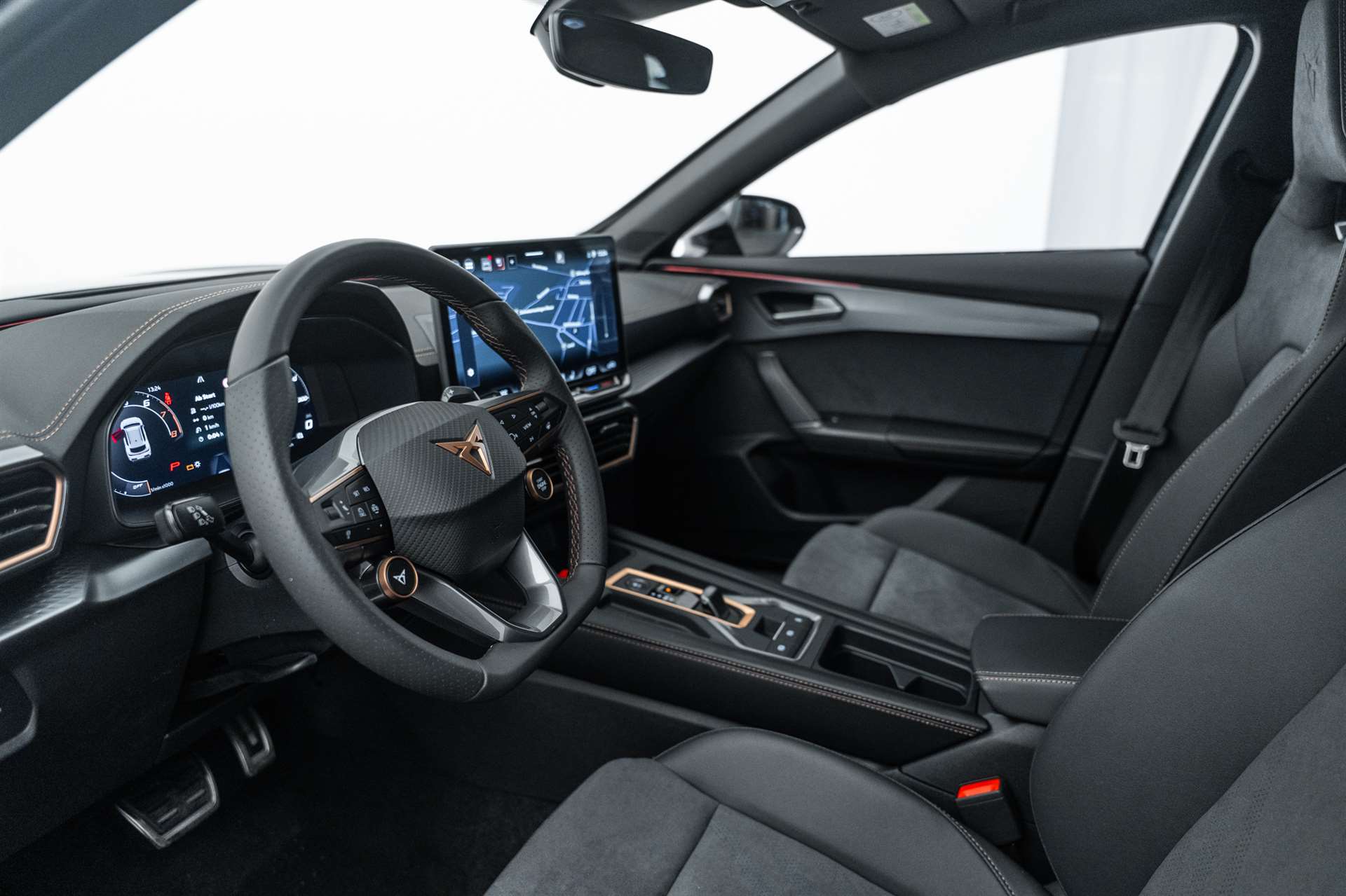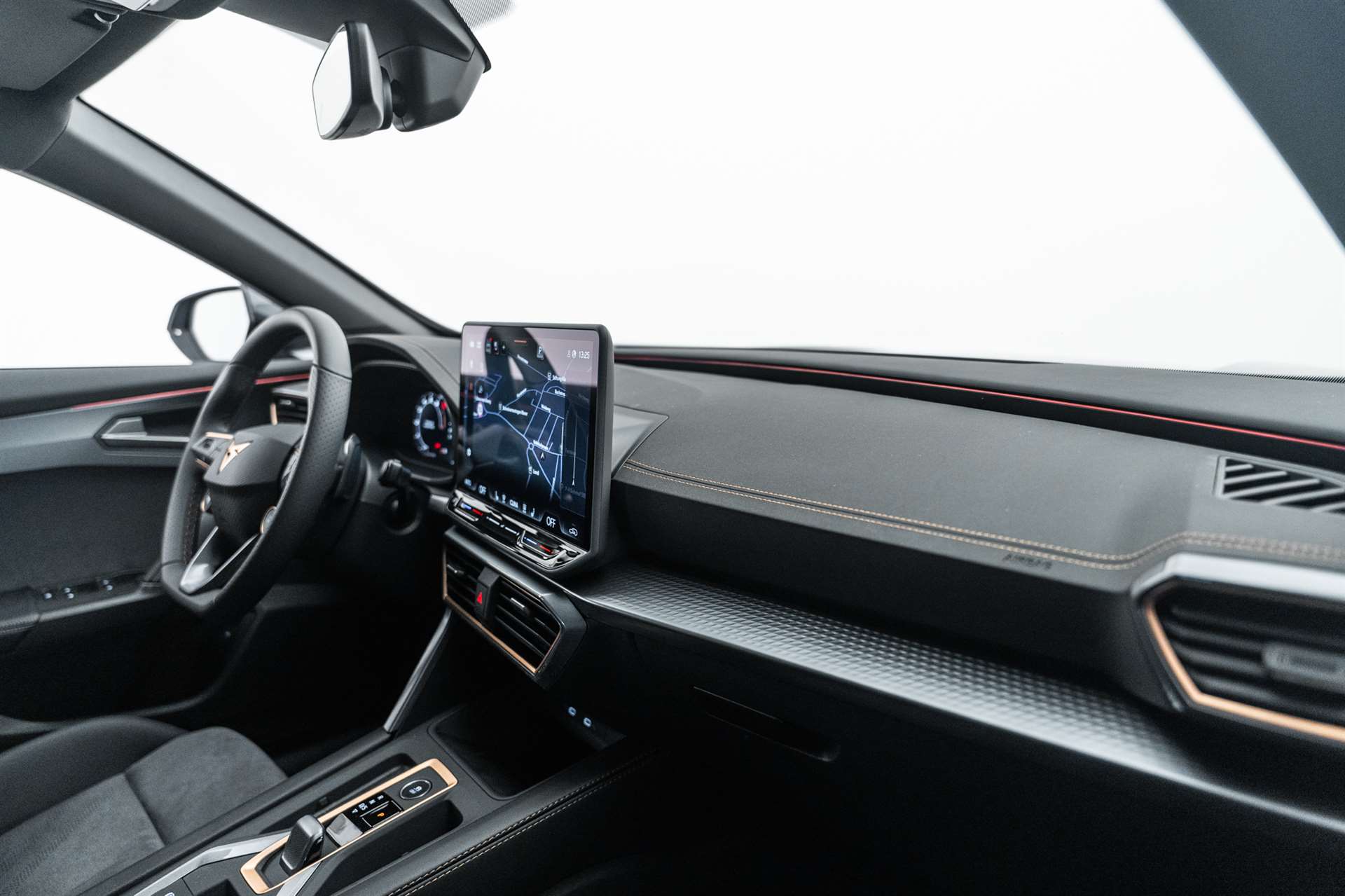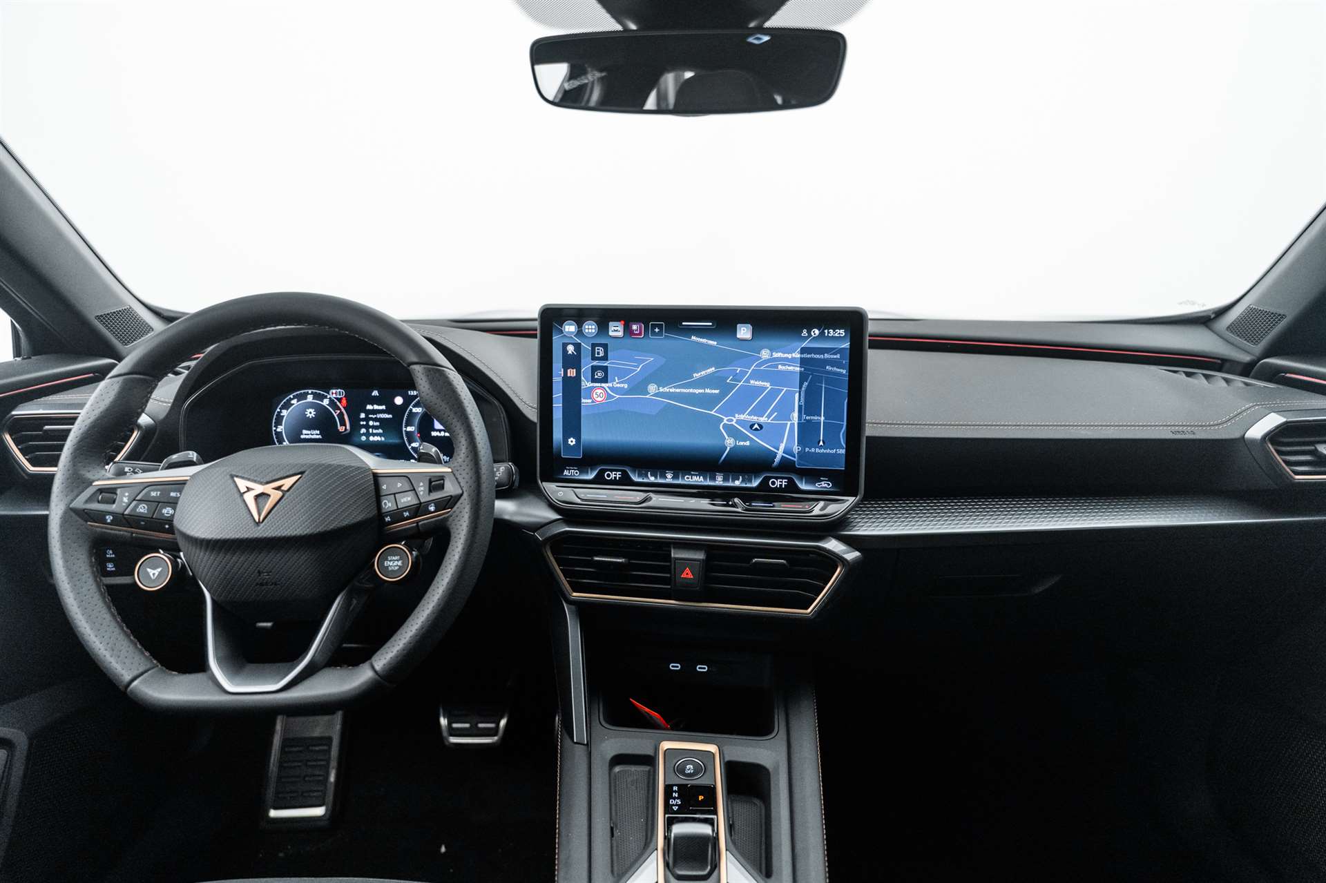 3-Punkt-Sicherheitsgurte auf allen Plätzen, Abgedunkelte Scheiben ab B-Säule hinten, ABS, EBV elektronische Bremskraft-verteilung, Airbag: Airbag Beifahrer deaktivierbar, Airbag: Airbag Fahrer und Beifahrer, Airbag: Kopfairbags vorne und hinten, Airbag: Seitenairbags für Fahrer und Beifahrer, Alarmanlage mit Innenraumüberwachung, Allradantrieb permanent, Assist: Aufmerksamkeits- und Müdigkeitserkennung (ADA), Assist: Ausweichunterstützung / Abbiegeassistent, Assist: Automatische Distanzregelung ACC, Assist: City Notbremsfunktion, Assist: Einparkhilfe vorne und hinten mit Rückfahrkamera, Assist: Elektronische Parkbremse mit Auto Hold Funktion, Assist: Lane assist (Spurhalteassistent), Assist: Multifunktionskamera, Assist: Multikollisionsbremse, Assist: Prädiktive Speedlimiter, Assist: Regen-/Lichtsensor, Assist: Rückfahrkamera, Assist: Traction Control (TCS), Assist: Traffic sign recognition (Verkehrszeichenerkennung), Assist: Umfeldbeobachtung Front-Assist, Aussenspiegel elektrisch einstell-, beheiz- und einklappbar mit Memory -Funktion, Aussenspiegel mit Beifahrerspiegelabsenkung, Aussenspiegel mit LED-Umfeldbeleuchtung, Automatisch abblendender Innenrückspiegel, Beleuchtete Sonnenblende links mit abdeckbarem Spiegel und Lasche, rechts mit abdeckbarem Spiegel, CUPRA Drive Profile, Dachhimmel Schwarz, Dachreling schwarz, Dekor: Dinamica Ambiente, Elektrische Fensterheber vorne und hinten mit Komfortschaltung und Einklemmschutz, ESC mit EBA, DSR, XDS und Reifendruckkontrolle, Fahrwerk: Adaptive Fahrwerksregelung DCC, Fahrwerk: Progressivlenkung, Full Digital Cockpit, Fussmatten vorne und hinten, Garantie: Cupra 12 Jahre Gewährleistung gegen Karosserie-Durchrostung, Garantie: Cupra 3 Jahre Lack-Gewährleistung, Garantie: Cupra Hersteller-Garantieverlängerung für das 3., 4. und 5. Jahr / max.100’000 km (ab 1. Inv.), Garantie: Cupra Hersteller-Garantieverlängerung für das 3., 4. und 5. Jahr / max.100000 km, Getriebe: 7-Gang DSG, Gurtkontrolle, Heckklappe elektrisch öffnend "Virtual Pedal", Heckscheiben-Wisch-/Waschanlage mit Intervall, Kindersitzverankerung ISOFIX (äussere Plätze hinten), Klima: 3-Zonen Climatronic mit Fondraumbedienung, Lackierung: Uni-Lackierung, Lackierung: Uni-Lackierung, LED-Innenraumbeleuchtung mit Ambientebeleuchtung Smart Wraparound "Multicolor", Lenkrad: Supersportlenkrad mit Start-/ Drive Profile-Knopfsystem und Schaltwippen, beheizbar, Licht: Coming-home-Funktion, Licht: Drittes Bremslicht, Licht: Durchgehende Full LED-Heckleuchten, Licht: Fernlicht-Assistent, Licht: LED Heckleuchten mit beleuchtetem 3D CUPRA Logo, Licht: LED-Heckleuchten mit dynamischem Blinklicht, Licht: LED-Nebelscheinwerfer mit Cornering-Funktion, Licht: LED-Scheinwerfer für Abblend- und Fernlicht, Licht: LED-Tagfahrlicht, Licht: Leuchtweitenregulierung dynamisch, Licht: Nebelschlussleuchte, Media: 12,9" Infotainment (MIB3), Media: 2 USB C Anschlüsse hinten und vorne, Media: 7 Lautsprecher, Media: CUPRA Connect Online Infotainment, Media: CUPRA Connect Remote & Access, Media: CUPRA Connect Safety & Services, Media: CUPRA Connectivity Box, Media: CUPRA FullLink, Media: DAB+ (Digital Audio Broadcasting), Media: Mobiltelefon Freisprechanlage Bluetooth, Media: Sprachsteuerung, Paket: DYNAMIC DESIGN, Paket: EDGE, Pyrotechnische Gurtstraffer und Gurtkraftbegrenzer, Räder: Alufelgen 8J x 19", "SANDSTORM" Machined in Silver, Räder: Reifendruckkontrollsystem, Räder: Reifenreparatur-Set (Tire Fit), Schlüsselloses Schliess- und Startsystem (KESSY), Servolenkung mit geschwindigkeitsabhängiger Lenkkraftunterstützung, Sitze: 3 verstellbare Kopfstützen hinten, Sitze: CUPRA Sport Schalensitze in Dinamica "Black/Blue", Sitze: Fahrersitz elektrisch einstellbar mit Memory-Funktion, Sitze: Geteilt abklappbare Rücksitzlehne 1/3 - 2/3, Sitze: Kopfstützen vorne (integrierte), Sitze: Lendenwirbelstütze Fahrerseite elektrisch einstellbar, Sitze: Mittelarmlehne hinten, Sitze: Mittelarmlehne vorne, Sitze: Schublade unter dem rechten Vordersitz, Sitze: Sitzheizung für Vordersitze, getrennt regelbar, Sitze: Vordersitze höhenverstellbar mit Lendenwirbelstütze, Stopp - Start- und Rekuperationssystem, Türgriffe in Wagenfarbe, Variabler Ladeboden, Vollverzinkte Karosserie, Wärmeschutzverglasung, Wegfahrsperre elektronisch, Zentralverriegelung mit Funkfernbedienung, 2 Funkschlüssel