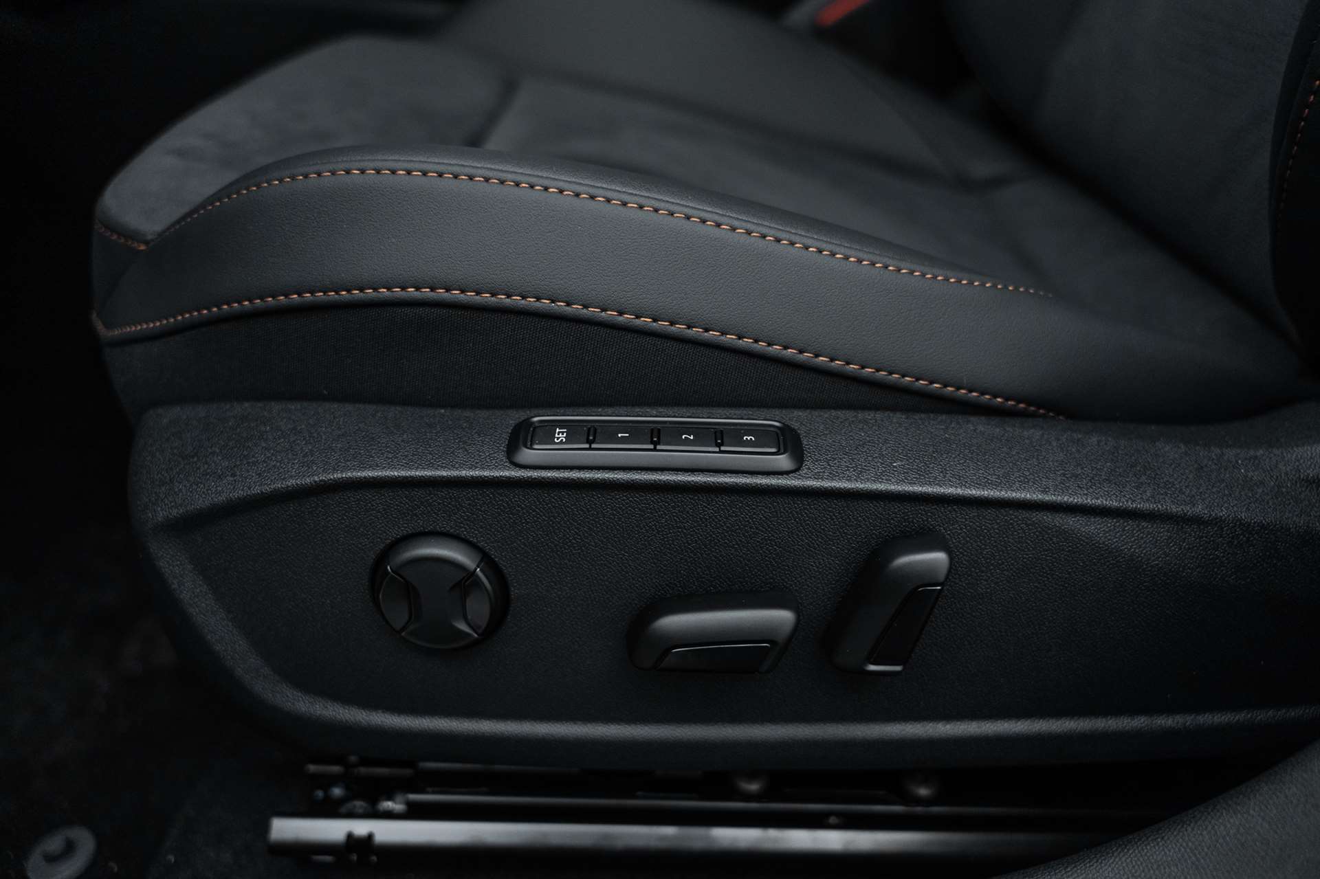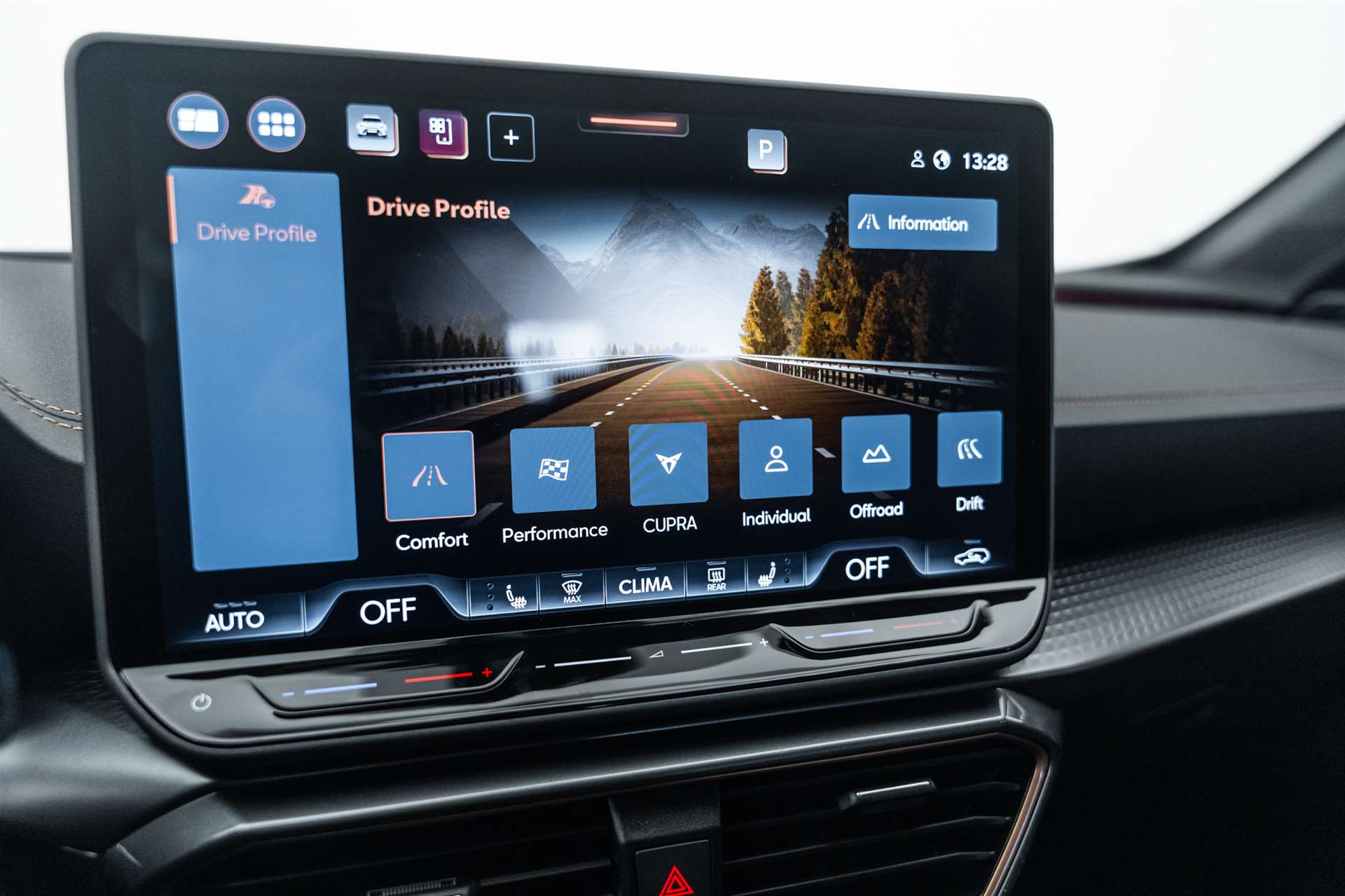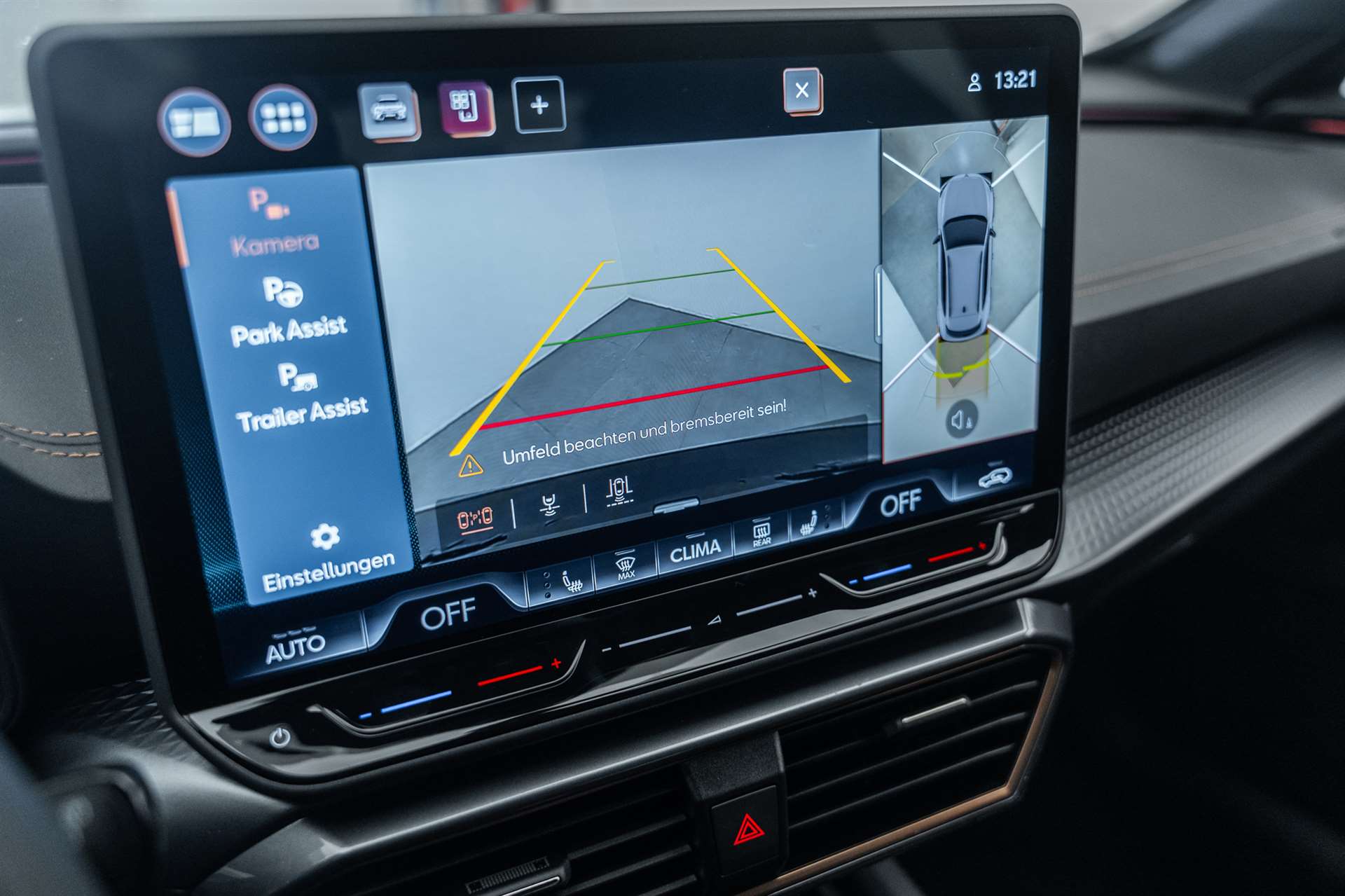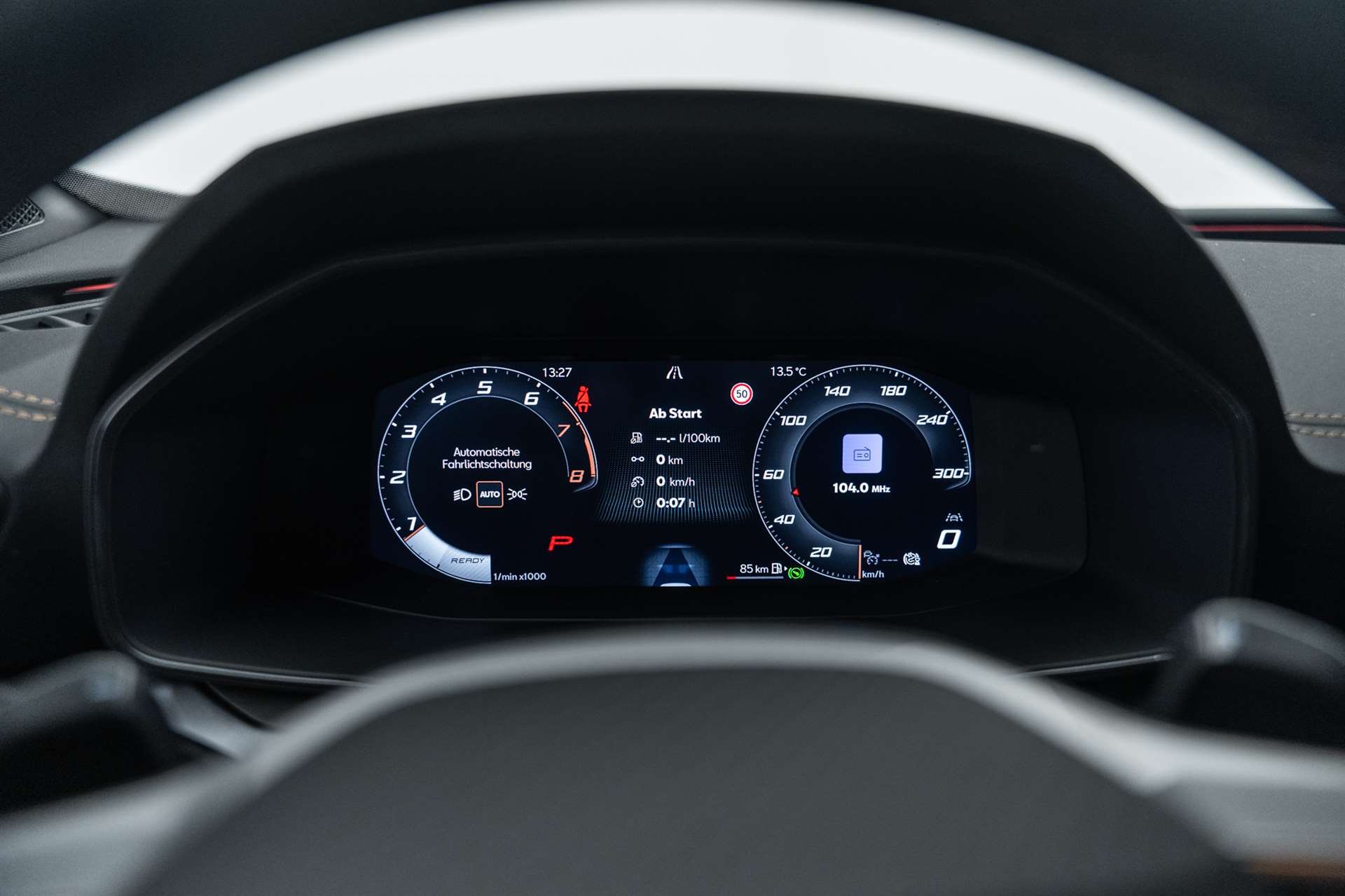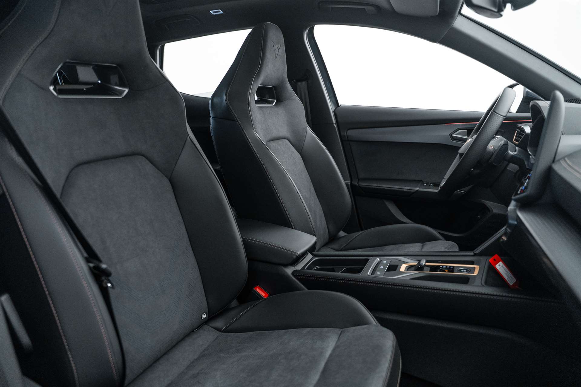 3-Punkt-Sicherheitsgurte auf allen Plätzen, Abgedunkelte Scheiben ab B-Säule hinten, ABS, EBV elektronische Bremskraft-verteilung, Airbag: Airbag Beifahrer deaktivierbar, Airbag: Airbag Fahrer und Beifahrer, Airbag: Kopfairbags vorne und hinten, Airbag: Seitenairbags für Fahrer und Beifahrer, Alarmanlage mit Innenraumüberwachung, Allradantrieb permanent, Assist: Aufmerksamkeits- und Müdigkeitserkennung (ADA), Assist: Ausweichunterstützung / Abbiegeassistent, Assist: Automatische Distanzregelung ACC, Assist: City Notbremsfunktion, Assist: Einparkhilfe vorne und hinten mit Rückfahrkamera, Assist: Elektronische Parkbremse mit Auto Hold Funktion, Assist: Lane assist (Spurhalteassistent), Assist: Multifunktionskamera, Assist: Multikollisionsbremse, Assist: Prädiktive Speedlimiter, Assist: Regen-/Lichtsensor, Assist: Rückfahrkamera, Assist: Traction Control (TCS), Assist: Traffic sign recognition (Verkehrszeichenerkennung), Assist: Umfeldbeobachtung Front-Assist, Aussenspiegel elektrisch einstell-, beheiz- und einklappbar mit Memory -Funktion, Aussenspiegel mit Beifahrerspiegelabsenkung, Aussenspiegel mit LED-Umfeldbeleuchtung, Automatisch abblendender Innenrückspiegel, Beleuchtete Sonnenblende links mit abdeckbarem Spiegel und Lasche, rechts mit abdeckbarem Spiegel, CUPRA Drive Profile, Dachhimmel Schwarz, Dachreling schwarz, Dekor: Dinamica Ambiente, Elektrische Fensterheber vorne und hinten mit Komfortschaltung und Einklemmschutz, ESC mit EBA, DSR, XDS und Reifendruckkontrolle, Fahrwerk: Adaptive Fahrwerksregelung DCC, Fahrwerk: Progressivlenkung, Full Digital Cockpit, Fussmatten vorne und hinten, Garantie: Cupra 12 Jahre Gewährleistung gegen Karosserie-Durchrostung, Garantie: Cupra 3 Jahre Lack-Gewährleistung, Garantie: Cupra Hersteller-Garantieverlängerung für das 3., 4. und 5. Jahr / max.100’000 km (ab 1. Inv.), Garantie: Cupra Hersteller-Garantieverlängerung für das 3., 4. und 5. Jahr / max.100000 km, Getriebe: 7-Gang DSG, Gurtkontrolle, Heckklappe elektrisch öffnend "Virtual Pedal", Heckscheiben-Wisch-/Waschanlage mit Intervall, Kindersitzverankerung ISOFIX (äussere Plätze hinten), Klima: 3-Zonen Climatronic mit Fondraumbedienung, Lackierung: Uni-Lackierung, Lackierung: Uni-Lackierung, LED-Innenraumbeleuchtung mit Ambientebeleuchtung Smart Wraparound "Multicolor", Lenkrad: Supersportlenkrad mit Start-/ Drive Profile-Knopfsystem und Schaltwippen, beheizbar, Licht: Coming-home-Funktion, Licht: Drittes Bremslicht, Licht: Durchgehende Full LED-Heckleuchten, Licht: Fernlicht-Assistent, Licht: LED Heckleuchten mit beleuchtetem 3D CUPRA Logo, Licht: LED-Heckleuchten mit dynamischem Blinklicht, Licht: LED-Nebelscheinwerfer mit Cornering-Funktion, Licht: LED-Scheinwerfer für Abblend- und Fernlicht, Licht: LED-Tagfahrlicht, Licht: Leuchtweitenregulierung dynamisch, Licht: Nebelschlussleuchte, Media: 12,9" Infotainment (MIB3), Media: 2 USB C Anschlüsse hinten und vorne, Media: 7 Lautsprecher, Media: CUPRA Connect Online Infotainment, Media: CUPRA Connect Remote & Access, Media: CUPRA Connect Safety & Services, Media: CUPRA Connectivity Box, Media: CUPRA FullLink, Media: DAB+ (Digital Audio Broadcasting), Media: Mobiltelefon Freisprechanlage Bluetooth, Media: Sprachsteuerung, Paket: DYNAMIC DESIGN, Paket: EDGE, Pyrotechnische Gurtstraffer und Gurtkraftbegrenzer, Räder: Alufelgen 8J x 19", "SANDSTORM" Machined in Silver, Räder: Reifendruckkontrollsystem, Räder: Reifenreparatur-Set (Tire Fit), Schlüsselloses Schliess- und Startsystem (KESSY), Servolenkung mit geschwindigkeitsabhängiger Lenkkraftunterstützung, Sitze: 3 verstellbare Kopfstützen hinten, Sitze: CUPRA Sport Schalensitze in Dinamica "Black/Blue", Sitze: Fahrersitz elektrisch einstellbar mit Memory-Funktion, Sitze: Geteilt abklappbare Rücksitzlehne 1/3 - 2/3, Sitze: Kopfstützen vorne (integrierte), Sitze: Lendenwirbelstütze Fahrerseite elektrisch einstellbar, Sitze: Mittelarmlehne hinten, Sitze: Mittelarmlehne vorne, Sitze: Schublade unter dem rechten Vordersitz, Sitze: Sitzheizung für Vordersitze, getrennt regelbar, Sitze: Vordersitze höhenverstellbar mit Lendenwirbelstütze, Stopp - Start- und Rekuperationssystem, Türgriffe in Wagenfarbe, Variabler Ladeboden, Vollverzinkte Karosserie, Wärmeschutzverglasung, Wegfahrsperre elektronisch, Zentralverriegelung mit Funkfernbedienung, 2 Funkschlüssel