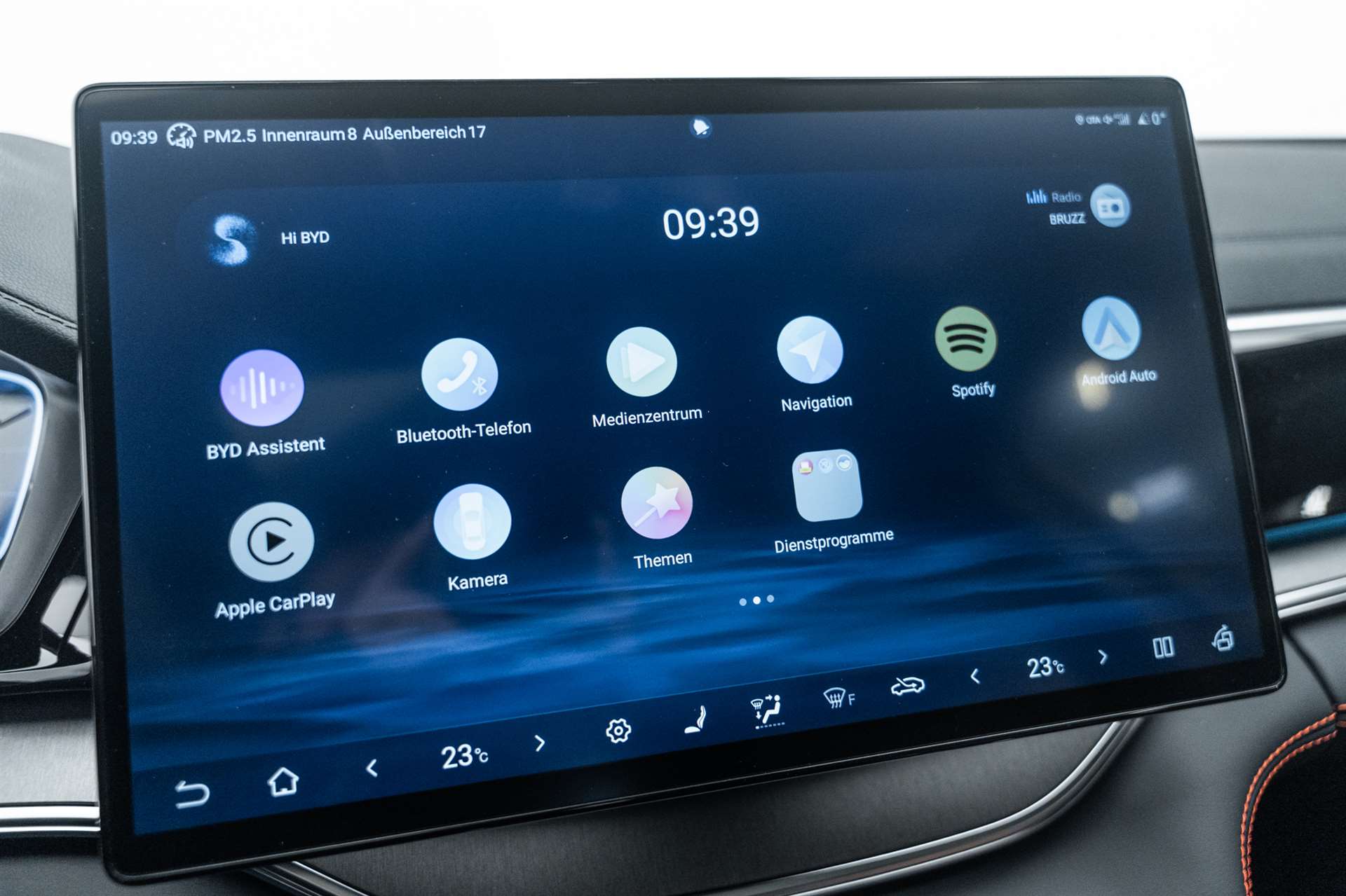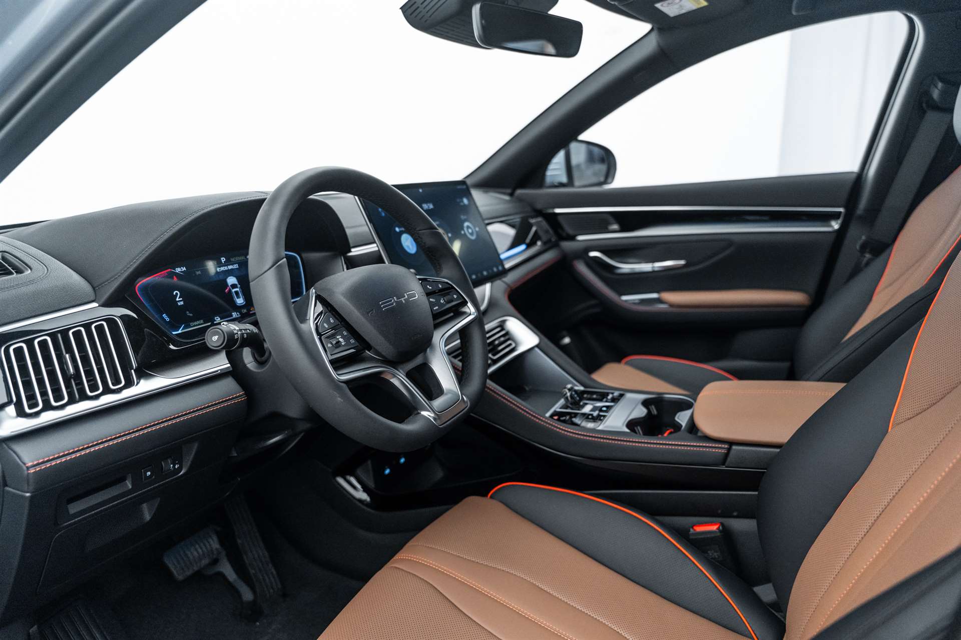 11kW On-Board Charger (OBC), 12-V-Stromanschluss, 2 x Smart Key, 4 x One-Touch-Fensterheber mit Einklemmschutzfunktion, Airbag: Fahrerairbag und Beifahrerairbag, Airbag: Frontairbag in der Mitte, Airbag: Seitenairbags vorn, Airbag: Vorhangairbags, Ambientebeleuchtung, mehrfarbig, Antiblockiersystem (ABS), Armlehne hinten, 2 Getränkehalter, Assist: 360° view camera, Assist: Adaptive Geschwindigkeitsregelung (ACC) & Intelligente Geschwindigkeitsregelung (ICC), Assist: Auto Hold, Assist: Automatische Notbremsung (AEB), Assist: Bergabfahrhilfe (HDC), Assist: Berganfahrassistent (HSA), Assist: Comfort Stop (CST), Assist: Elektrische Parkbremse (EPB), Assist: Heckkollisionswarnung (RCW), Assist: Hydraulischer Bremsassistent (HBA), Assist: Kindererkennung (CPD), Assist: Kontrollierte Verzögerung mit Feststellbremse (CDP), Assist: Müdigkeitserkennung für den Fahrer (DFW) und Aufmerksamkeitswarnung für den Fahrer (DFW), Assist: Parksensoren vorne und hinten, Assist: Querverkehrswarnung hinten (RCTA) & Querverkehrsbremse hinten (RCTB), Assist: Querverkehrswarnung vorn (FCTA) & Querverkehrsbremse vorn (FCTB), Assist: Spurhalteassistent (ELKA), Assist: Spurverlassensverhinderung (LDP), Assist: Spurverlassenswarnung (LDW), Assist: Spurwechselassistent (LCA), Assist: Toter-Winkel-Warnung (BSD), Assist: Traktionskontrolle (TCS), Assist: Überschlagskontrollsystem (RMI), Assist: Verkehrszeichenerkennung (TSR), Assist: Vorwärtskollisionswarnung (FCW), Aussenspiegel elektrisch verstellbar, elektrisch anklappbar, beheizbar, Automatisch abblendender Rückspiegel, Automatisches Verriegelungssystem, Bodenbeleuchtung vorne, Bremsüberbrückungssystem (BOS), Dachreling in Aluminium, Diebstahlsicherung, Dynamische Blinker, Elektrische Heckklappe, Elektronische Bremskraftverteilung (EBD), Elektronische Kindersicherung, ESP (Elektronisches Stabilitätsprogramm), Fahrmodus: Eco, Normal, Sport, Snow, Sand, Muddy, Fahrwerk: Fahrdynamikregelung (VDC), Frontscheibe, Scheibenwischer mit Regensensor, Frontscheibe, UV-Schutz, Wärmedämmung, Schalldämmung, Fussraumbeleuchtung in den Aussenspiegeln, Garantie: Batterie-Garantie 8 Jahre oder 200'000 km, Garantie: Garantie 6 Jahre oder 150'000 km, Gepäckraumleuchte, Getriebe: Direktantrieb, kein Getriebe, Head-up-Display (HUD), ISOFIX und i-Size, Beifahrer- und äussere Rücksitze, Keyless entry & keyless start, Kindersicherung manuell, Klima: Belüftungsdüsen hinten, Kofferraum-Gepäckablage, Kraftbegrenzender Sicherheitsgurt auf dem mittleren Rücksitz, Lackierung: Metallic-Lackierung, LED-Leseleuchten hinten, LED-Leseleuchten vorn, Licht: Fernlichtassistent (HMA), Licht: Follow-me-Home, Licht: LED-Rückleuchten, Licht: LED-Scheinwerfer, automatisches Ein-/Ausschalten, Licht: LED-Tagfahrlicht, Licht: Nebelschlussleuchten, Media: 12,3" TFT-LCD-Instrumententafel, Media: 15,6" elektrisch drehbarer Touchscreen, Media: Android Auto & Apple CarPlay, Media: DAB+ & FM, Media: Infinity-Soundsystem, 10 Lautsprecher, Media: Integrierte 4G-Konnektivität2, Media: Intelligente Sprachsteuerung "Hallo, BYD", Media: Smartphone wireless charging, 2x 15 W, Media: USB-Anschlüsse hinten: 1 x 18W Typ C, 1 x 60 W Typ C, Media: USB-Anschlüsse vorn: 1 x 18W Typ C, 1 x 60 W Typ C, Mehrfarbige LED-Ladeanzeige, Mittelarmlehne hinten, 2 Getränkehalter, Mittelarmlehne vorn, 2 Getränkehalter, Notruf, Panoramadach, elektrisch verstellbares Sonnenschutzrollo, PM2.5 filter, PM2.5-Luftreinigungssystem, Privacy glass in fond, Räder: 19" Bicolor- Leichtmetallfelgen, Reifendruckkontrolle (TPMS), Servolenkung, Sitze: Beifahrersitz belüftet, beheizt, Sitze: Beifahrersitz, elektrisch verstellbar, 4-fach, Sitze: Fahrersitz belüftet, beheizt, gespeicherte Einstellung, Sitze: Fahrersitz und Beifahrer, integrierte Kopfstütze, Sitze: Fahrersitz, elektrisch verstellbar, 8-fach, Positionsspeicher, Sitze: Rücksitze 40:60 geteilt umklappbar, Sitze: Rücksitze, manuell einstellbare Kopfstütze, Türöffnungswarnung (DOW), Vier LED-Türleuchten, Vordersitz-Sonnenblenden mit beleuchtetem Schminkspiegel, Vorgespannte und kraftbegrenzende Sicherheitsgurte vorn, Wärmepumpe