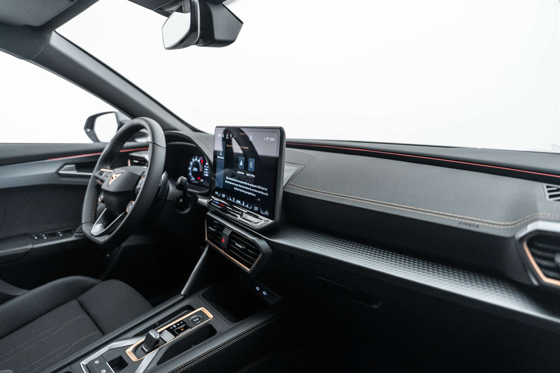 3-Punkt-Sicherheitsgurte auf allen Plätzen, Abgedunkelte Scheiben ab B-Säule hinten, ABS, EBV elektronische Bremskraft-verteilung, Airbag: Airbag Beifahrer deaktivierbar, Airbag: Airbag Fahrer und Beifahrer, Airbag: Kopfairbags vorne und hinten, Airbag: Seitenairbags für Fahrer und Beifahrer, Alarmanlage mit Innenraumüberwachung, Assist: Aufmerksamkeits- und Müdigkeitserkennung (ADA), Assist: Ausweichunterstützung / Abbiegeassistent, Assist: Automatische Distanzregelung ACC, Assist: City Notbremsfunktion, Assist: Einparkhilfe vorne und hinten, Assist: Elektronische Parkbremse mit Auto Hold Funktion, Assist: Lane assist (Spurhalteassistent), Assist: Multifunktionskamera, Assist: Multikollisionsbremse, Assist: Prädiktive Speedlimiter, Assist: Regen-/Lichtsensor, Assist: Traction Control (TCS), Assist: Traffic sign recognition (Verkehrszeichenerkennung), Assist: Umfeldbeobachtung Front-Assist, Aussenspiegel elektrisch einstell-, beheiz- und einklappbar, Aussenspiegel mit Beifahrerspiegelabsenkung, Aussenspiegel mit LED-Umfeldbeleuchtung, Automatisch abblendender Innenrückspiegel, Beleuchtete Sonnenblende links mit abdeckbarem Spiegel und Lasche, rechts mit abdeckbarem Spiegel, CUPRA Drive Profile, Dachhimmel Schwarz, Dachreling schwarz, Elektrische Fensterheber vorne und hinten mit Komfortschaltung und Einklemmschutz, ESC mit EBA, DSR, XDS und Reifendruckkontrolle, Fahrwerk: Progressivlenkung, Full Digital Cockpit, Fussmatten vorne und hinten, Garantie: Cupra 12 Jahre Gewährleistung gegen Karosserie-Durchrostung, Garantie: Cupra 3 Jahre Lack-Gewährleistung, Garantie: Cupra Hersteller-Garantieverlängerung für das 3., 4. und 5. Jahr / max.100000 km, Getriebe: 7-Gang DSG, Gurtkontrolle, Heckscheiben-Wisch-/Waschanlage mit Intervall, Kindersitzverankerung ISOFIX (äussere Plätze hinten), Klima: 3-Zonen Climatronic mit Fondraumbedienung, Lackierung: Uni-Lackierung, Lackierung: Uni-Lackierung, LED-Innenraumbeleuchtung mit Ambientebeleuchtung"Monochrom", Lenkrad: Supersportlenkrad mit Start-/ Drive Profile-Knopfsystem und Schaltwippen, beheizbar, Licht: Coming-home-Funktion, Licht: Drittes Bremslicht, Licht: Durchgehende Full LED-Heckleuchten, Licht: Fernlicht-Assistent, Licht: LED Heckleuchten mit beleuchtetem 3D CUPRA Logo, Licht: LED-Heckleuchten mit dynamischem Blinklicht, Licht: LED-Nebelscheinwerfer mit Cornering-Funktion, Licht: LED-Scheinwerfer für Abblend- und Fernlicht, Licht: LED-Tagfahrlicht, Licht: Leuchtweitenregulierung dynamisch, Licht: Nebelschlussleuchte, Media: 12,9" Infotainment (MIB3), Media: 2 USB C Anschlüsse hinten und vorne, Media: 7 Lautsprecher, Media: CUPRA Connect Remote & Access, Media: CUPRA Connect Safety & Services, Media: CUPRA Connectivity Box, Media: CUPRA FullLink, Media: DAB+ (Digital Audio Broadcasting), Media: Mobiltelefon Freisprechanlage Bluetooth, Media: Sprachsteuerung, Pyrotechnische Gurtstraffer und Gurtkraftbegrenzer, Räder: Alufelgen 8J x 18", "TEMPEST" Machined in Silver, Räder: Reifendruckkontrollsystem, Räder: Reifenreparatur-Set (Tire Fit), Servolenkung mit geschwindigkeitsabhängiger Lenkkraftunterstützung, Sitze: 3 verstellbare Kopfstützen hinten, Sitze: CUPRA Sportsitze in "Sharp Textil schwarz", Sitze: Geteilt abklappbare Rücksitzlehne 1/3 - 2/3, Sitze: Kopfstützen vorne (integrierte), Sitze: Mittelarmlehne hinten, Sitze: Mittelarmlehne vorne, Sitze: Sitzheizung für Vordersitze, getrennt regelbar, Sitze: Vordersitze höhenverstellbar mit Lendenwirbelstütze, Stopp - Start- und Rekuperationssystem, Türgriffe in Wagenfarbe, Variabler Ladeboden, Vollverzinkte Karosserie, Wärmeschutzverglasung, Wegfahrsperre elektronisch, Zentralverriegelung "Keyless-Go", Zentralverriegelung mit Funkfernbedienung, 2 Funkschlüssel
