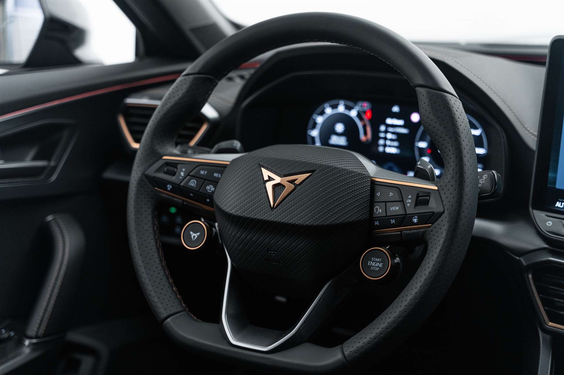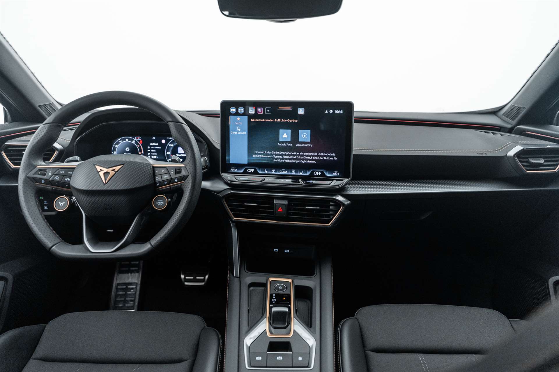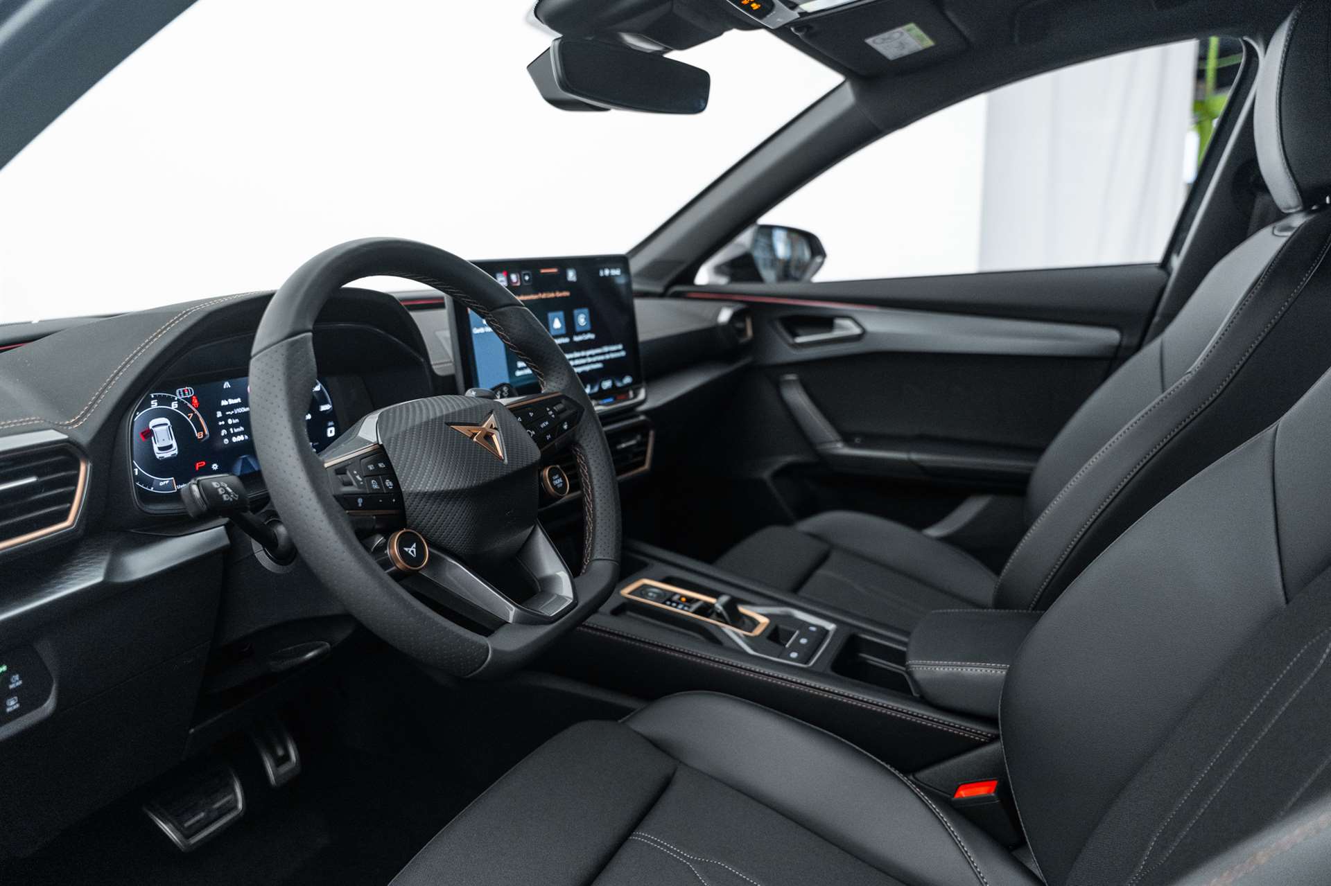 LED-Innenraumbeleuchtung mit Ambientebeleuchtung Smart Wraparound "Multicolor", Assist: Rückfahrkamera, Heckklappe elektrisch öffnend "Virtual Pedal", Alarmanlage mit Innenraumüberwachung, Schlüsselloses Schliess- und Startsystem (KESSY), CUPRA ServicePLUS, Lackierung: Matt-Lackierungen, Anhängevorrichtung (Einklappbar) mit Anhängerrangierassistent, Paket: PURE PERFORMANCE, Fahrwerk: Adaptive Fahrwerksregelung DCC, Licht: CUPRA Matrix LED Ultra Scheinwerfer, Licht: CUPRA HD Scheinwerfer mit Welcome Zeremonie und digitalen Projektionen, Räder: Alufelgen 8J x 19", "SANDSTORM" Machined in Silver, Räder: Alufelgen 8J x 19", "ARTIC COPPER" Machined in Black & Copper, Paket: PROGRESSIVE DESIGN, Sitze: Lendenwirbelstütze Fahrer- und Beifahrerseite elektrisch einstellbar, Sitze: Elektrische Sitzverstellung mit Memory-Funktion für Fahrer- und Beifahrerseite, Sitze: Ohne Dokumentenablage und Schublade unter den Vordersitzen, Dekor: Metallized Ambiente, Sitze: CUPRA Sport Schalensitze in Leder, Aussenspiegel elektrisch einstell-, beheiz- und einklappbar mit Memory -Funktion, Lackierung: Metallic-Lackierung, Räder: Alufelgen 8J x 18", "SONORA" Machined in Silver, Media: CUPRA Navigationssystem 12.9" Infotainment, Paket: INTELLIGENT DRIVE, Assist: Parklenkassistent IPA (Intelligent Park Assist), Assist: Exit Warning (Ausstiegswarner), Assist: Travel Assist, Paket: Fahrerassistenzpaket XL, Assist: Side Assist (Spurwechselassistent), Assist: Exit Assist (Ausparkassistent), Assist: PreCrash Sicherheitssystem, Assist: Top View Camera (Rundumblick), Anhängevorrichtung (Einklappbar), CUPRA Service, Skyline, Garantie: Cupra Hersteller-Garantieverlängerung für das 3., 4. und 5. Jahr / max.150000 km, Räder: Alufelgen 8J x 19", "SANDSTORM COPPER" Machined in Copper, Media: IMMERSIVE by SENNHEISER, Räder: Ersatzrad platzsparend, Airbag: Seitenairbags vorne und hinten, mit Kopfairbag und Interaktionsairbag vorne, mit Knieairbag, Media: IMMERSIVE by SENNHEISER, Lackierung: Spezial- Lackierungen, Räder: Alufelgen 8J x 19", "ARTIC" Machined in Sport Black & Silver, Paket: DYNAMIC DESIGN, Sitze: Lendenwirbelstütze Fahrerseite elektrisch einstellbar, Sitze: CUPRA Sport Schalensitze in Dinamica "Black/Blue", Sitze: Fahrersitz elektrisch einstellbar mit Memory-Funktion, Dekor: Dinamica Ambiente, Aussenspiegel elektrisch einstell-, beheiz- und einklappbar mit Memory -Funktion, Paket: CUPRA Formentor Pack, Paket: EDGE, Paket: INTELLIGENT DRIVE, Media: CUPRA Navigationssystem 12.9" Infotainment