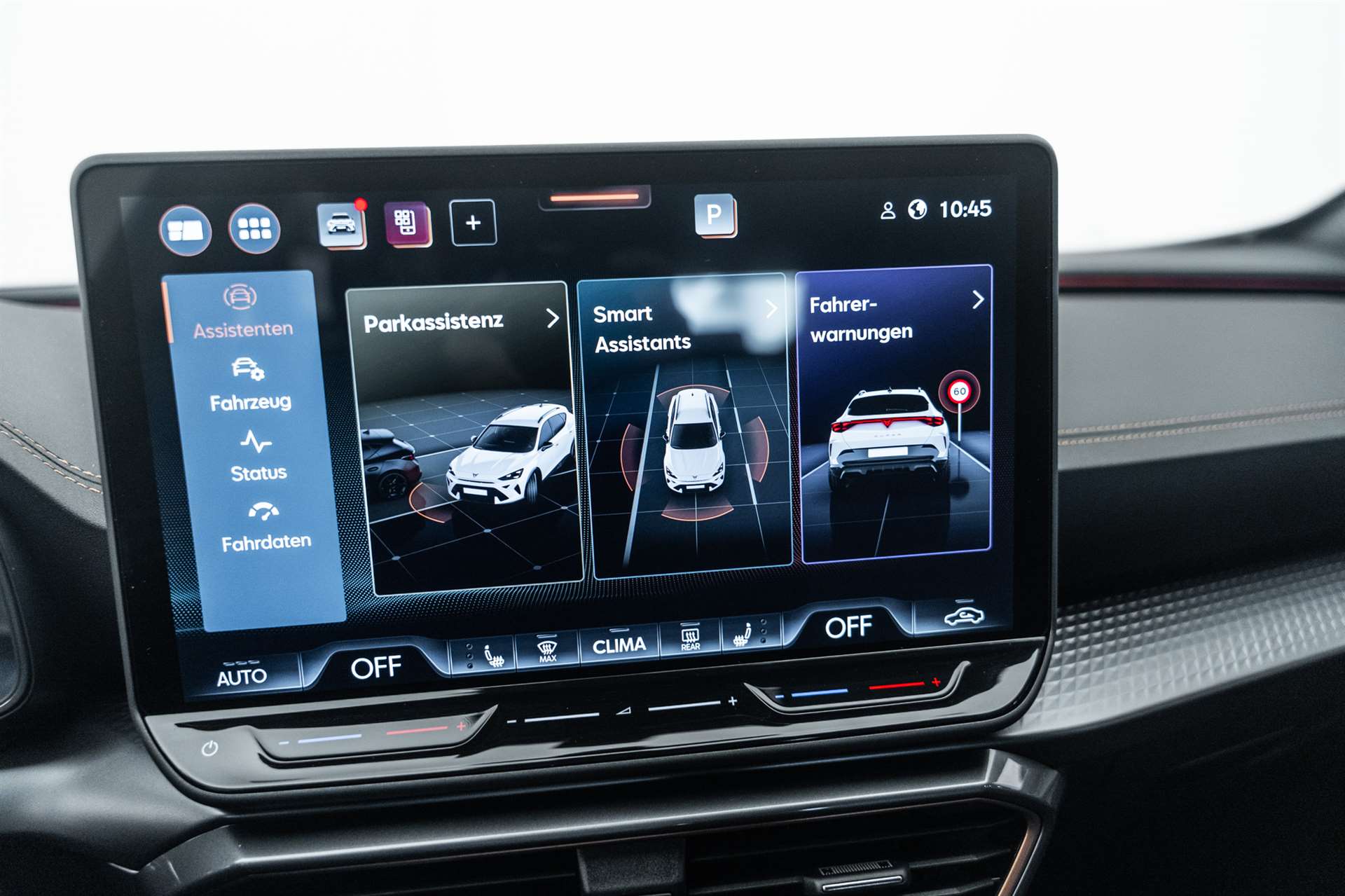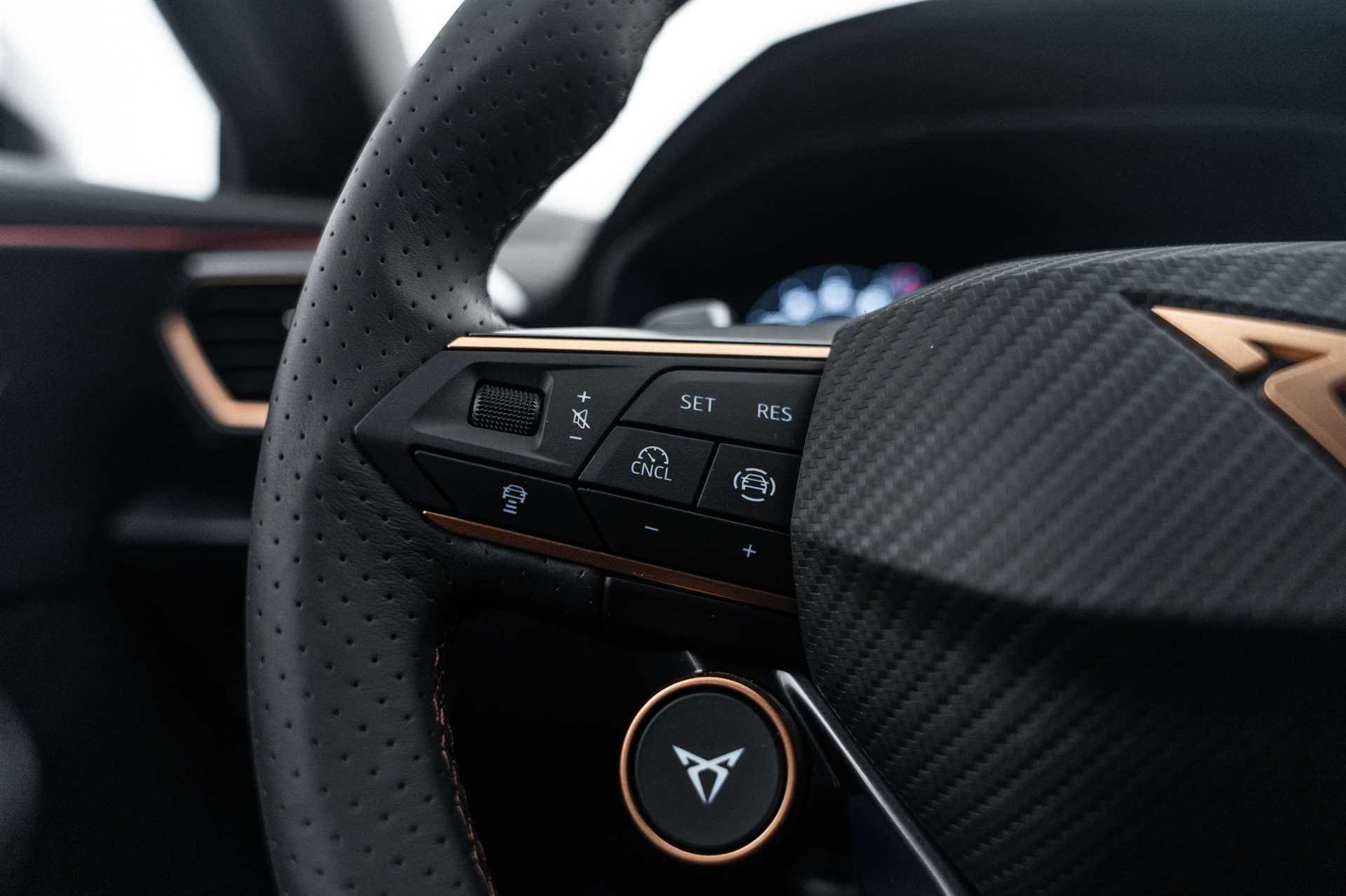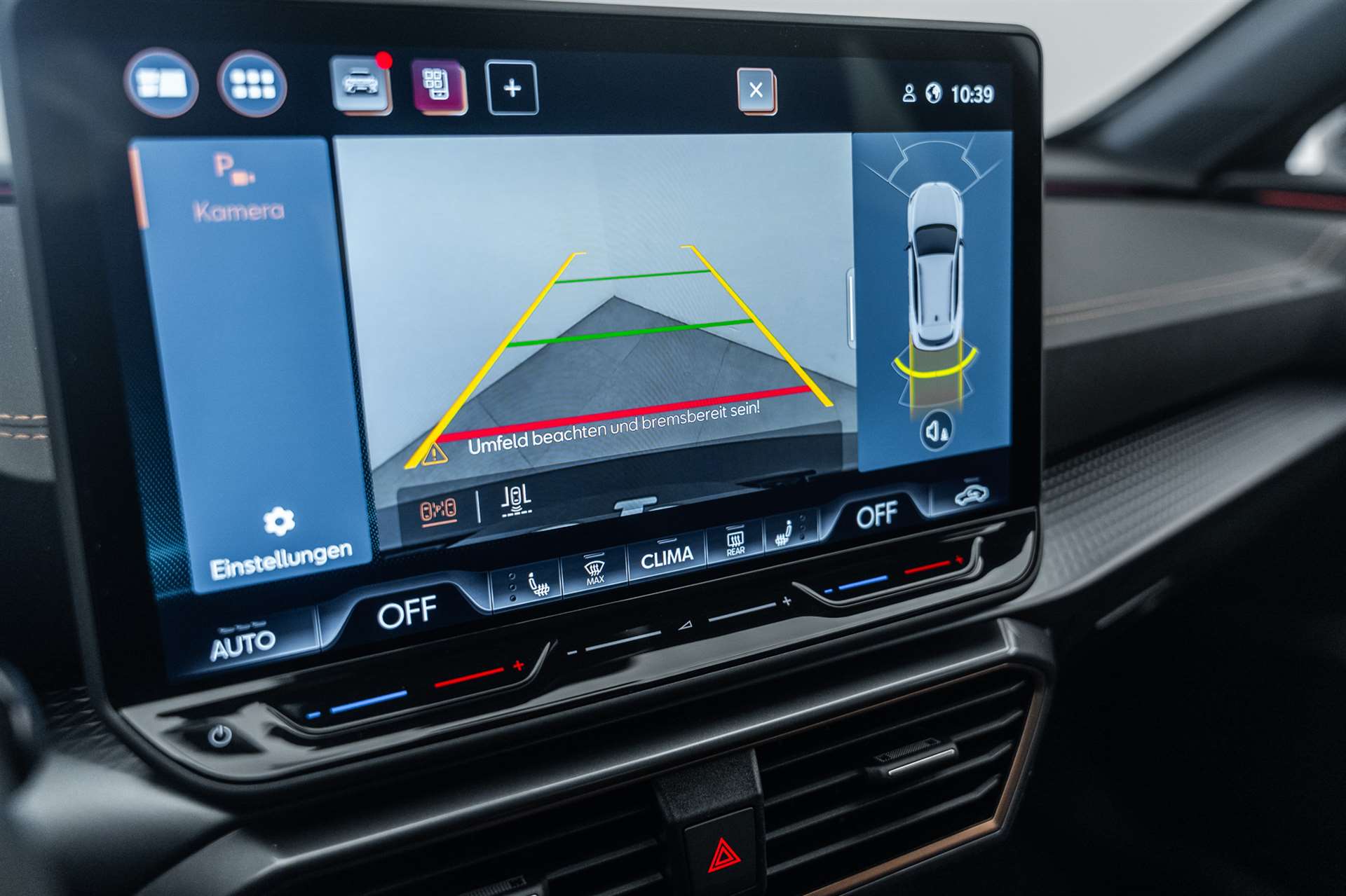 LED-Innenraumbeleuchtung mit Ambientebeleuchtung Smart Wraparound "Multicolor", Assist: Rückfahrkamera, Heckklappe elektrisch öffnend "Virtual Pedal", Alarmanlage mit Innenraumüberwachung, Schlüsselloses Schliess- und Startsystem (KESSY), CUPRA ServicePLUS, Lackierung: Matt-Lackierungen, Anhängevorrichtung (Einklappbar) mit Anhängerrangierassistent, Paket: PURE PERFORMANCE, Fahrwerk: Adaptive Fahrwerksregelung DCC, Licht: CUPRA Matrix LED Ultra Scheinwerfer, Licht: CUPRA HD Scheinwerfer mit Welcome Zeremonie und digitalen Projektionen, Räder: Alufelgen 8J x 19", "SANDSTORM" Machined in Silver, Räder: Alufelgen 8J x 19", "ARTIC COPPER" Machined in Black & Copper, Paket: PROGRESSIVE DESIGN, Sitze: Lendenwirbelstütze Fahrer- und Beifahrerseite elektrisch einstellbar, Sitze: Elektrische Sitzverstellung mit Memory-Funktion für Fahrer- und Beifahrerseite, Sitze: Ohne Dokumentenablage und Schublade unter den Vordersitzen, Dekor: Metallized Ambiente, Sitze: CUPRA Sport Schalensitze in Leder, Aussenspiegel elektrisch einstell-, beheiz- und einklappbar mit Memory -Funktion, Lackierung: Metallic-Lackierung, Räder: Alufelgen 8J x 18", "SONORA" Machined in Silver, Media: CUPRA Navigationssystem 12.9" Infotainment, Paket: INTELLIGENT DRIVE, Assist: Parklenkassistent IPA (Intelligent Park Assist), Assist: Exit Warning (Ausstiegswarner), Assist: Travel Assist, Paket: Fahrerassistenzpaket XL, Assist: Side Assist (Spurwechselassistent), Assist: Exit Assist (Ausparkassistent), Assist: PreCrash Sicherheitssystem, Assist: Top View Camera (Rundumblick), Anhängevorrichtung (Einklappbar), CUPRA Service, Skyline, Garantie: Cupra Hersteller-Garantieverlängerung für das 3., 4. und 5. Jahr / max.150000 km, Räder: Alufelgen 8J x 19", "SANDSTORM COPPER" Machined in Copper, Media: IMMERSIVE by SENNHEISER, Räder: Ersatzrad platzsparend, Airbag: Seitenairbags vorne und hinten, mit Kopfairbag und Interaktionsairbag vorne, mit Knieairbag, Media: IMMERSIVE by SENNHEISER, Lackierung: Spezial- Lackierungen, Räder: Alufelgen 8J x 19", "ARTIC" Machined in Sport Black & Silver, Paket: DYNAMIC DESIGN, Sitze: Lendenwirbelstütze Fahrerseite elektrisch einstellbar, Sitze: CUPRA Sport Schalensitze in Dinamica "Black/Blue", Sitze: Fahrersitz elektrisch einstellbar mit Memory-Funktion, Dekor: Dinamica Ambiente, Aussenspiegel elektrisch einstell-, beheiz- und einklappbar mit Memory -Funktion, Paket: CUPRA Formentor Pack, Paket: EDGE, Paket: INTELLIGENT DRIVE, Media: CUPRA Navigationssystem 12.9" Infotainment