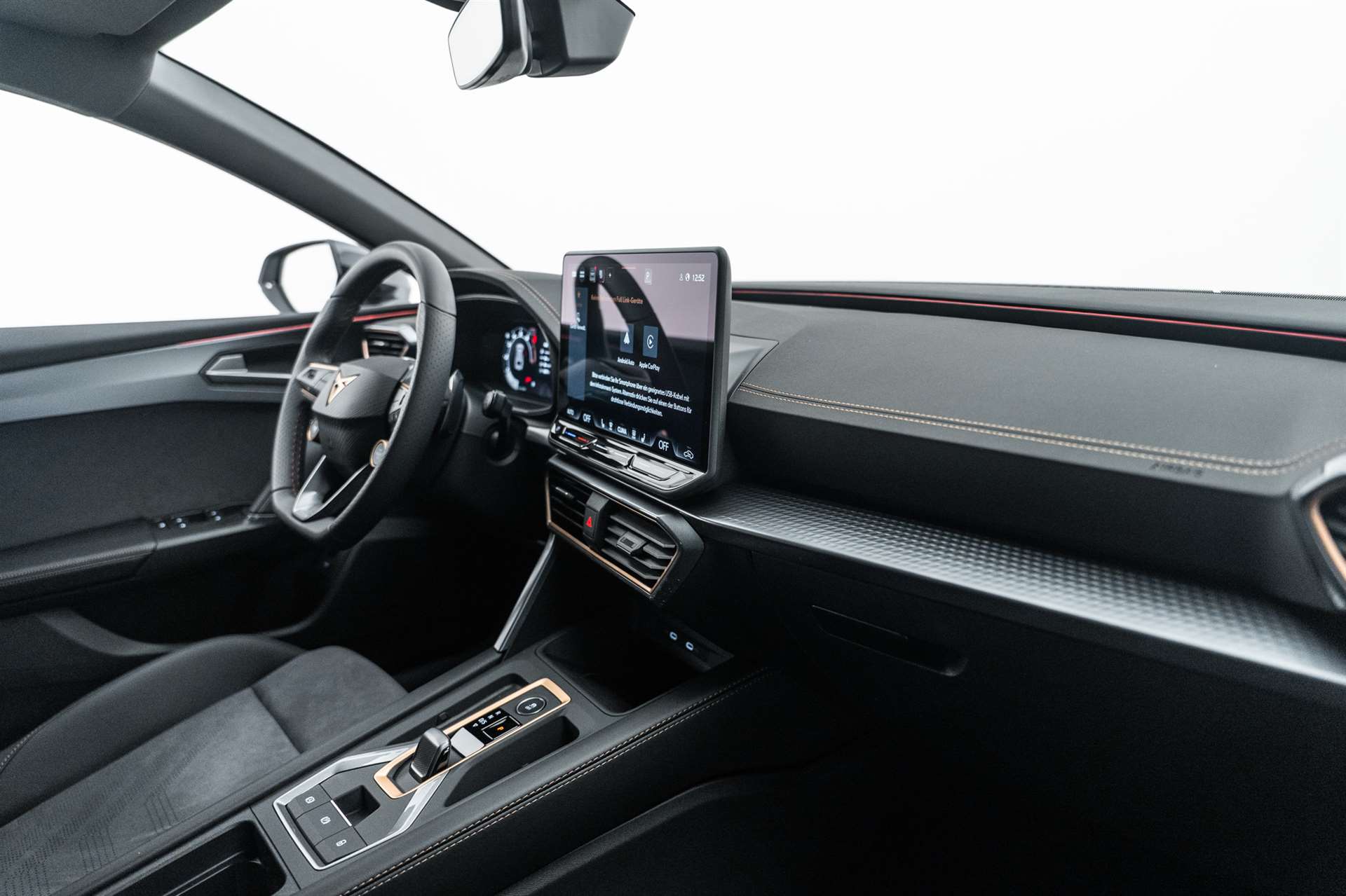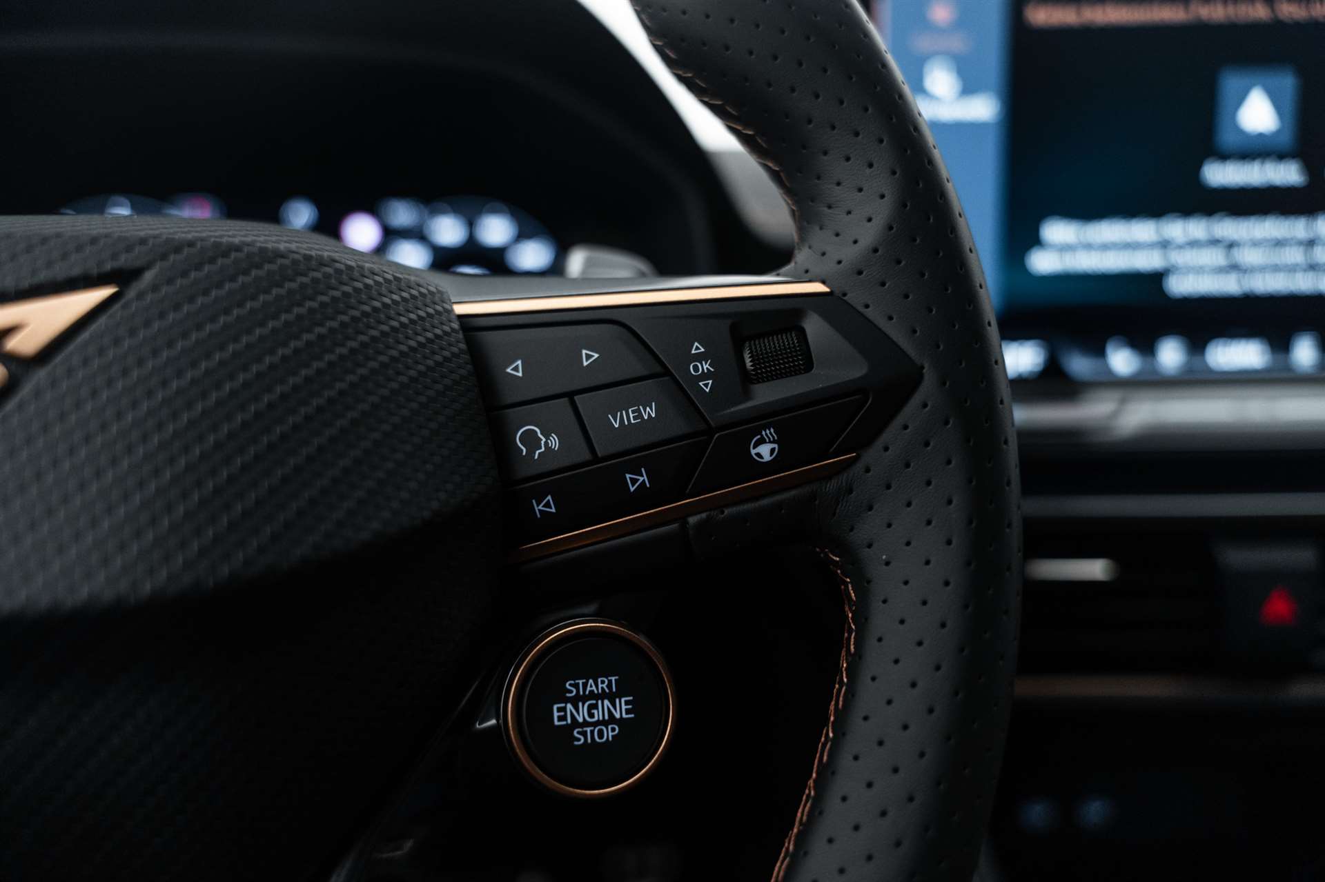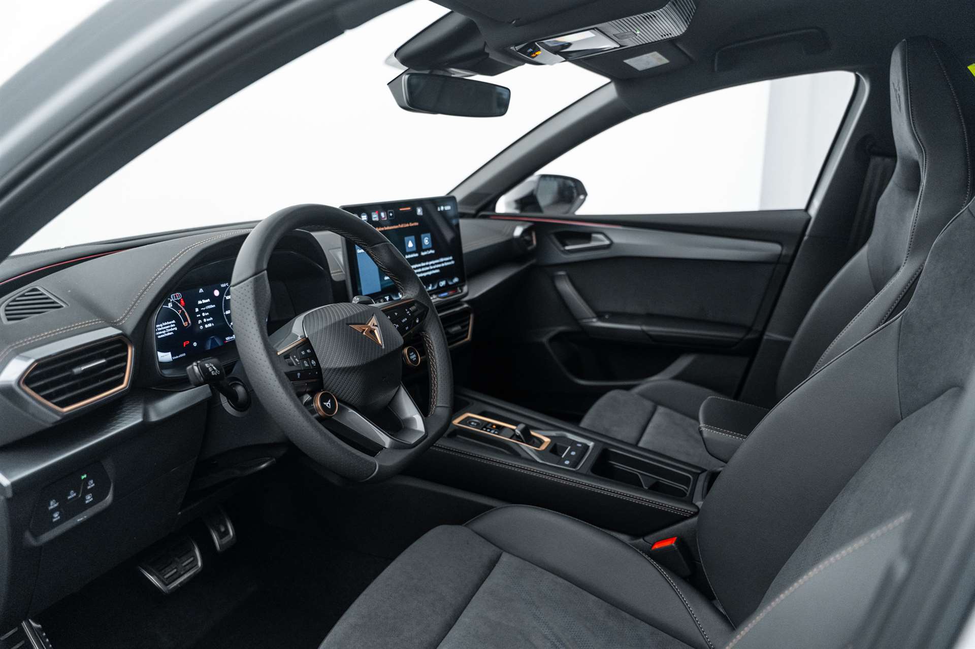Media: CUPRA Connect Online Infotainment, Paket: INTELLIGENT DRIVE, Assist: Parklenkassistent IPA (Intelligent Park Assist), Assist: Exit Warning (Ausstiegswarner), Assist: Travel Assist, Assist: Side Assist (Spurwechselassistent), Assist: Exit Assist (Ausparkassistent), Assist: PreCrash Sicherheitssystem, Assist: Prädiktive automatische Distanzregelung ACC, Media: CUPRA Navigationssystem 12.9" Infotainment, Lackierung: Matt-Lackierungen, CUPRA Service, Garantie: Cupra Hersteller-Garantieverlängerung für das 3., 4. und 5. Jahr / max.150000 km, Airbag: Seitenairbags hinten, vorn mit Knieairbag, Skyline, Räder: Alufelgen 8J x 19", "HAILSTORM" Machined in Sport Black Silver, Räder: Alufelgen 8J x 19", "POLAR COPPER" Machined in Sport Black Copper, Paket: PROGRESSIVE DESIGN, Sitze: Lendenwirbelstütze Fahrer- und Beifahrerseite elektrisch einstellbar, Sitze: Elektrische Sitzverstellung mit Memory-Funktion für Fahrer- und Beifahrerseite, Sitze: Ohne Dokumentenablage und Schublade unter den Vordersitzen, Dekor: Metallized Ambiente, Aussenspiegel elektrisch einstell-, beheiz- und einklappbar mit Memory -Funktion, Sitze: CUPRA Sport Schalensitze in in Leder "Moon Slate Metallic", Paket: CUPRA Leon SP VZ Pack, Paket: PURE PERFORMANCE, Paket: INTELLIGENT DRIVE, Media: CUPRA Navigationssystem 12.9" Infotainment, Media: CUPRA Connect Online Infotainment, Räder: Alufelgen 8J x 19", "HAILSTORM COPPER" Machined in Sport Black Copper, CUPRA ServicePLUS, Lackierung: Spezial- Lackierungen, Paket: PURE PERFORMANCE, Licht: CUPRA Matrix LED Ultra Scheinwerfer, Licht: CUPRA HD Scheinwerfer mit Welcome Zeremonie und digitalen Projektionen, CUPRA Seitenschweller in "Obsidian Black", Media: IMMERSIVE by SENNHEISER