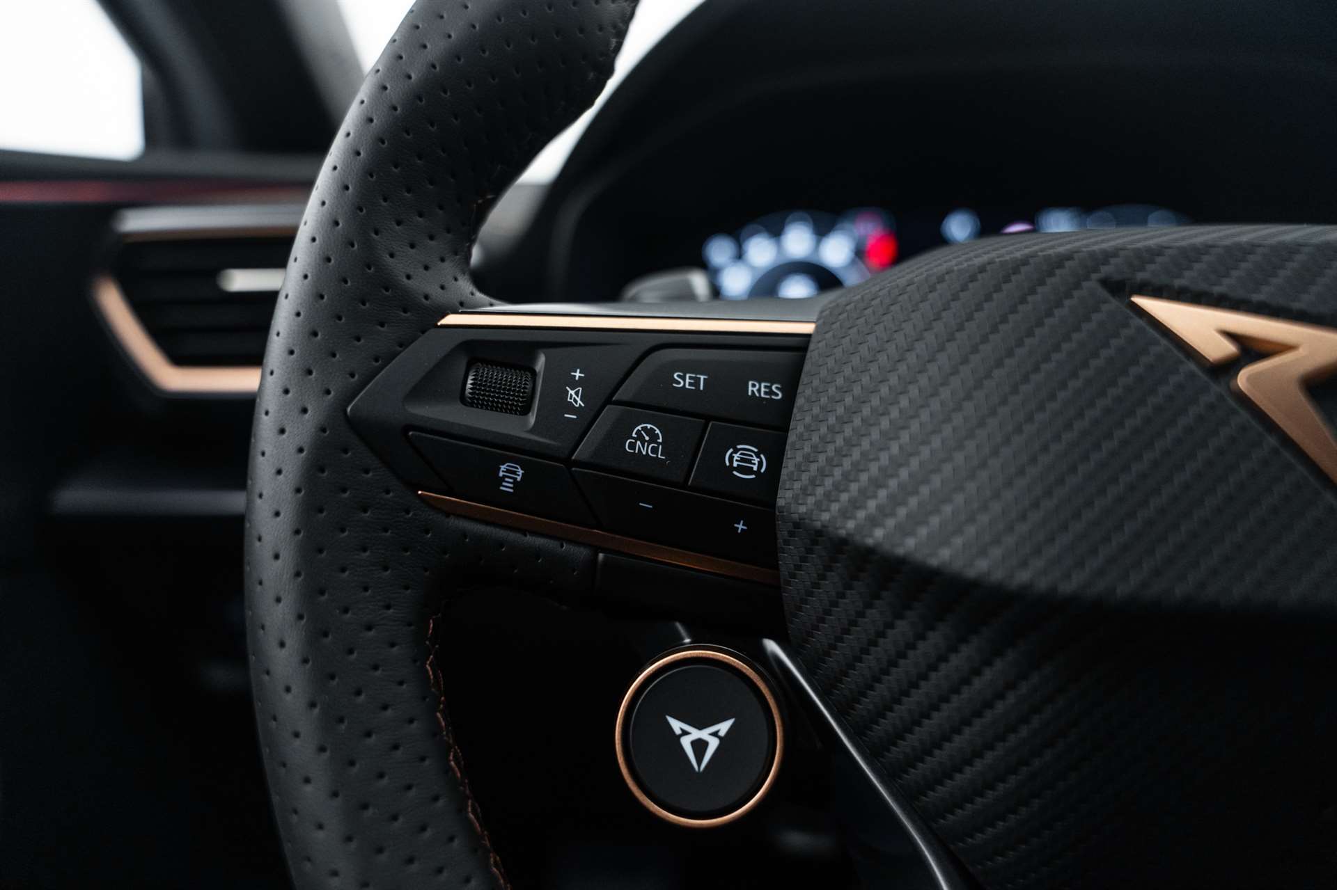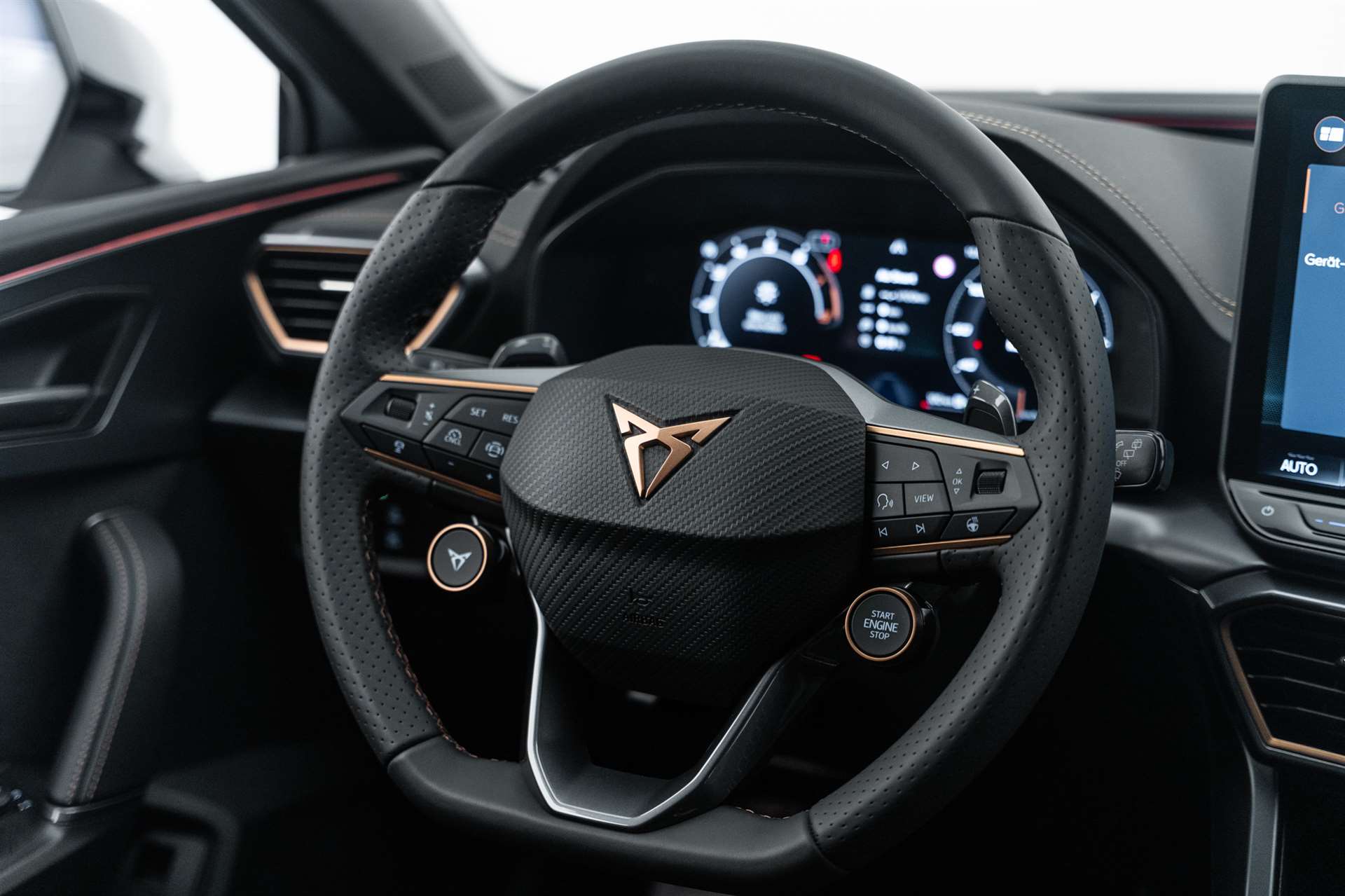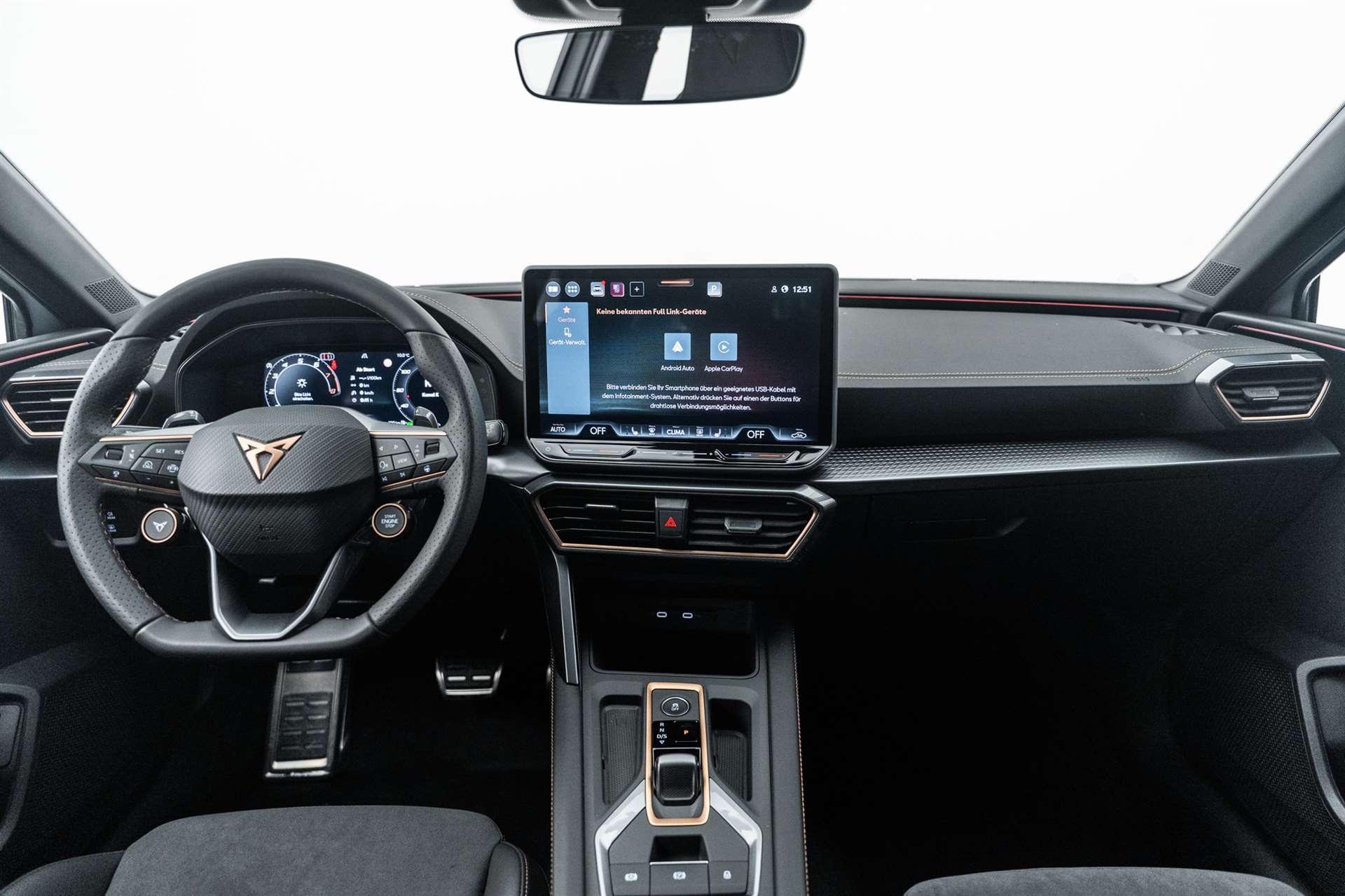 Media: CUPRA Connect Online Infotainment, Paket: INTELLIGENT DRIVE, Assist: Parklenkassistent IPA (Intelligent Park Assist), Assist: Exit Warning (Ausstiegswarner), Assist: Travel Assist, Assist: Side Assist (Spurwechselassistent), Assist: Exit Assist (Ausparkassistent), Assist: PreCrash Sicherheitssystem, Assist: Prädiktive automatische Distanzregelung ACC, Media: CUPRA Navigationssystem 12.9" Infotainment, Lackierung: Matt-Lackierungen, CUPRA Service, Garantie: Cupra Hersteller-Garantieverlängerung für das 3., 4. und 5. Jahr / max.150000 km, Airbag: Seitenairbags hinten, vorn mit Knieairbag, Skyline, Räder: Alufelgen 8J x 19", "HAILSTORM" Machined in Sport Black Silver, Räder: Alufelgen 8J x 19", "POLAR COPPER" Machined in Sport Black Copper, Paket: PROGRESSIVE DESIGN, Sitze: Lendenwirbelstütze Fahrer- und Beifahrerseite elektrisch einstellbar, Sitze: Elektrische Sitzverstellung mit Memory-Funktion für Fahrer- und Beifahrerseite, Sitze: Ohne Dokumentenablage und Schublade unter den Vordersitzen, Dekor: Metallized Ambiente, Aussenspiegel elektrisch einstell-, beheiz- und einklappbar mit Memory -Funktion, Sitze: CUPRA Sport Schalensitze in in Leder "Moon Slate Metallic", Paket: CUPRA Leon SP VZ Pack, Paket: PURE PERFORMANCE, Paket: INTELLIGENT DRIVE, Media: CUPRA Navigationssystem 12.9" Infotainment, Media: CUPRA Connect Online Infotainment, Räder: Alufelgen 8J x 19", "HAILSTORM COPPER" Machined in Sport Black Copper, CUPRA ServicePLUS, Lackierung: Spezial- Lackierungen, Paket: PURE PERFORMANCE, Licht: CUPRA Matrix LED Ultra Scheinwerfer, Licht: CUPRA HD Scheinwerfer mit Welcome Zeremonie und digitalen Projektionen, CUPRA Seitenschweller in "Obsidian Black", Media: IMMERSIVE by SENNHEISER